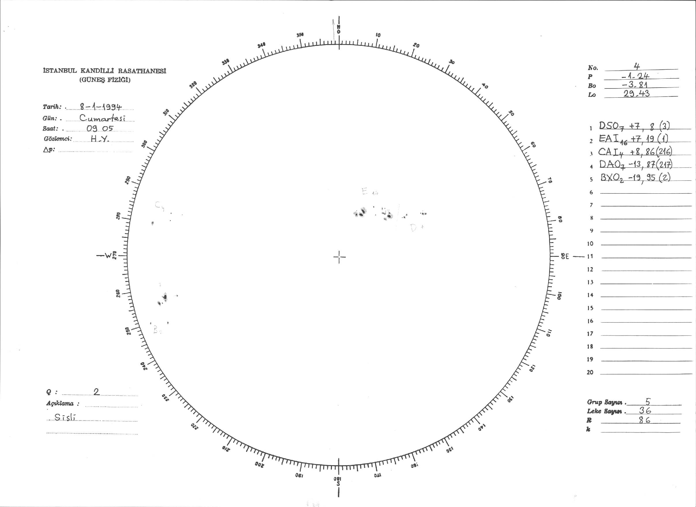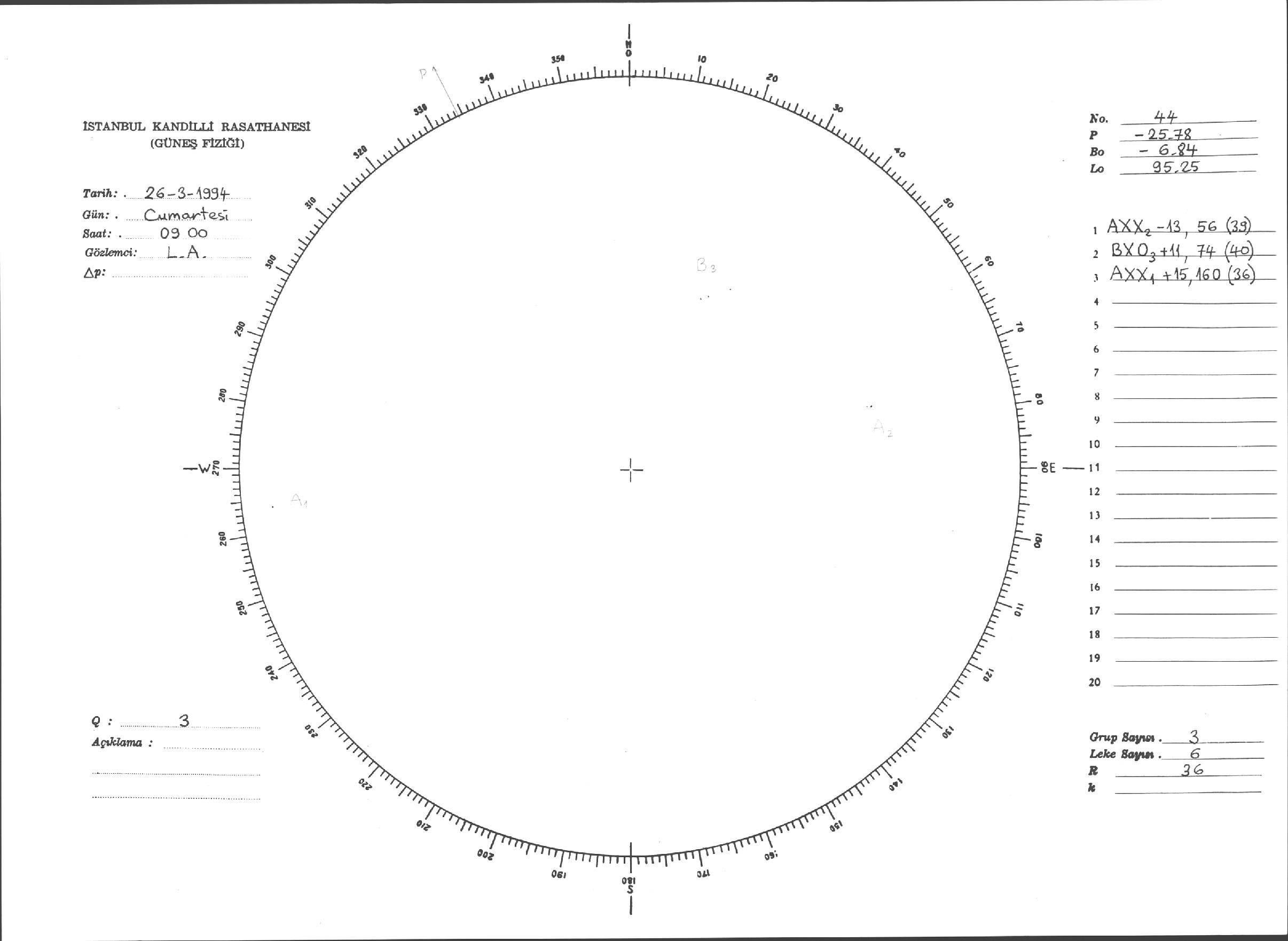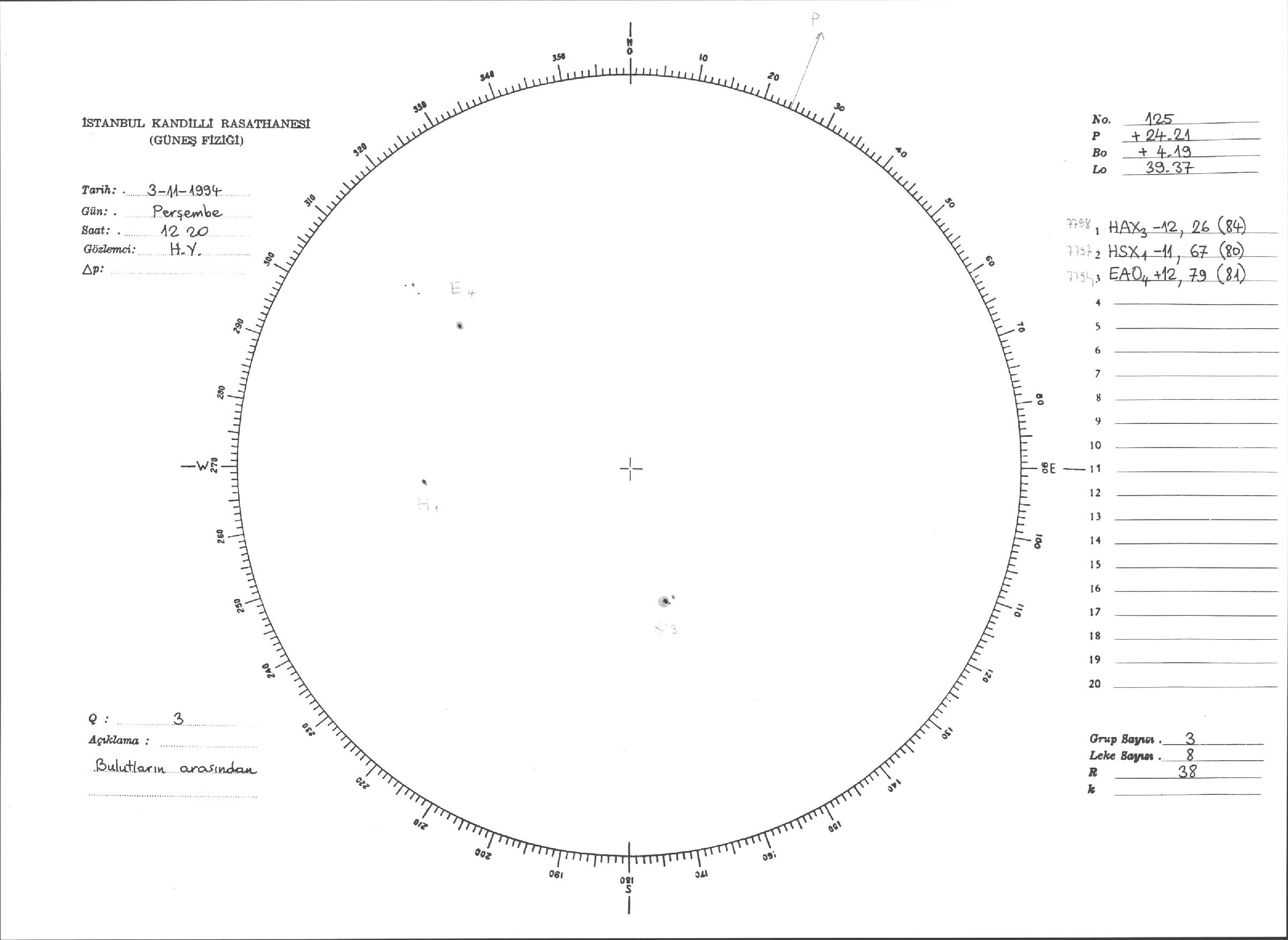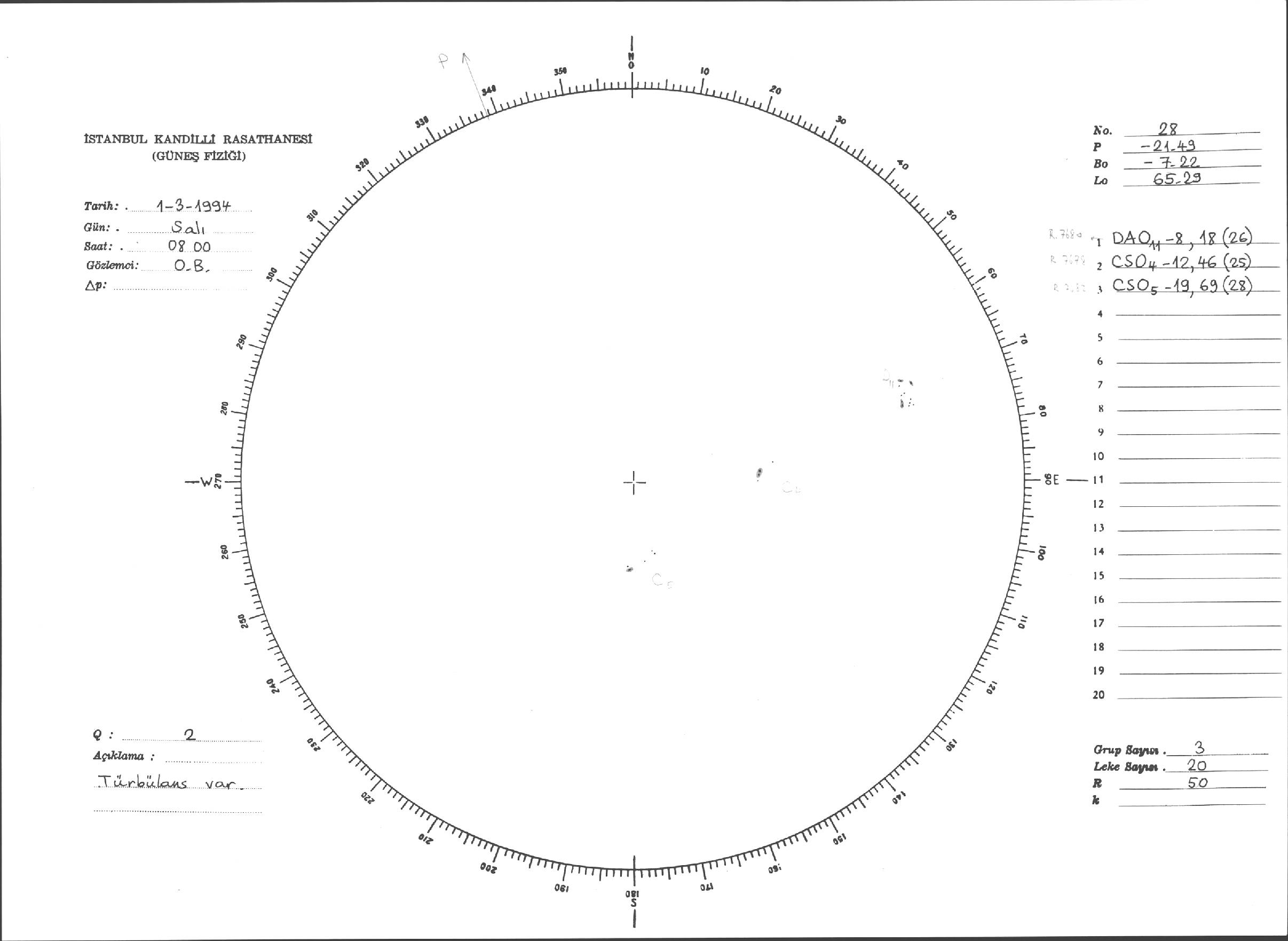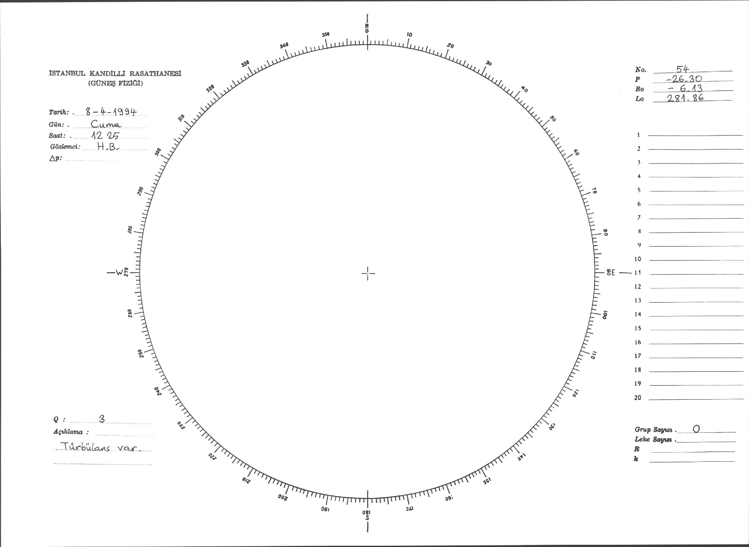 Güneş Lekesi Çizimleri / Kandilli Sunspot Drawings