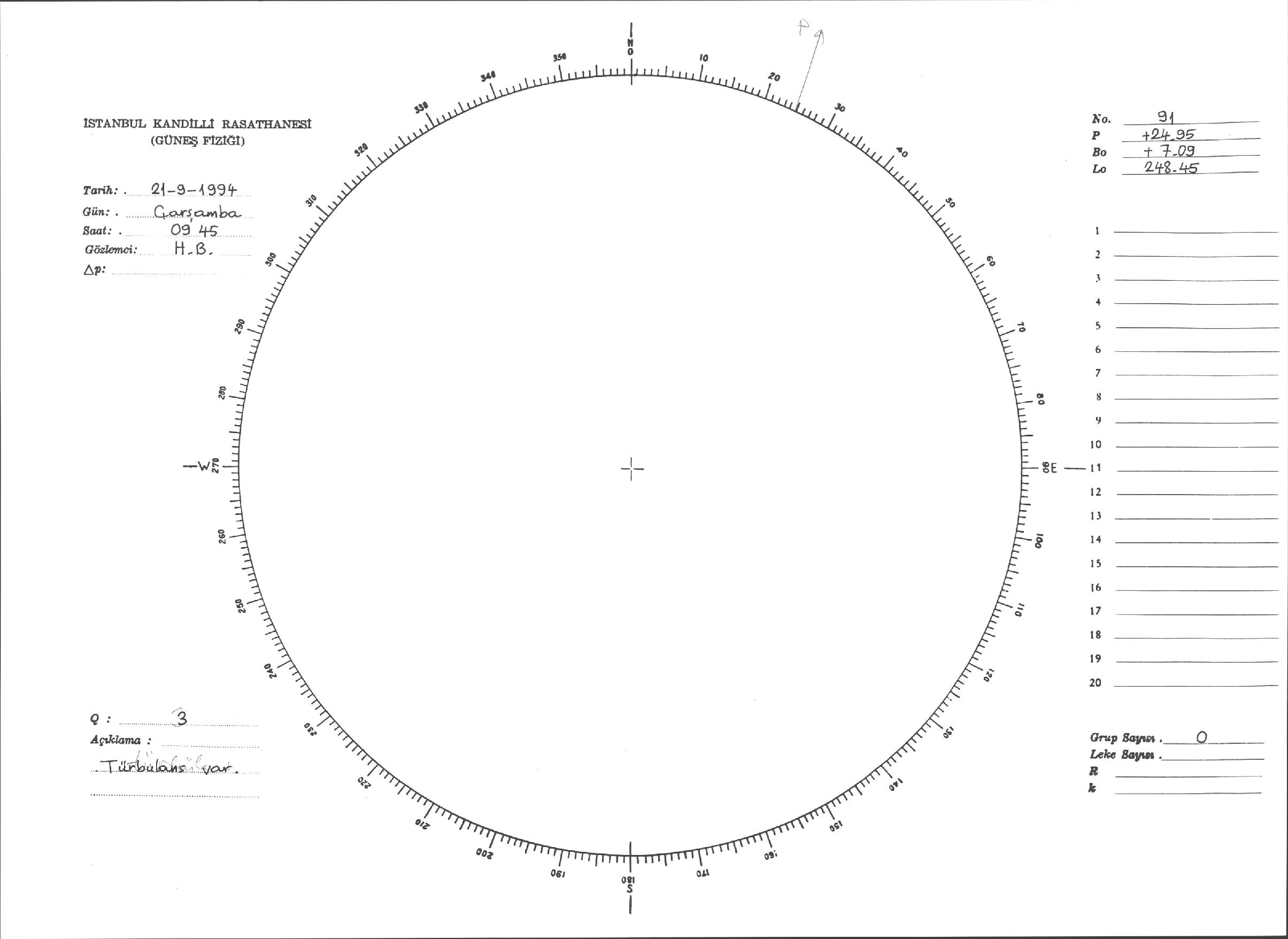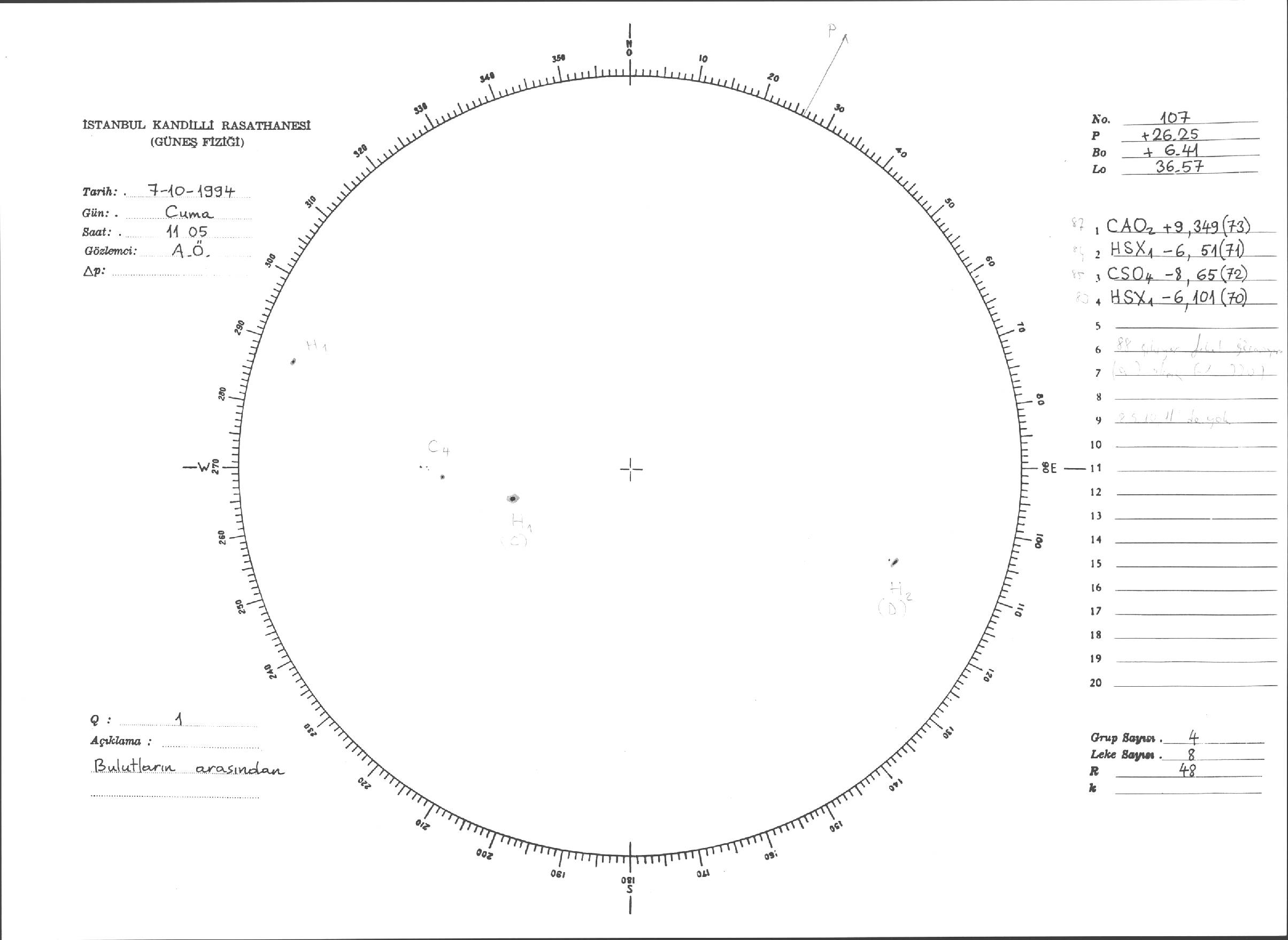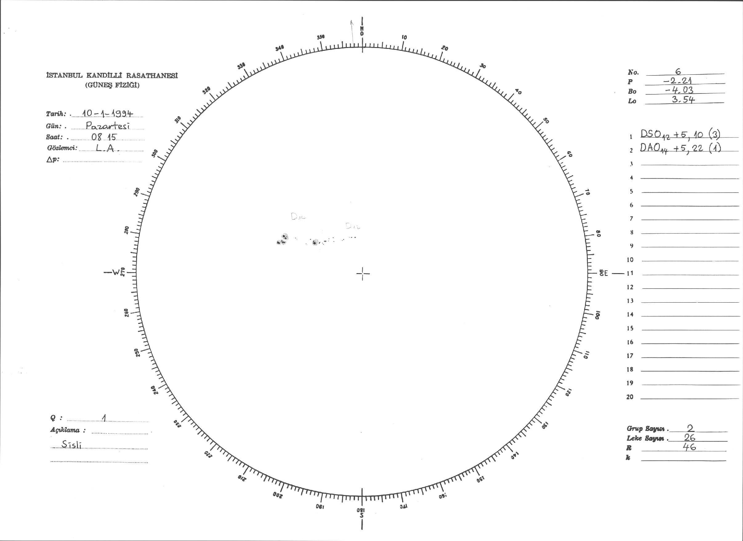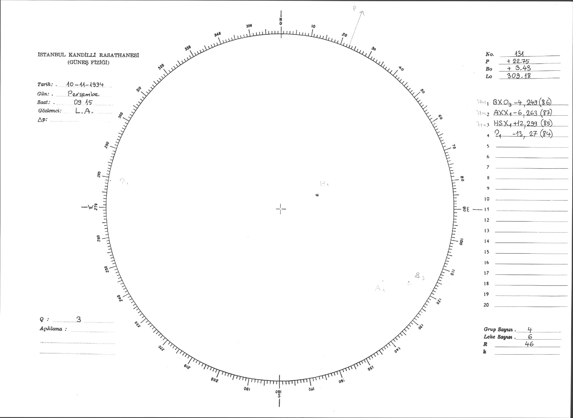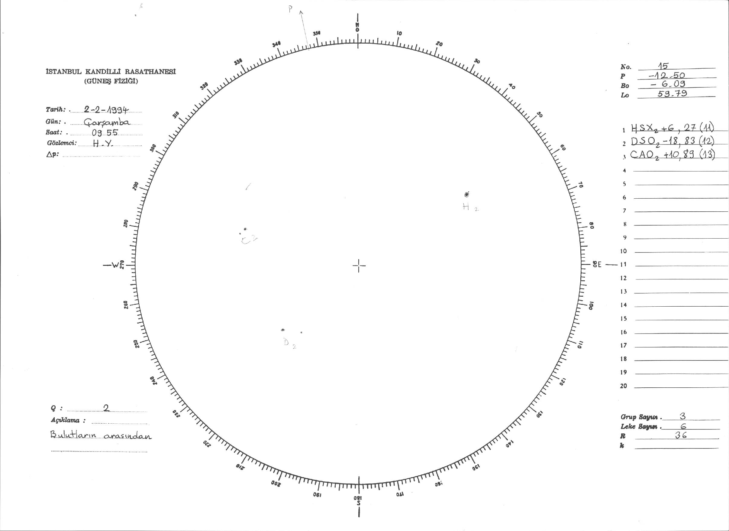 Güneş Lekesi Çizimleri / Kandilli Sunspot Drawings