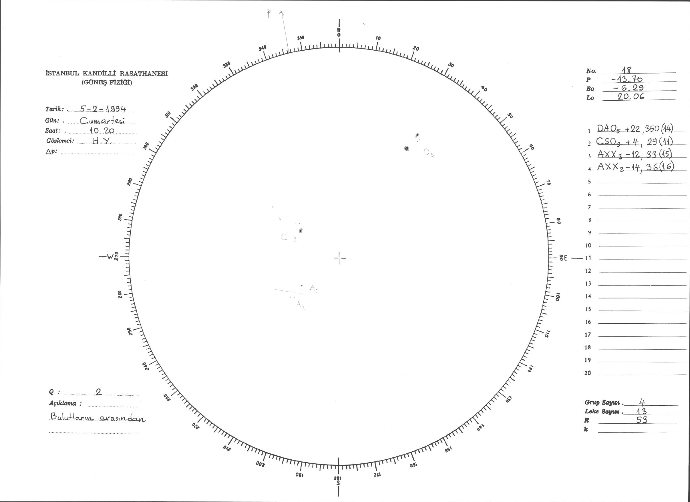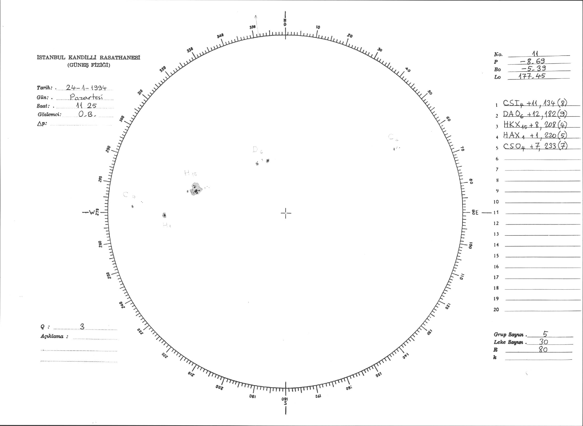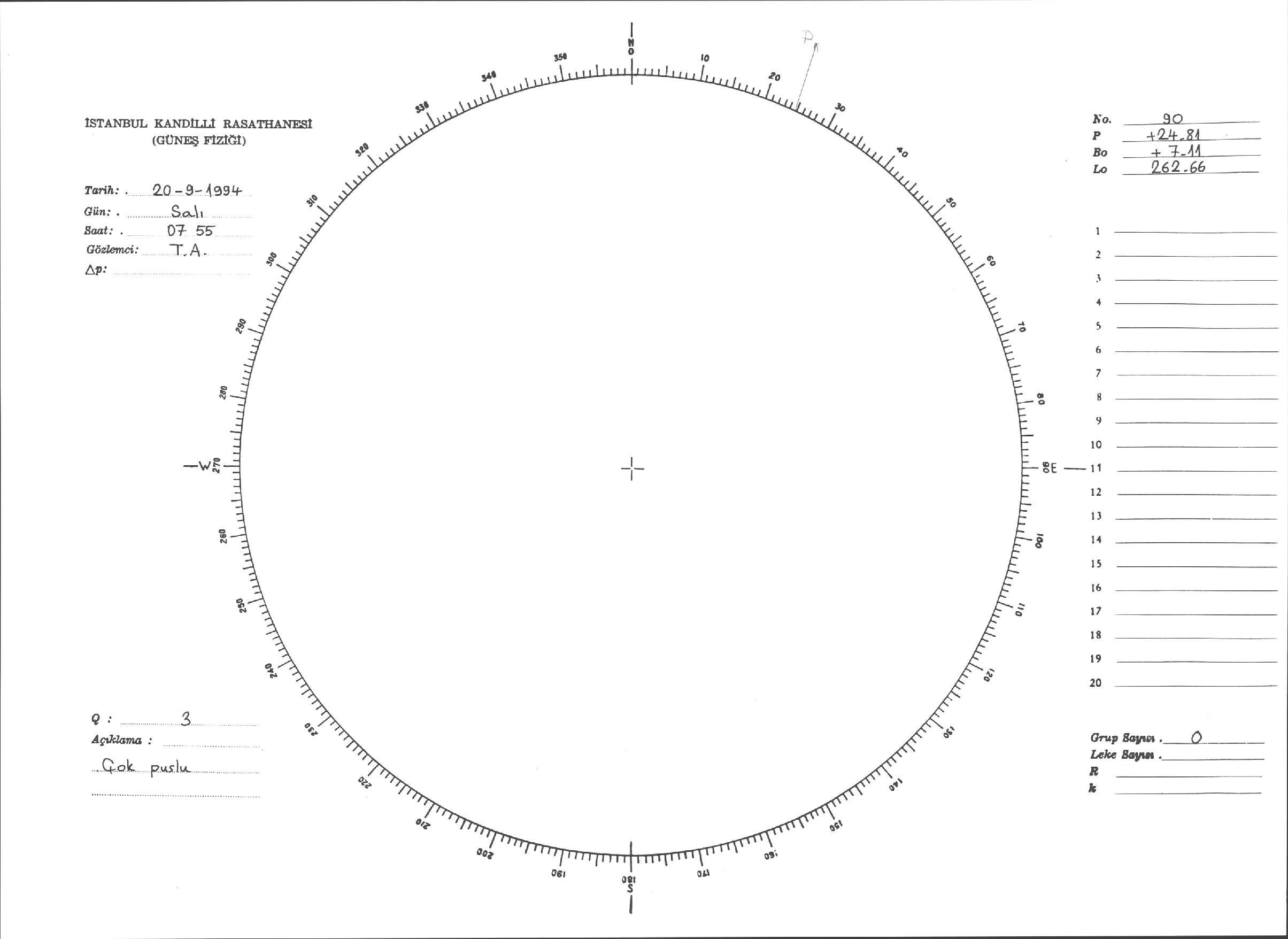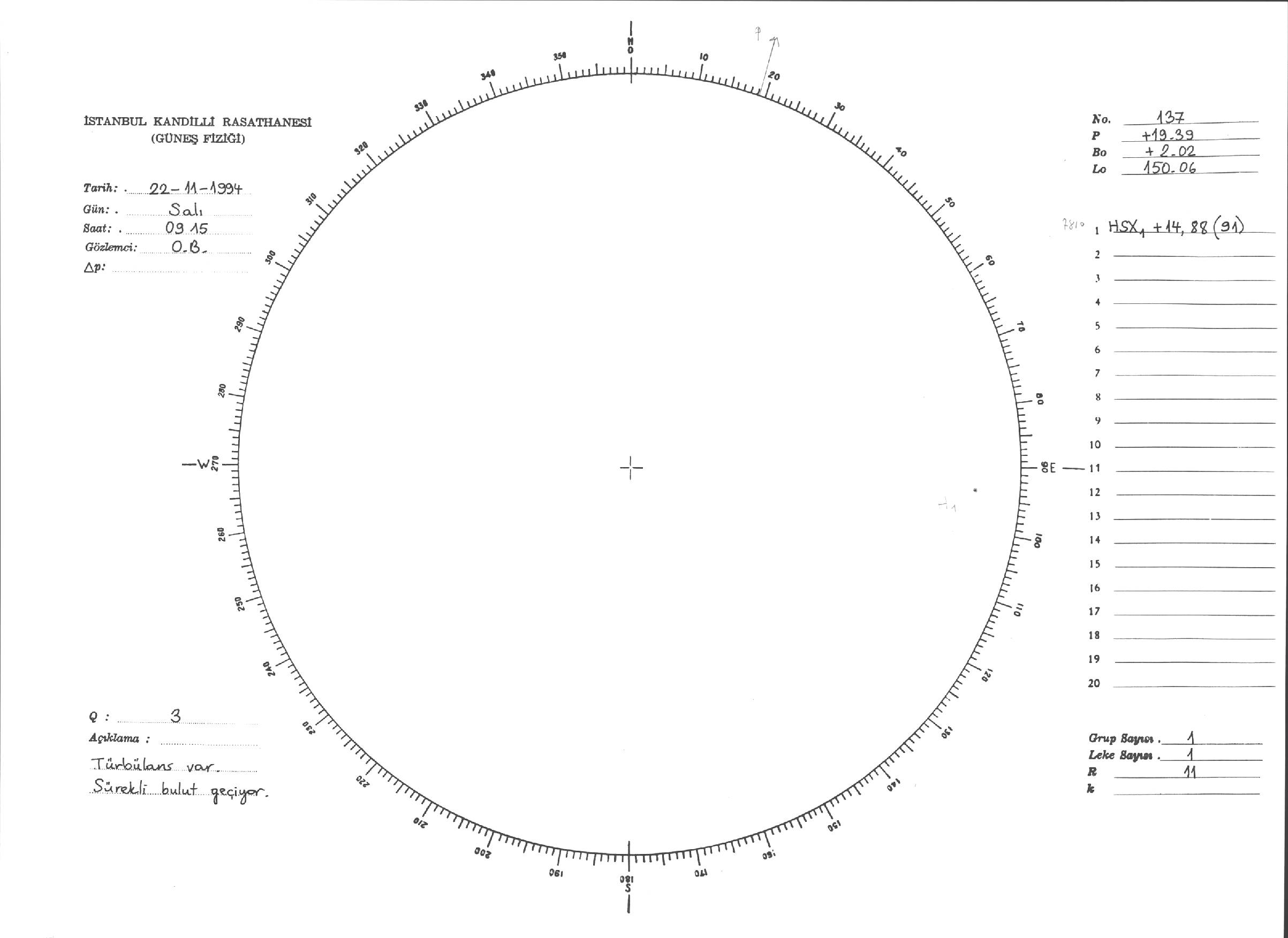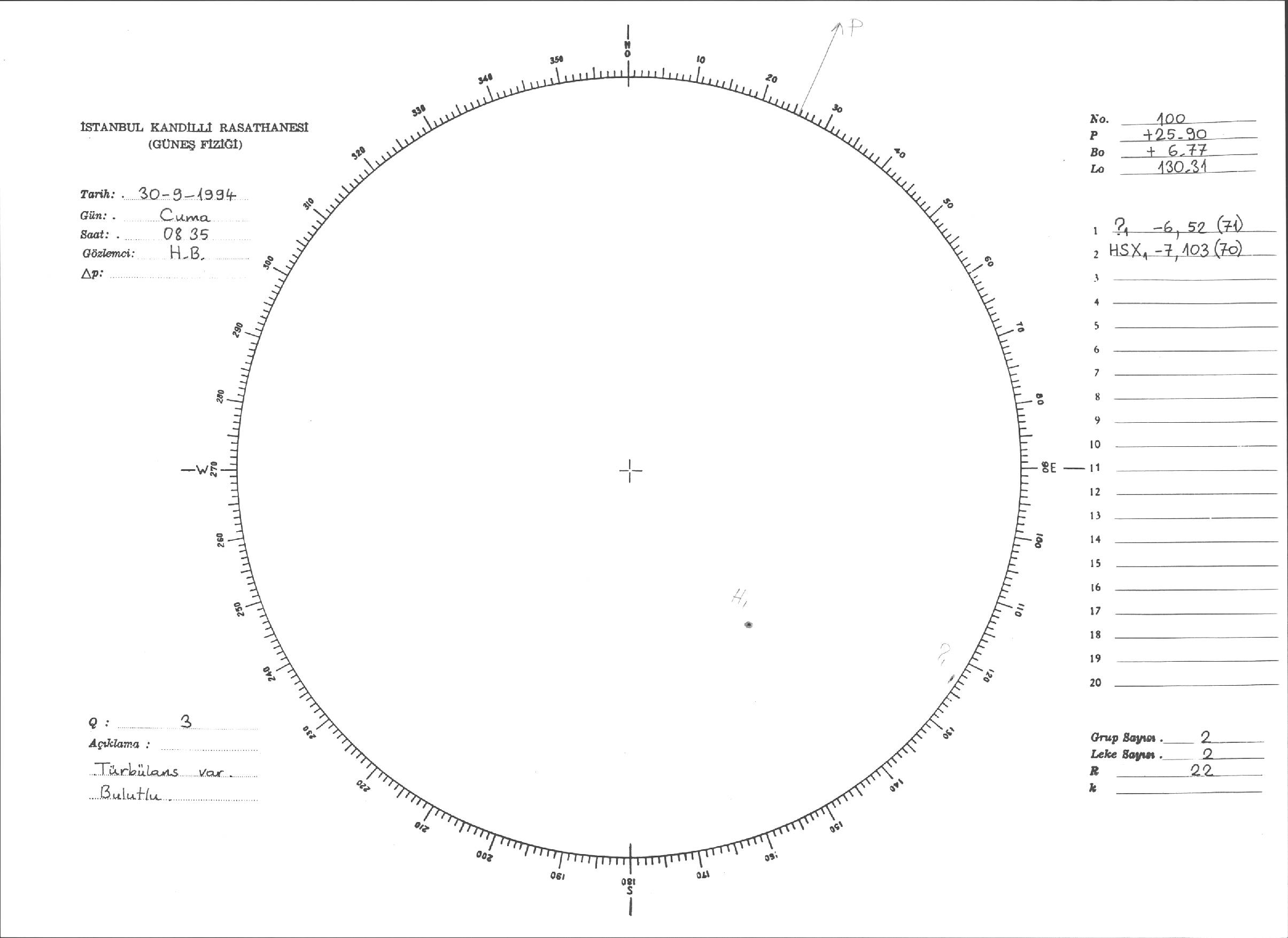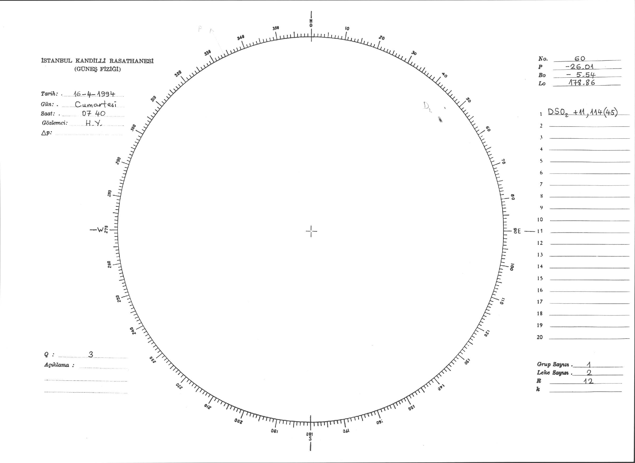 Güneş Lekesi Çizimleri / Kandilli Sunspot Drawings