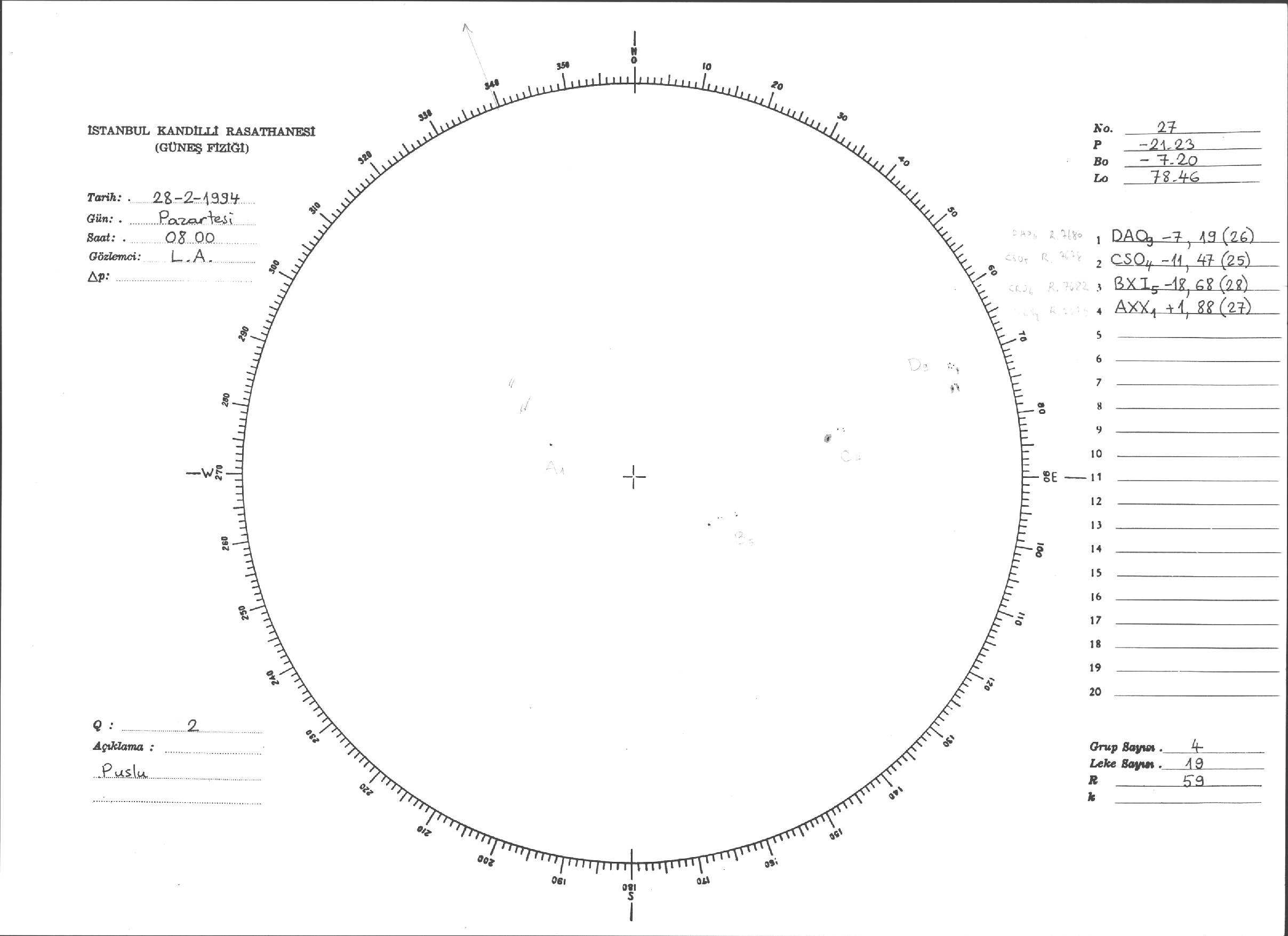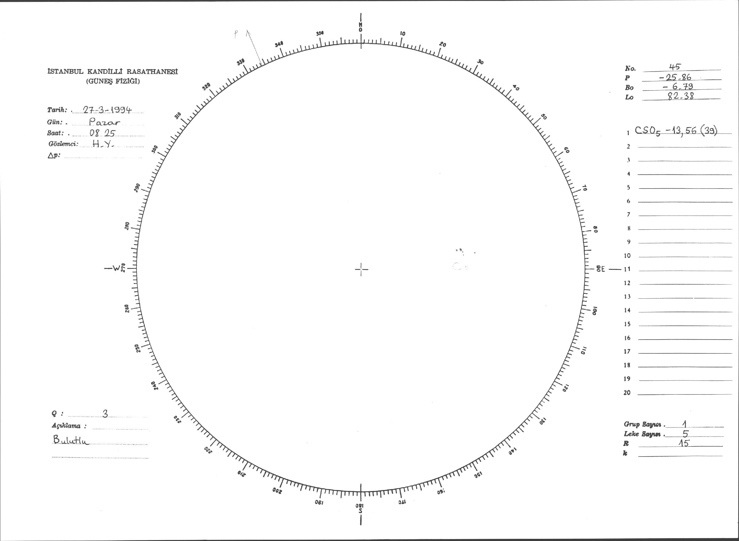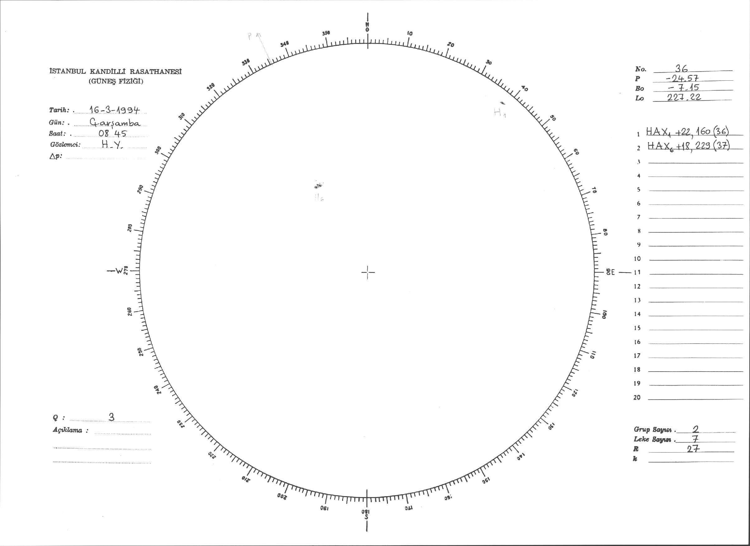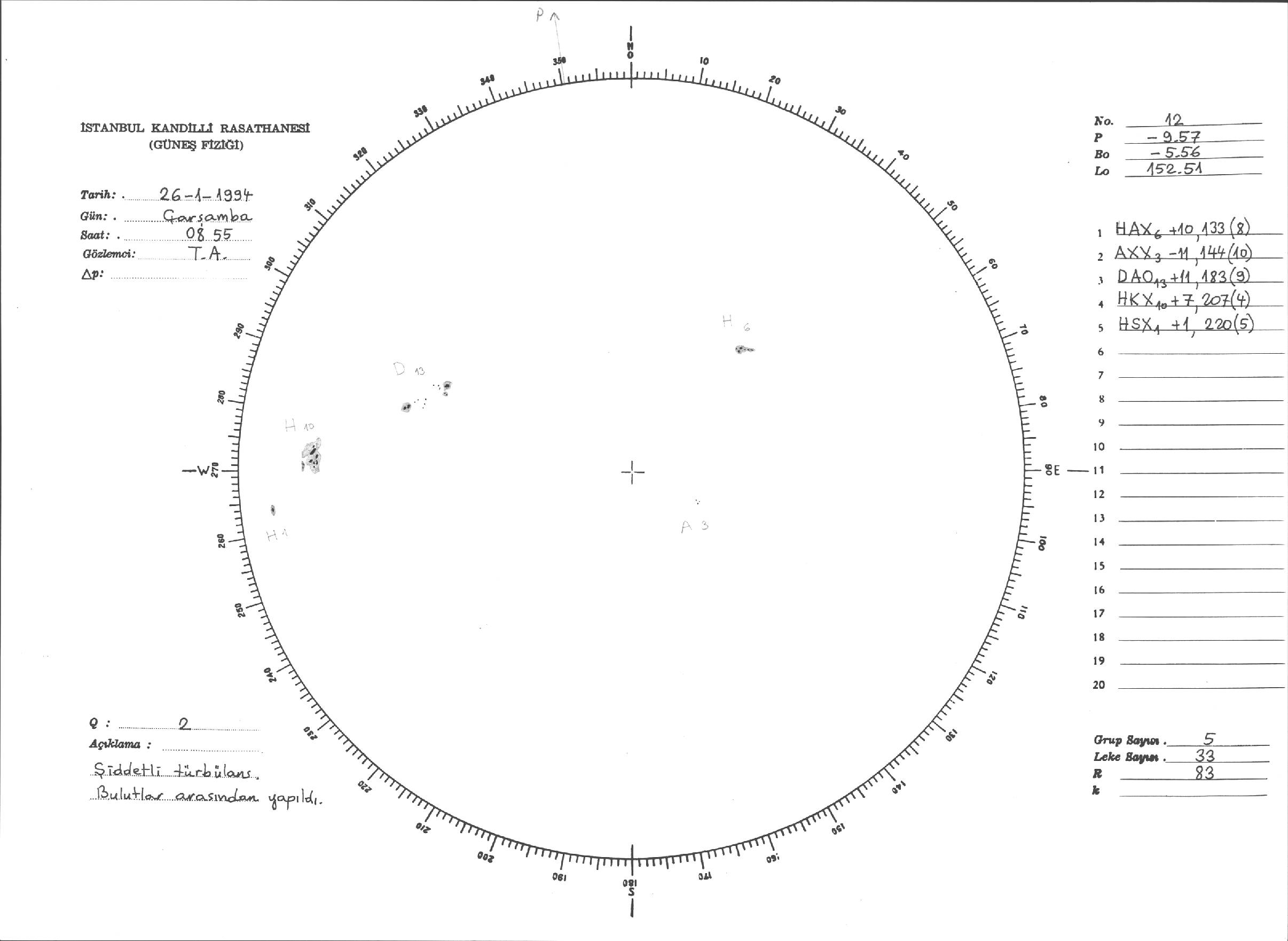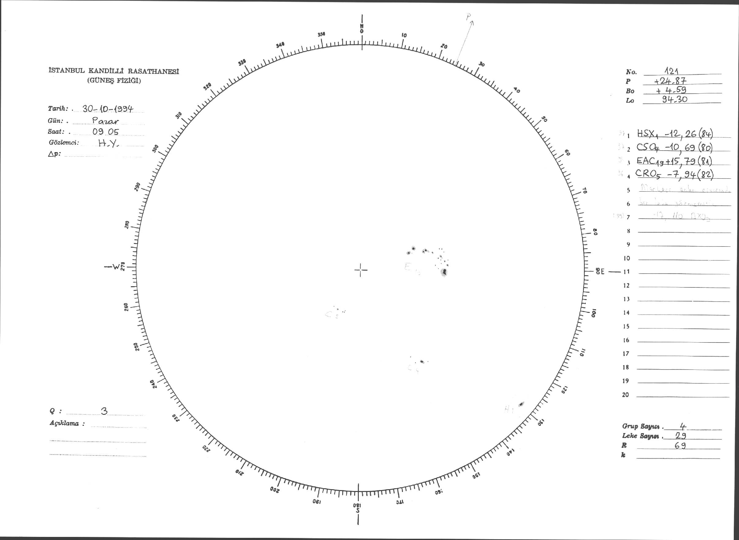 Güneş Lekesi Çizimleri / Kandilli Sunspot Drawings
