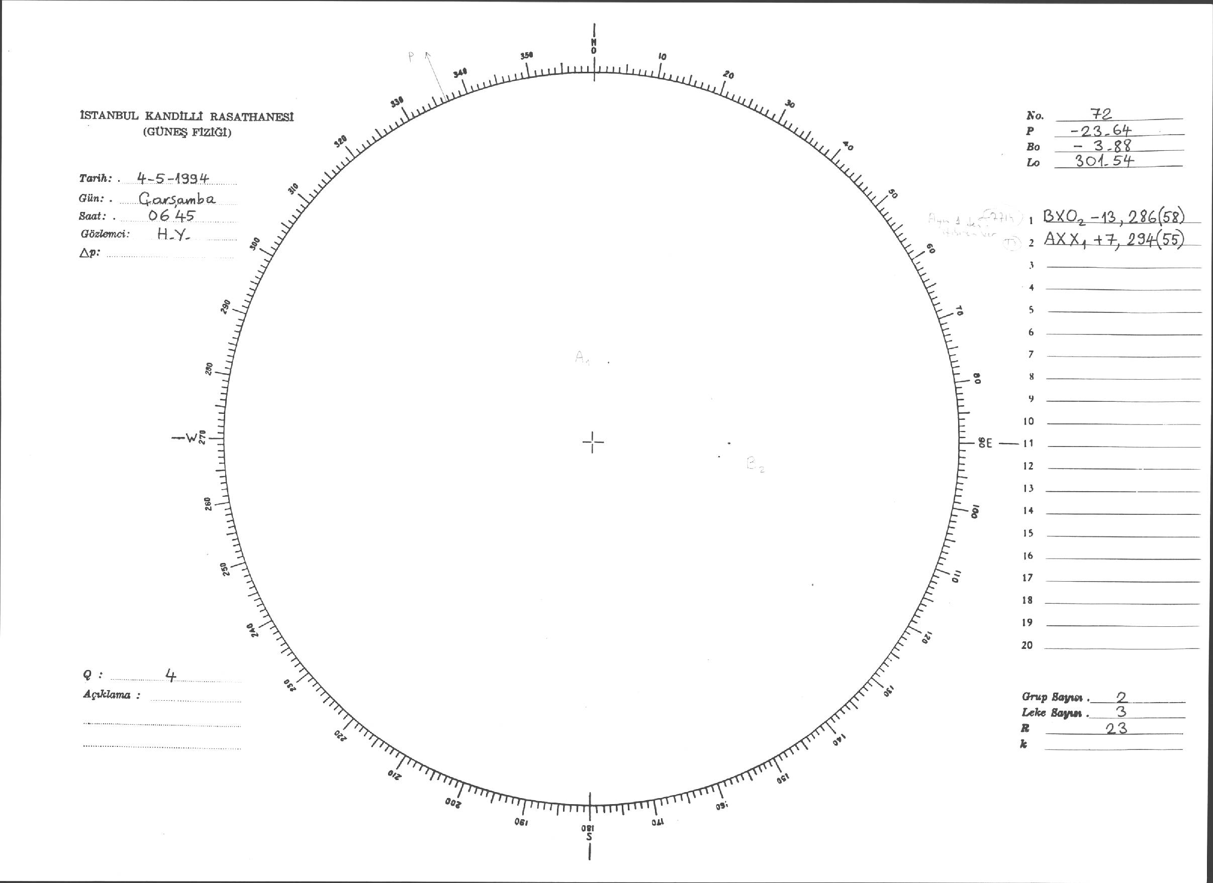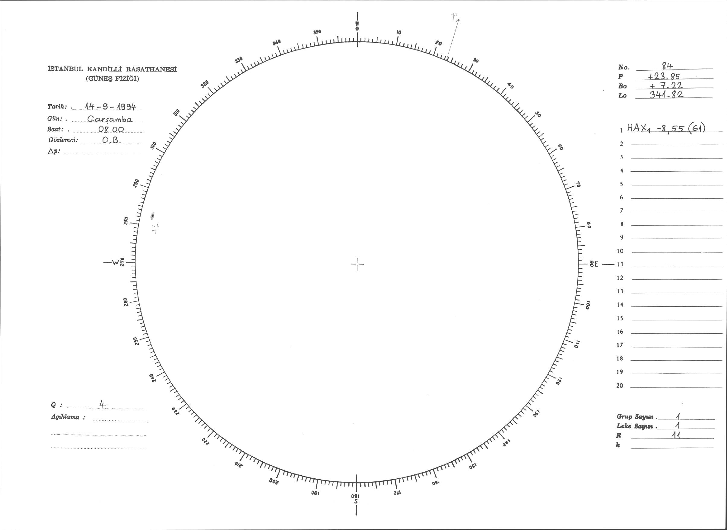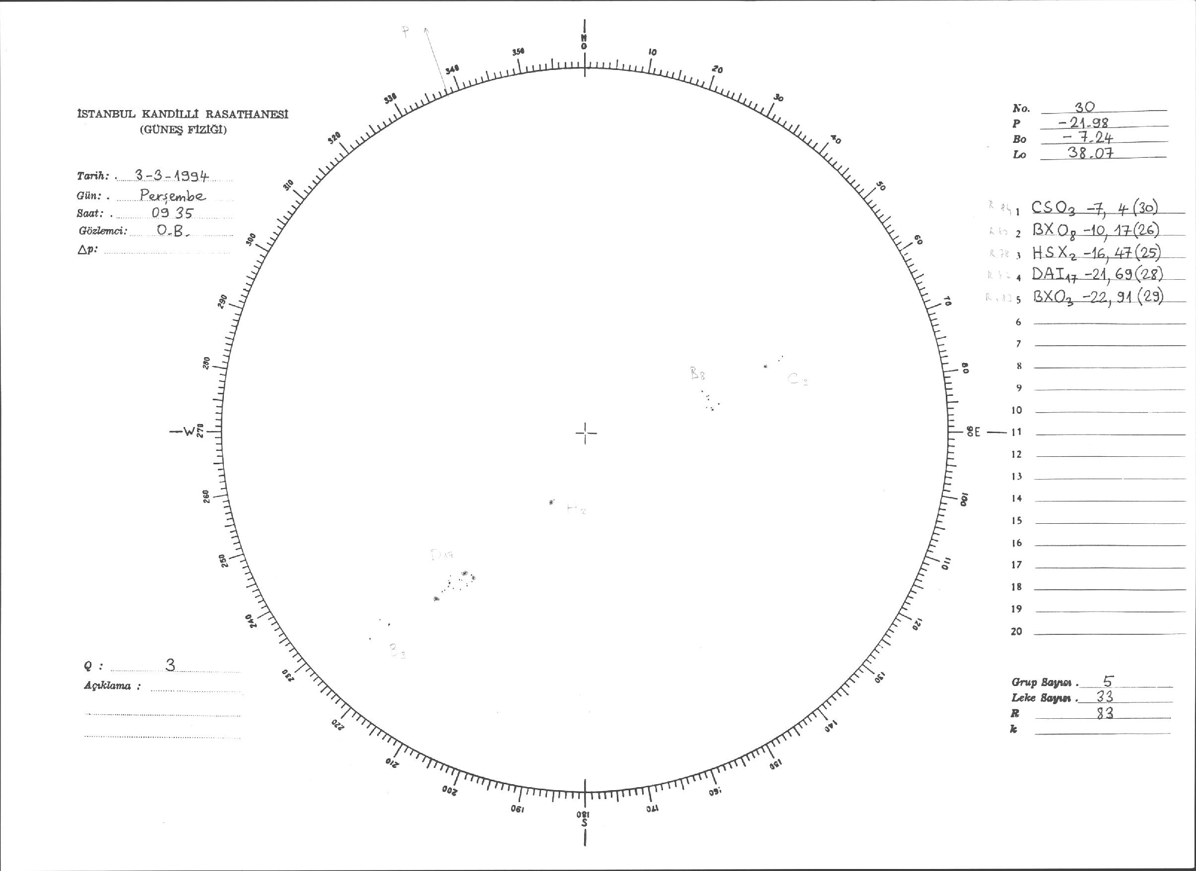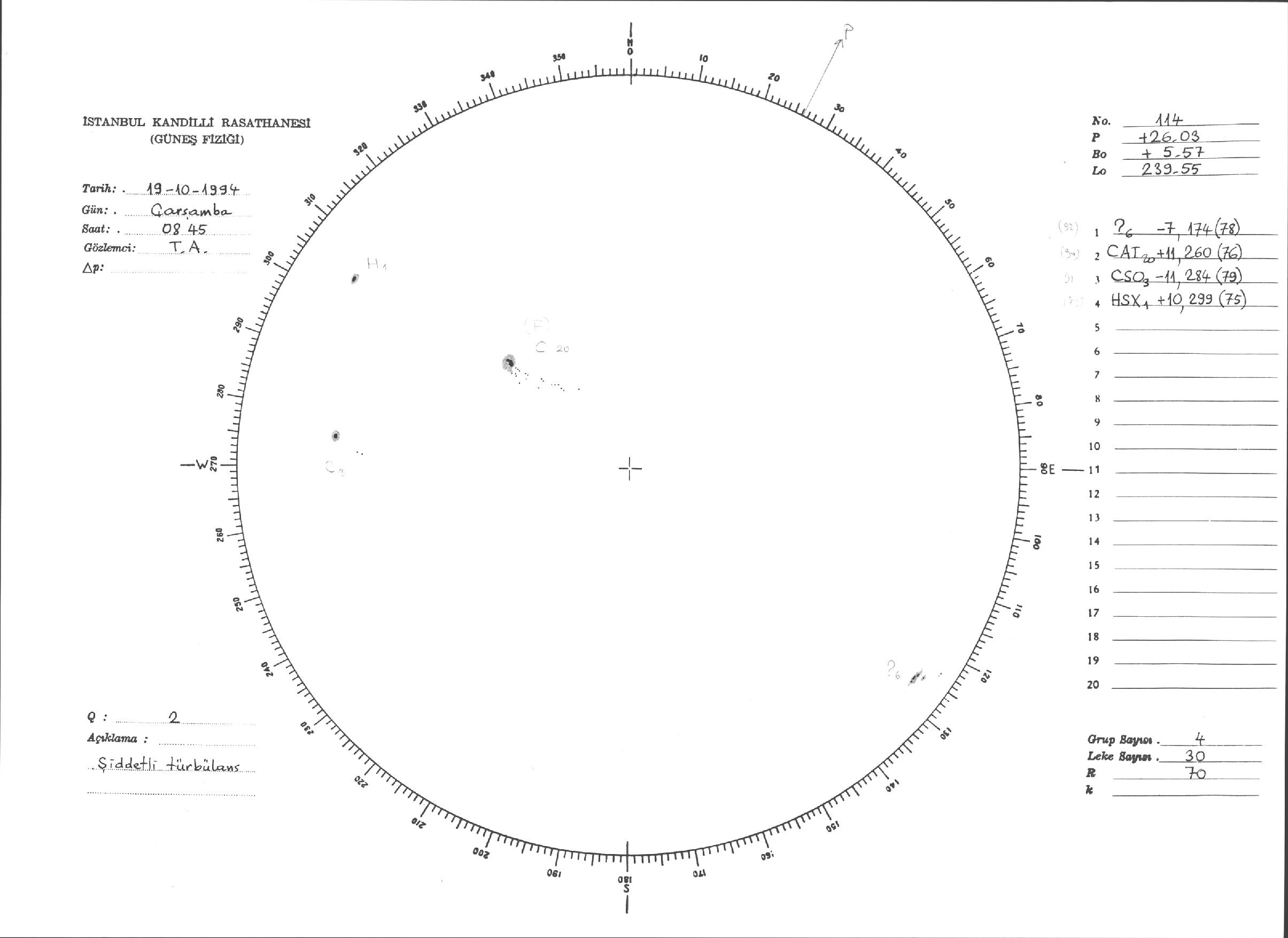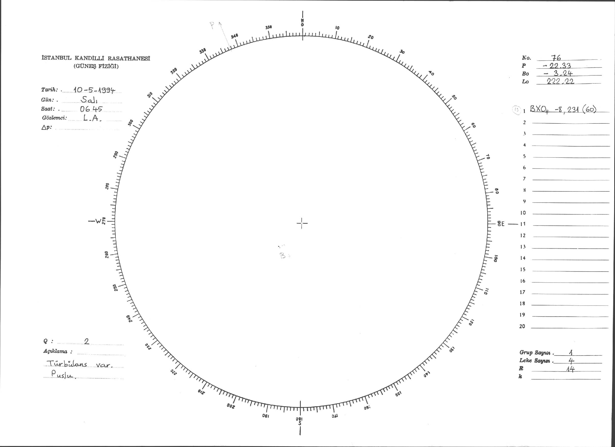 Güneş Lekesi Çizimleri / Kandilli Sunspot Drawings