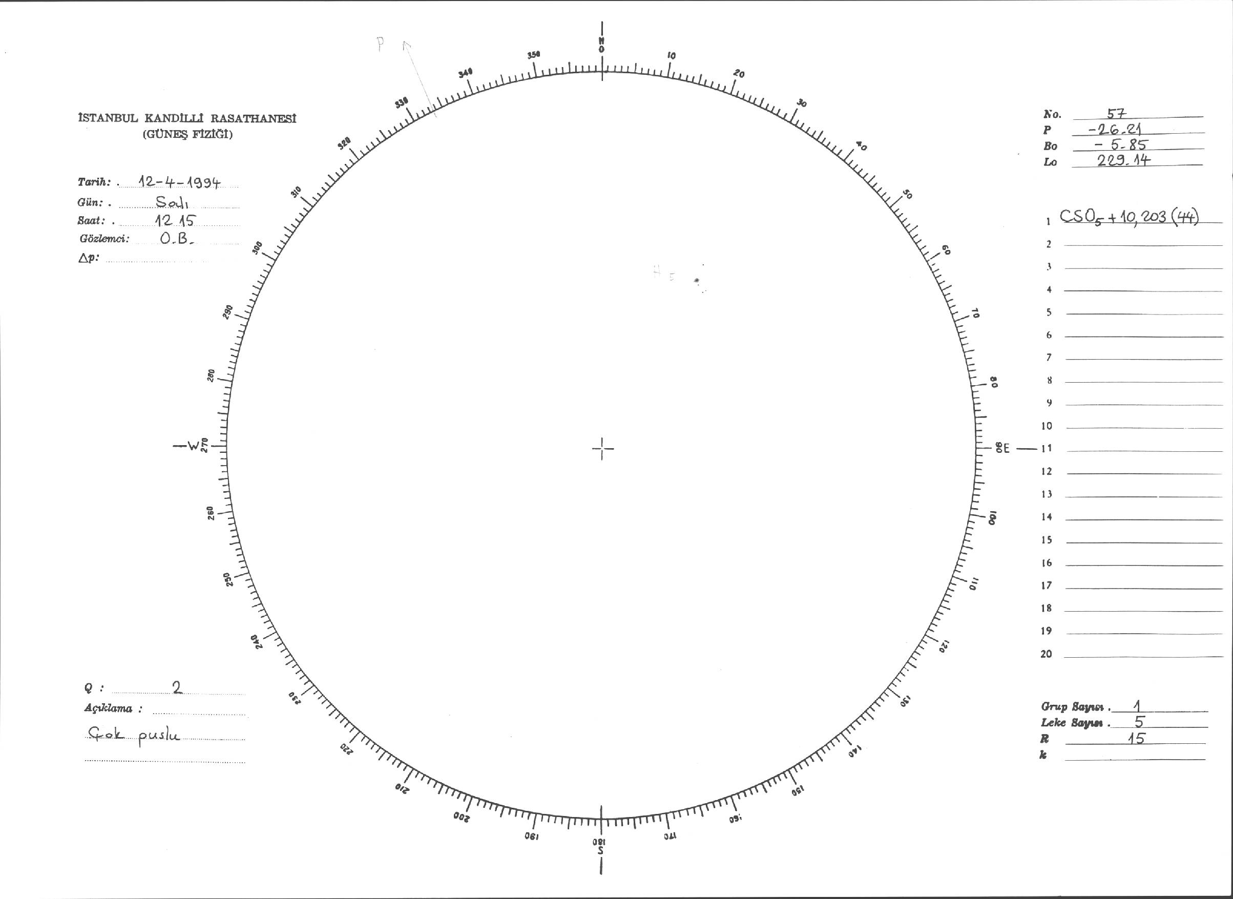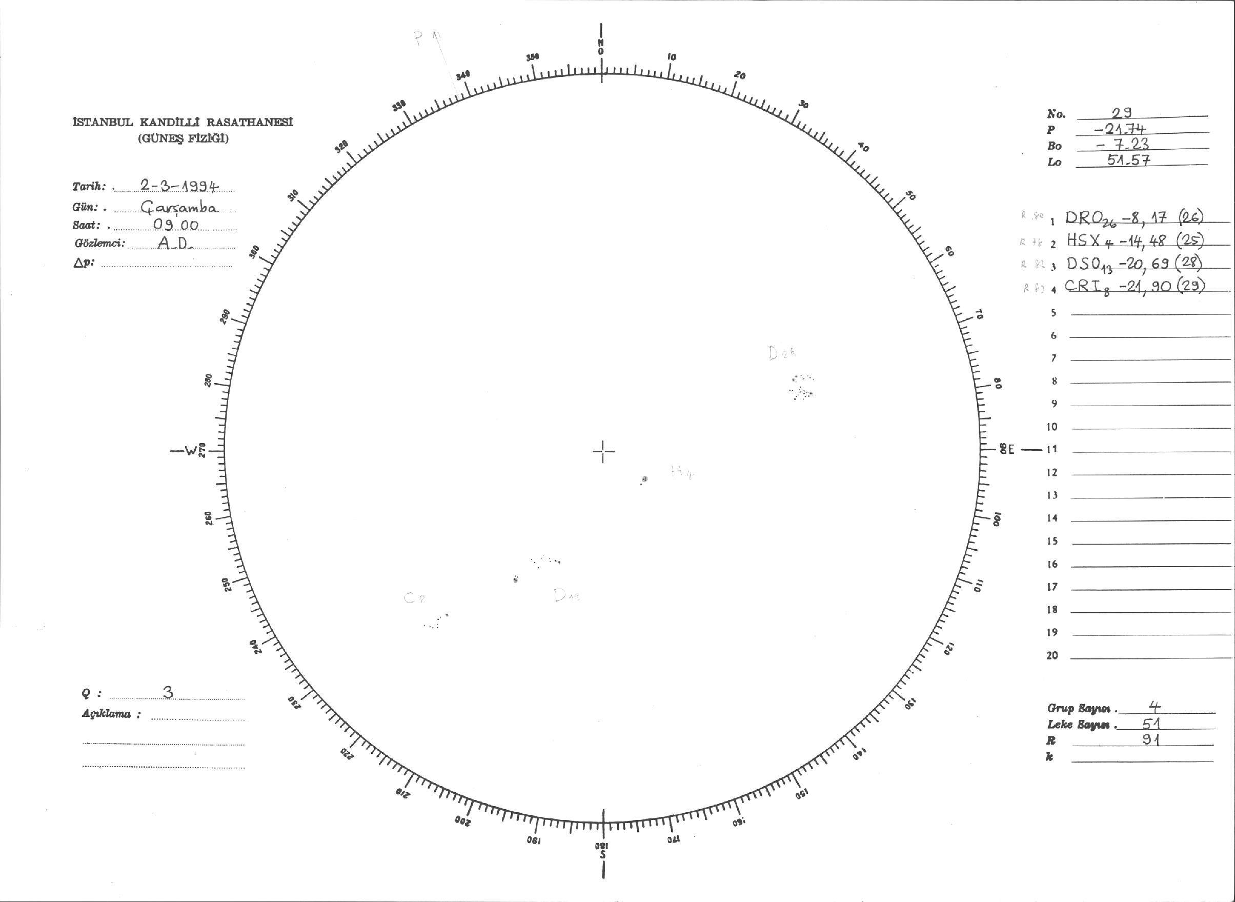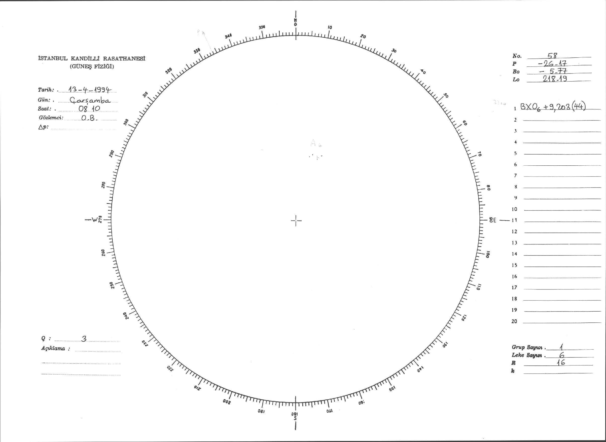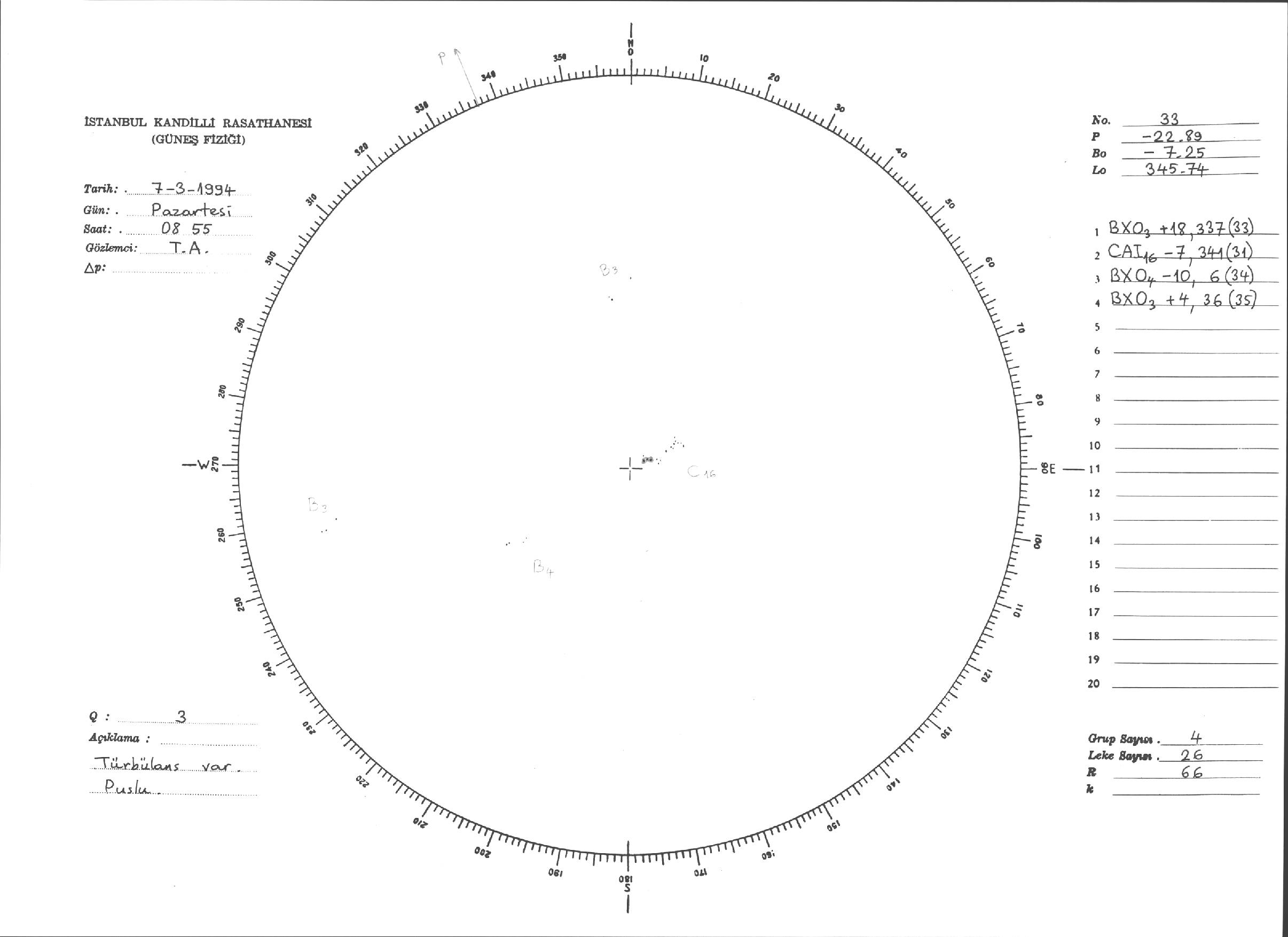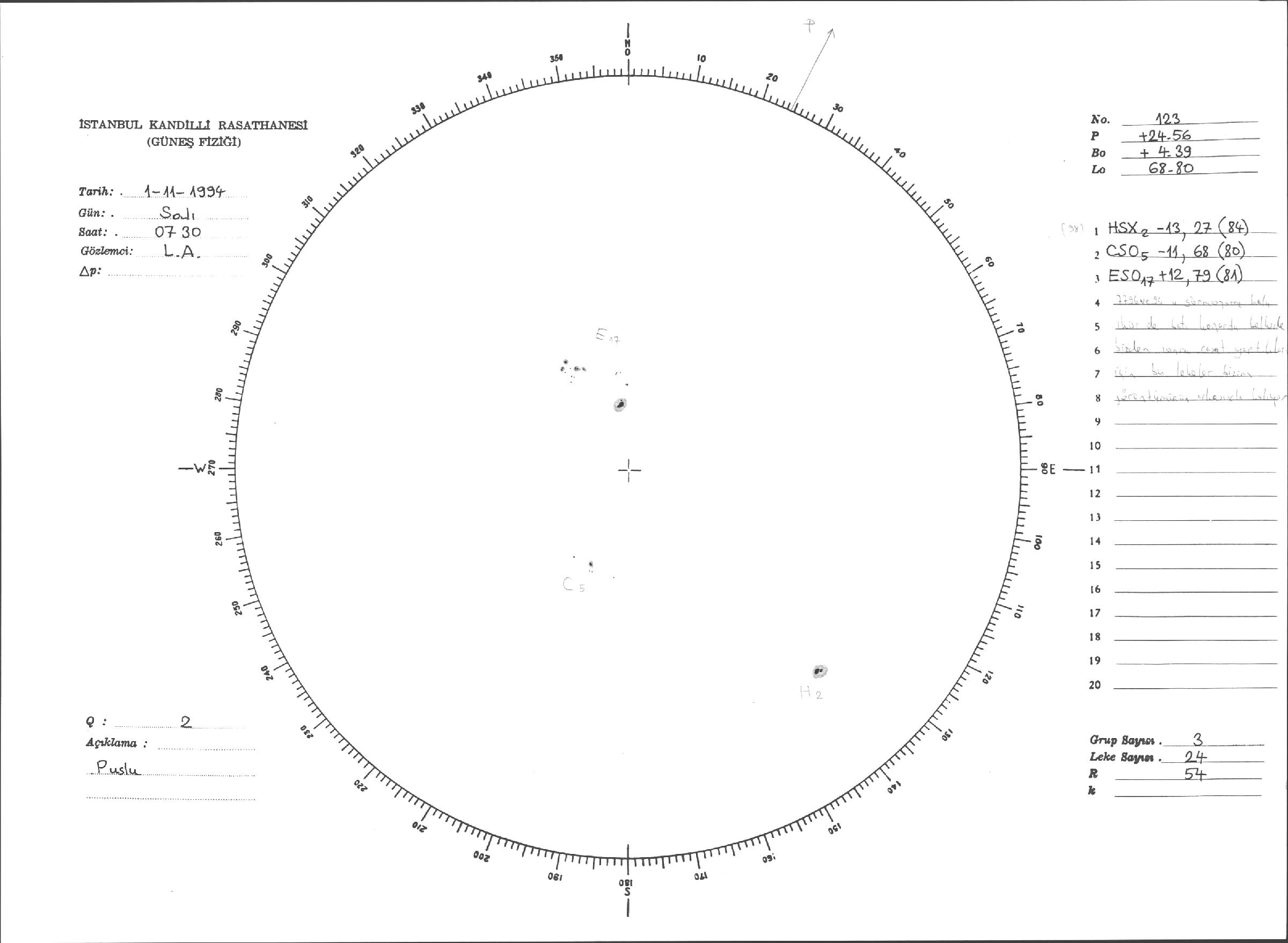 Güneş Lekesi Çizimleri / Kandilli Sunspot Drawings
