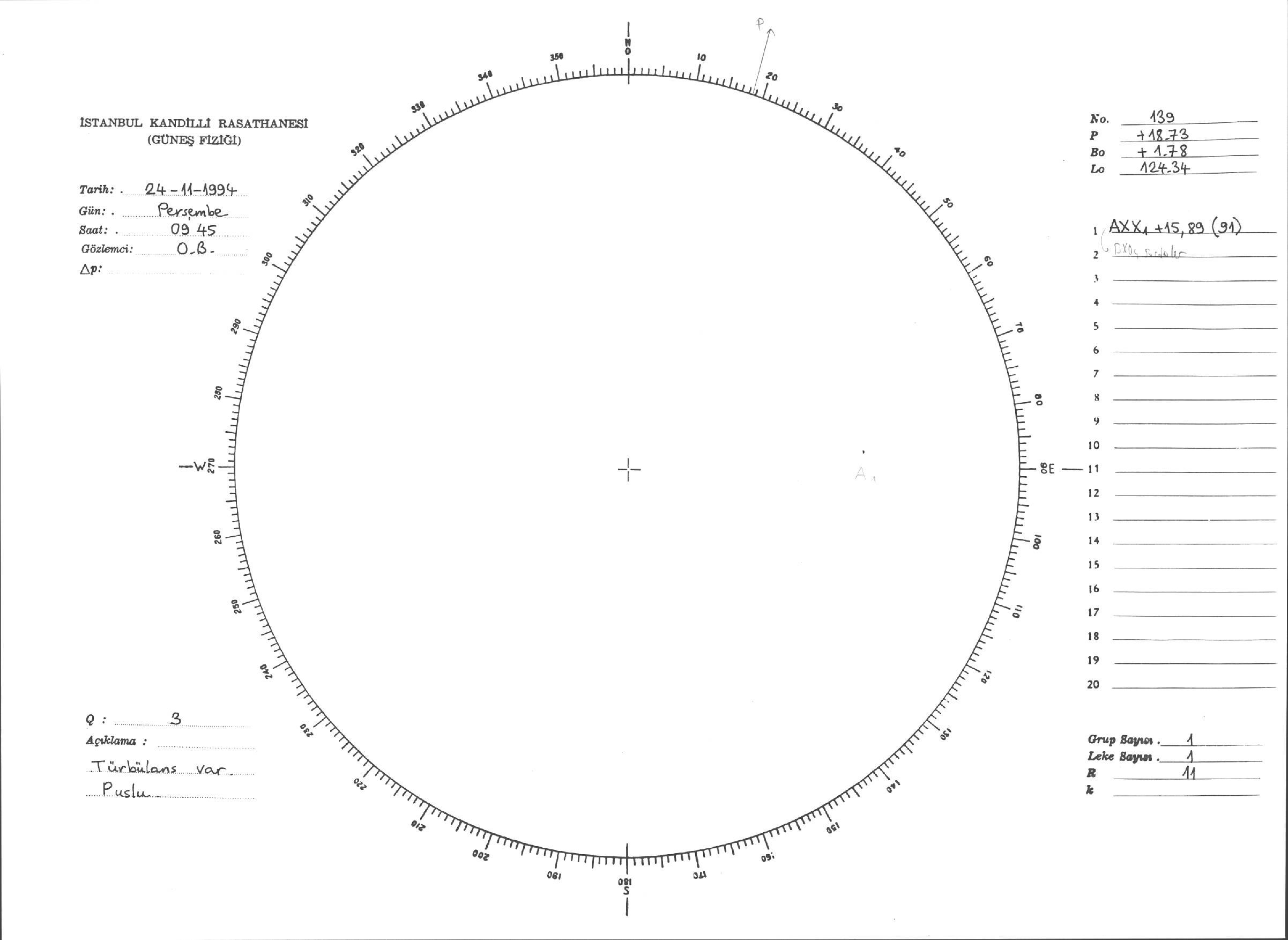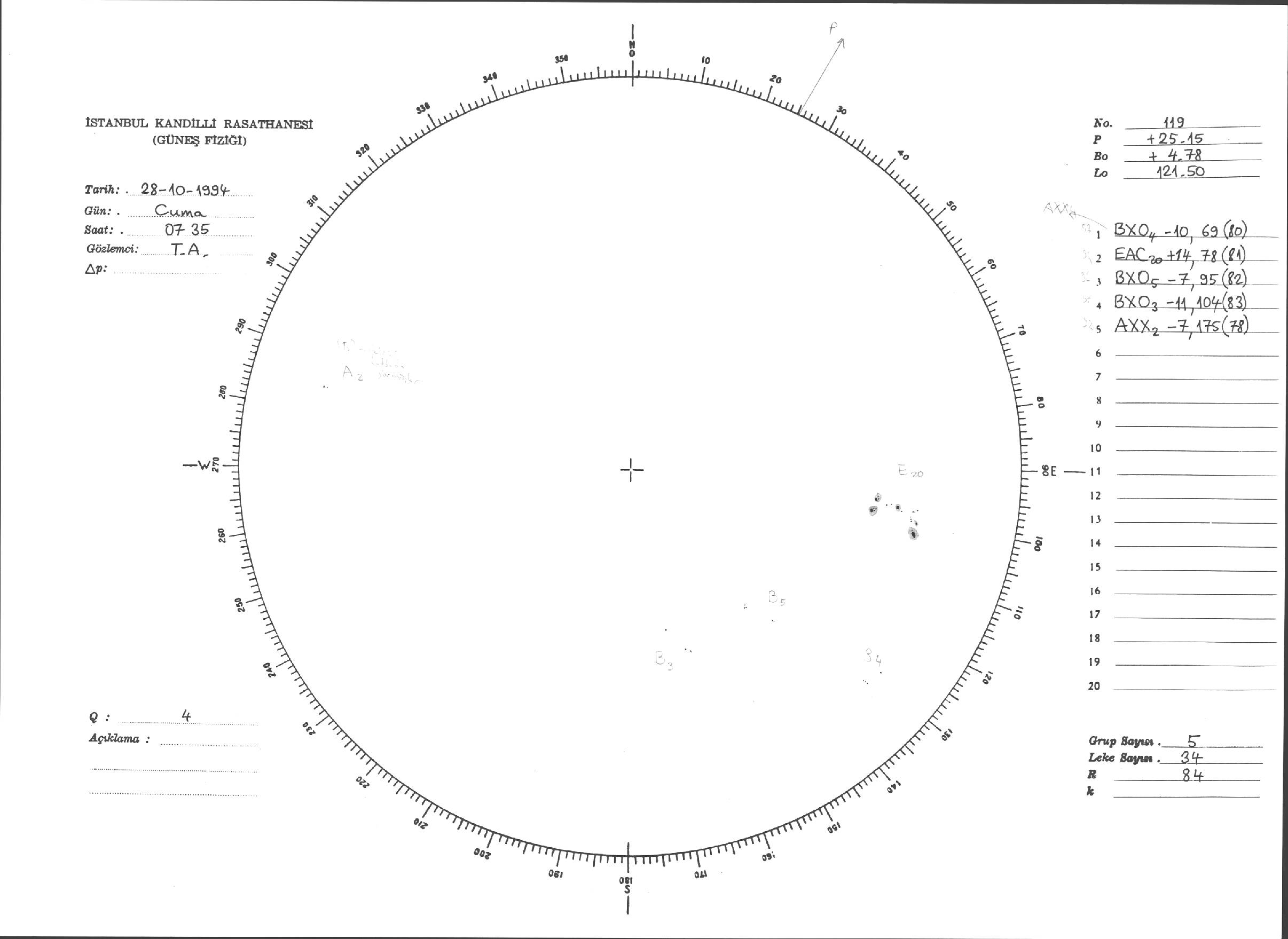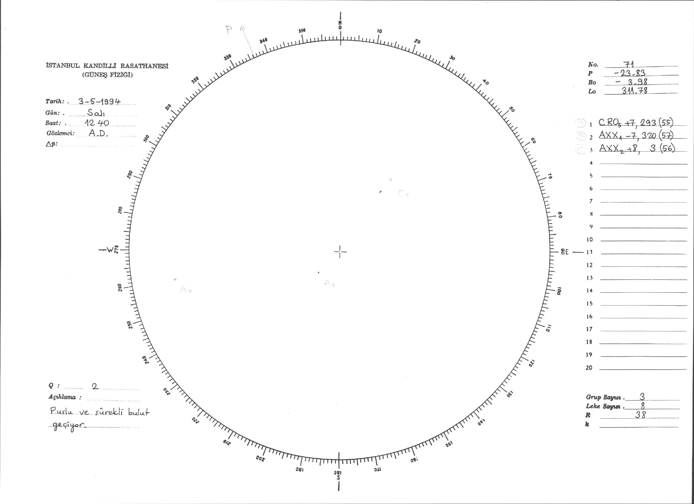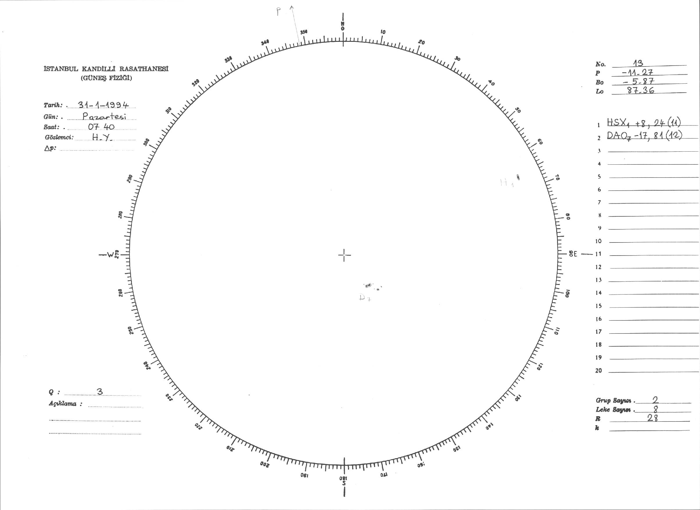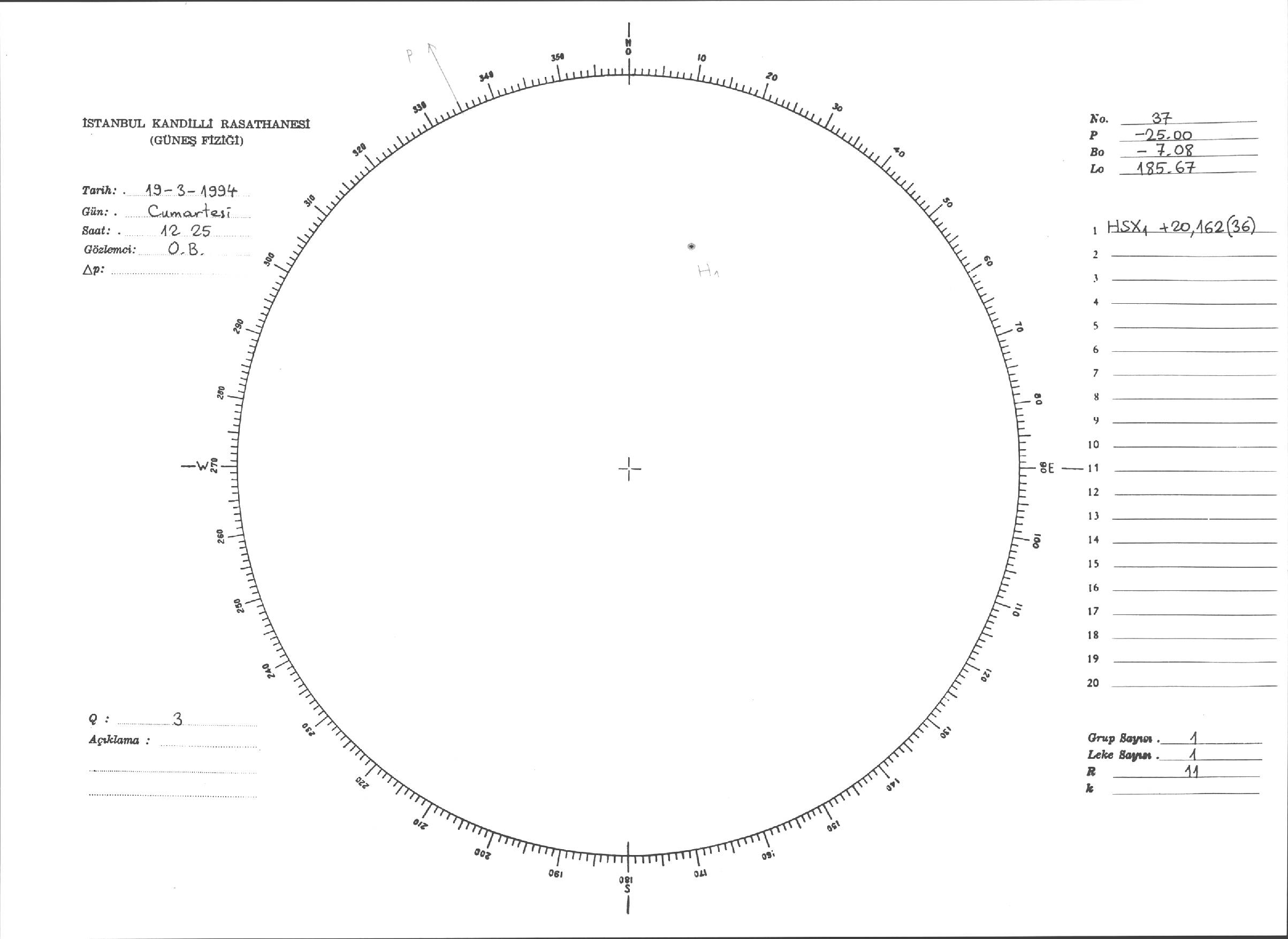 Güneş Lekesi Çizimleri / Kandilli Sunspot Drawings