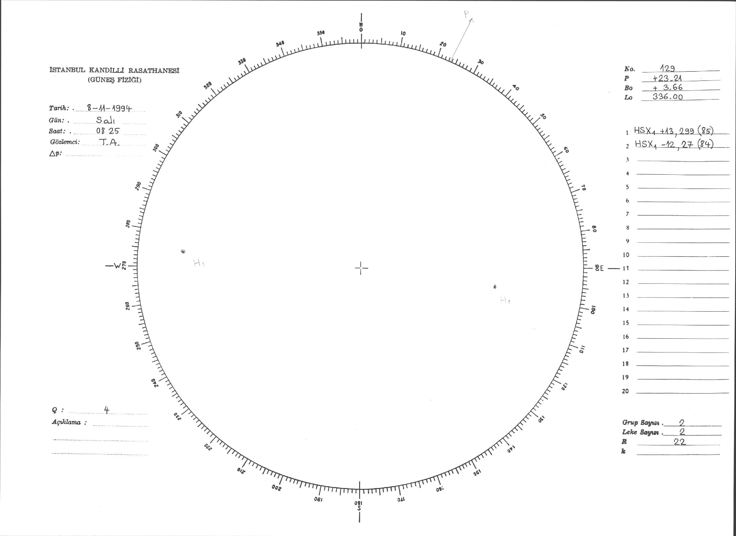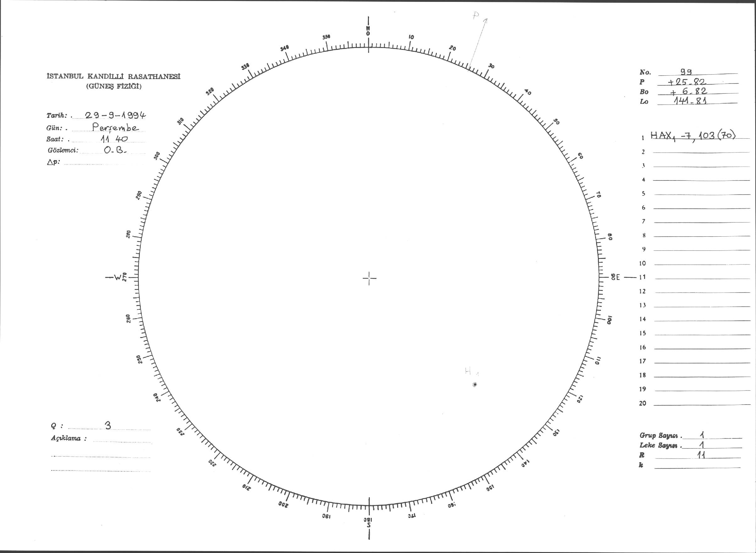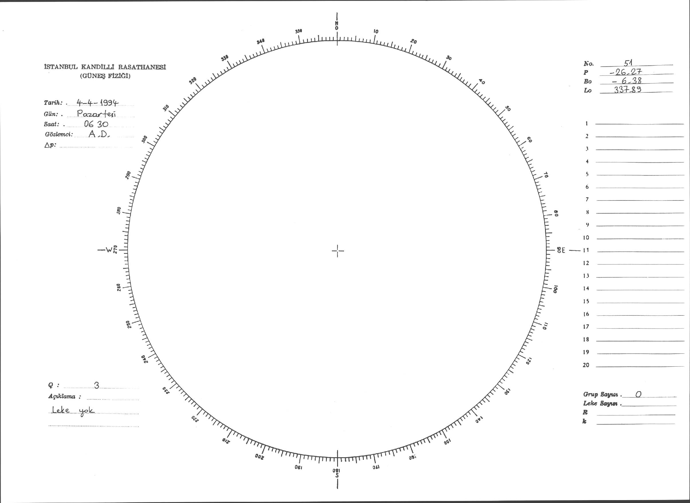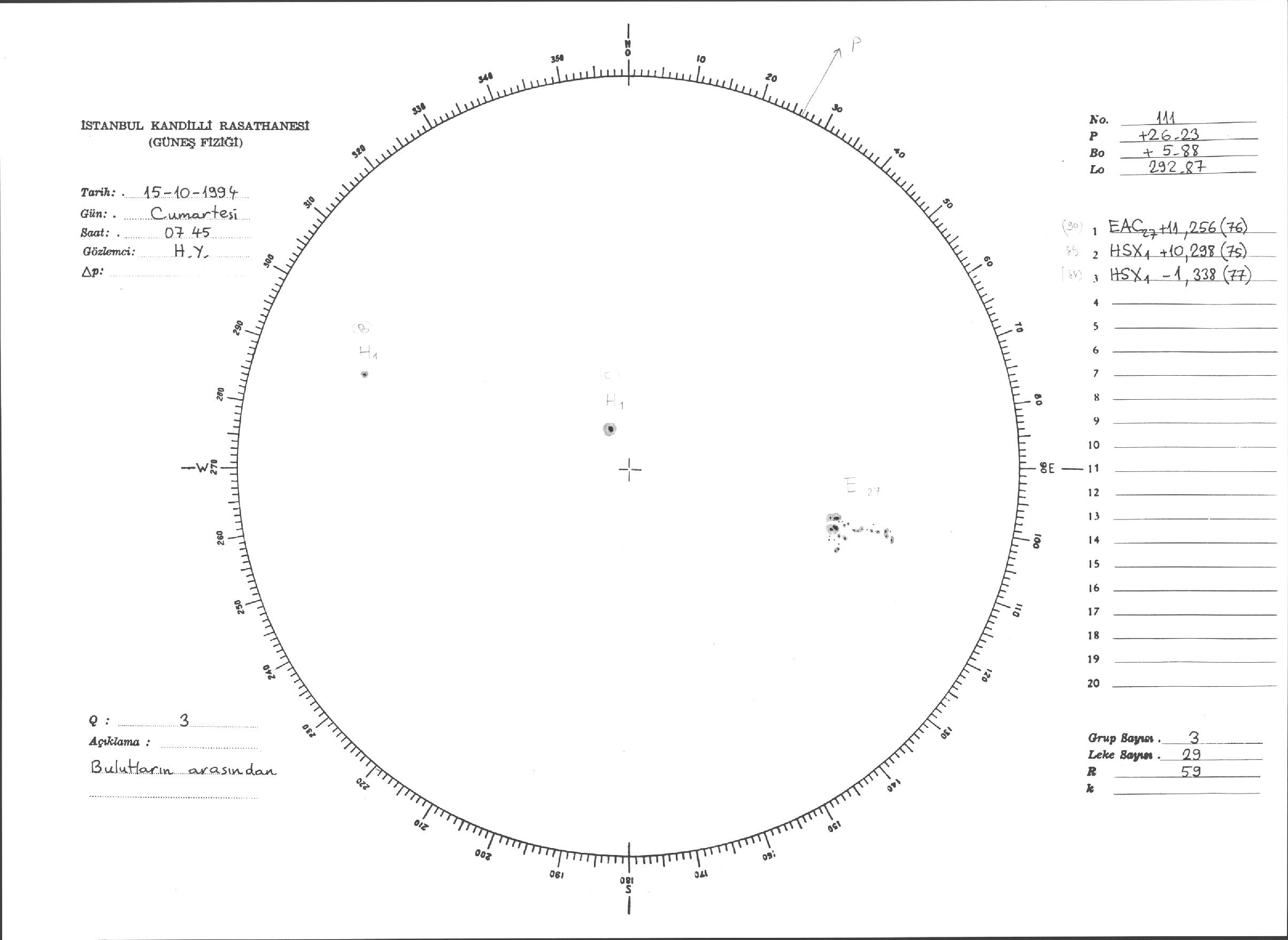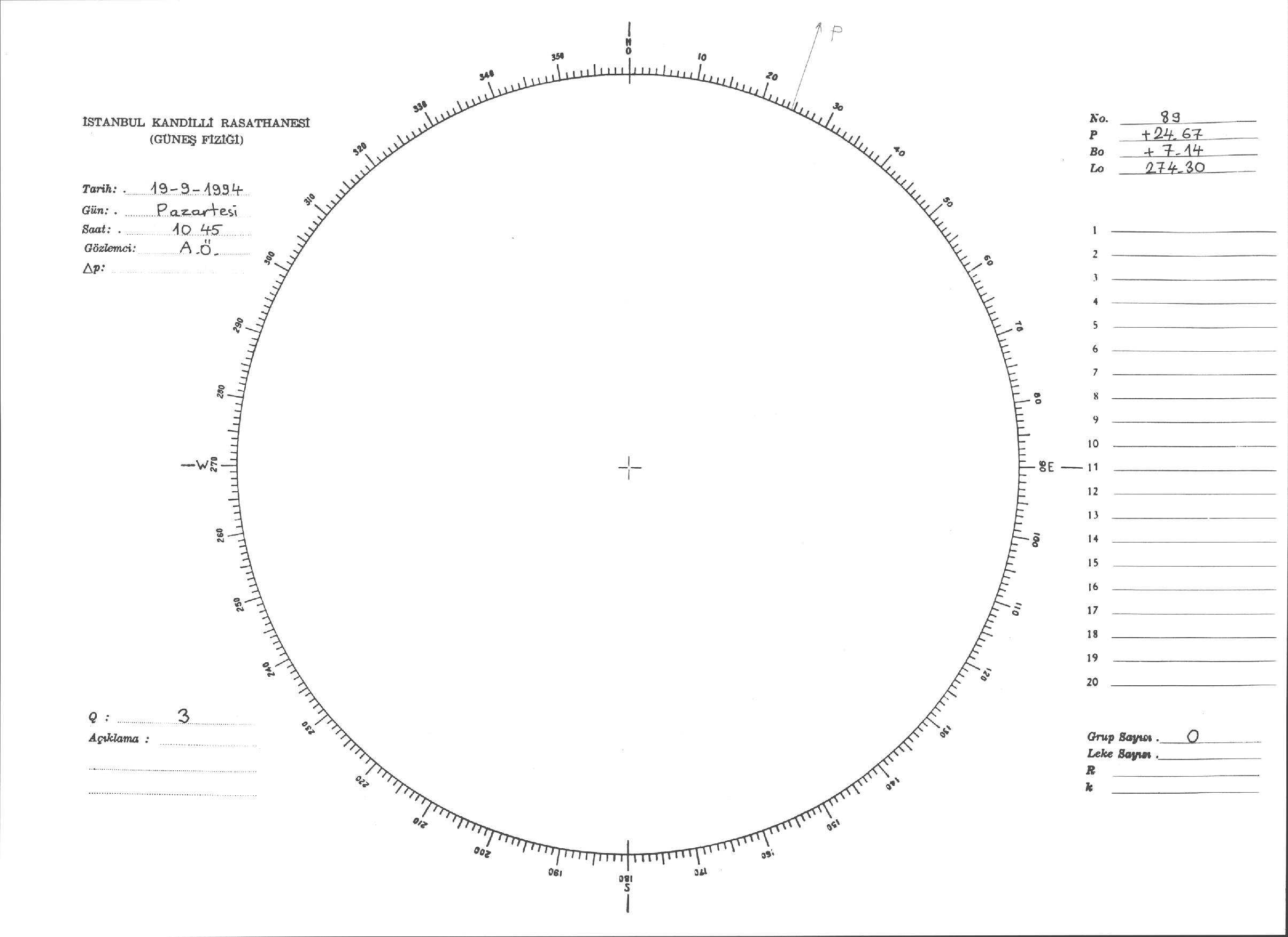 Güneş Lekesi Çizimleri / Kandilli Sunspot Drawings