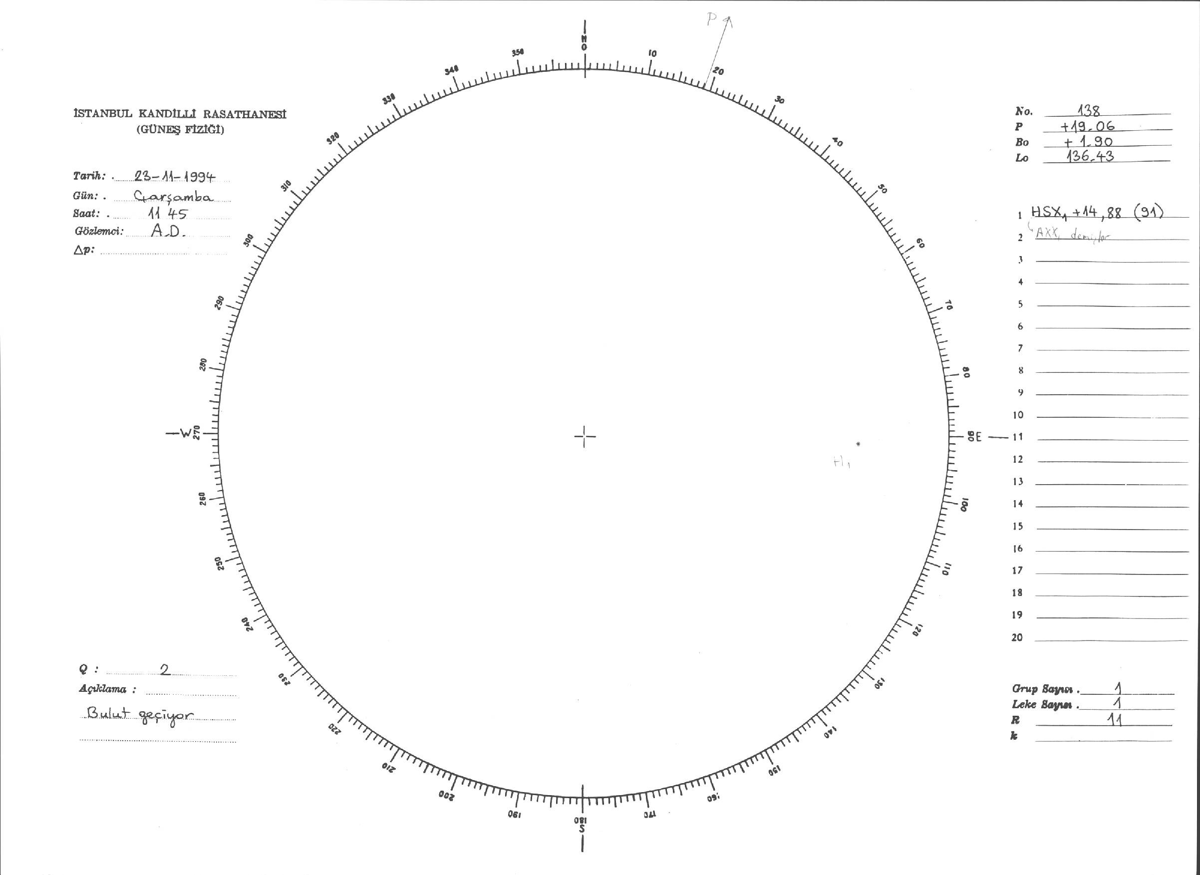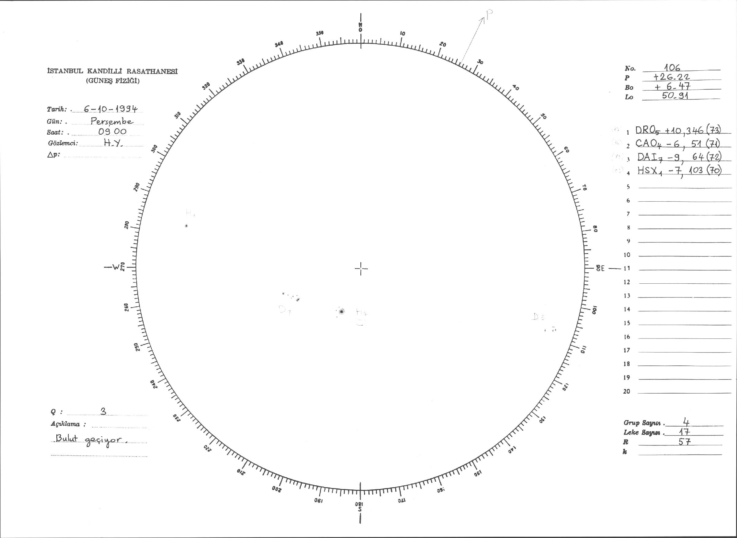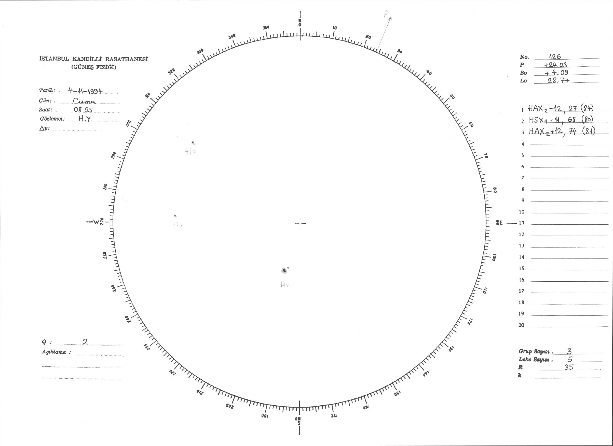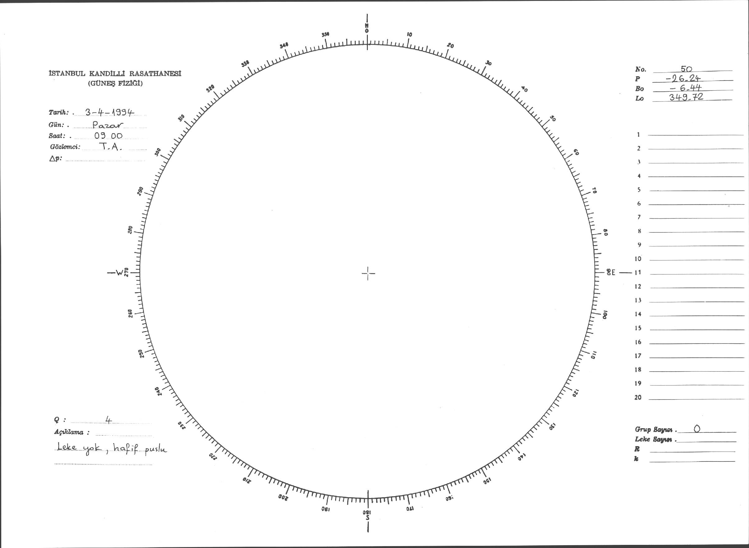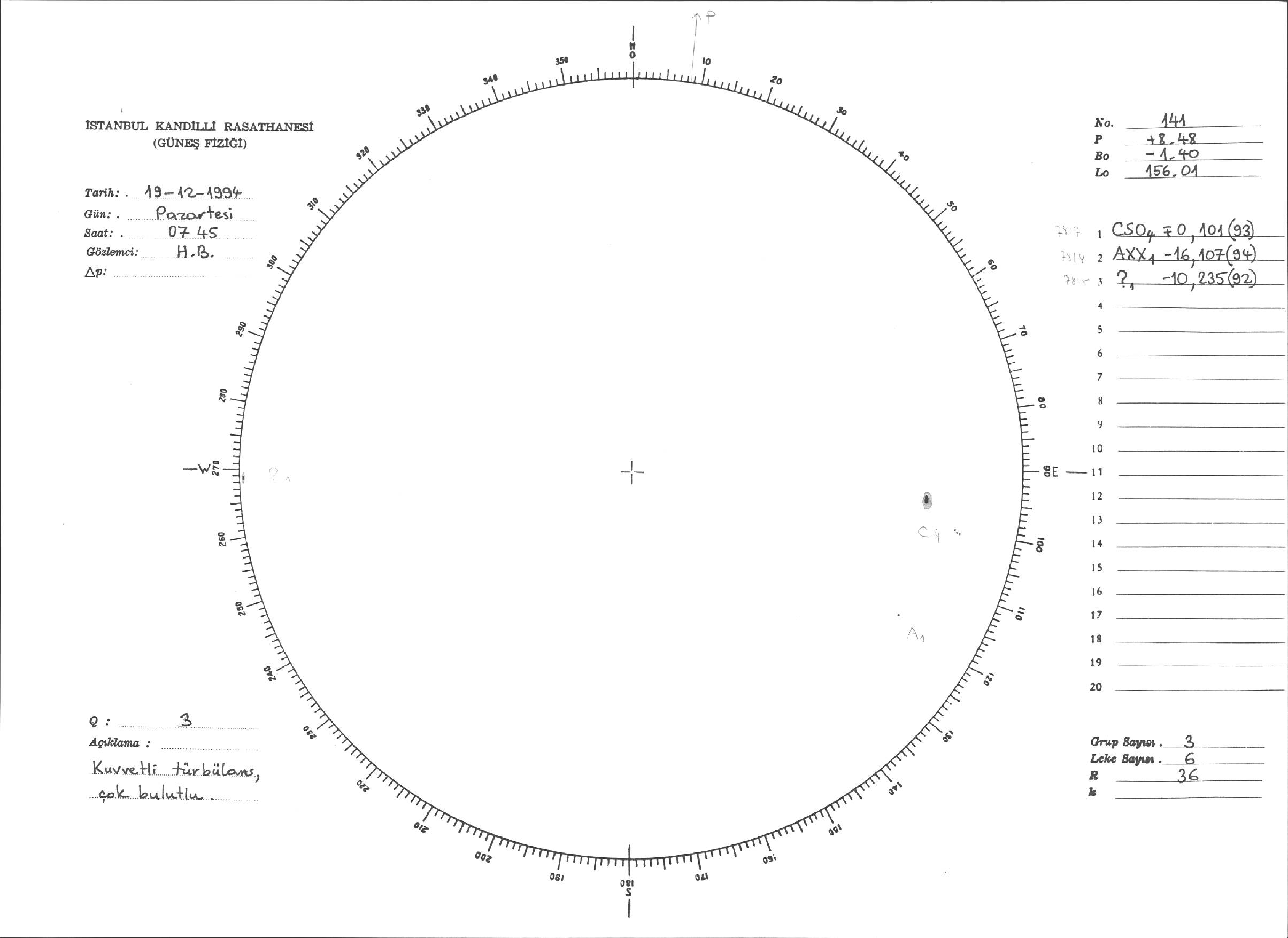 Güneş Lekesi Çizimleri / Kandilli Sunspot Drawings