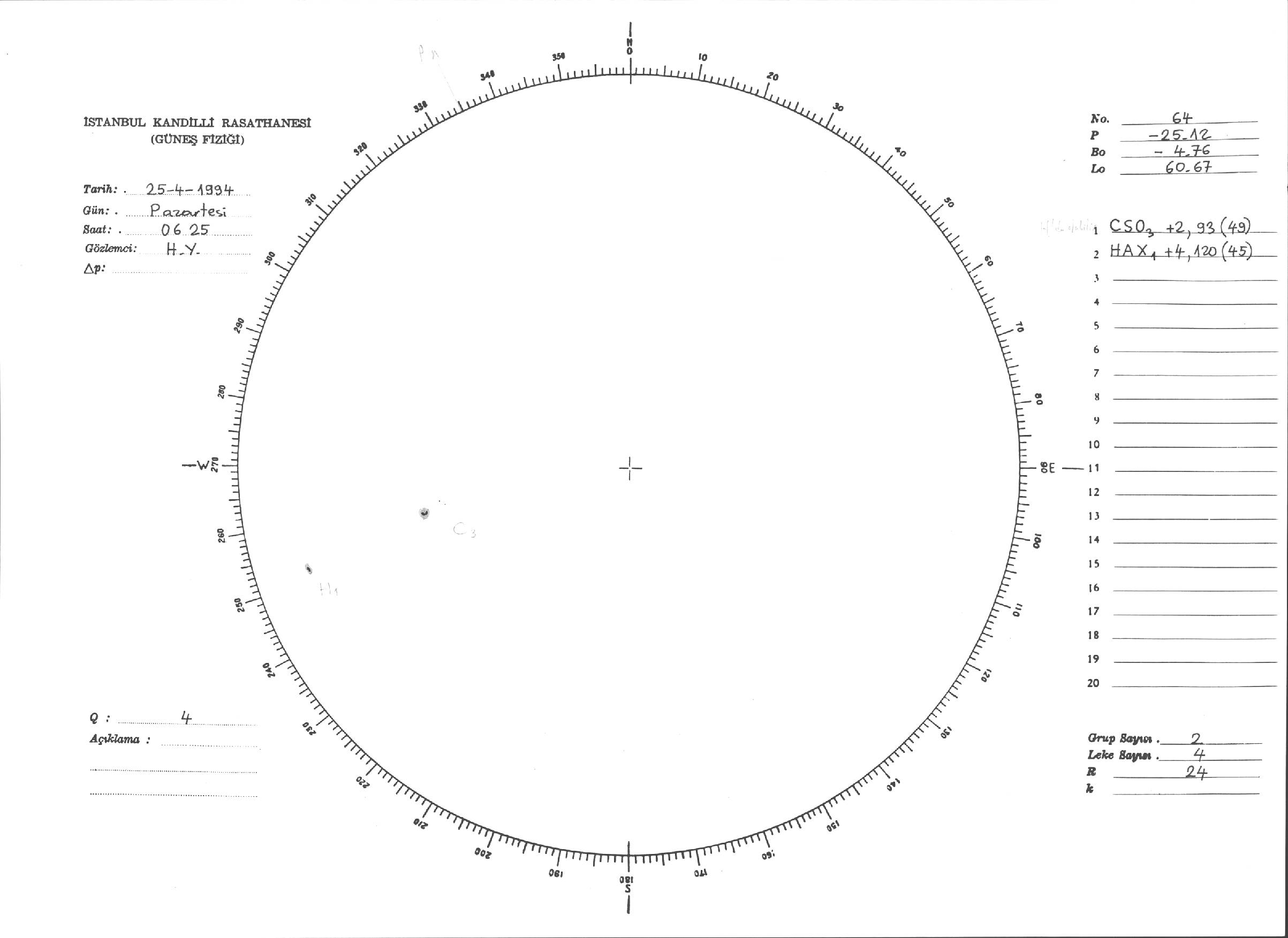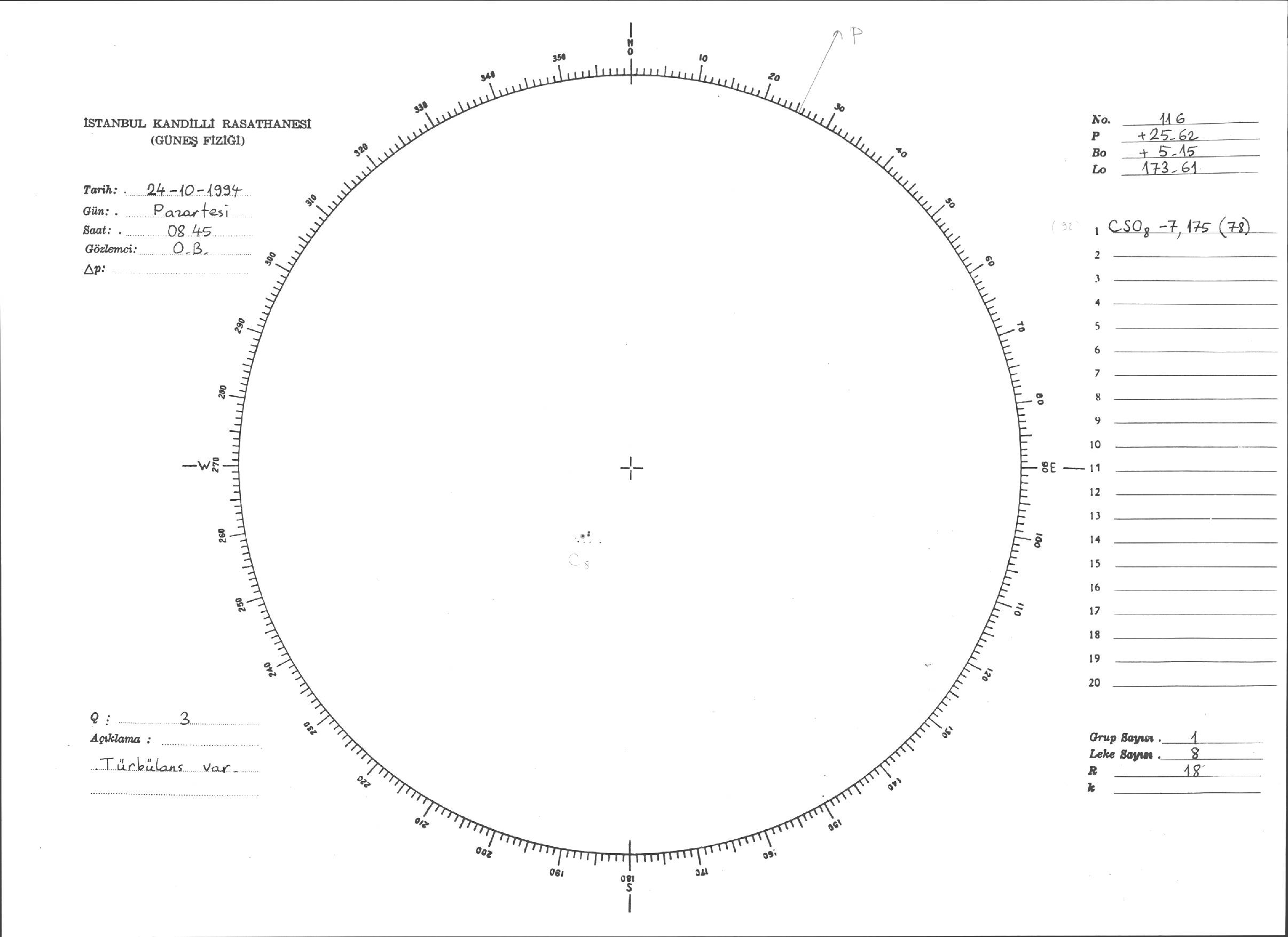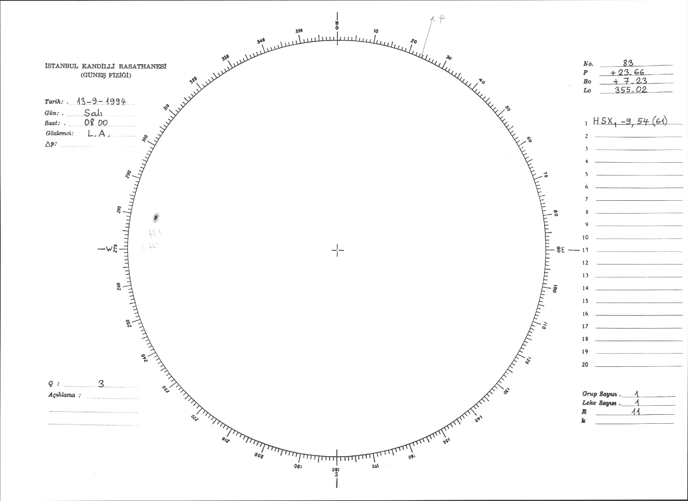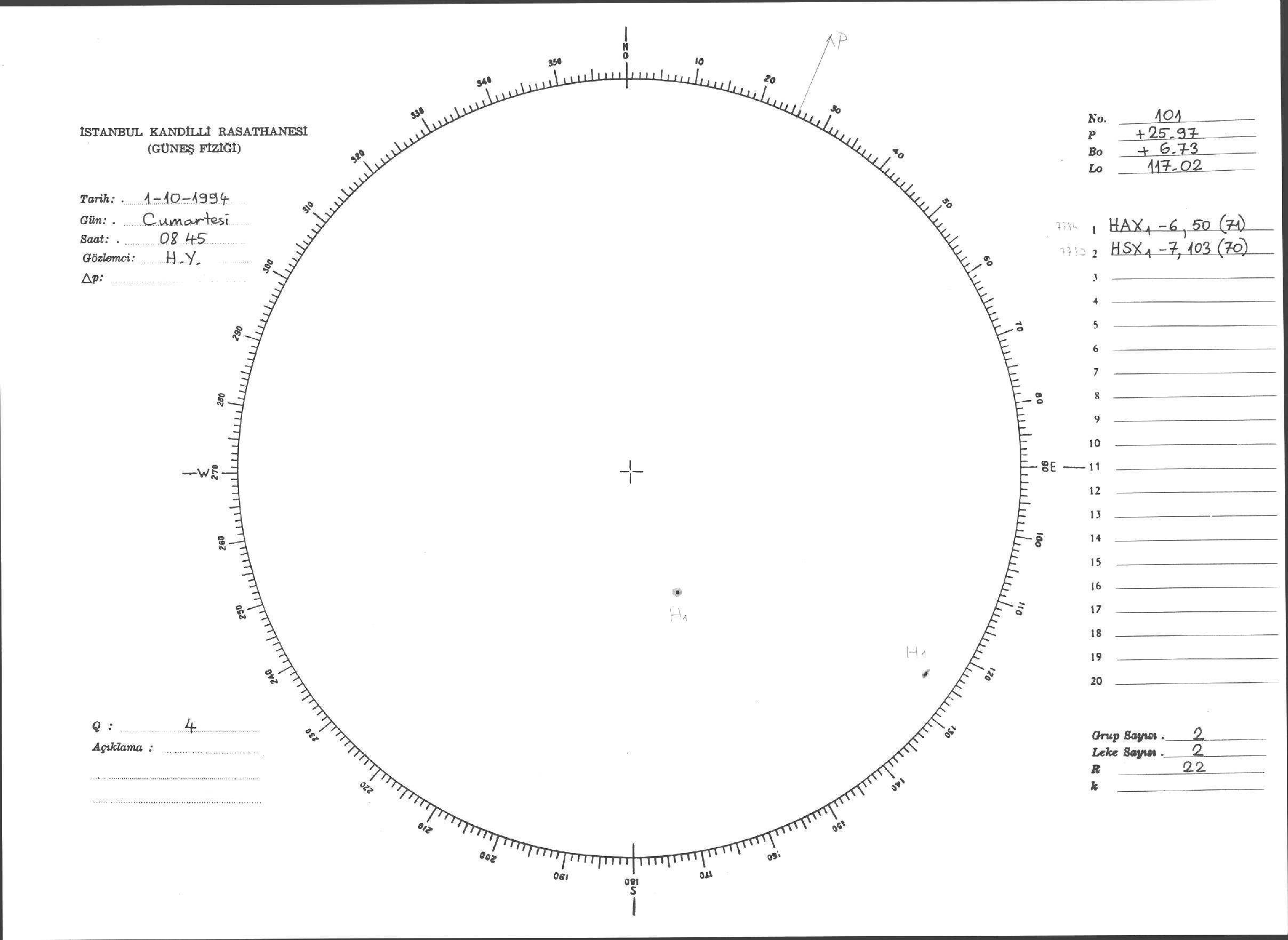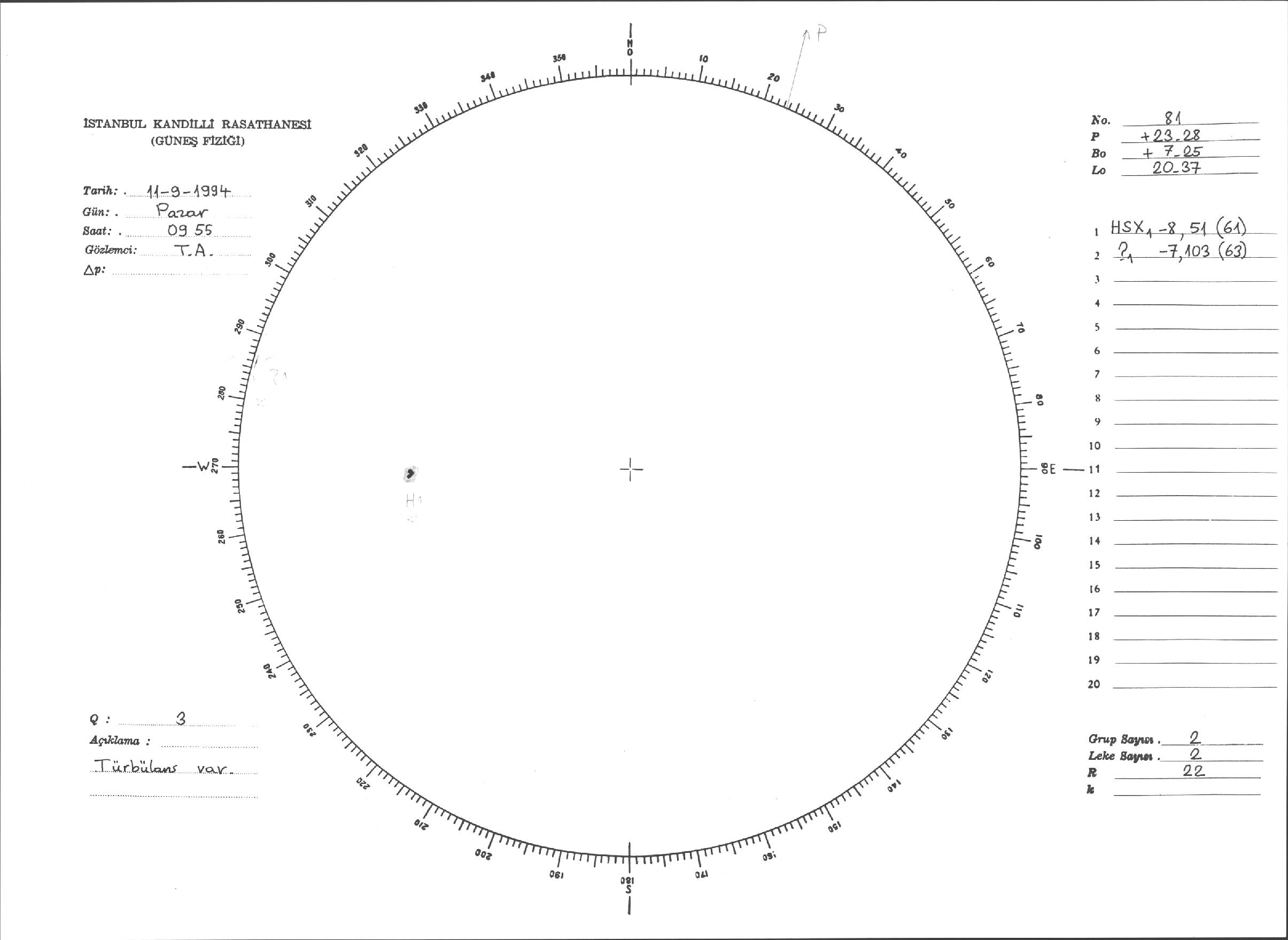 Güneş Lekesi Çizimleri / Kandilli Sunspot Drawings