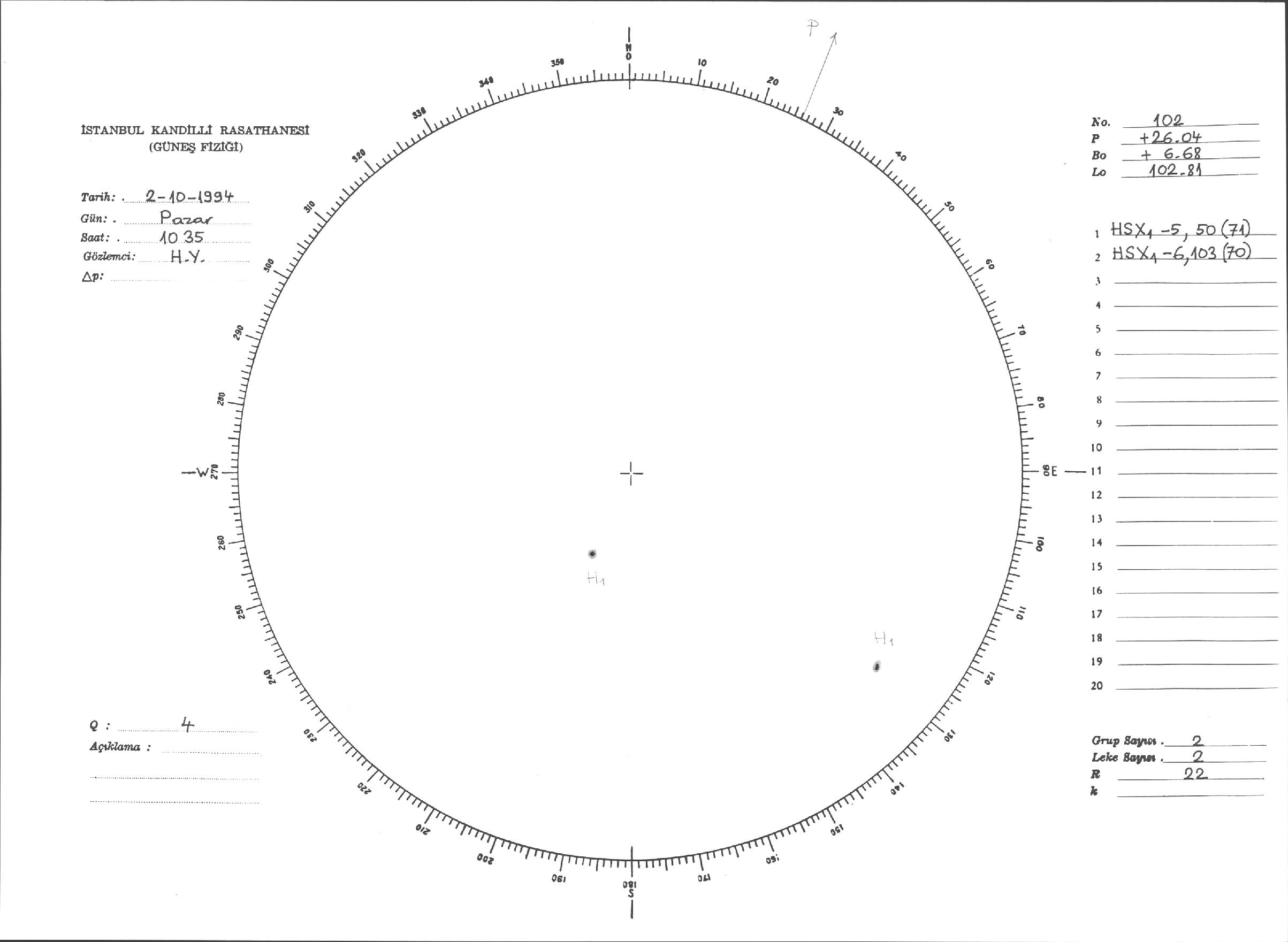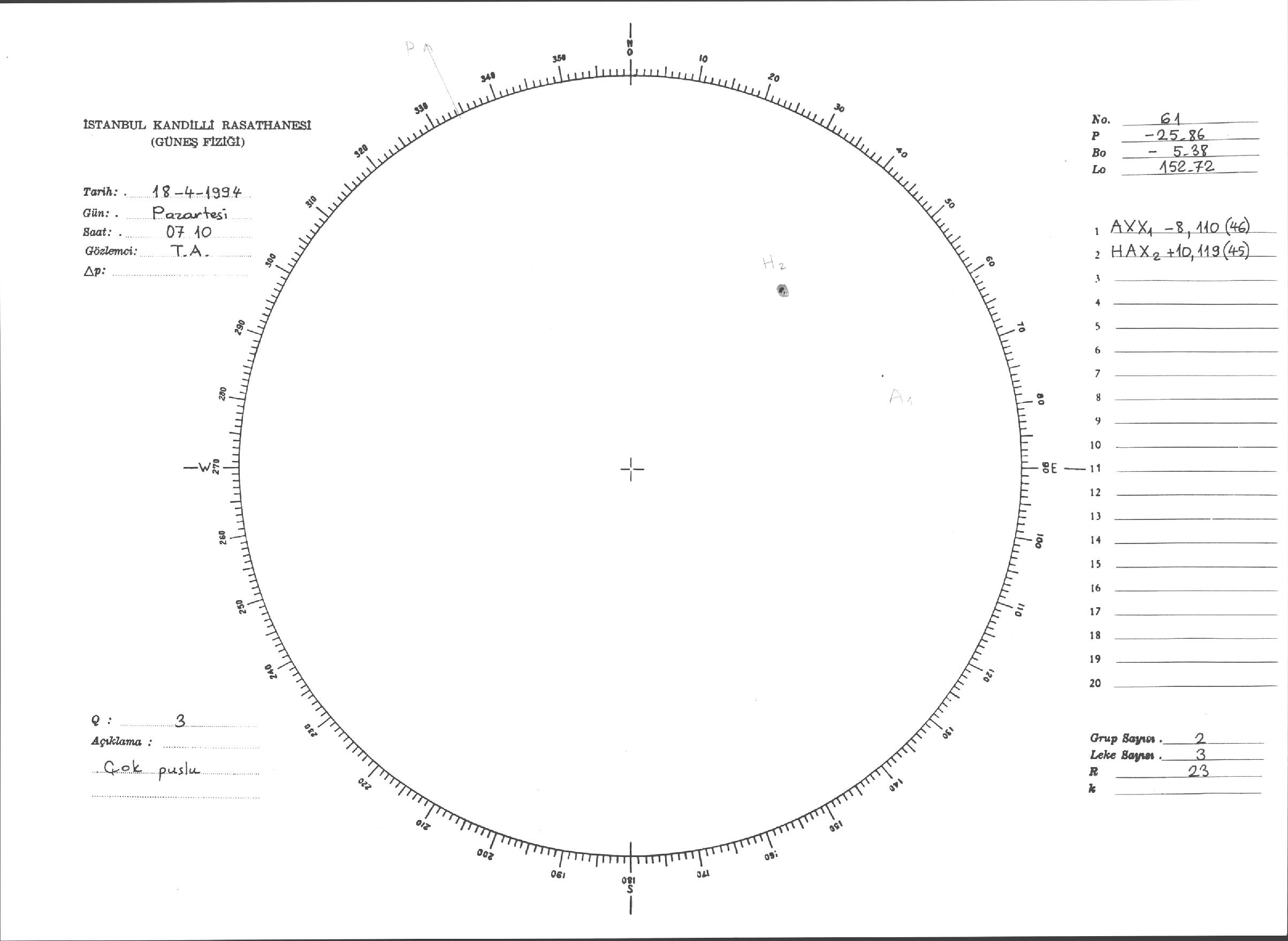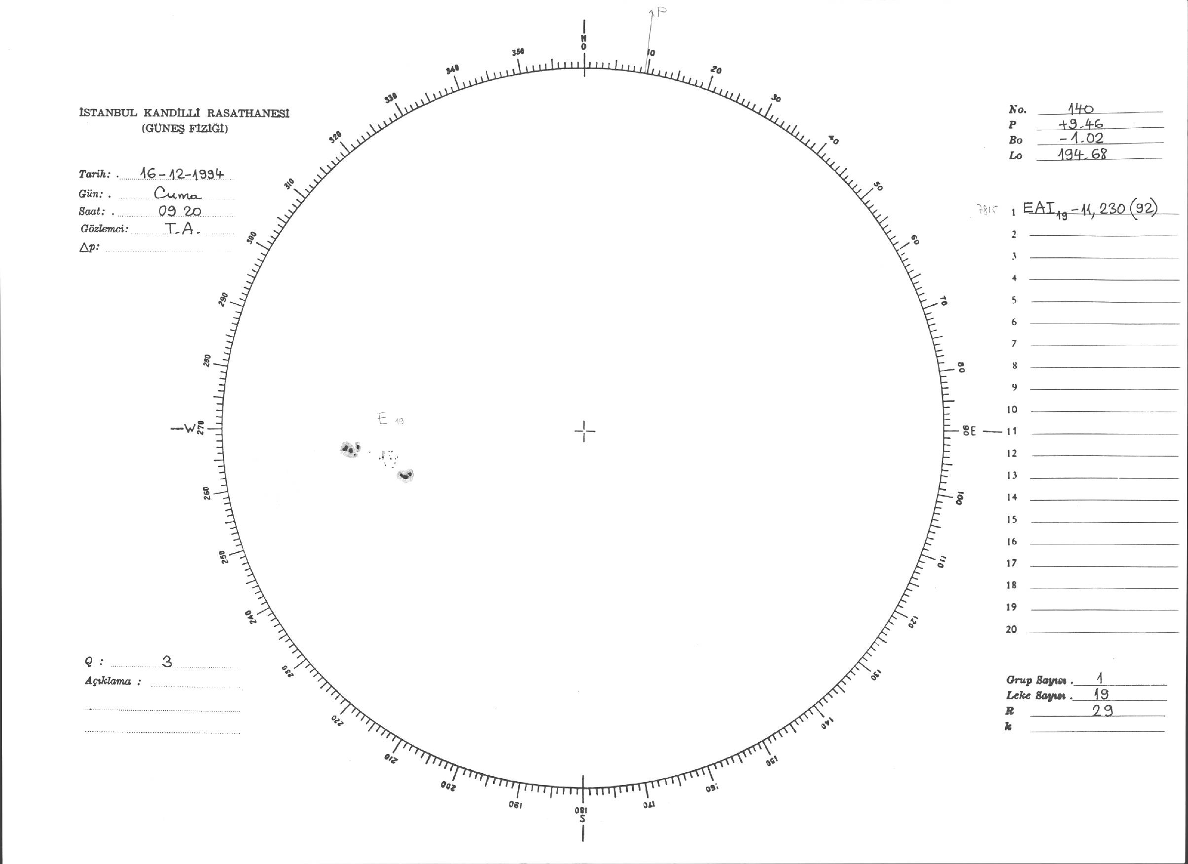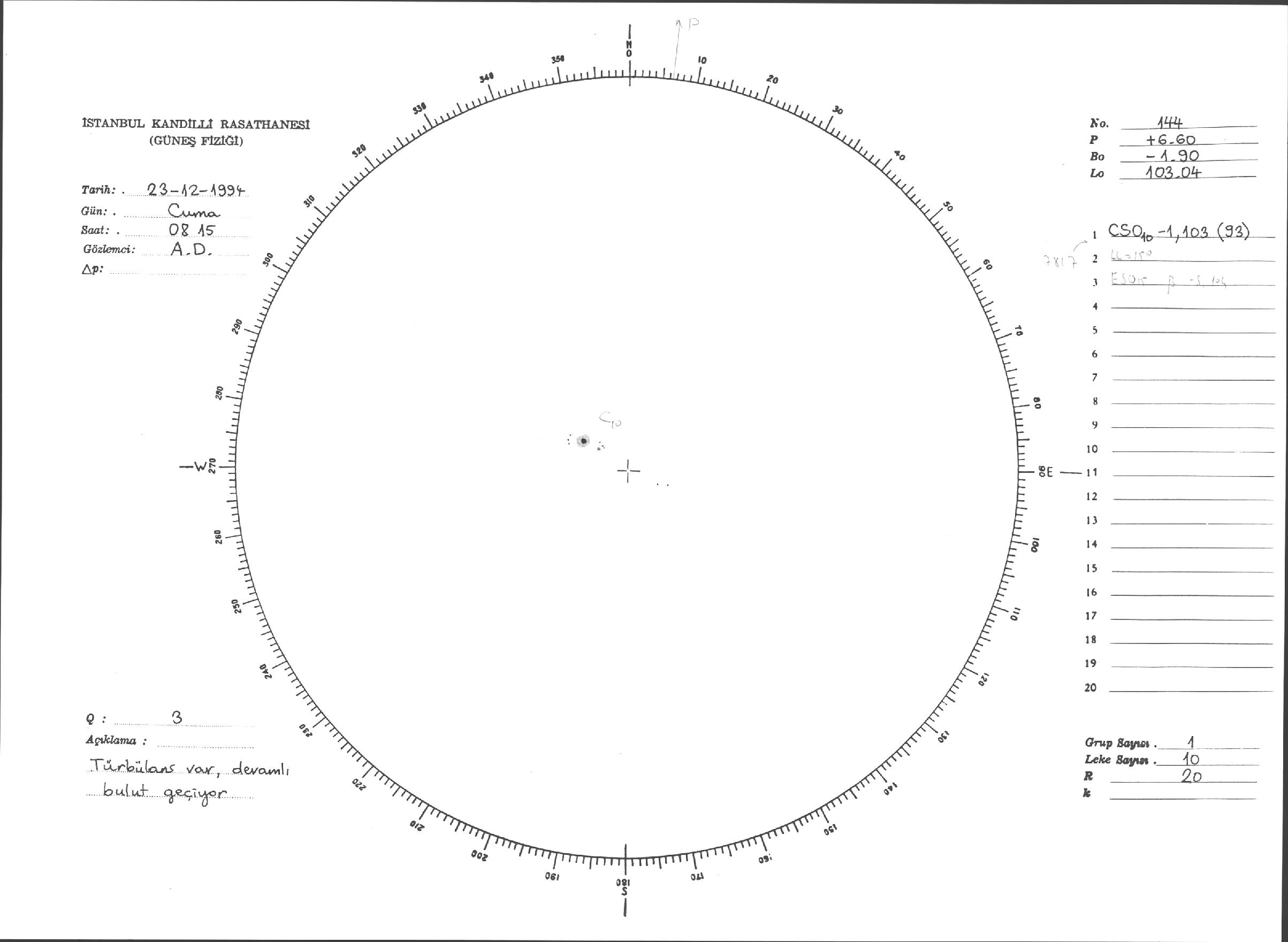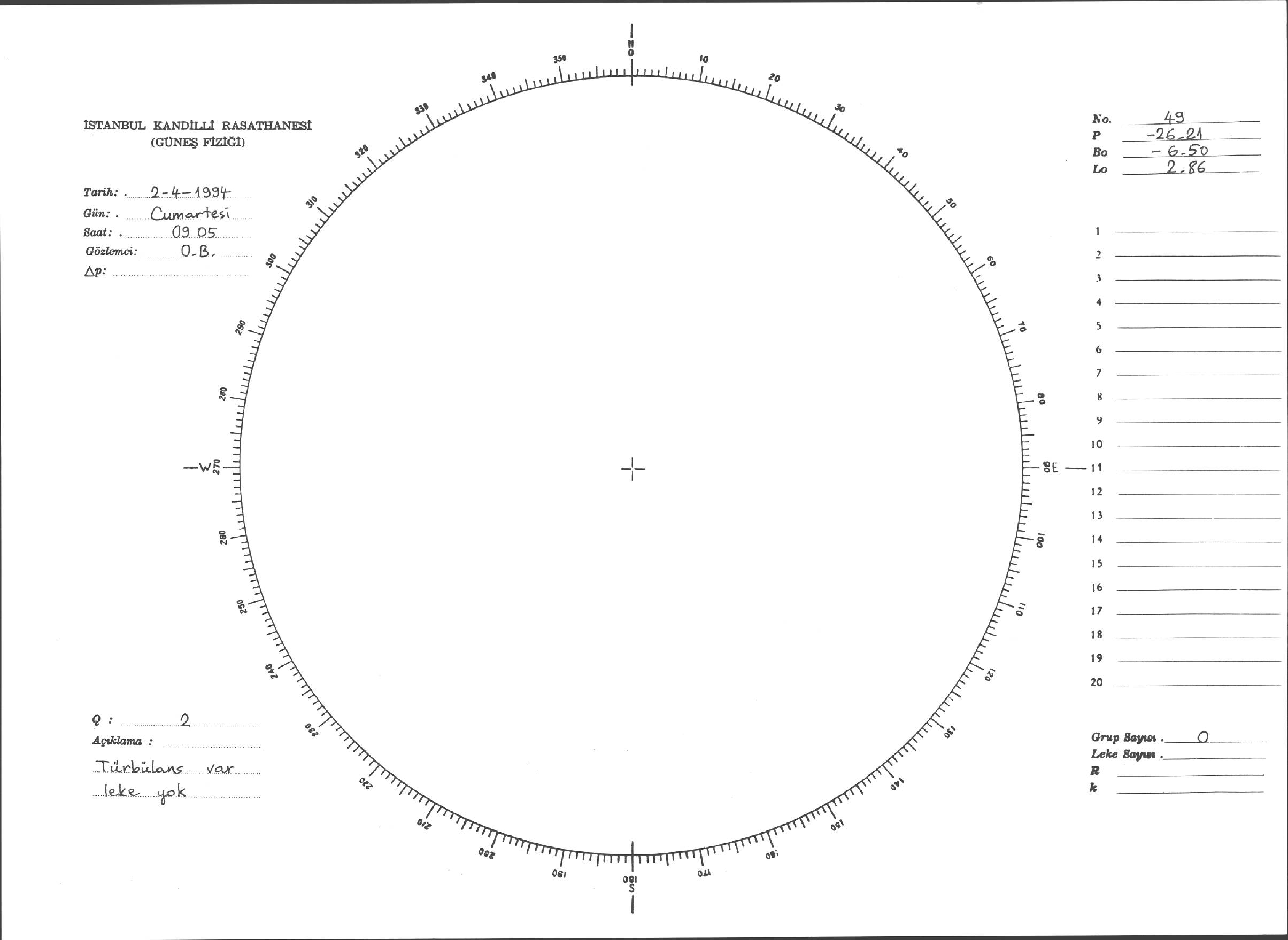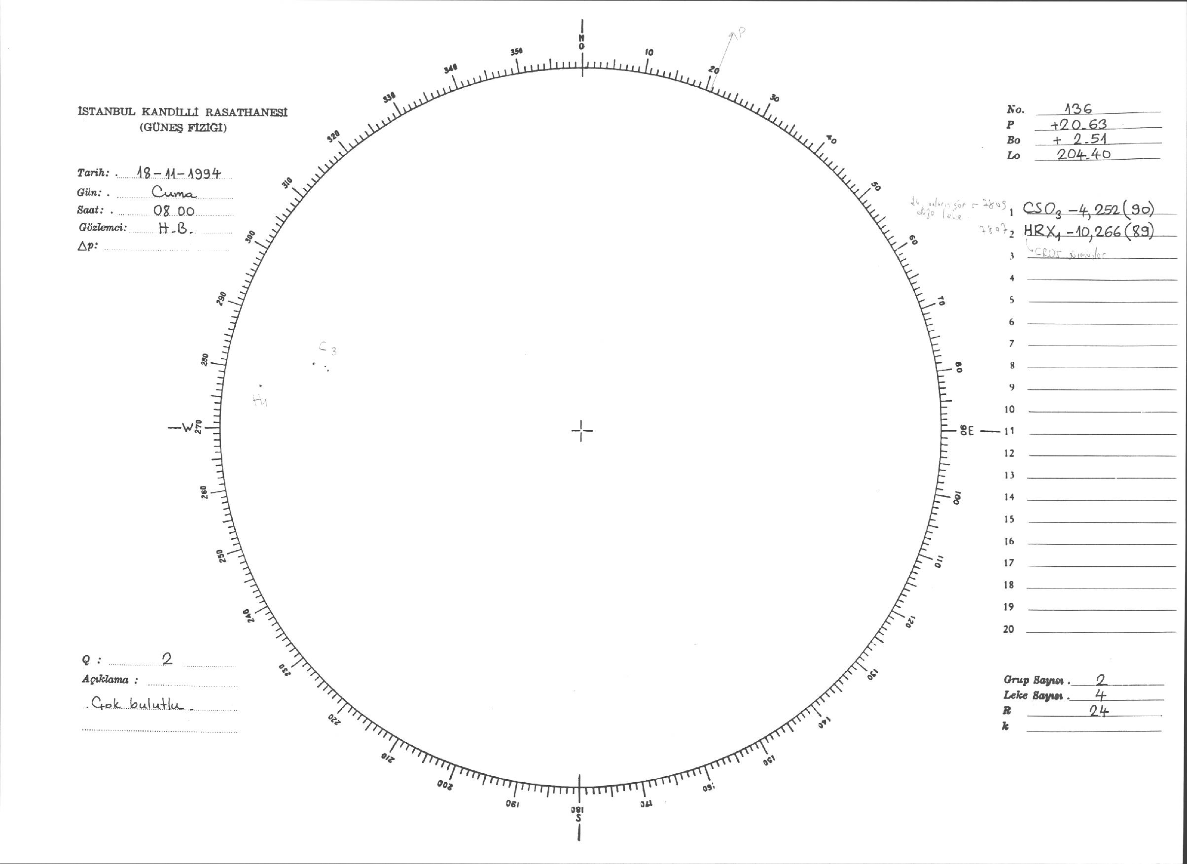 Güneş Lekesi Çizimleri / Kandilli Sunspot Drawings