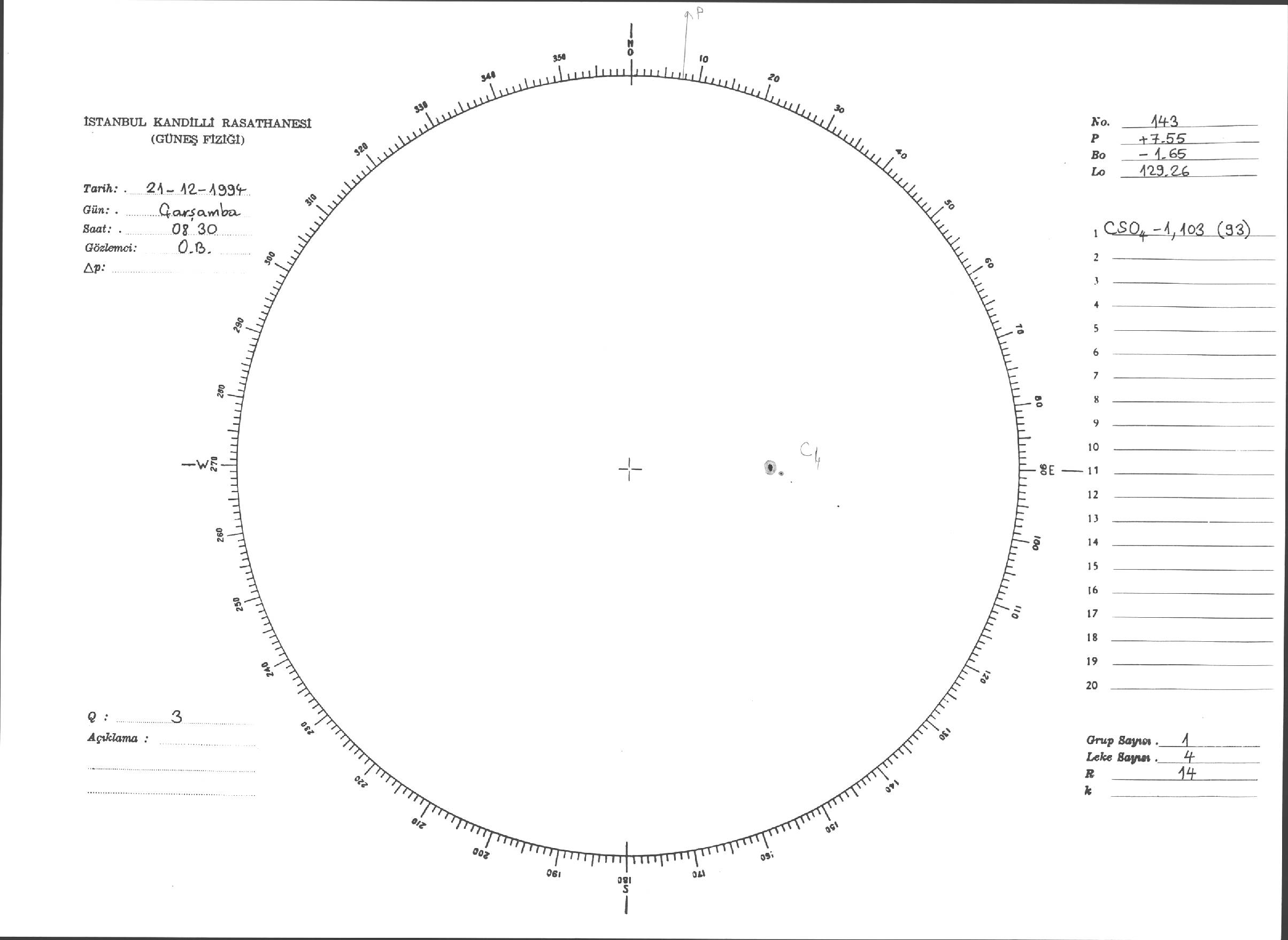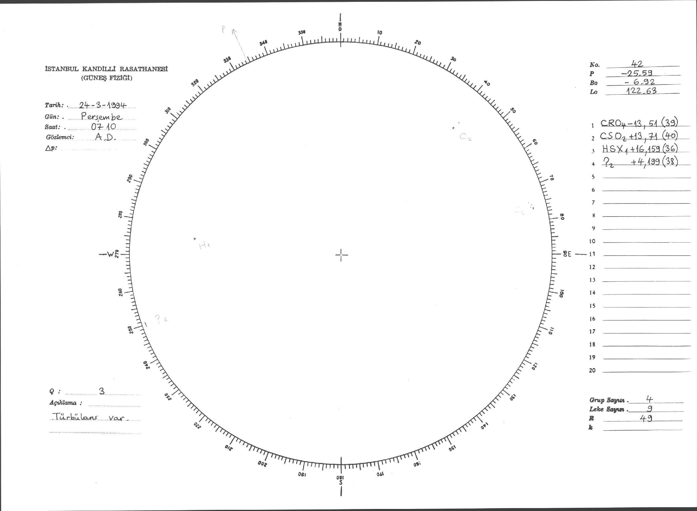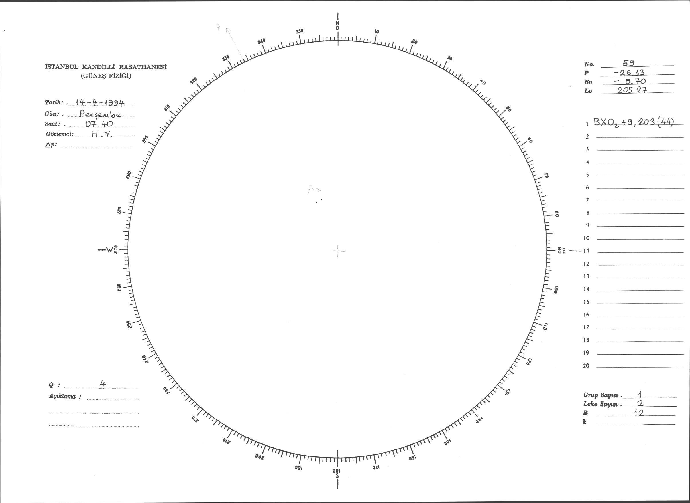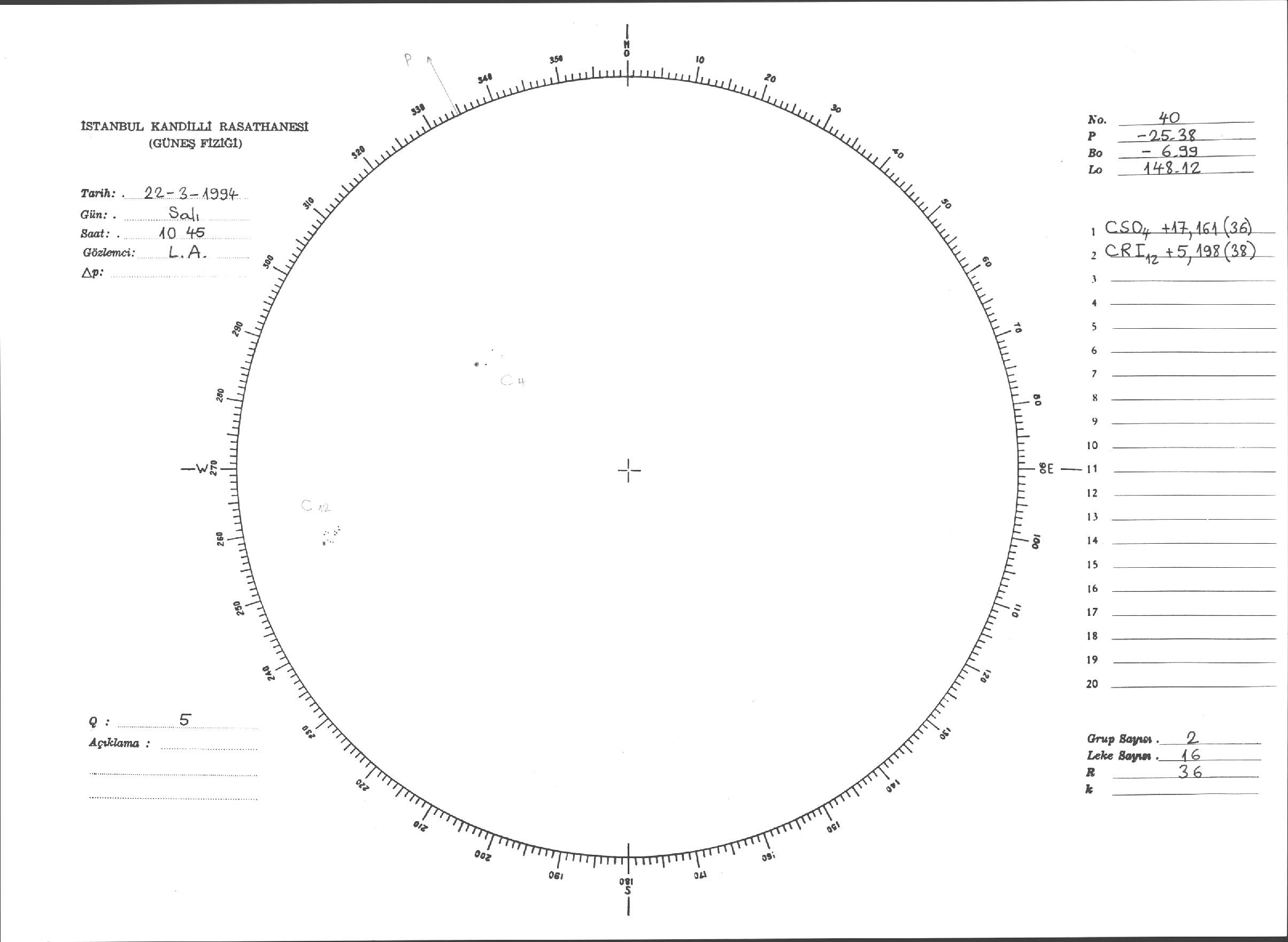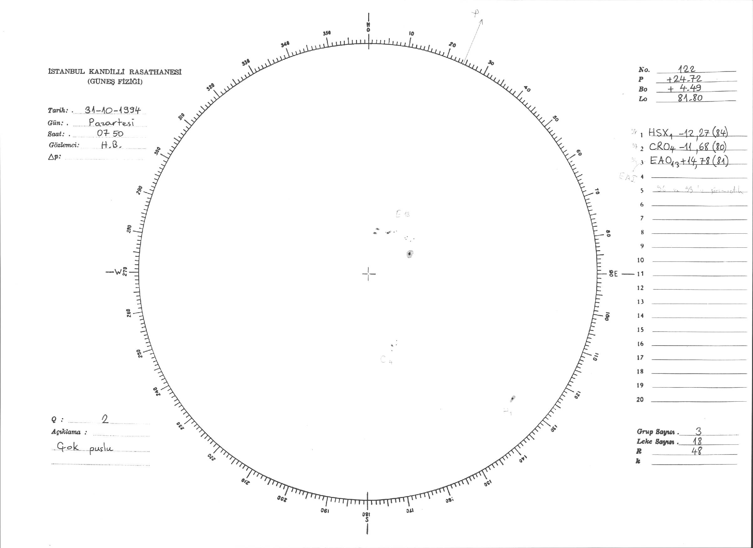Güneş Lekesi Çizimleri / Kandilli Sunspot Drawings