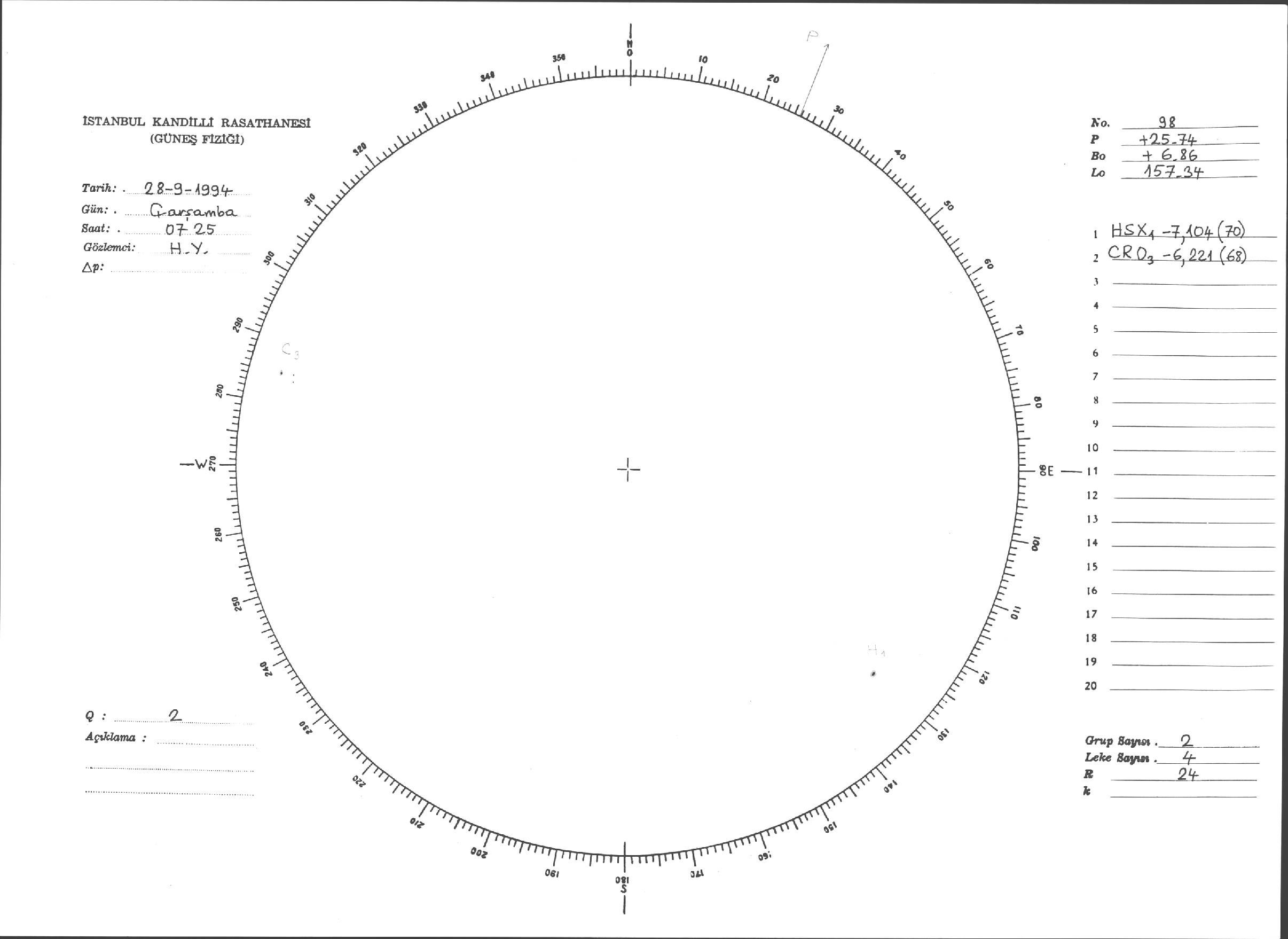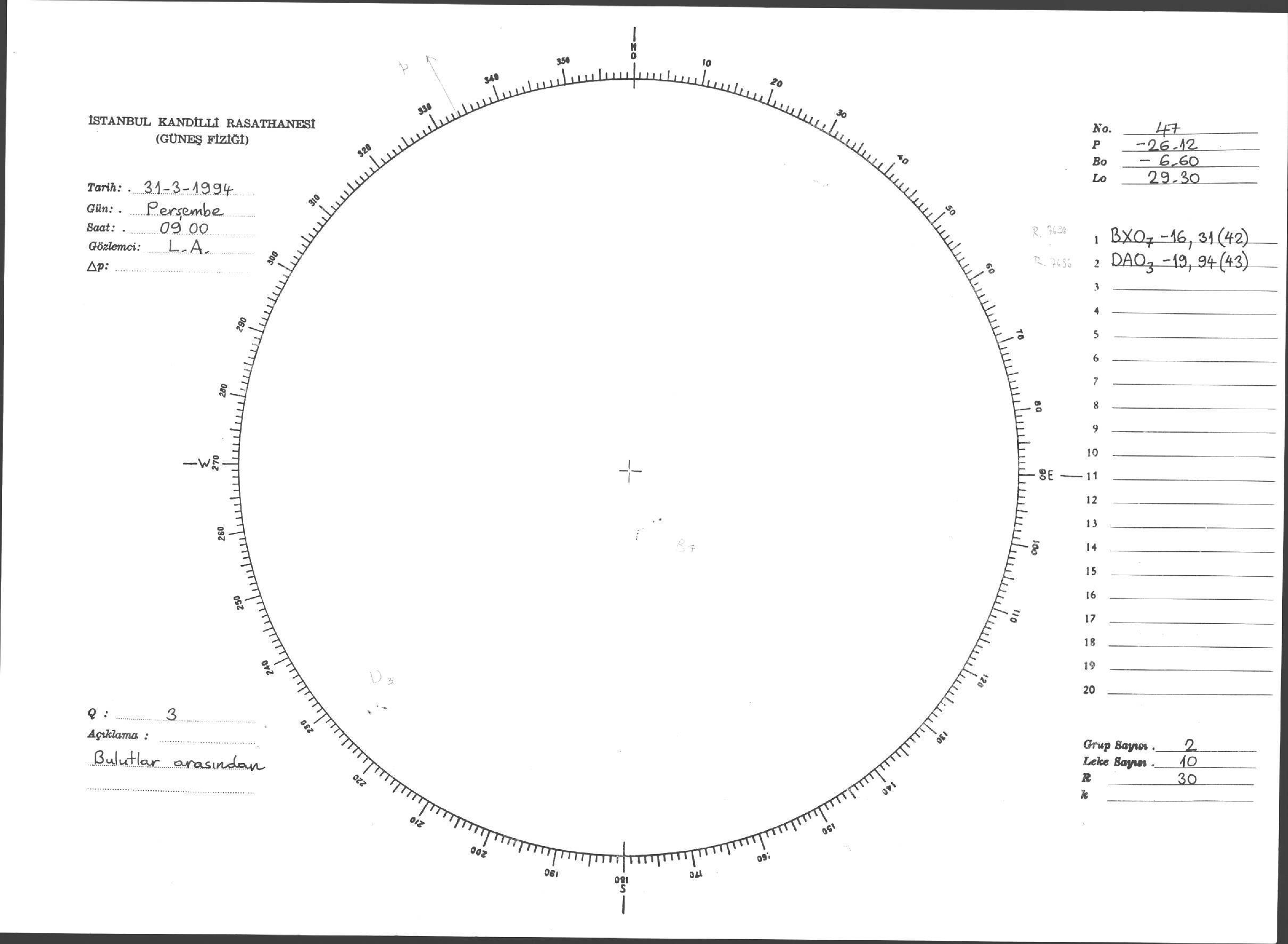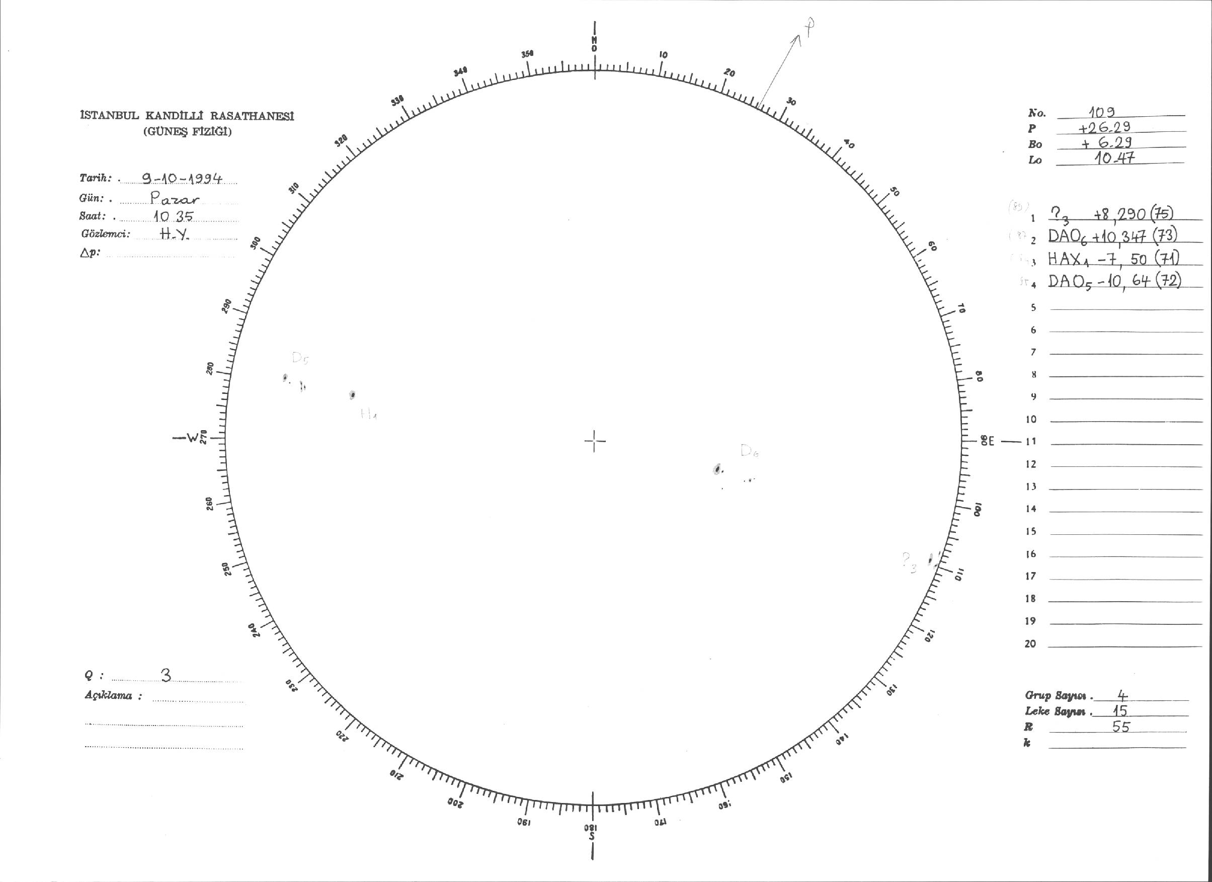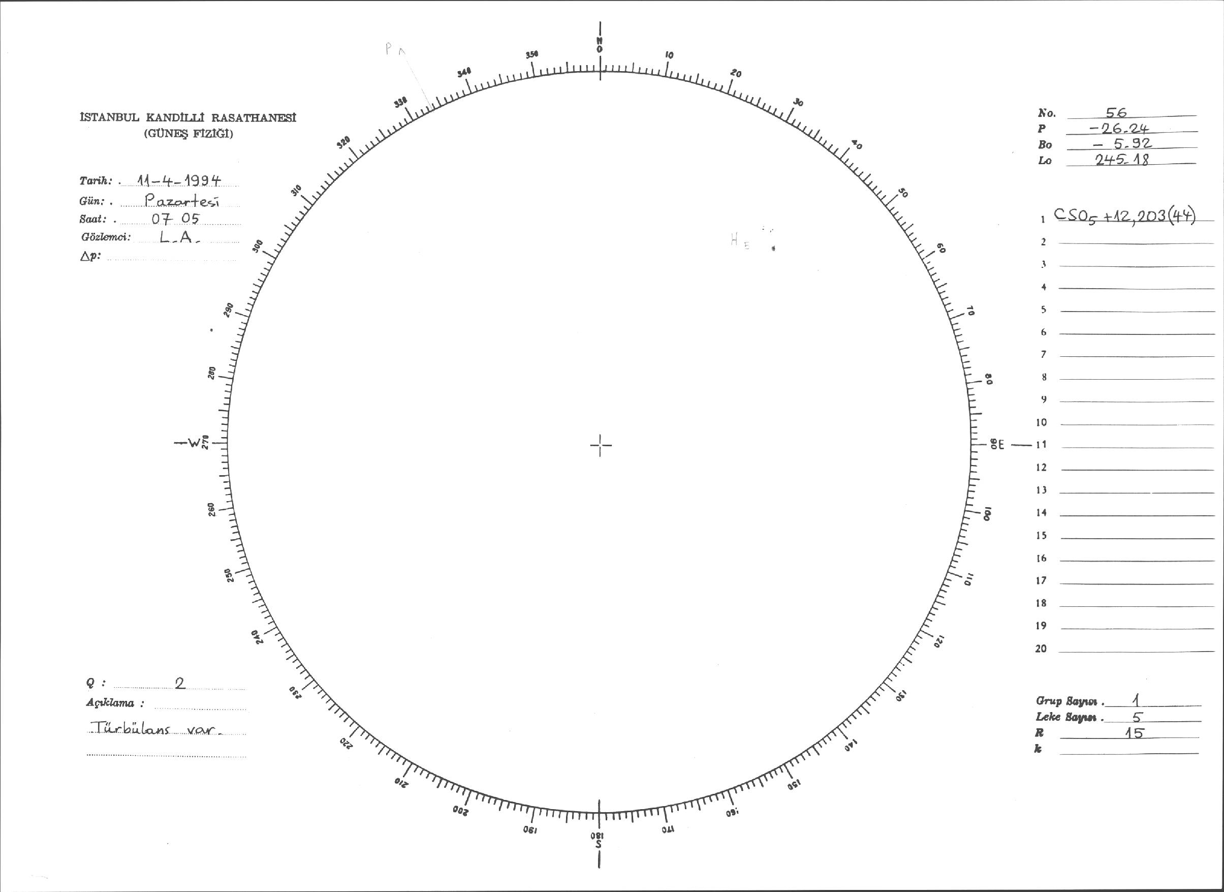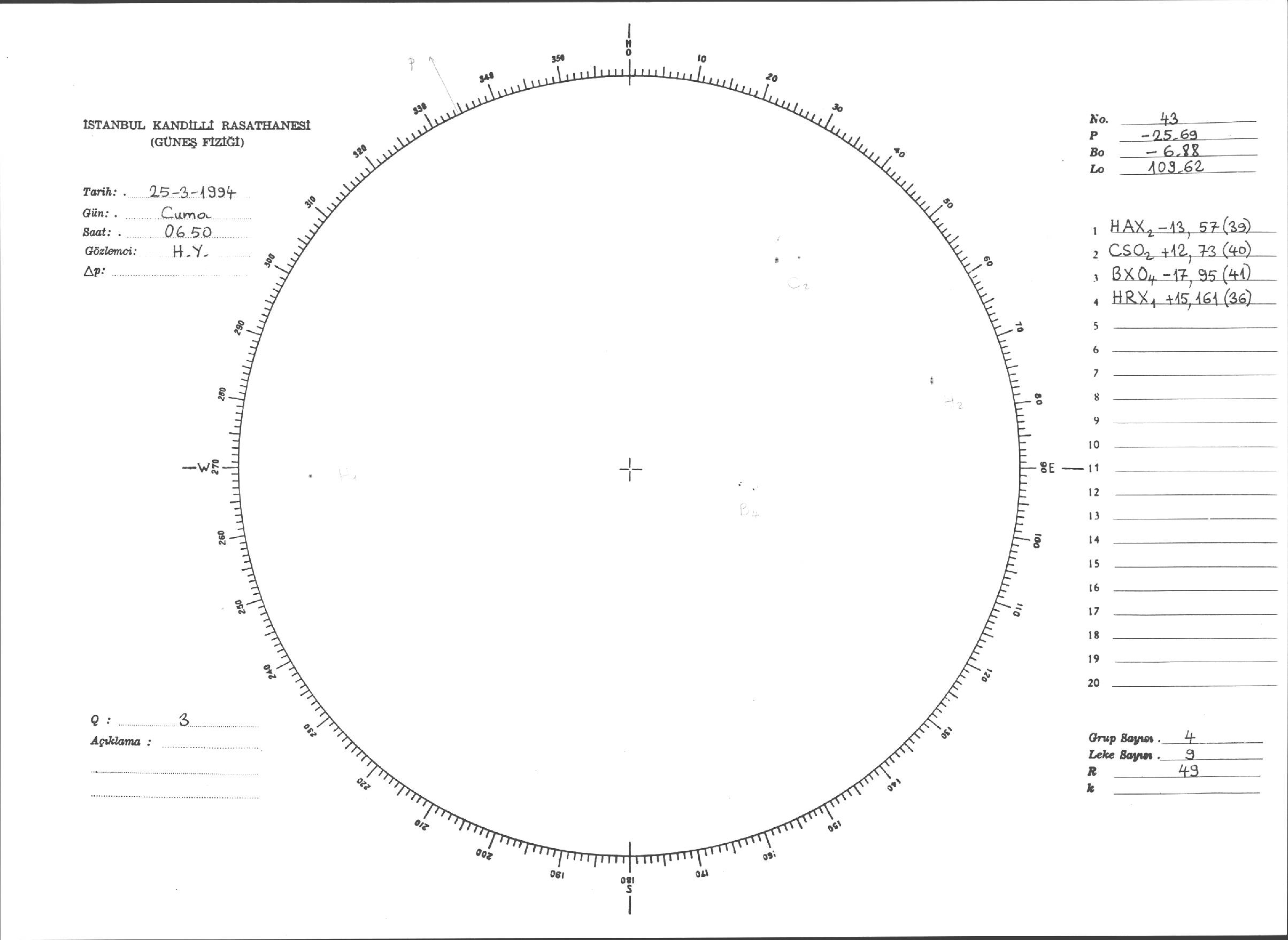 Güneş Lekesi Çizimleri / Kandilli Sunspot Drawings