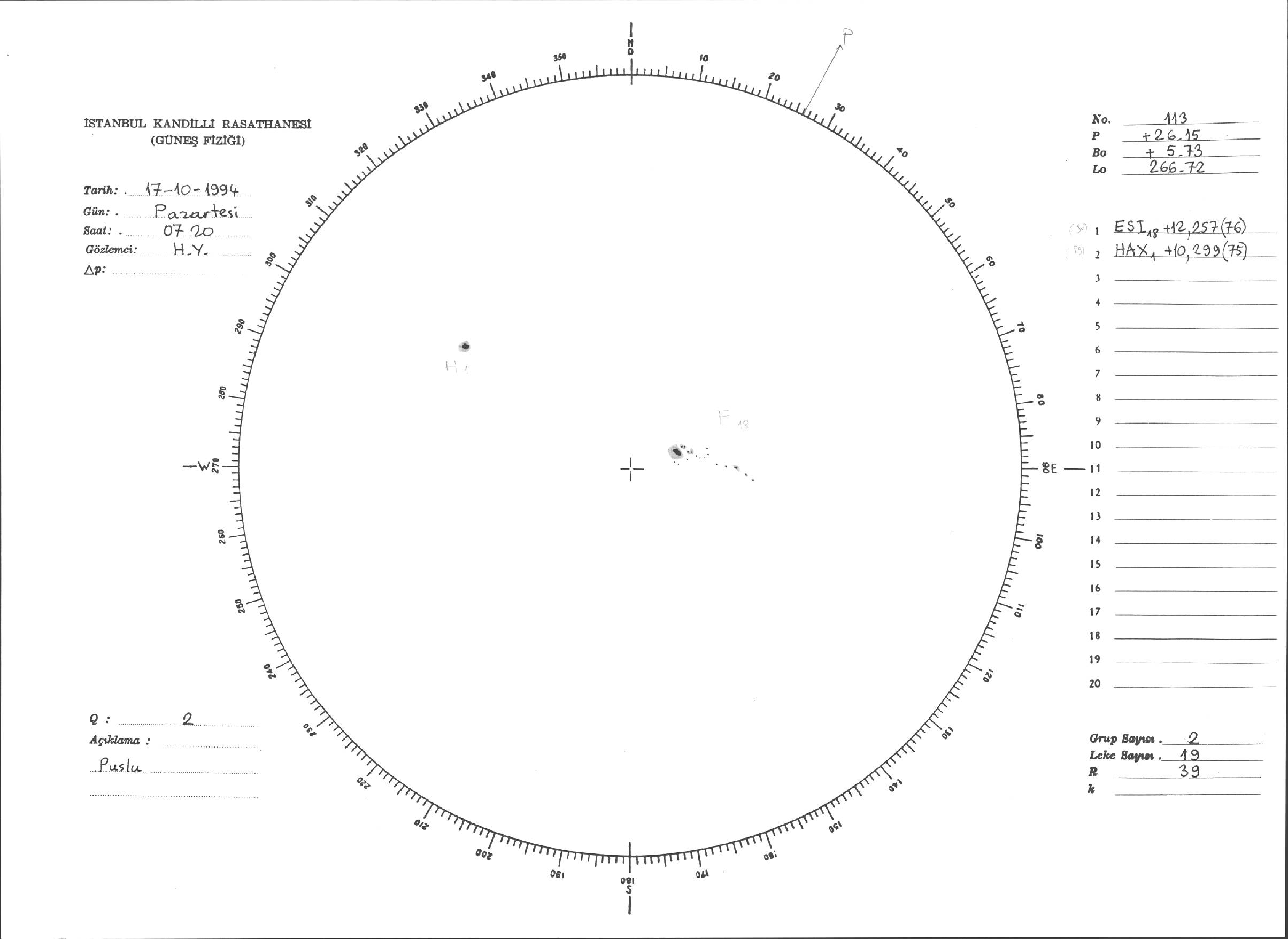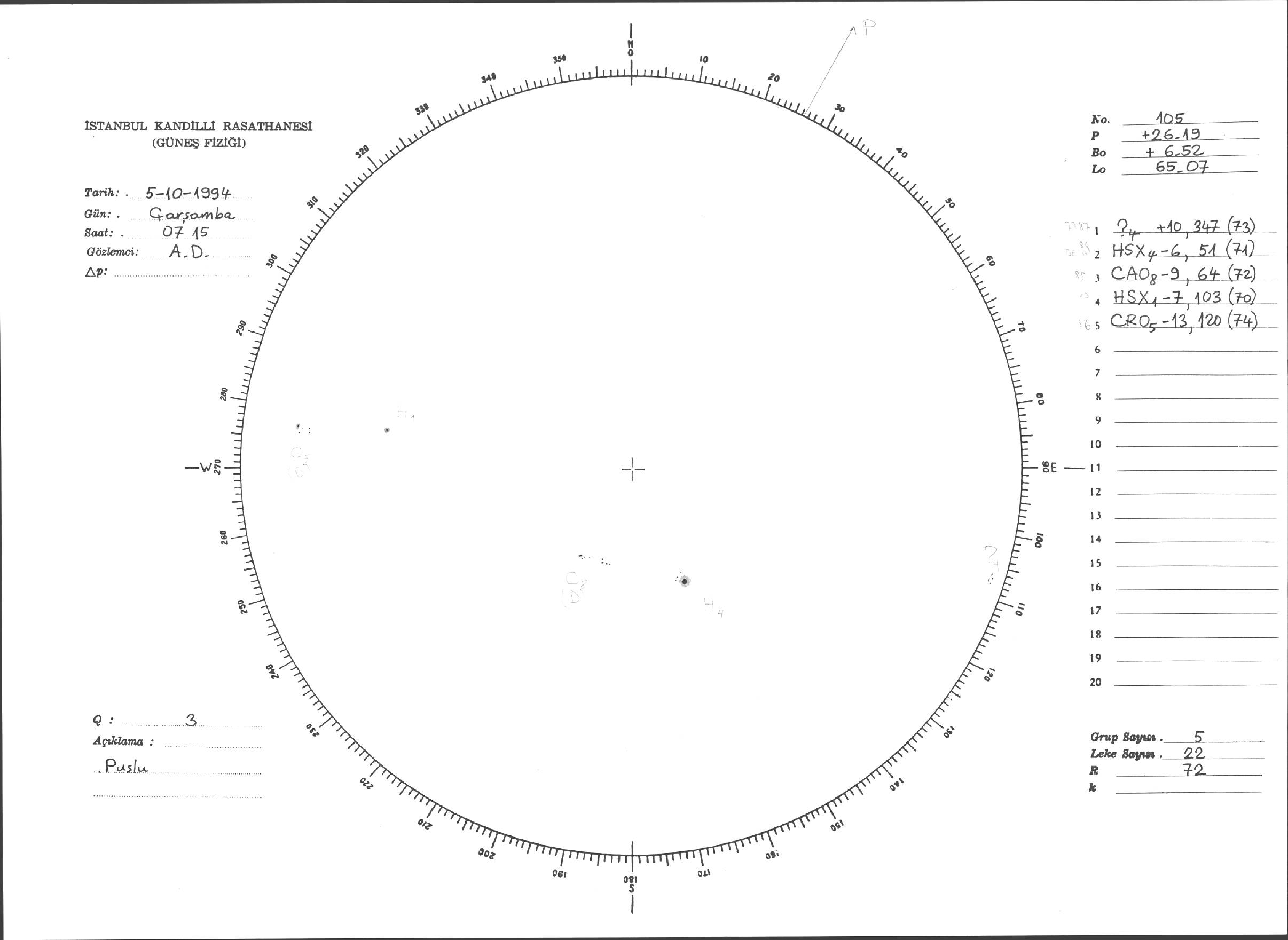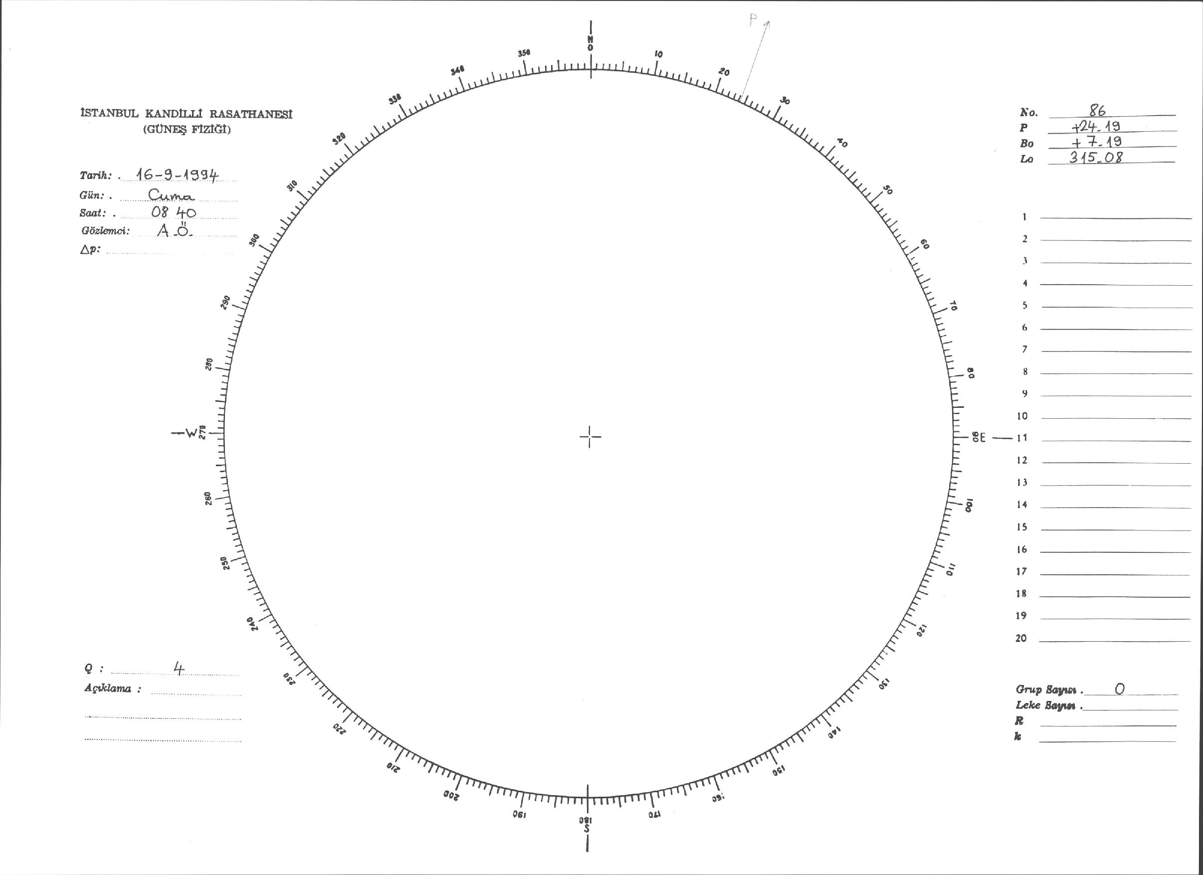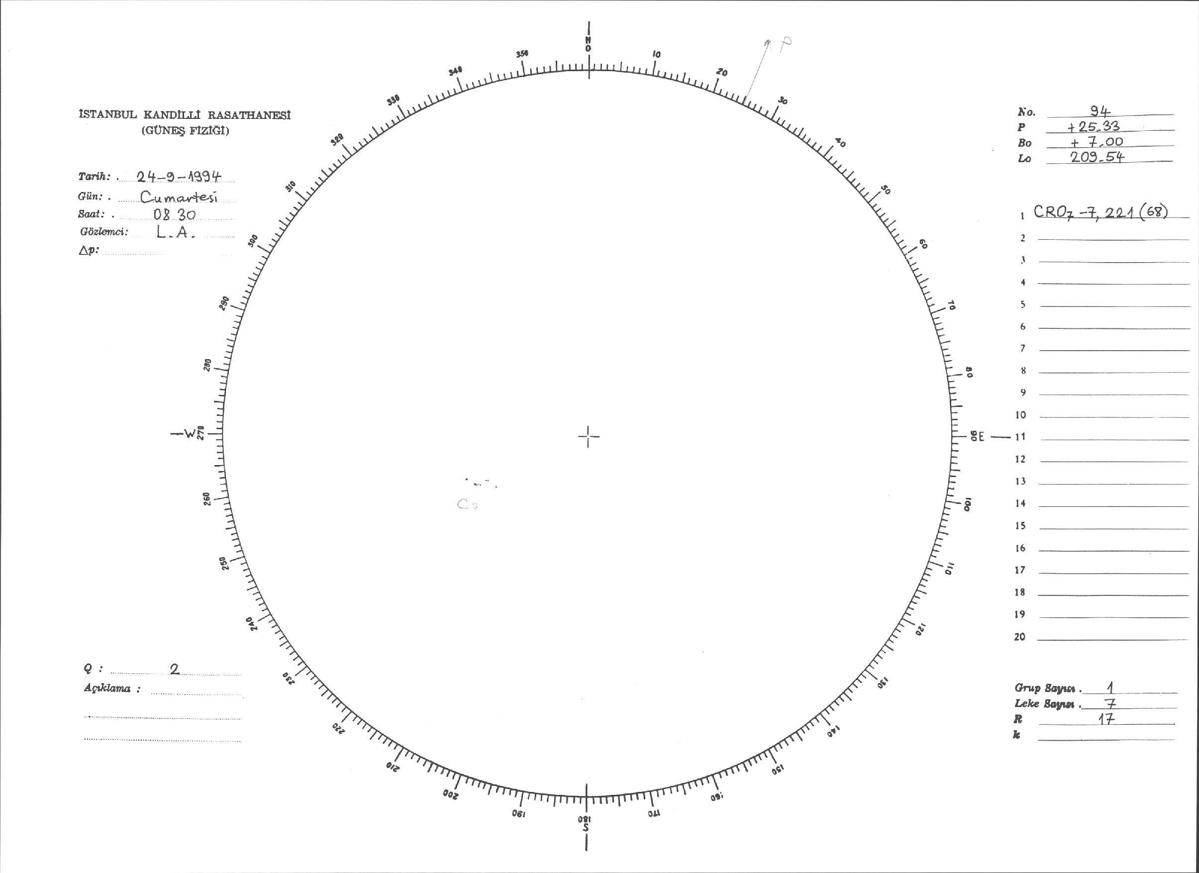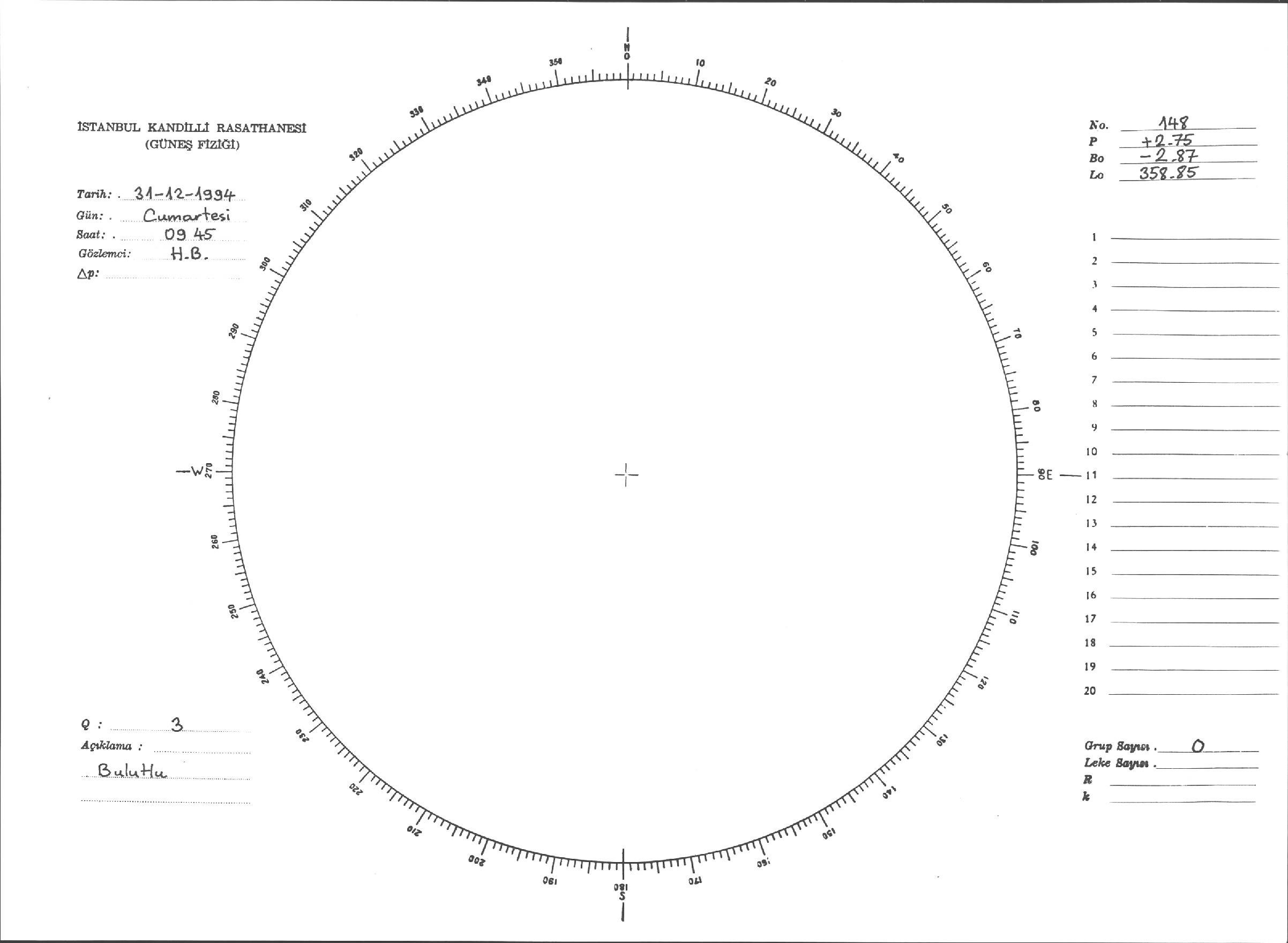 Güneş Lekesi Çizimleri / Kandilli Sunspot Drawings