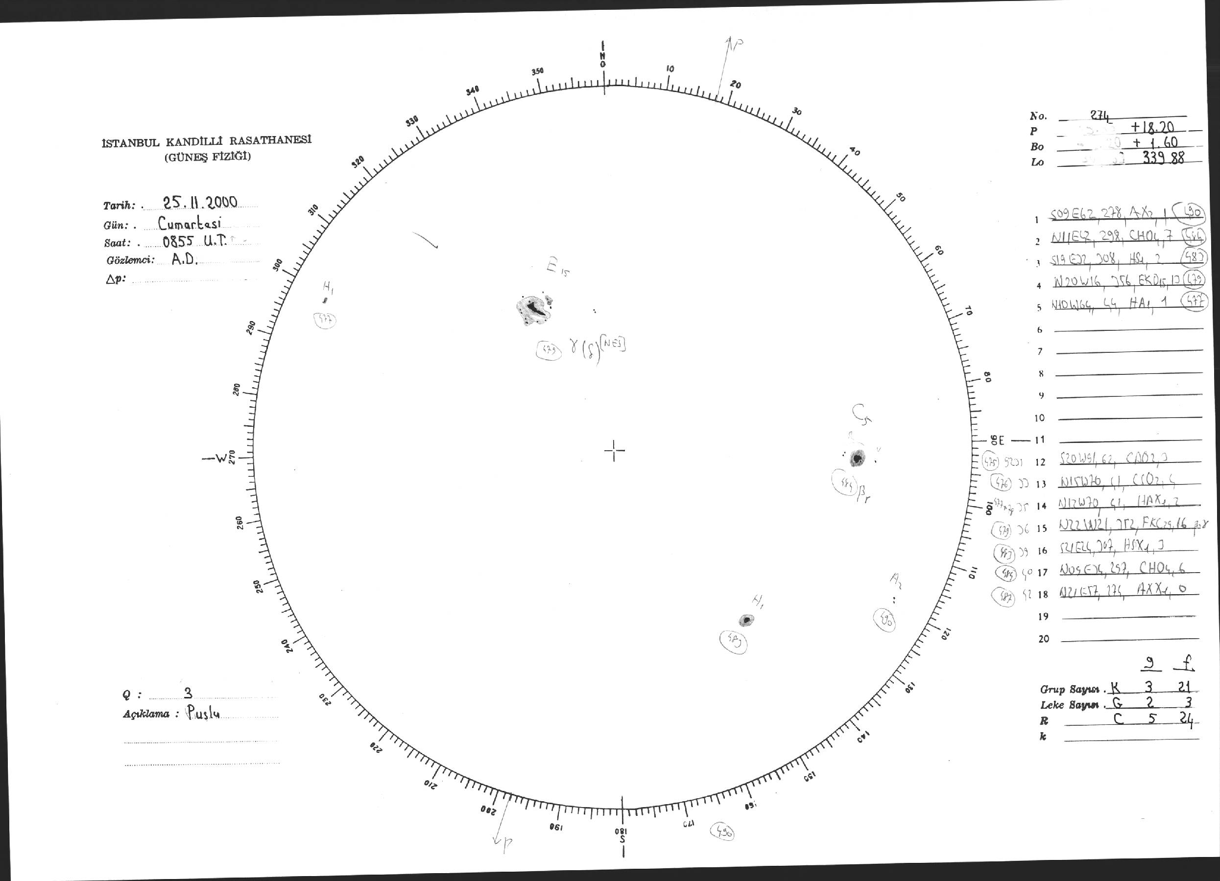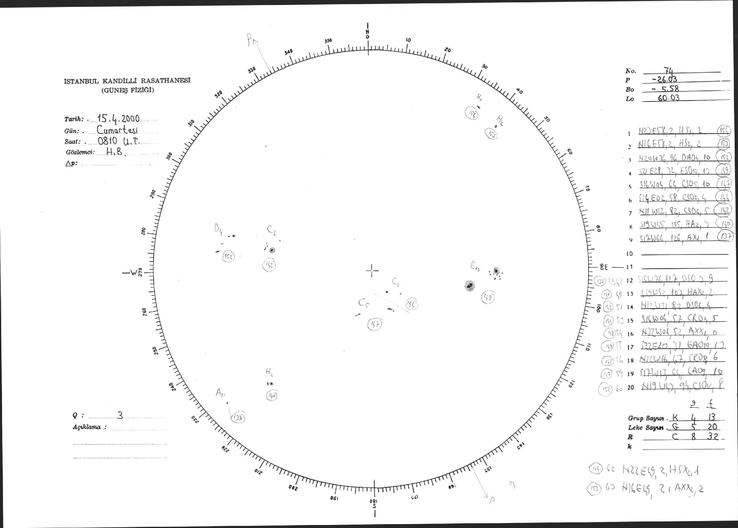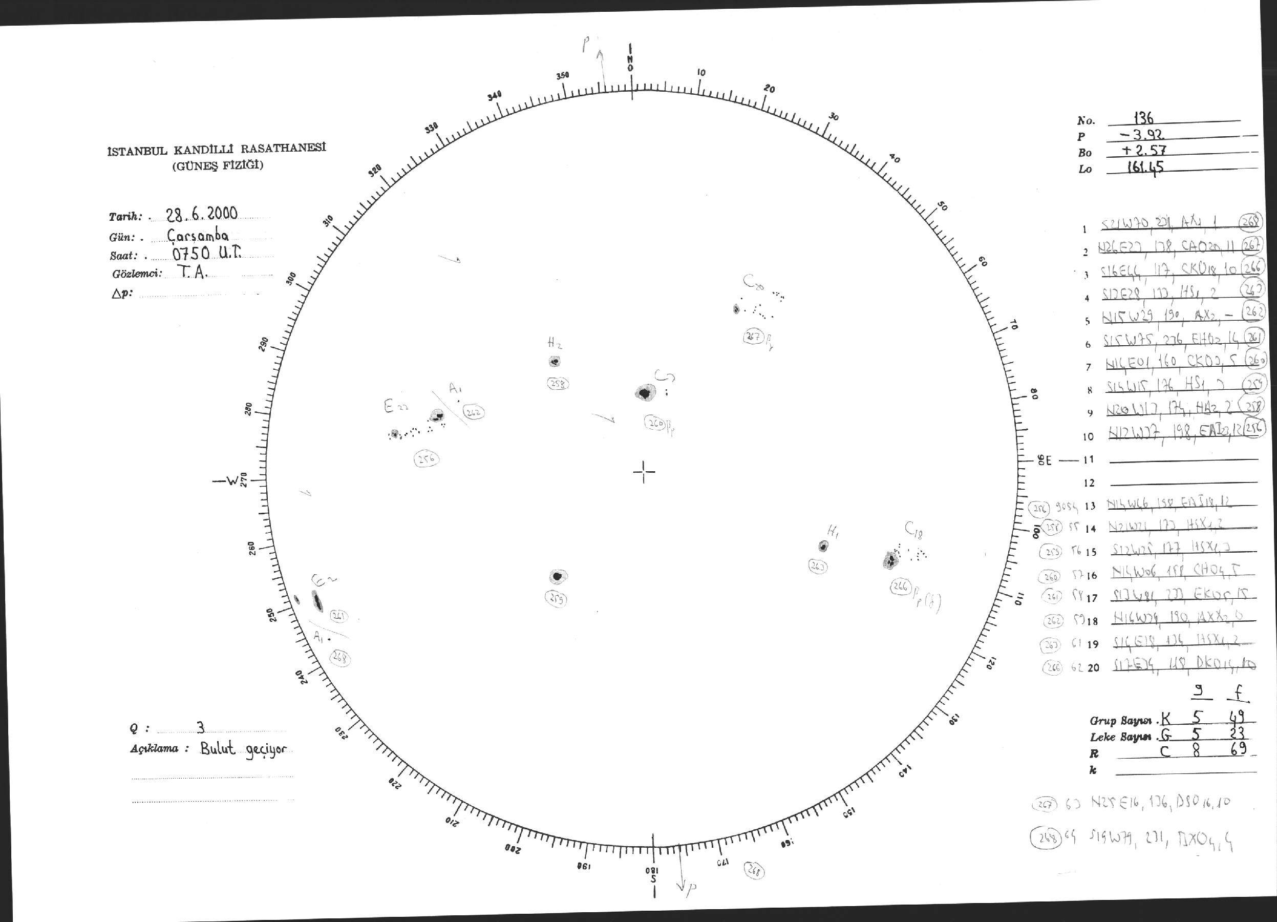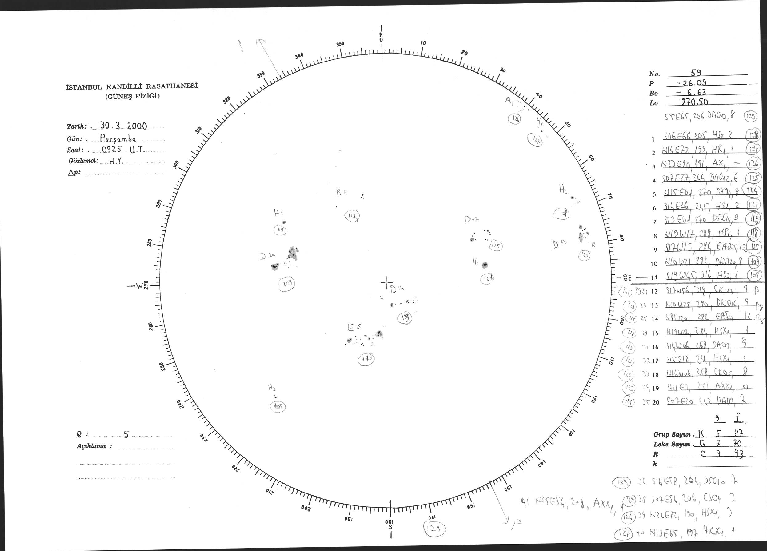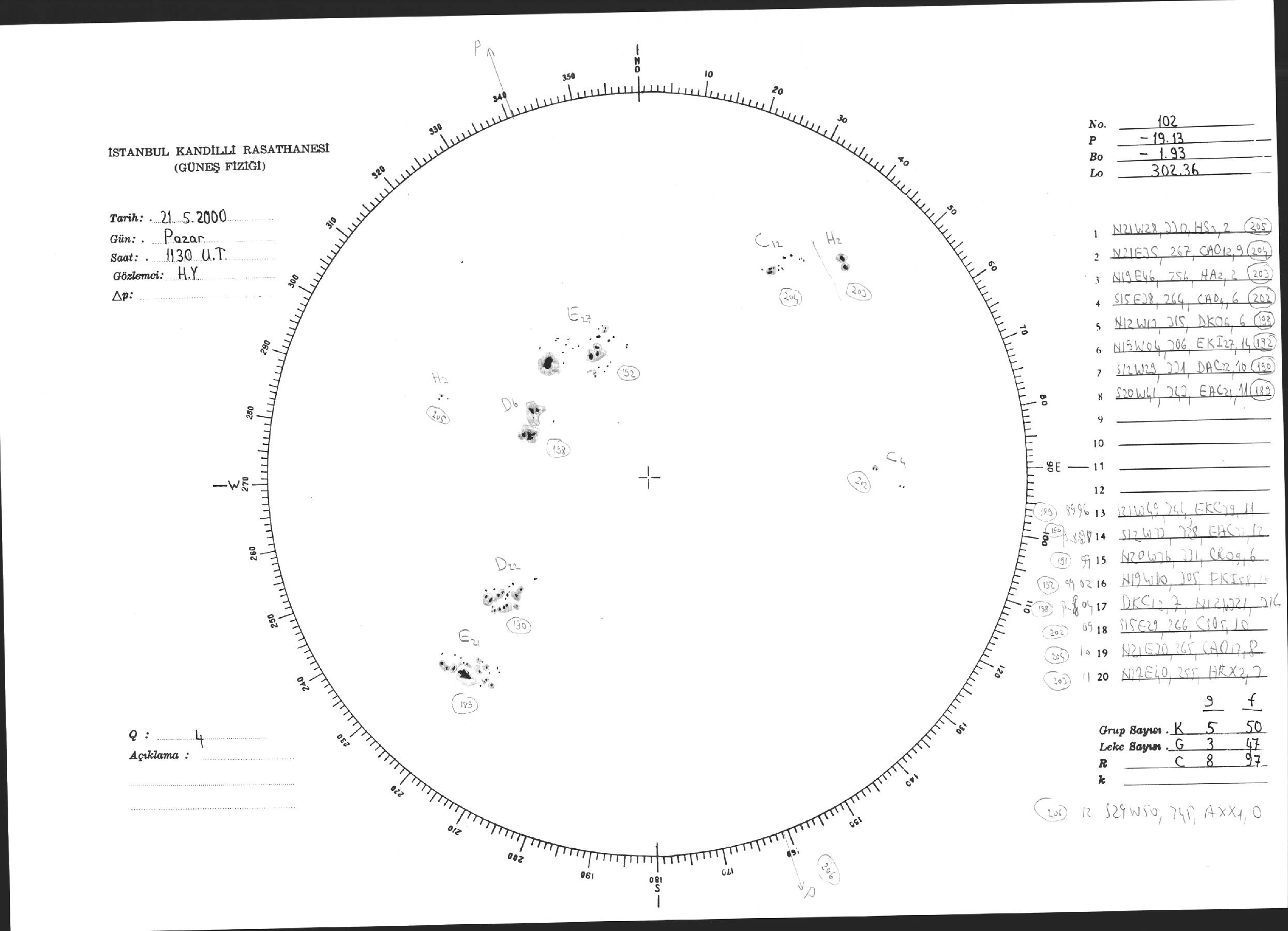 Güneş Lekesi Çizimleri / Kandilli Sunspot Drawings