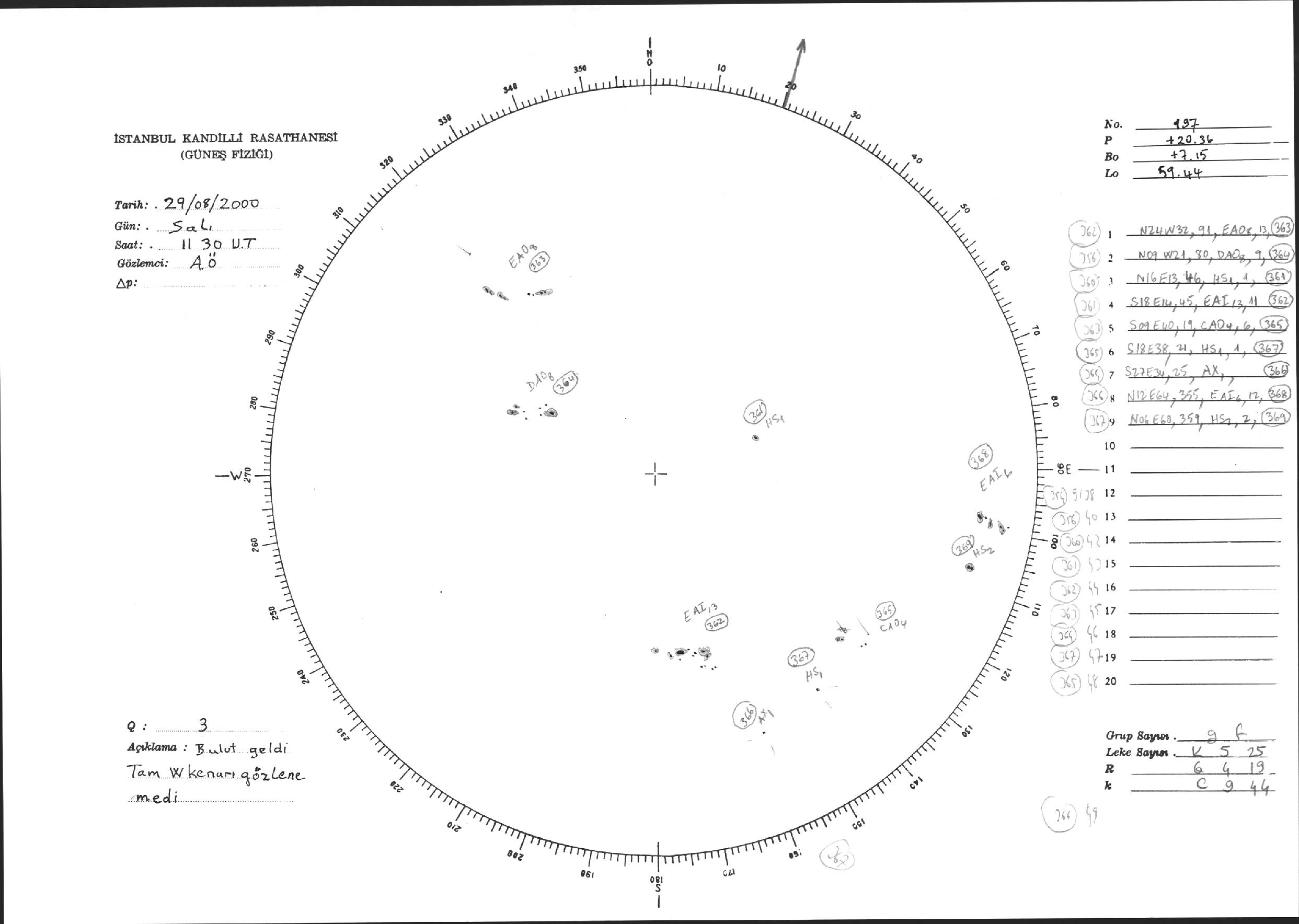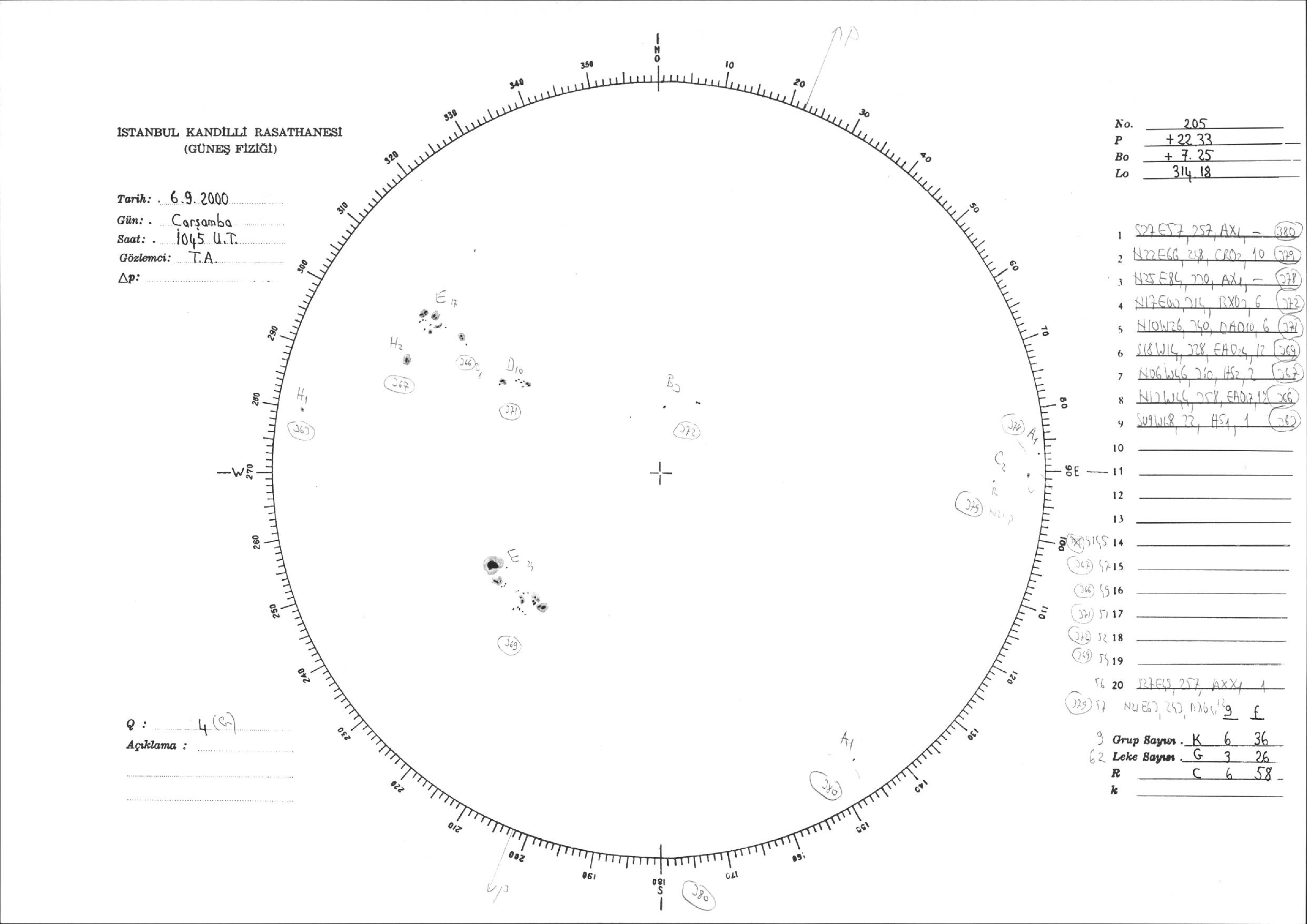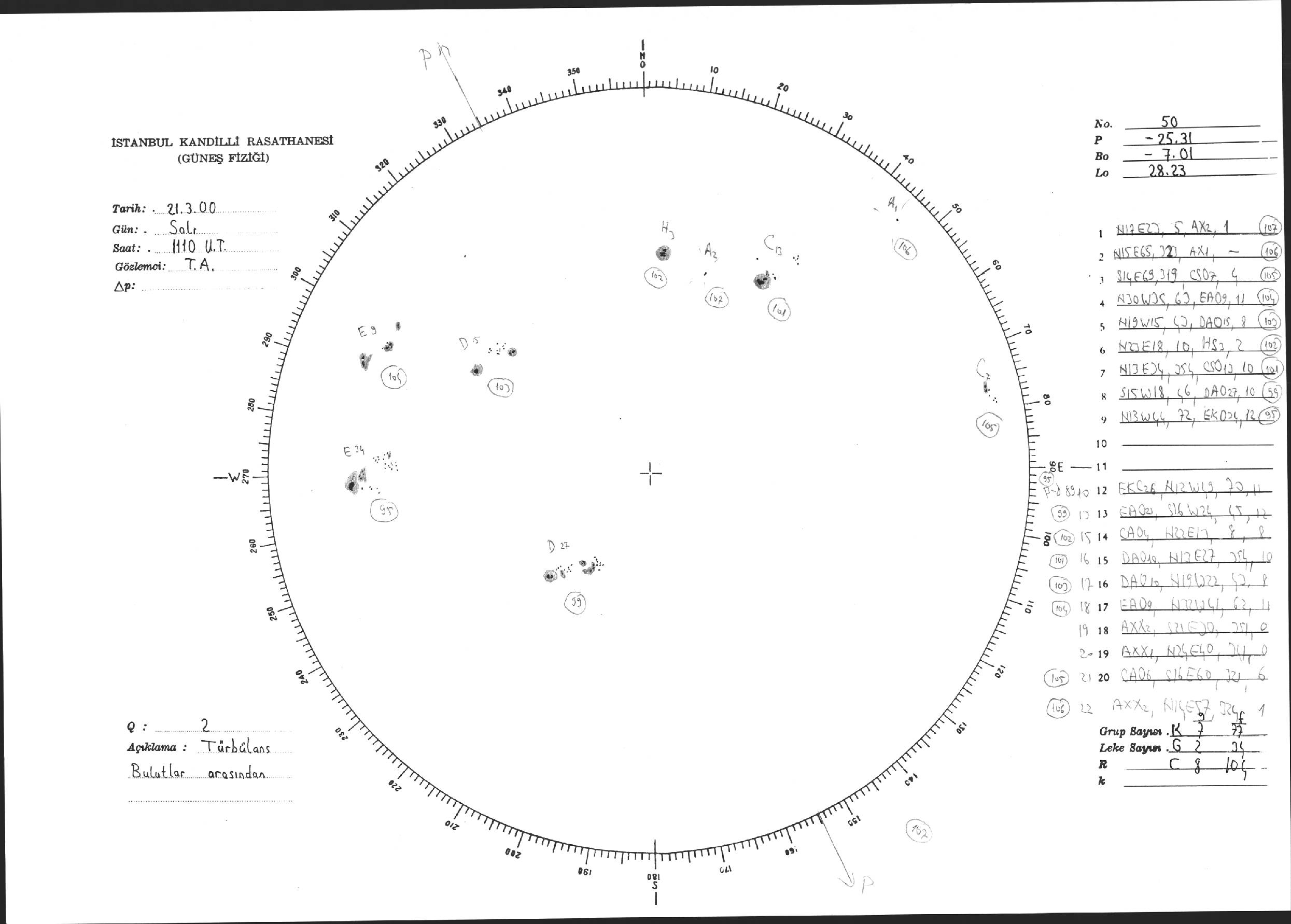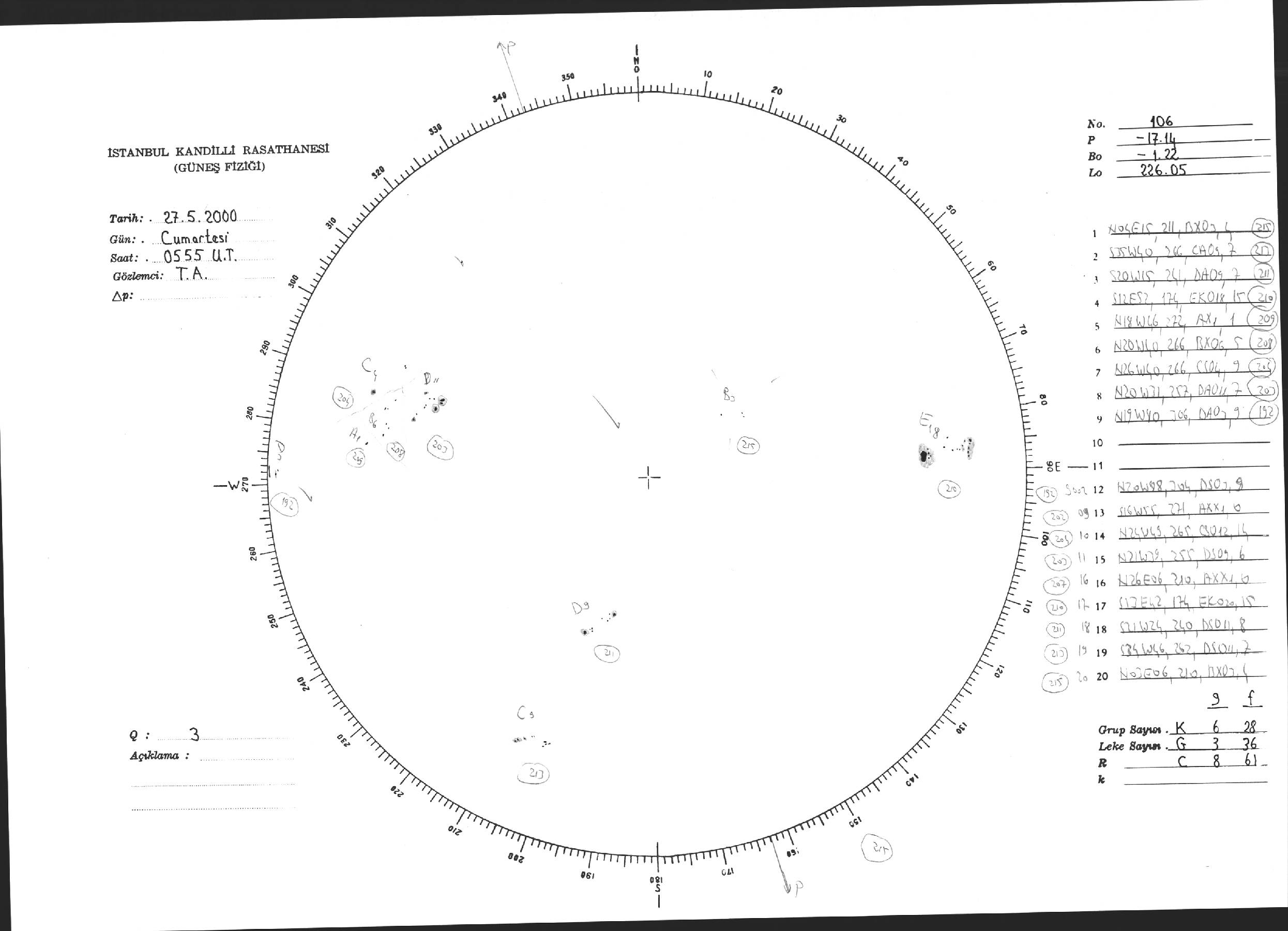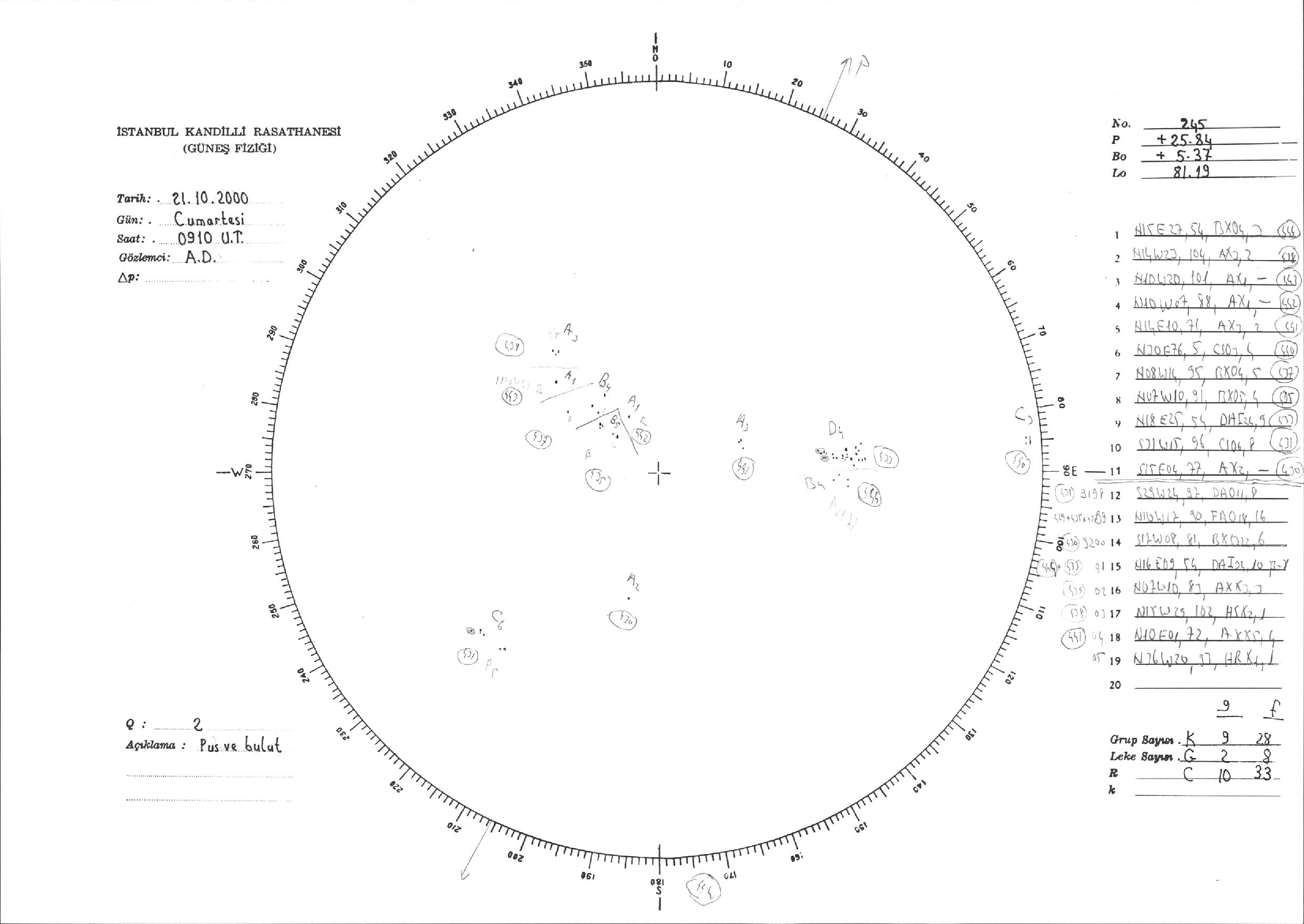 Güneş Lekesi Çizimleri / Kandilli Sunspot Drawings