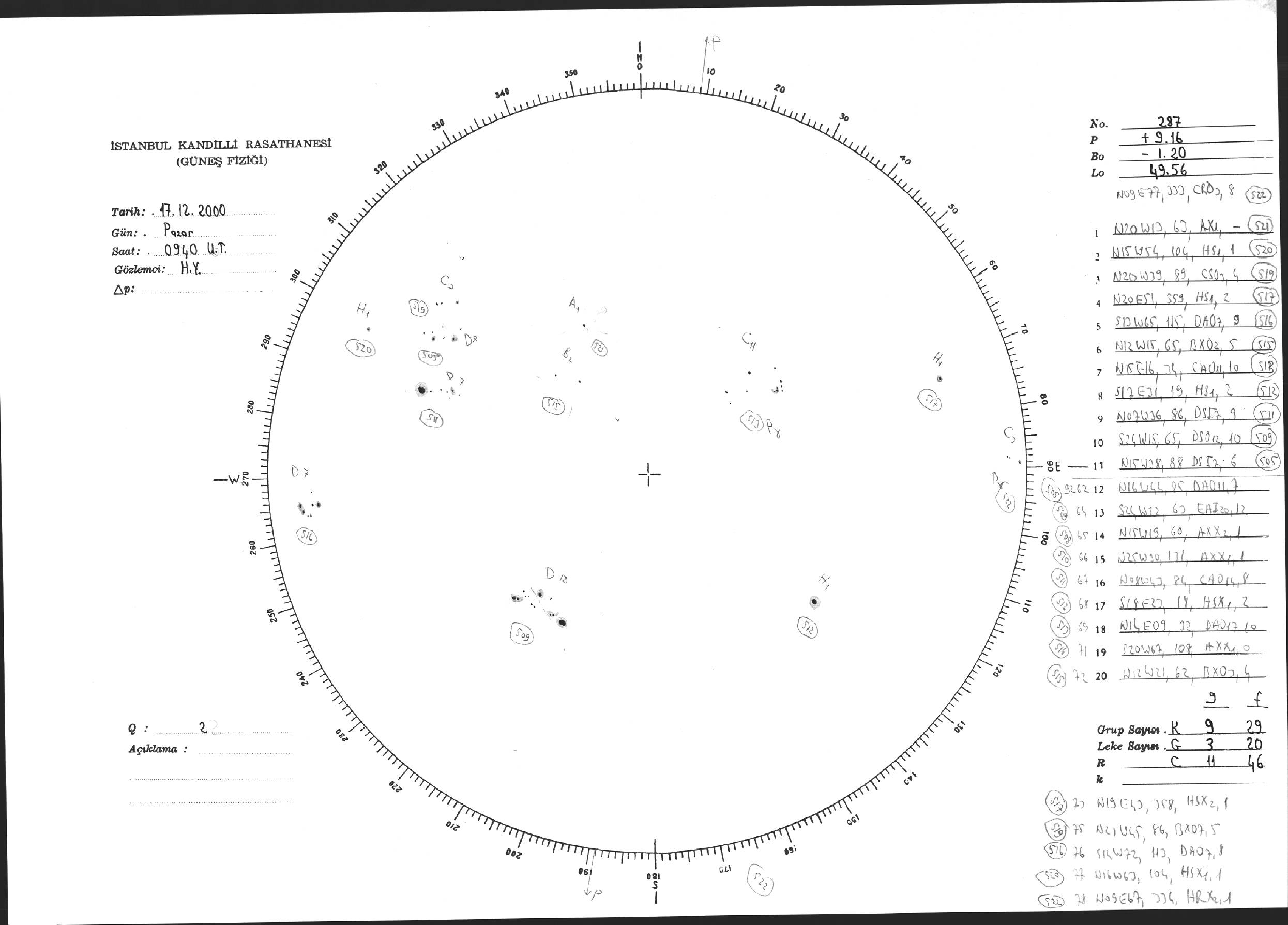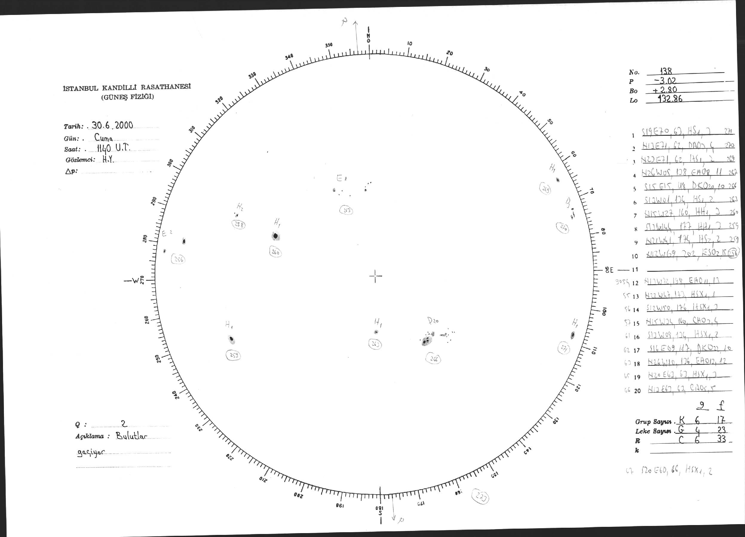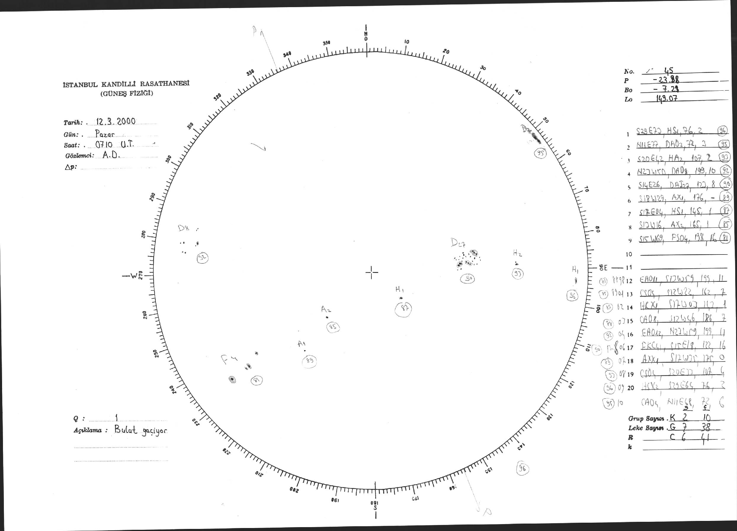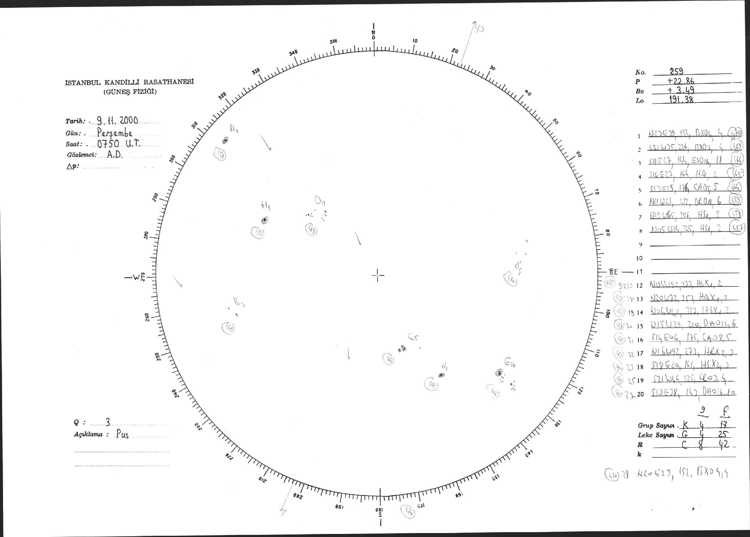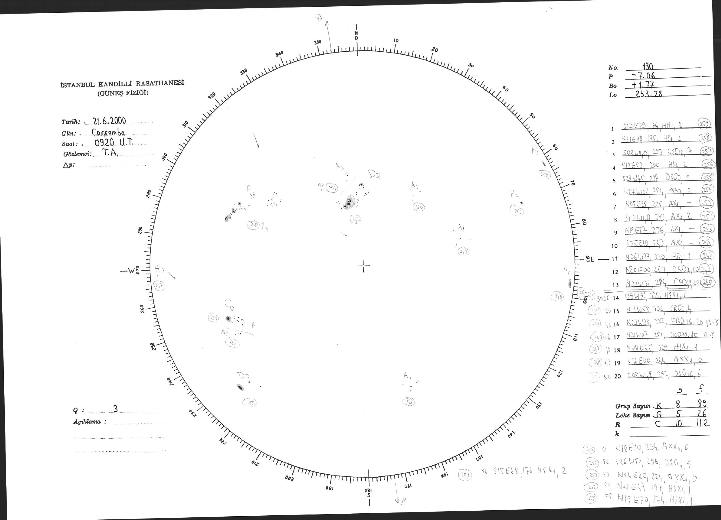 Güneş Lekesi Çizimleri / Kandilli Sunspot Drawings