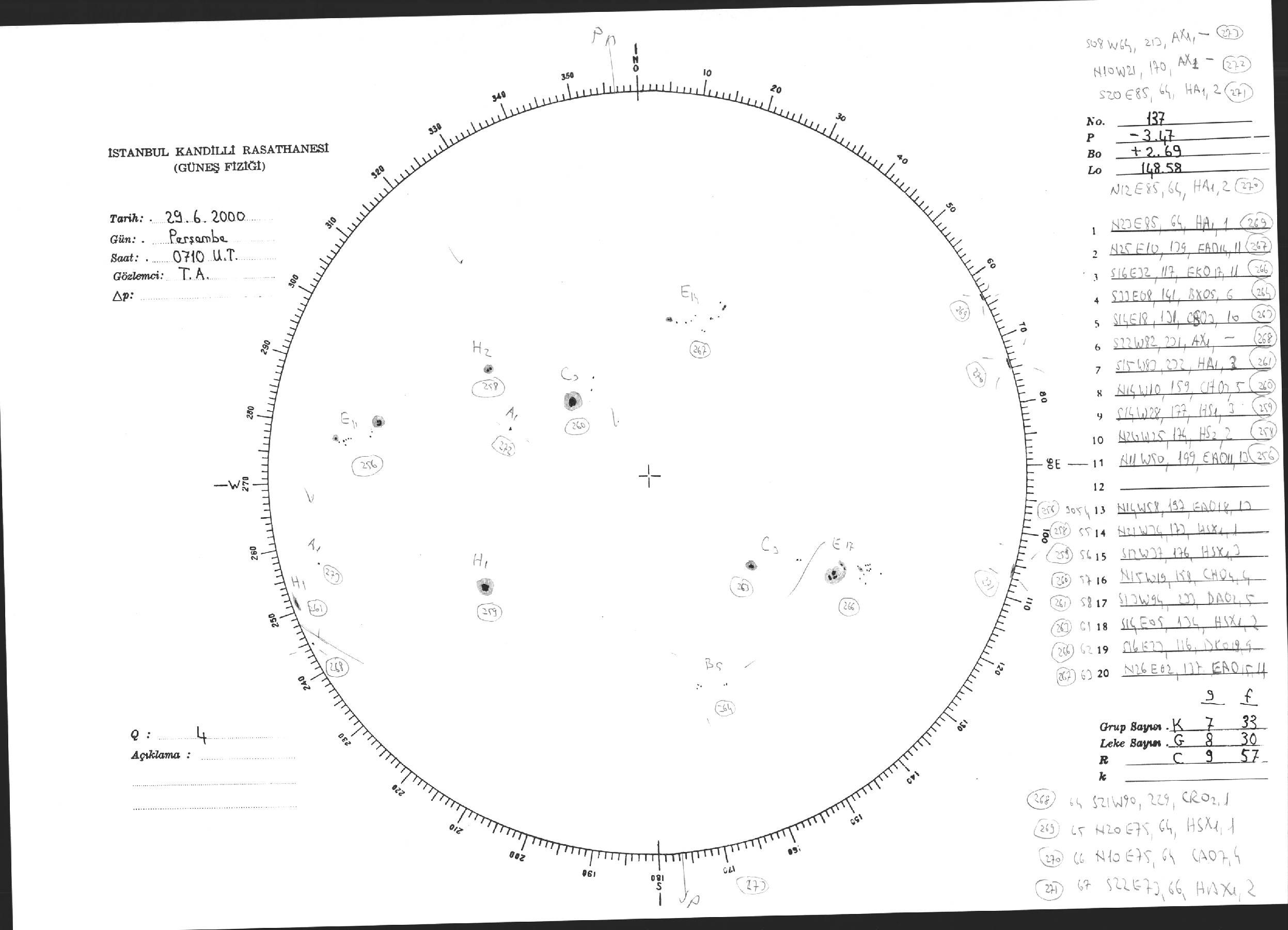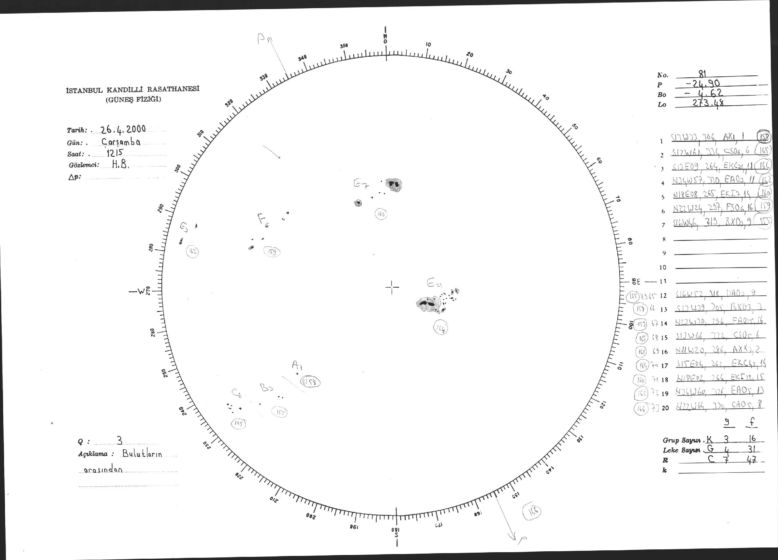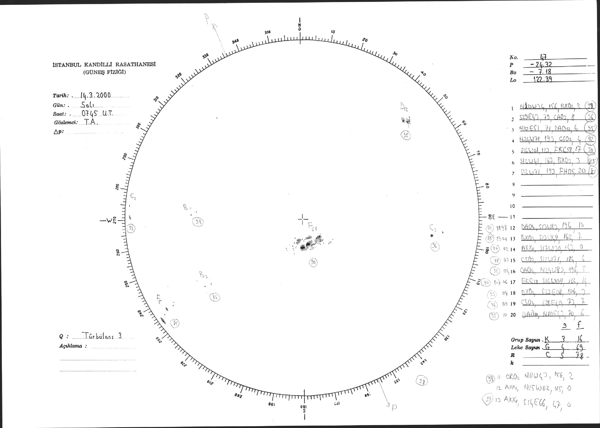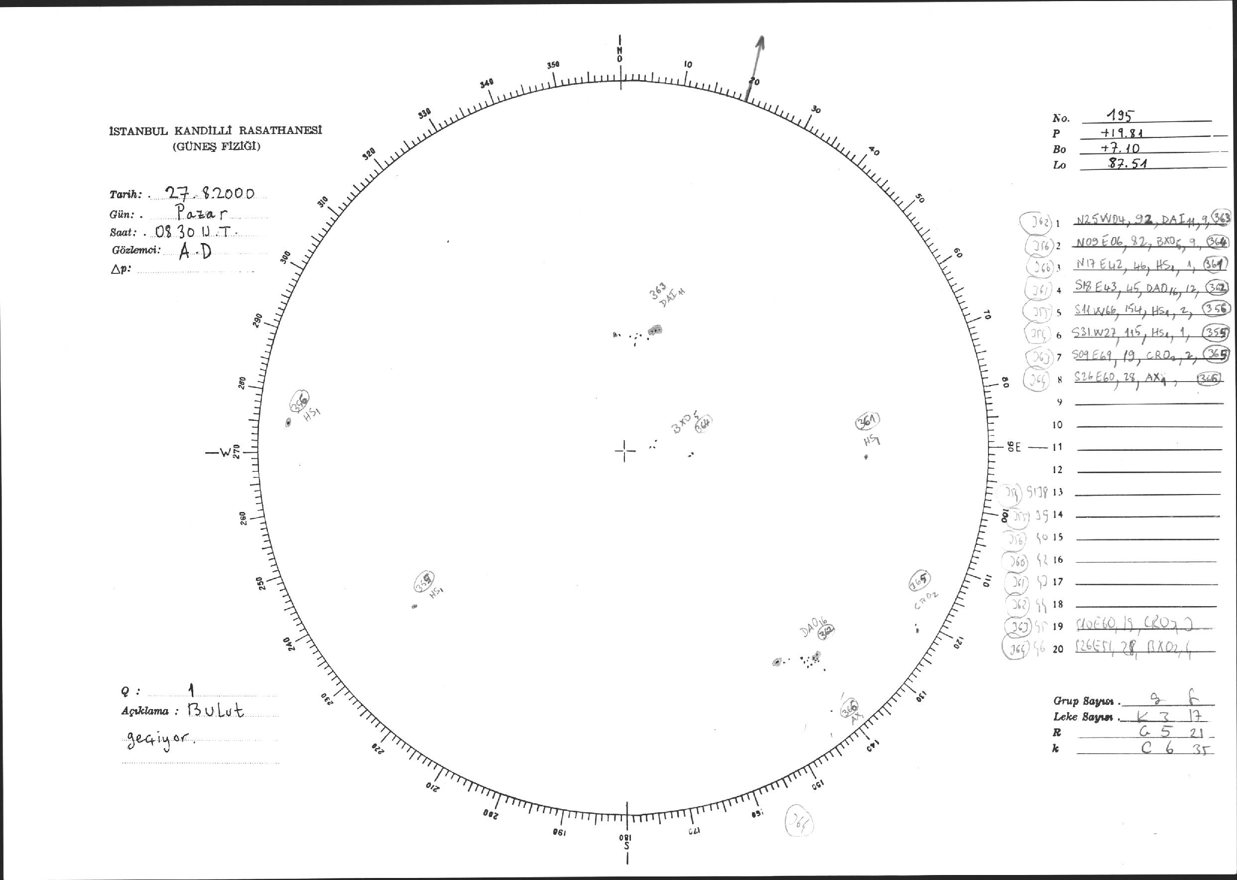 Güneş Lekesi Çizimleri / Kandilli Sunspot Drawings