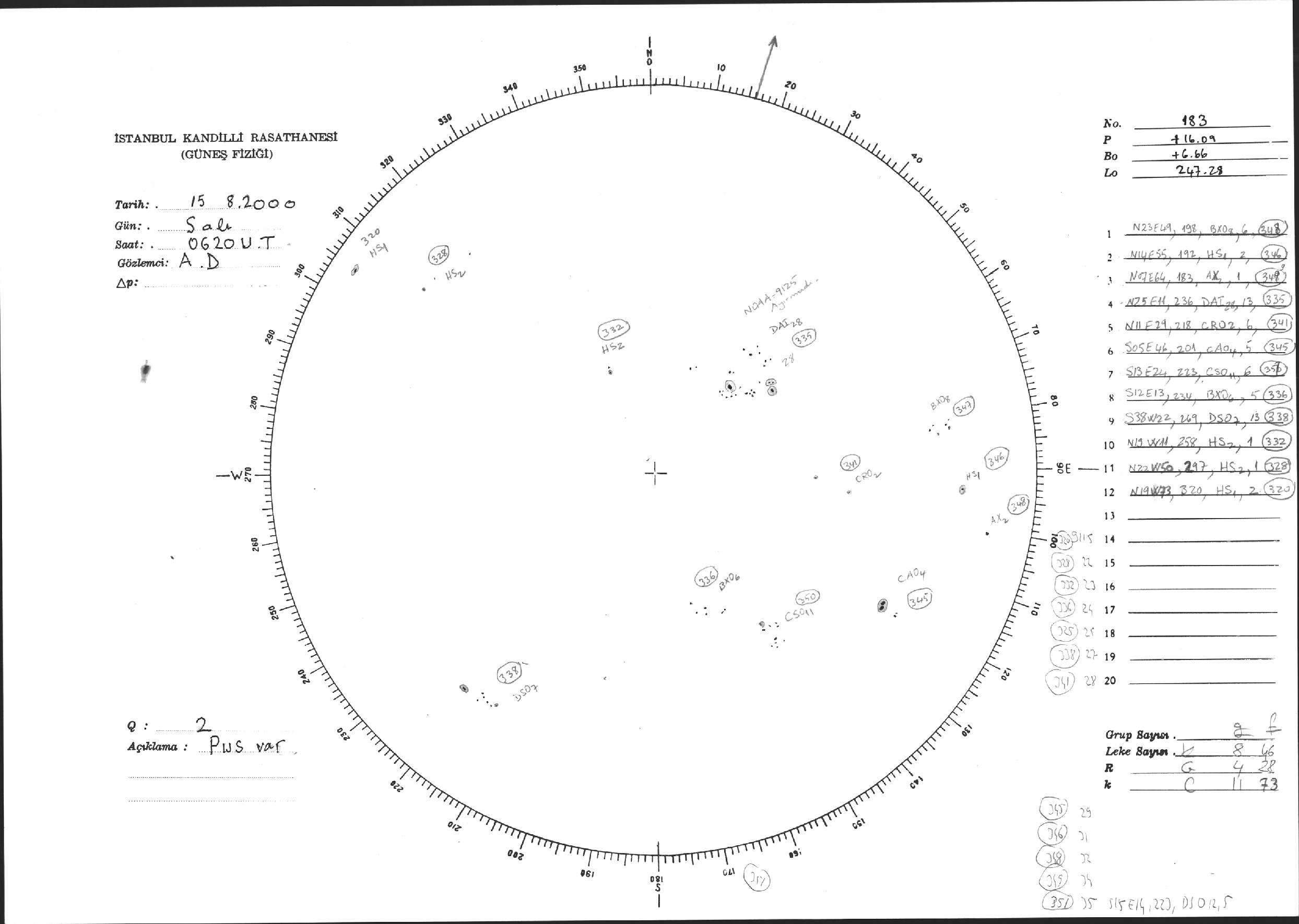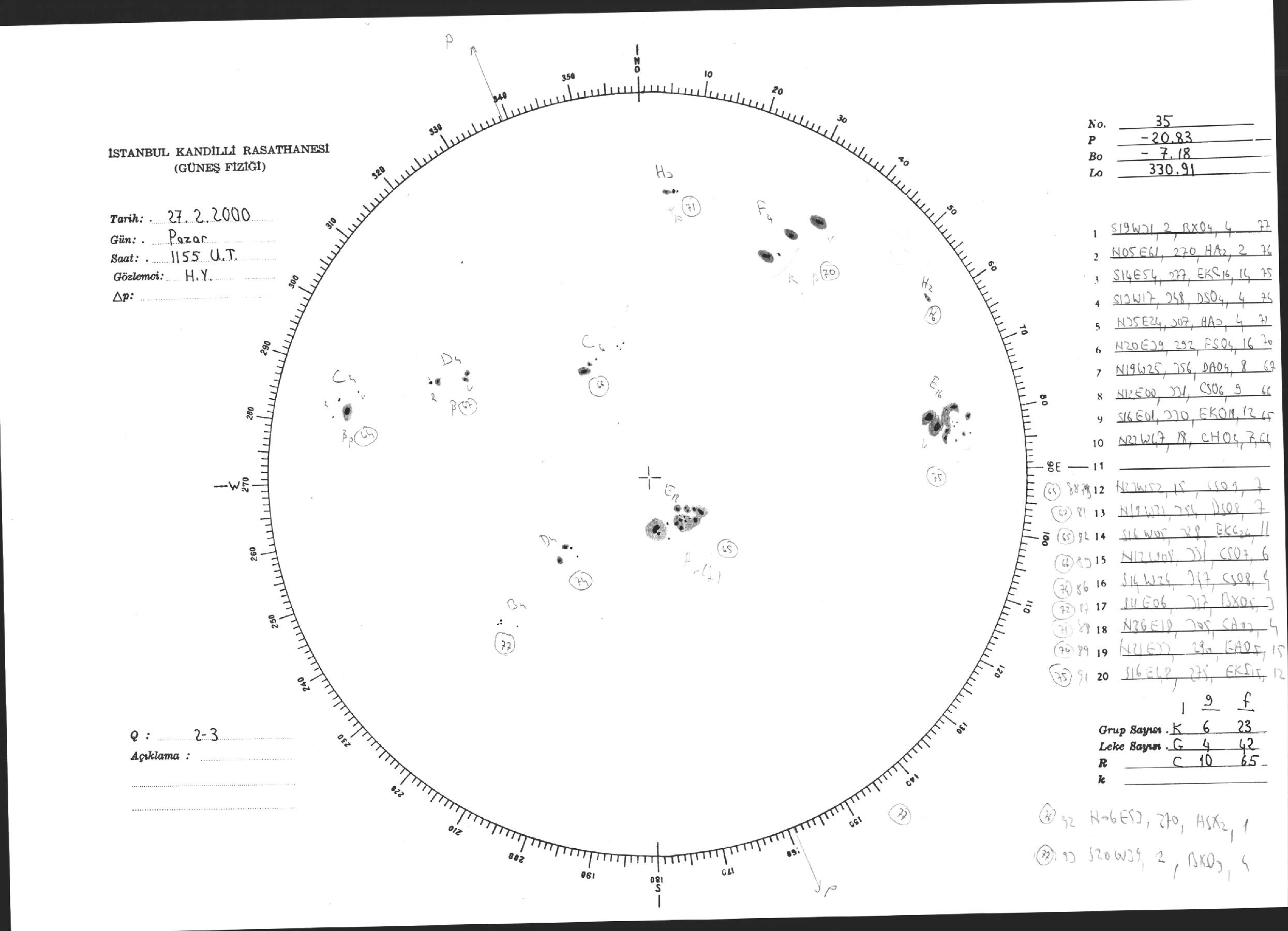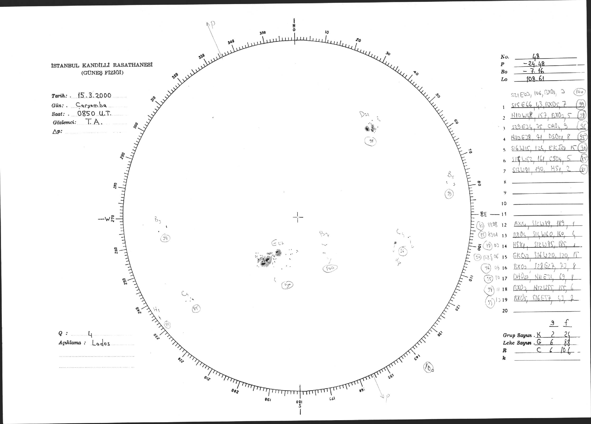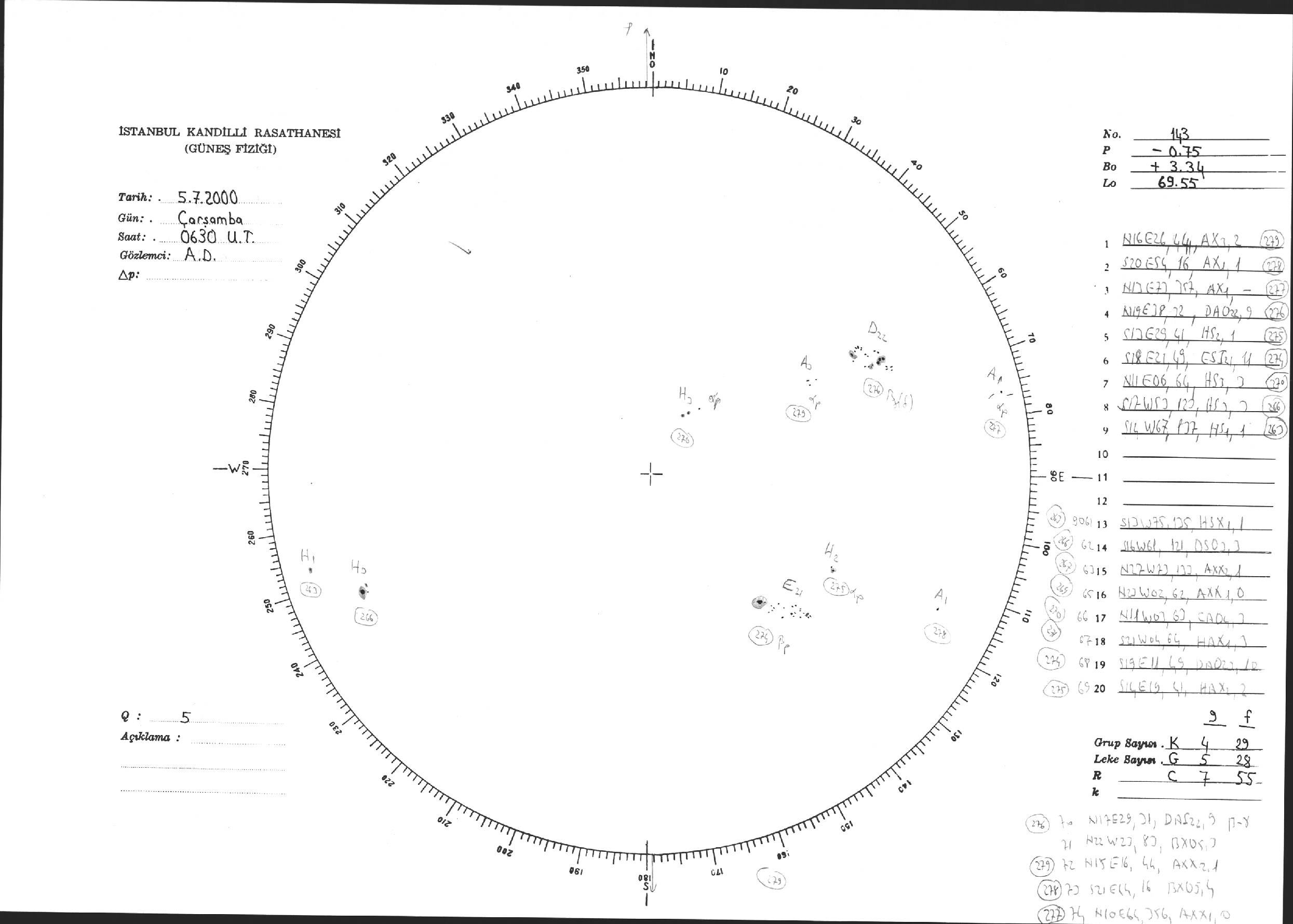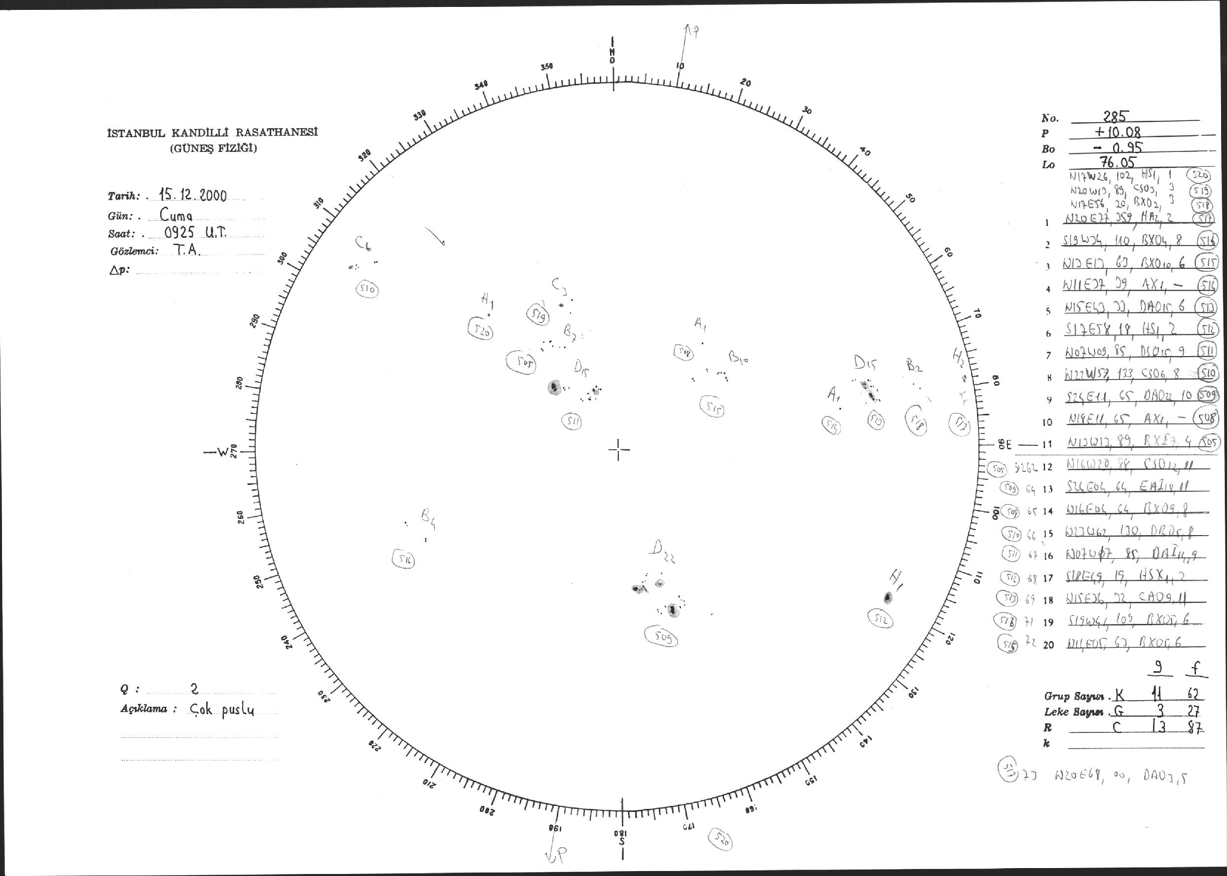 Güneş Lekesi Çizimleri / Kandilli Sunspot Drawings