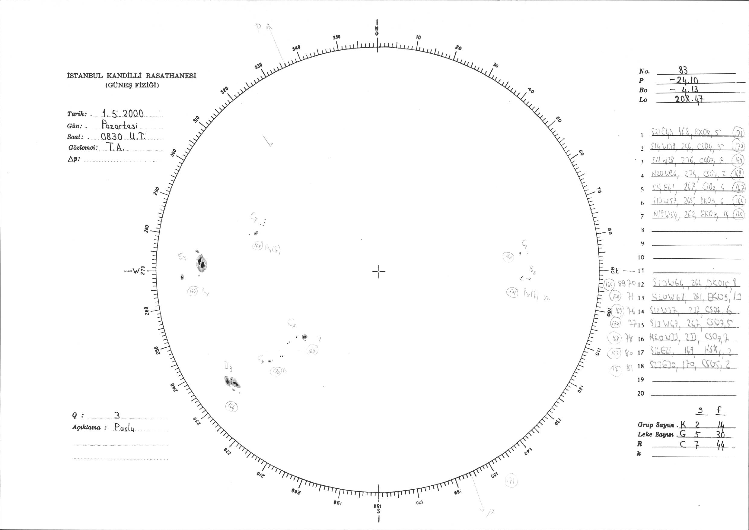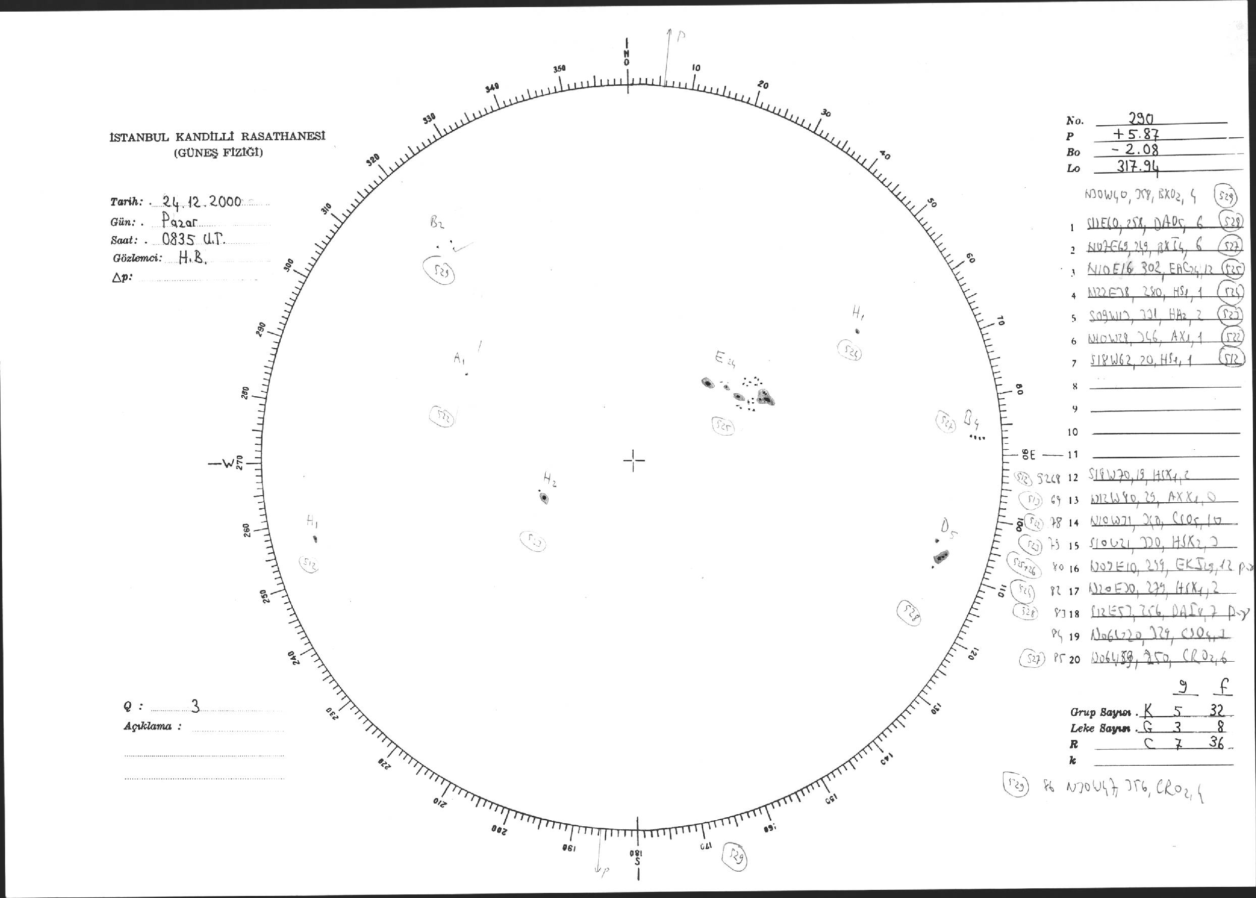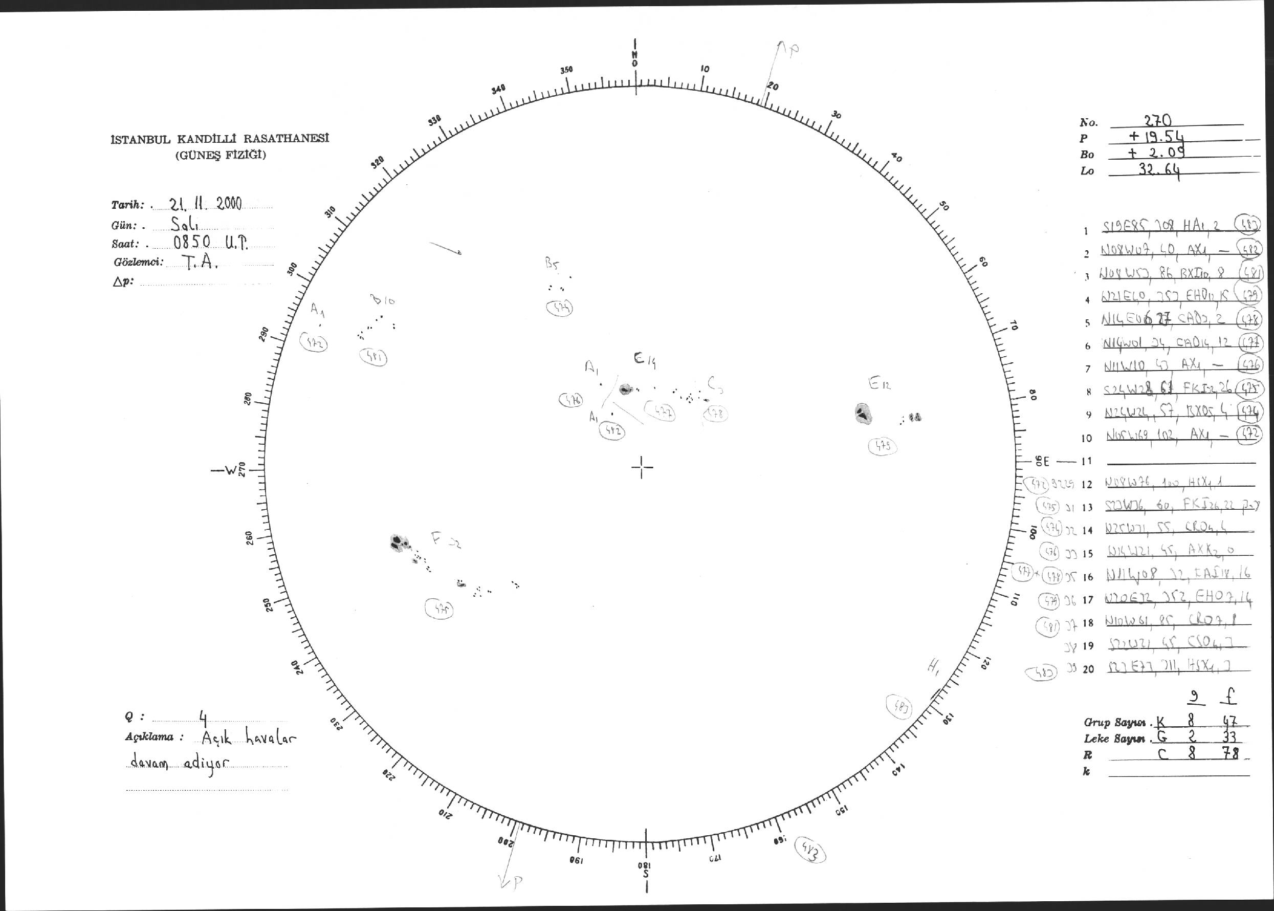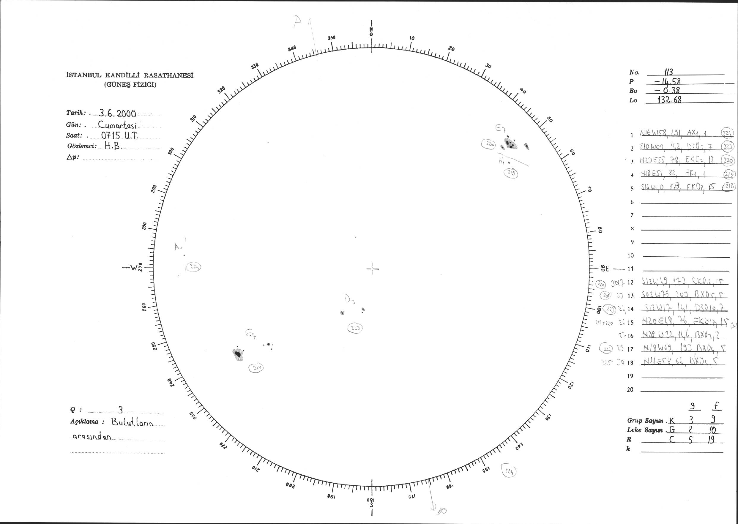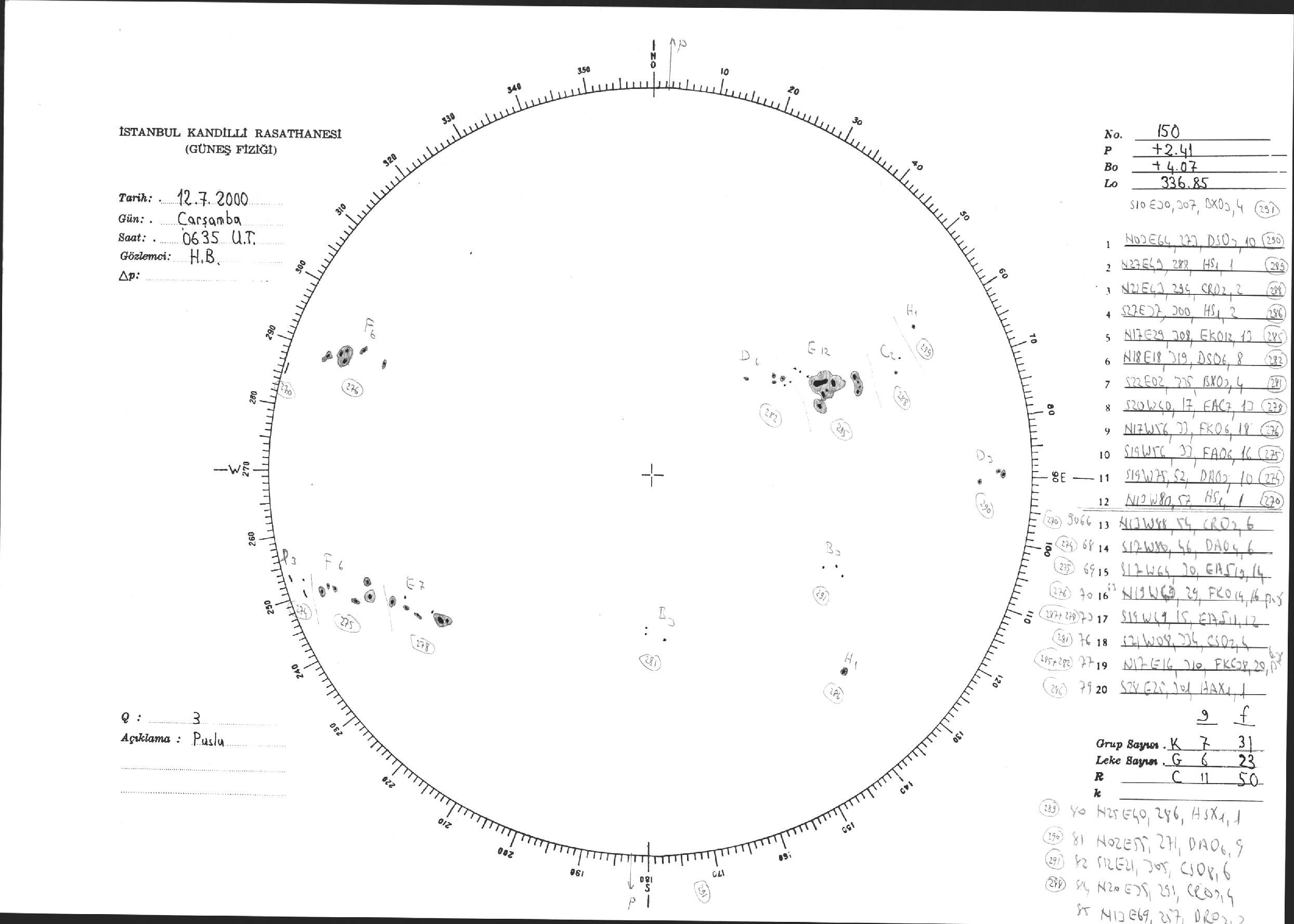 Güneş Lekesi Çizimleri / Kandilli Sunspot Drawings
