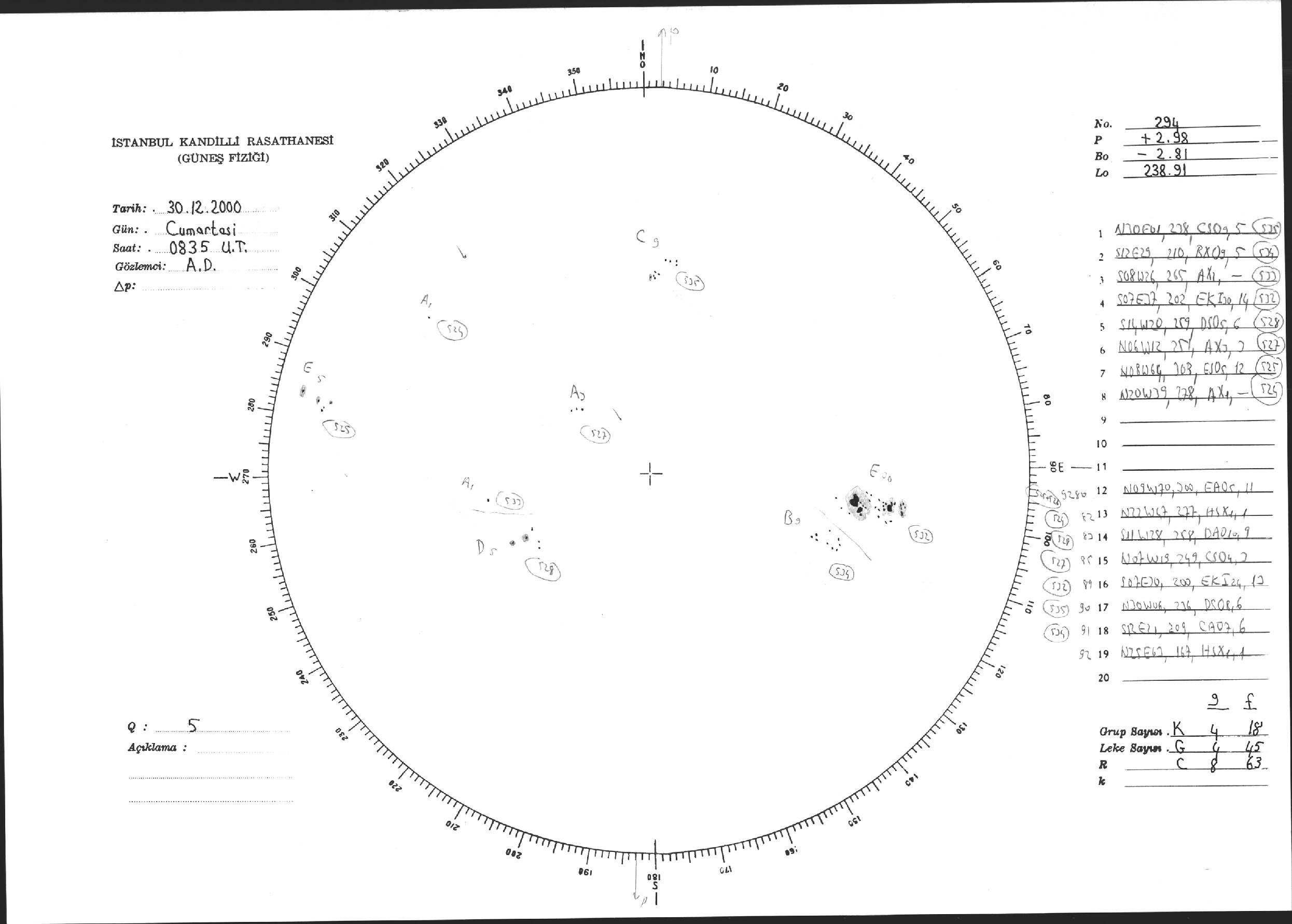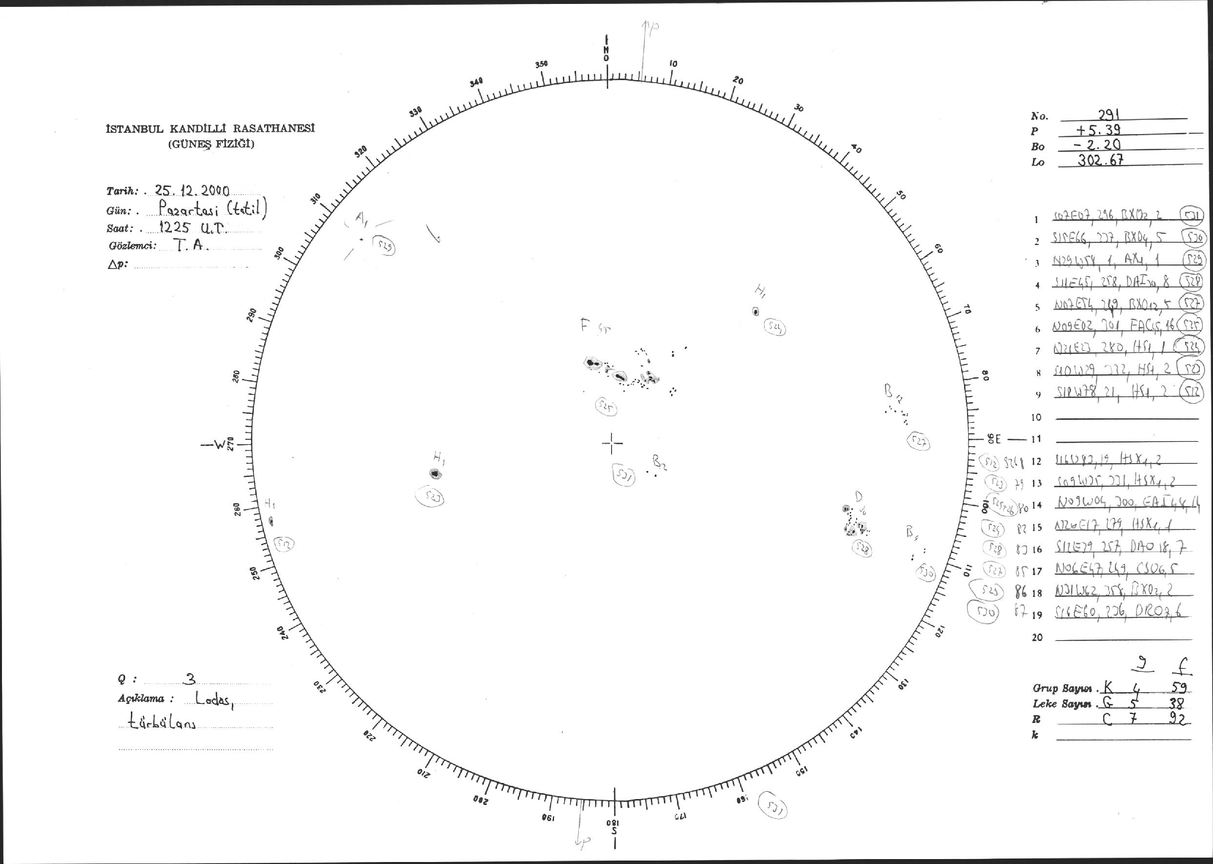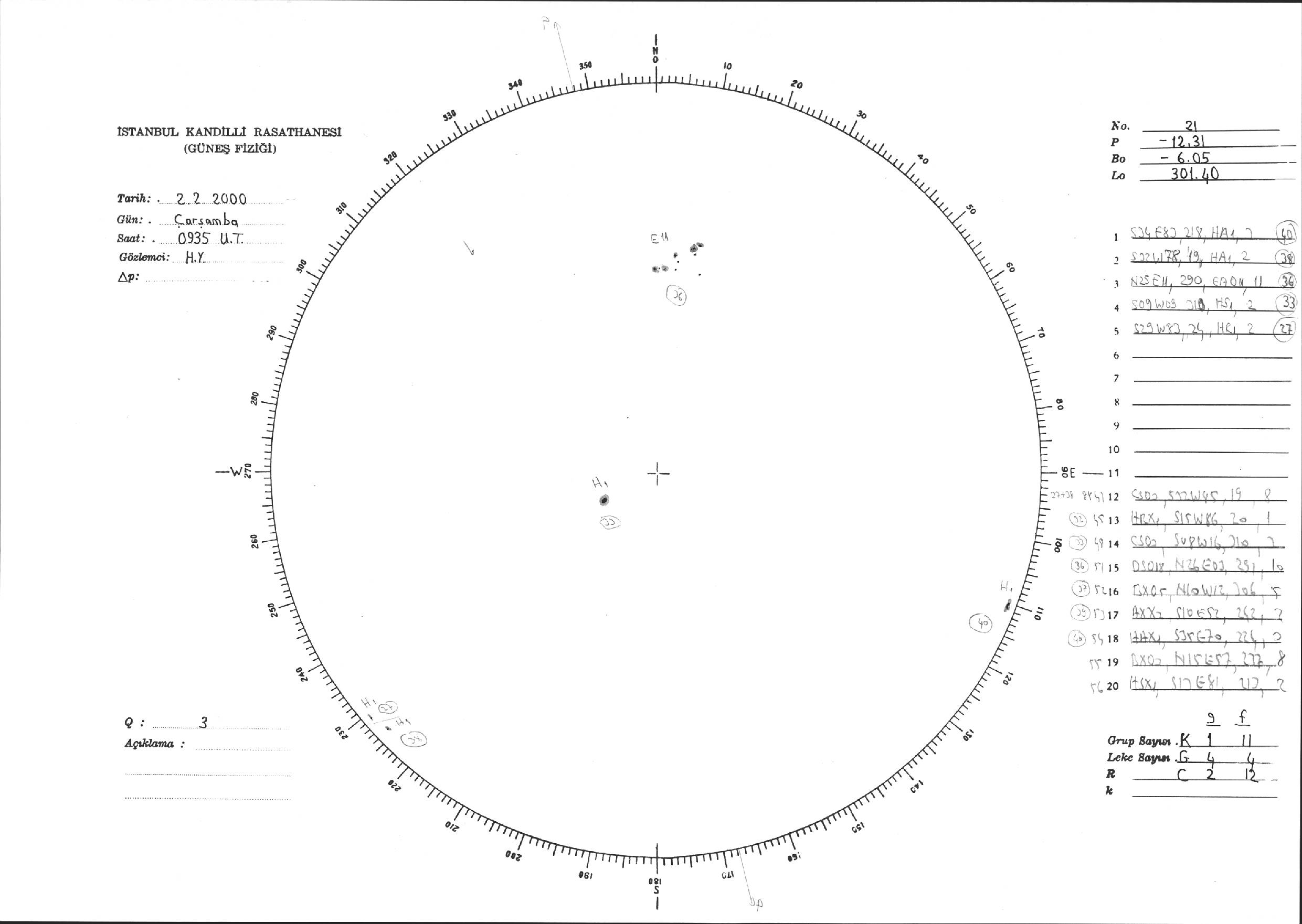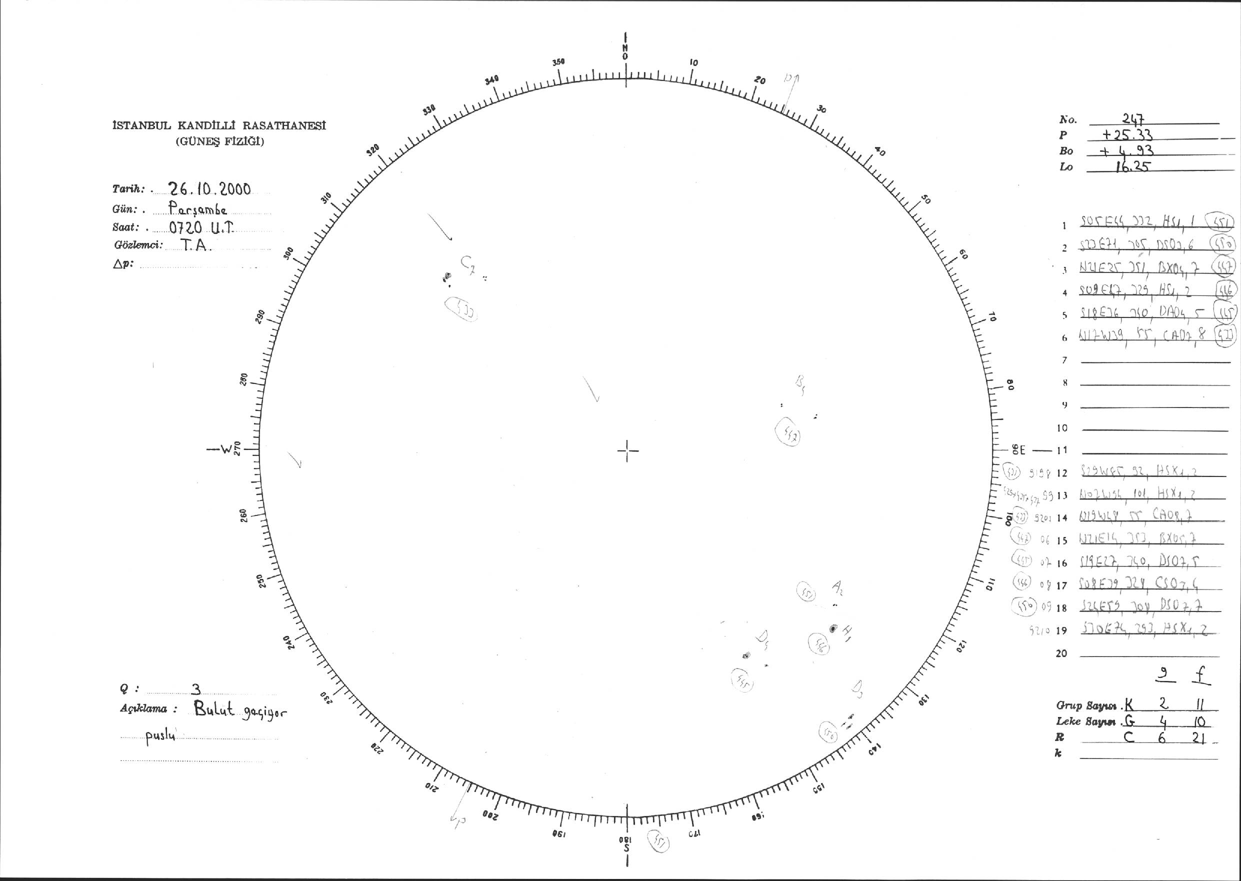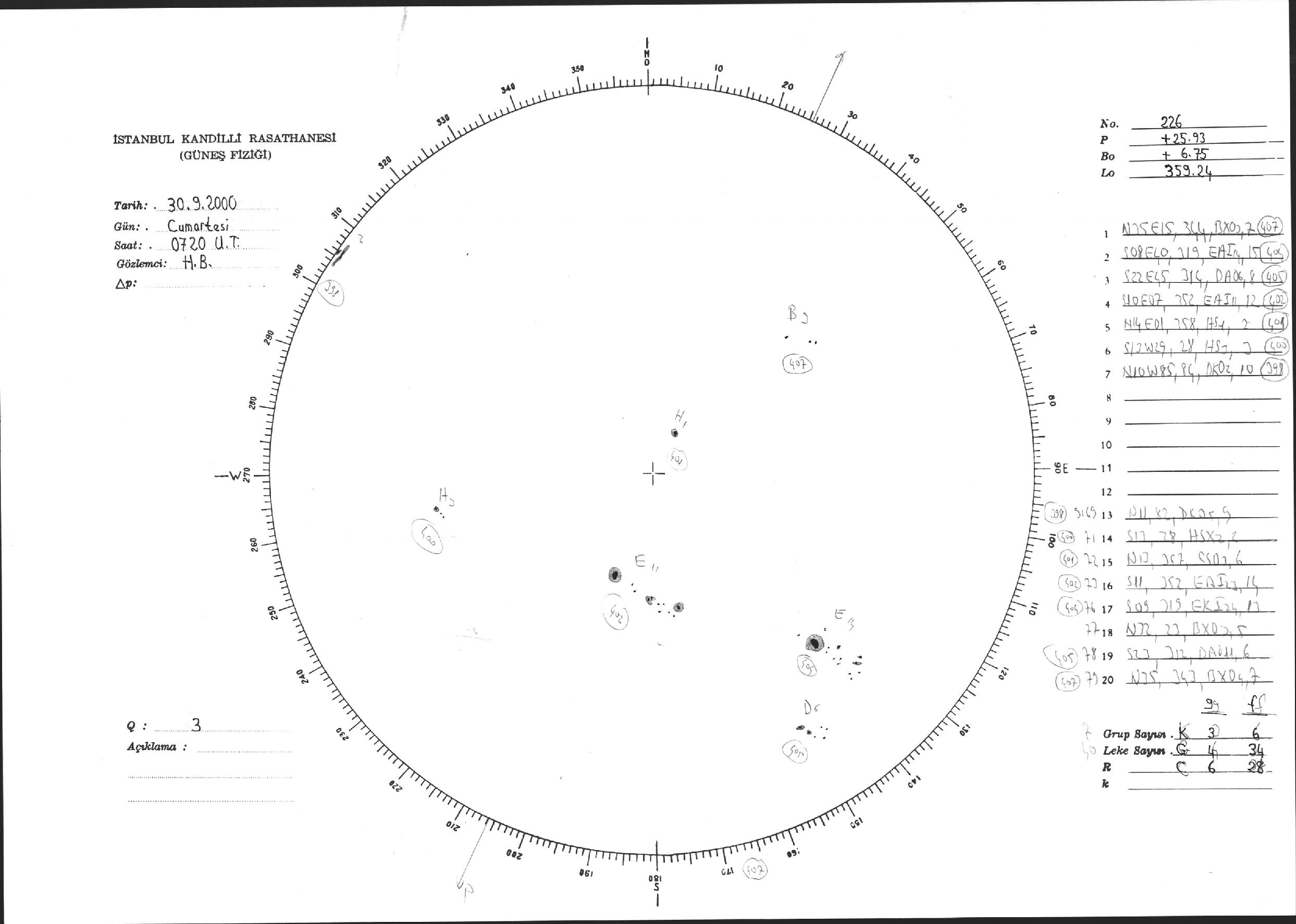 Güneş Lekesi Çizimleri / Kandilli Sunspot Drawings