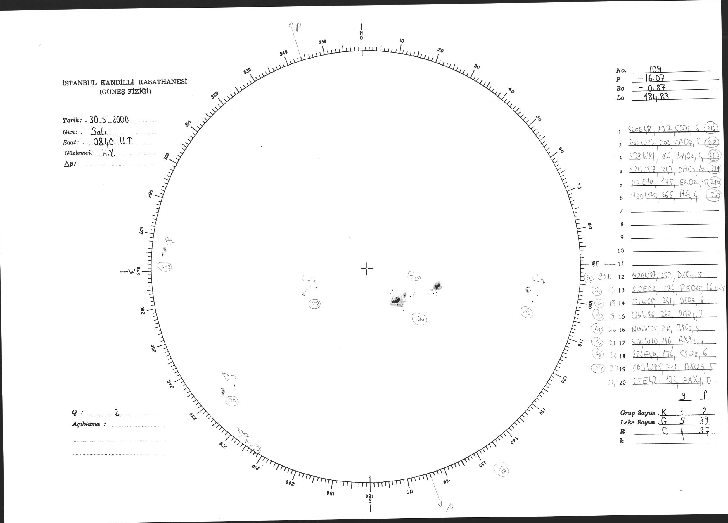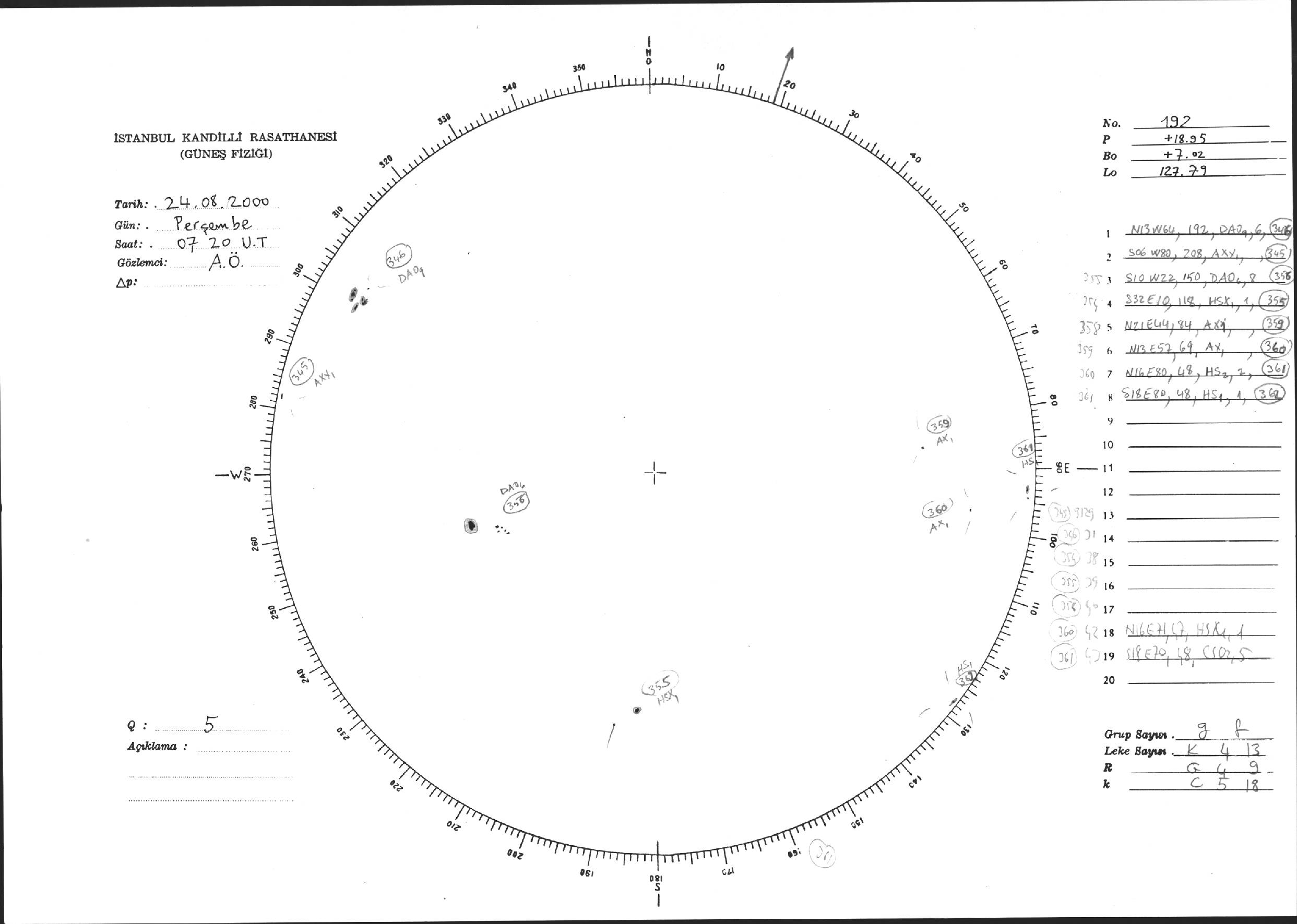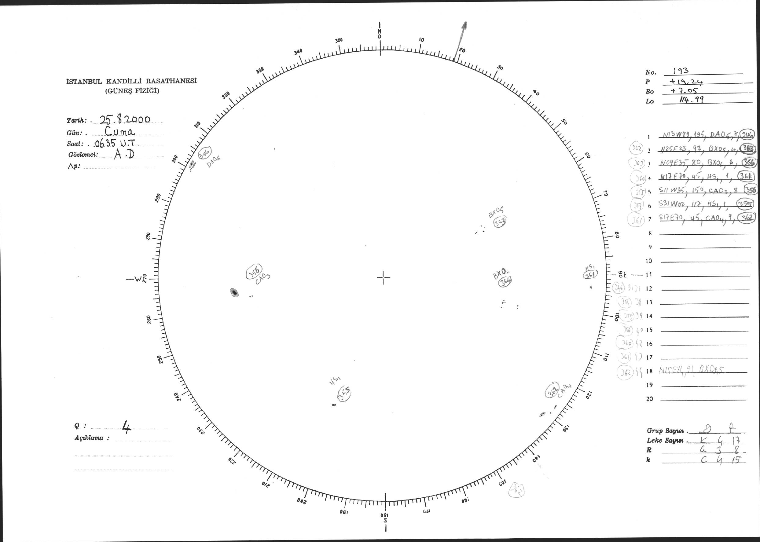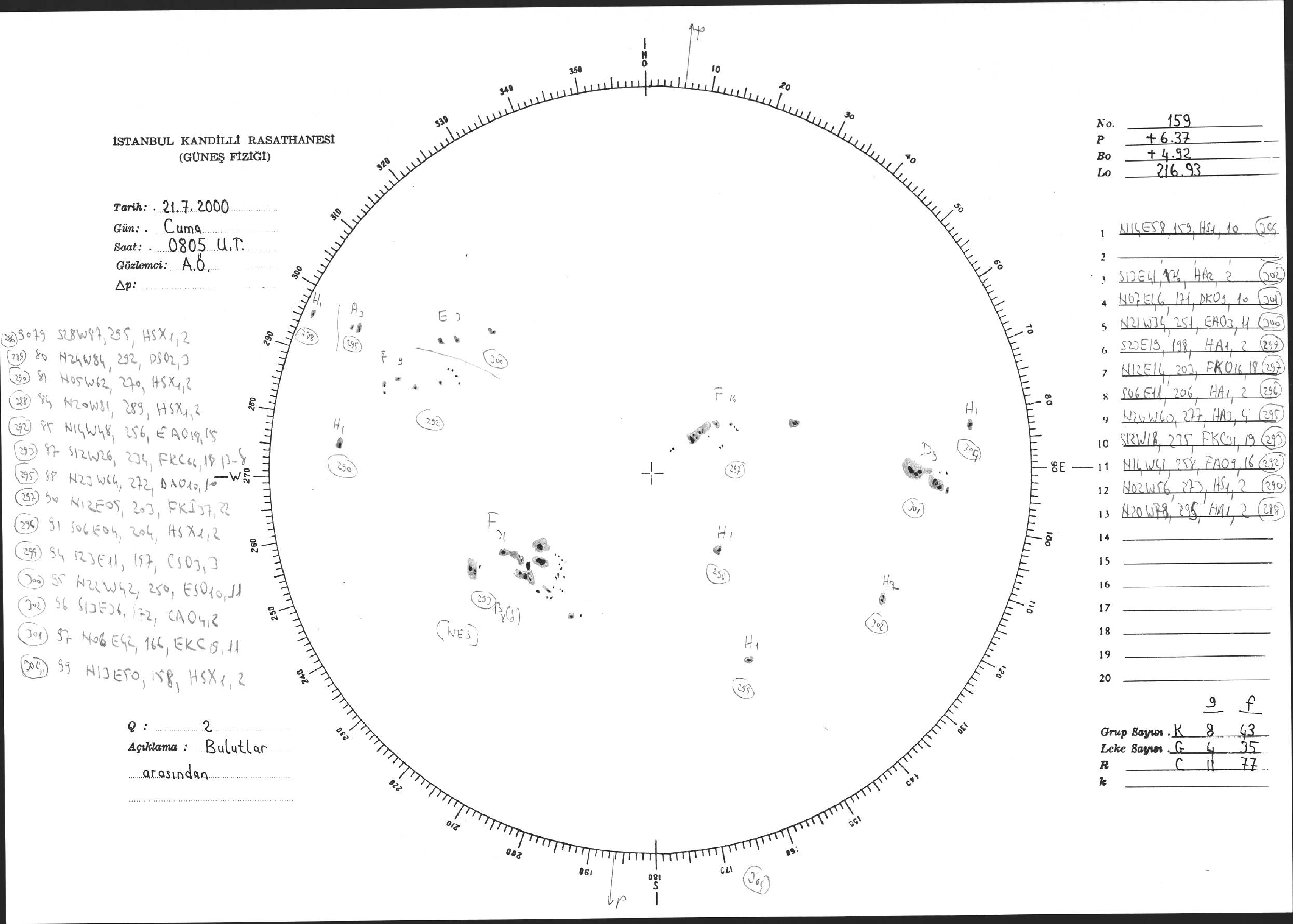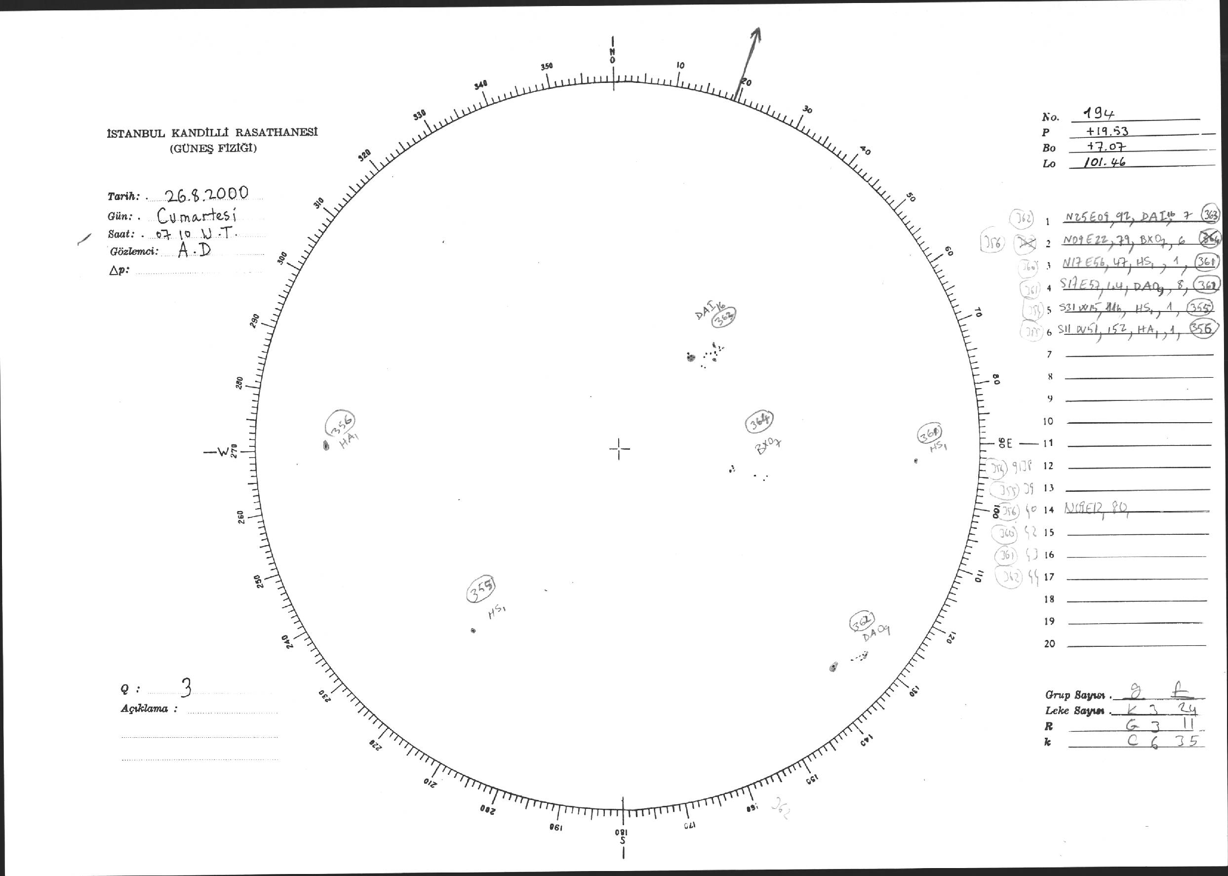 Güneş Lekesi Çizimleri / Kandilli Sunspot Drawings