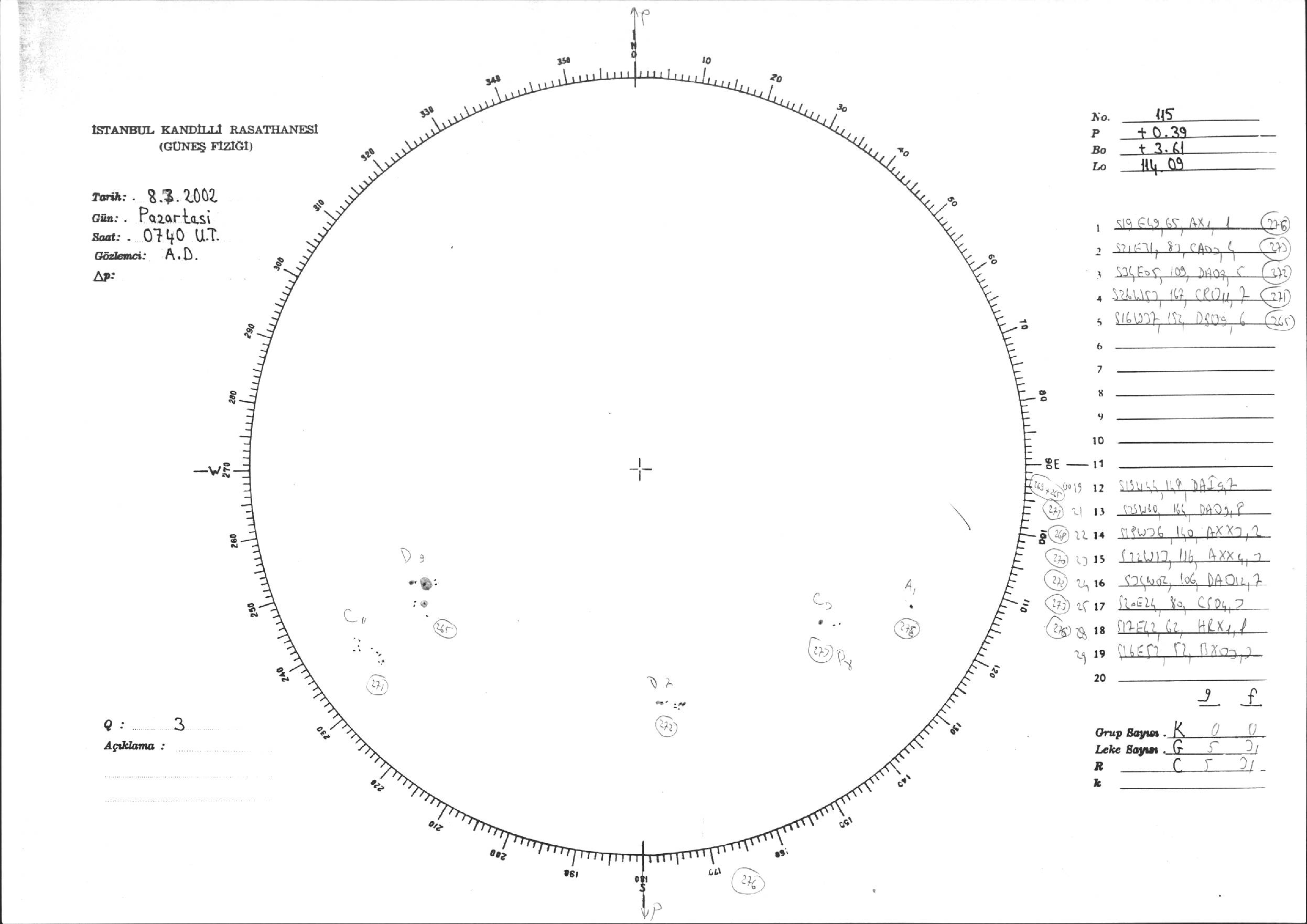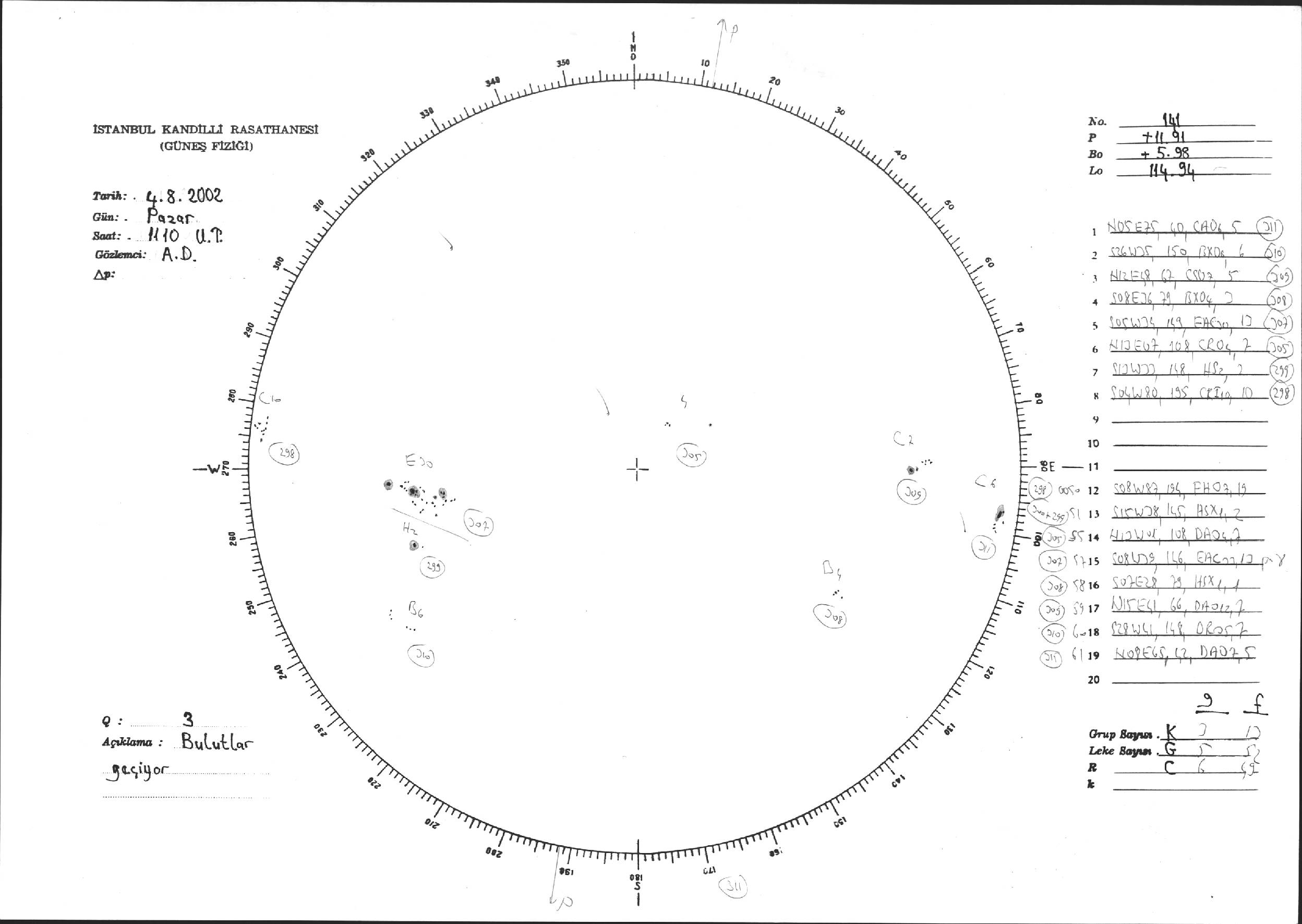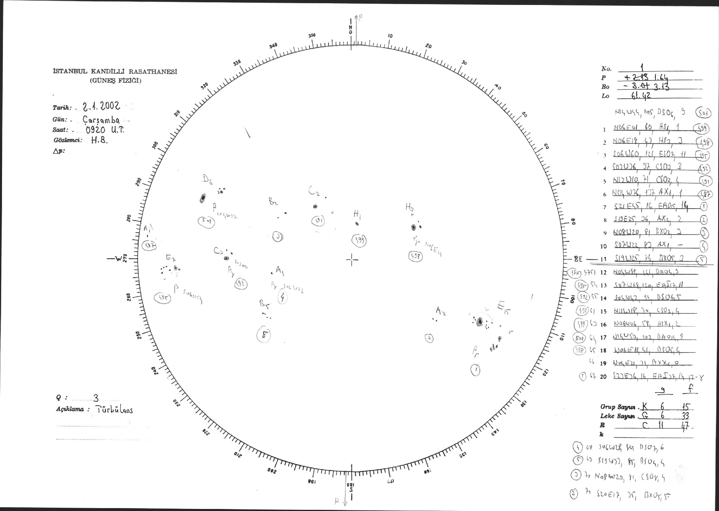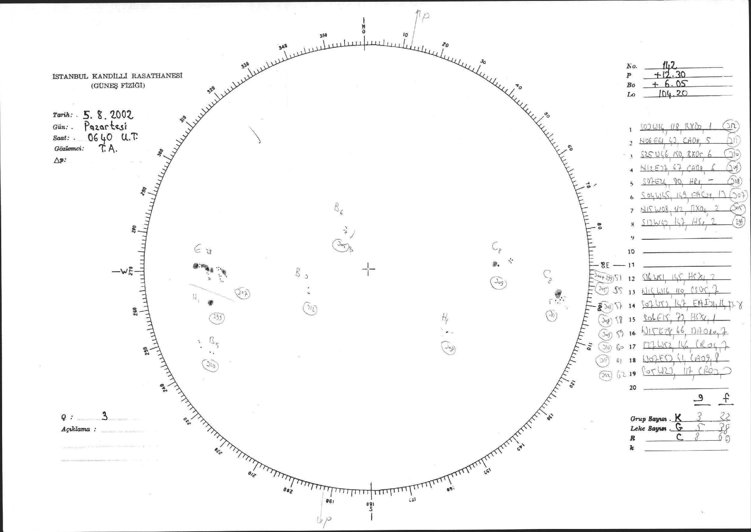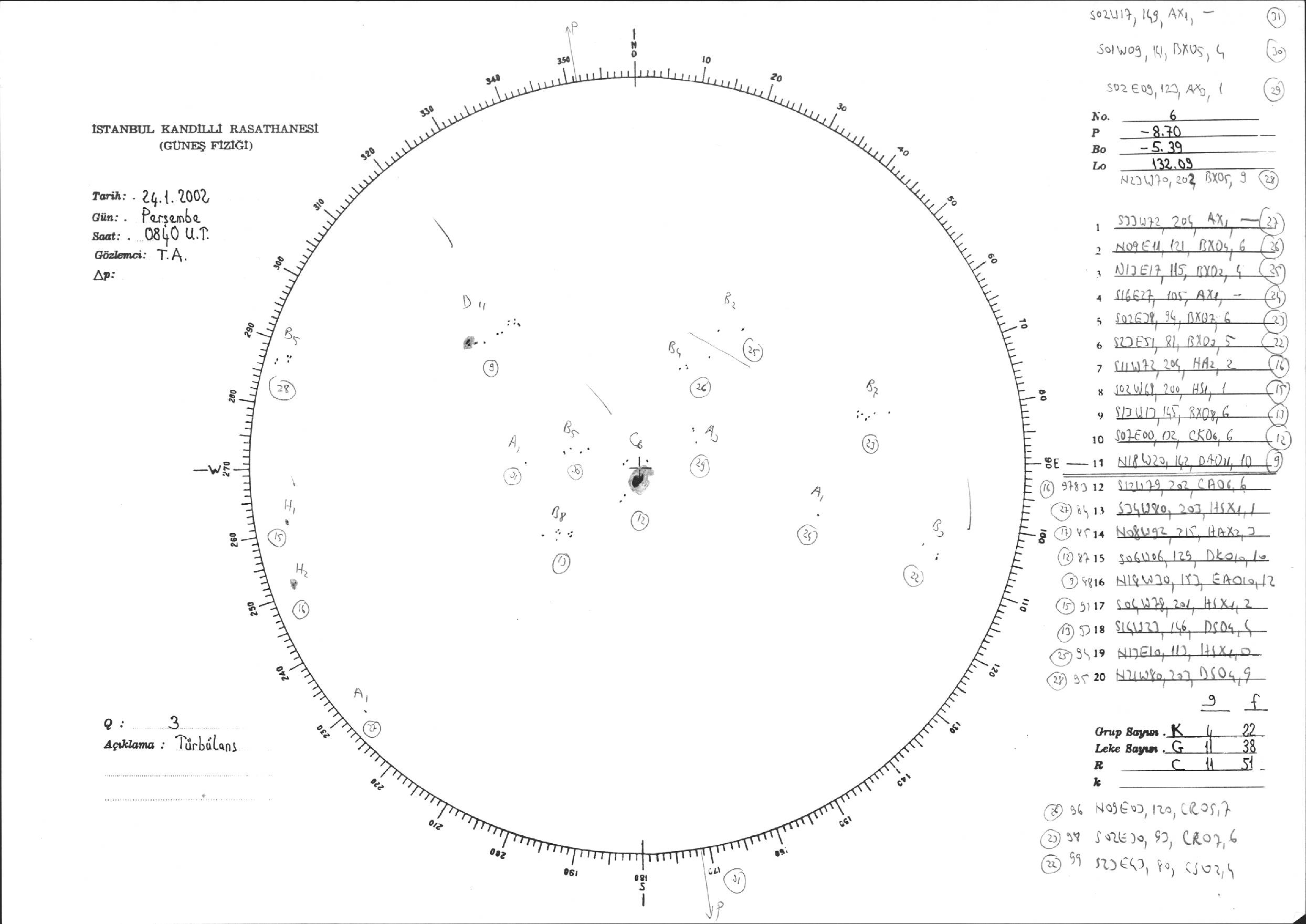 Güneş Lekesi Çizimleri / Kandilli Sunspot Drawings