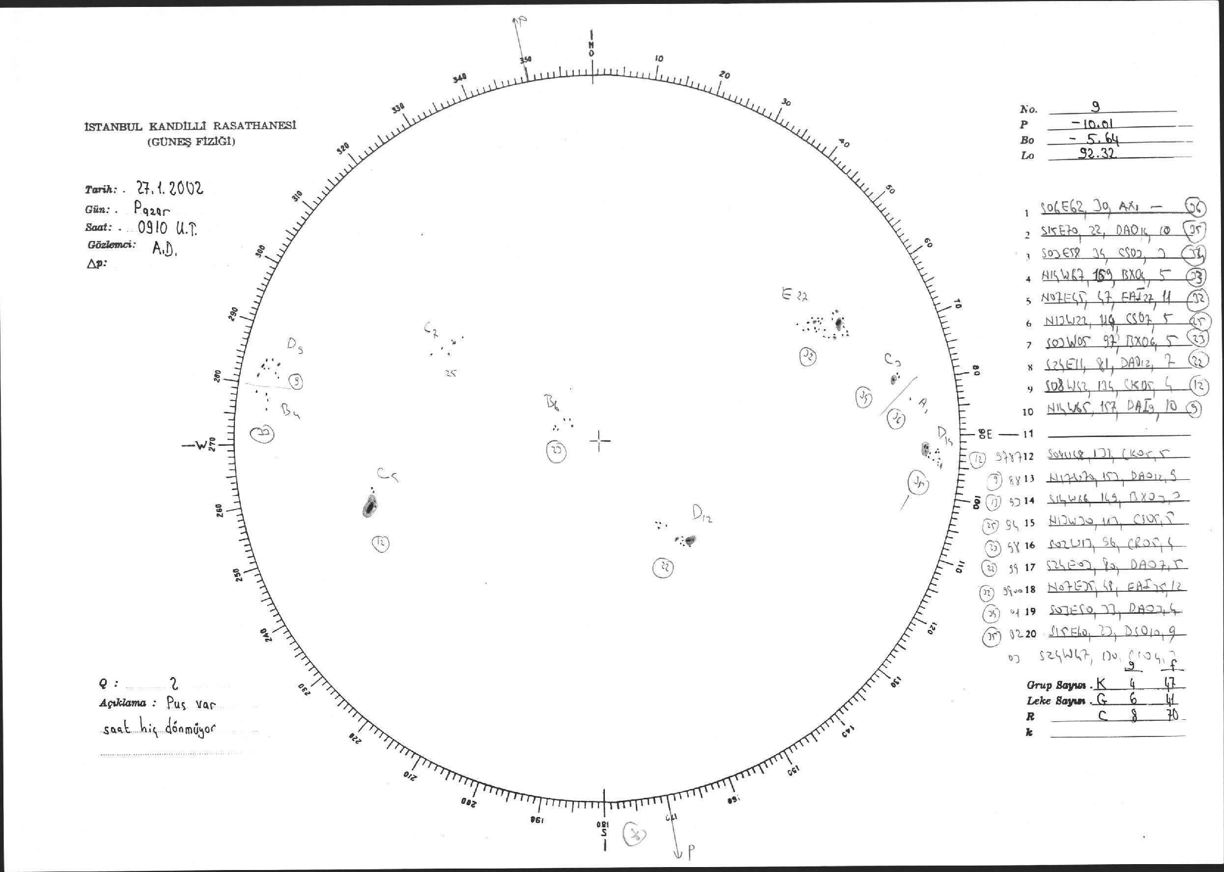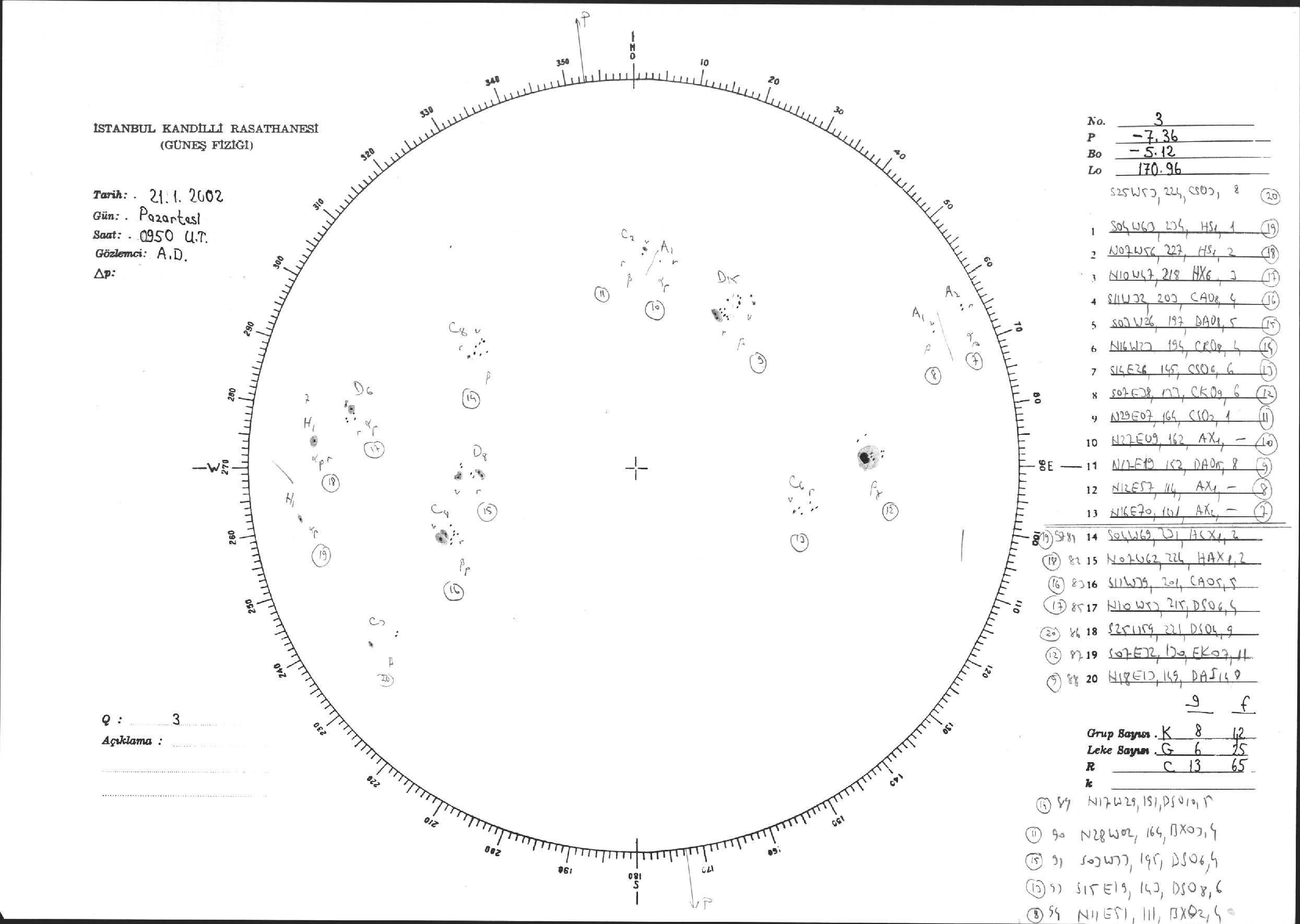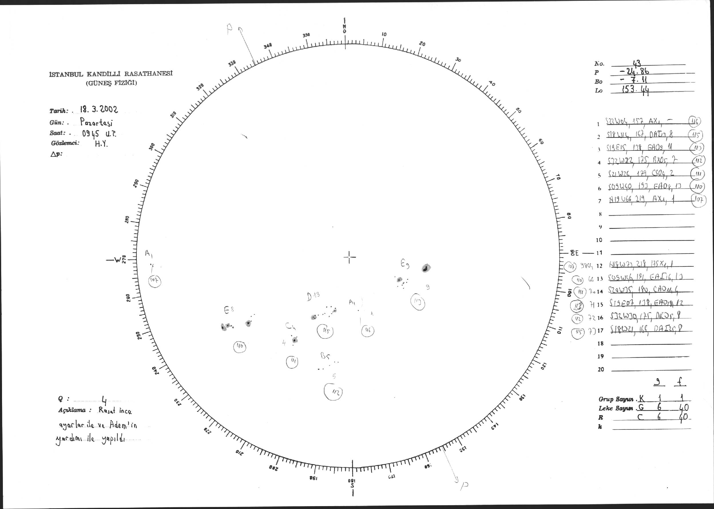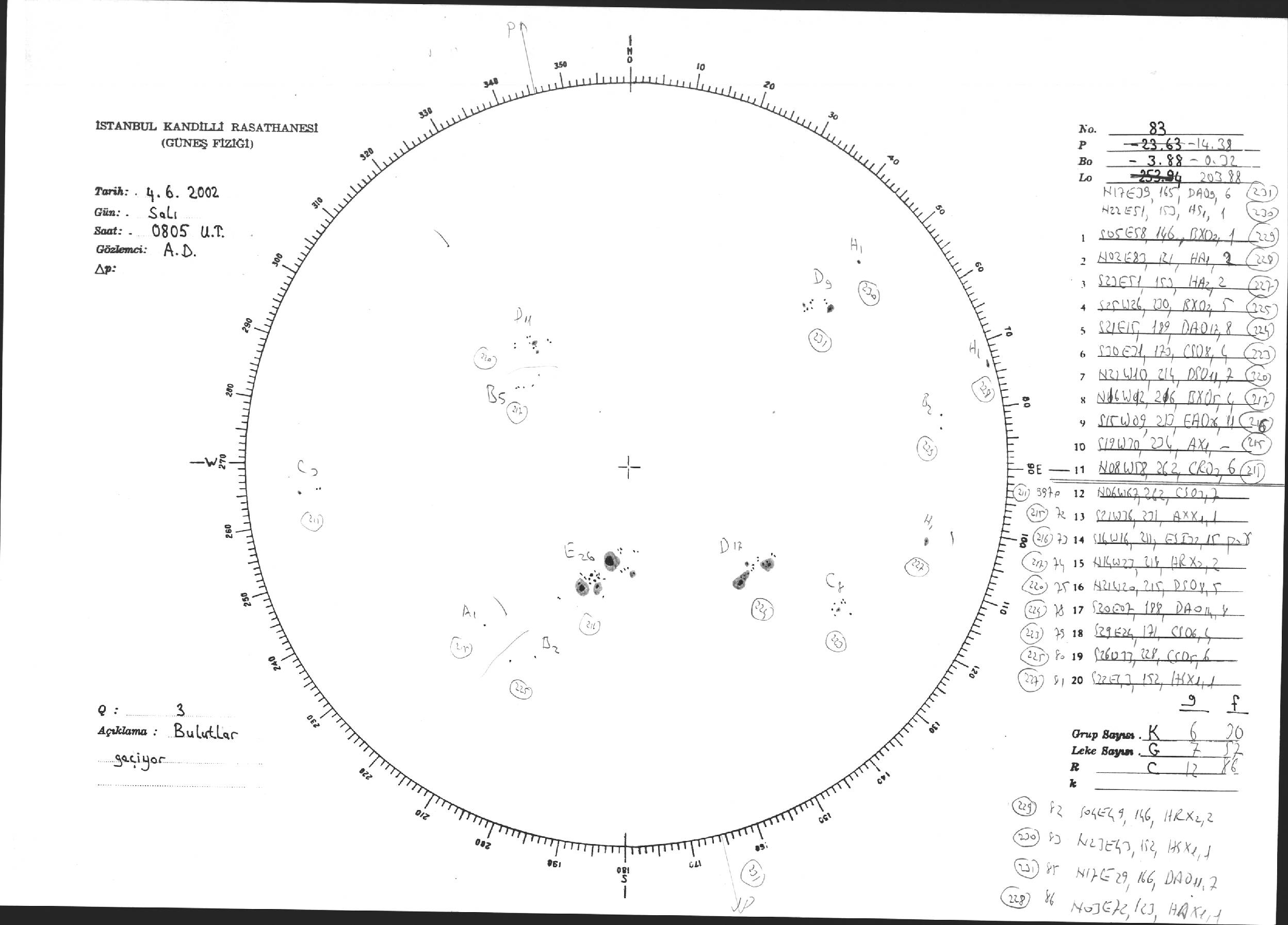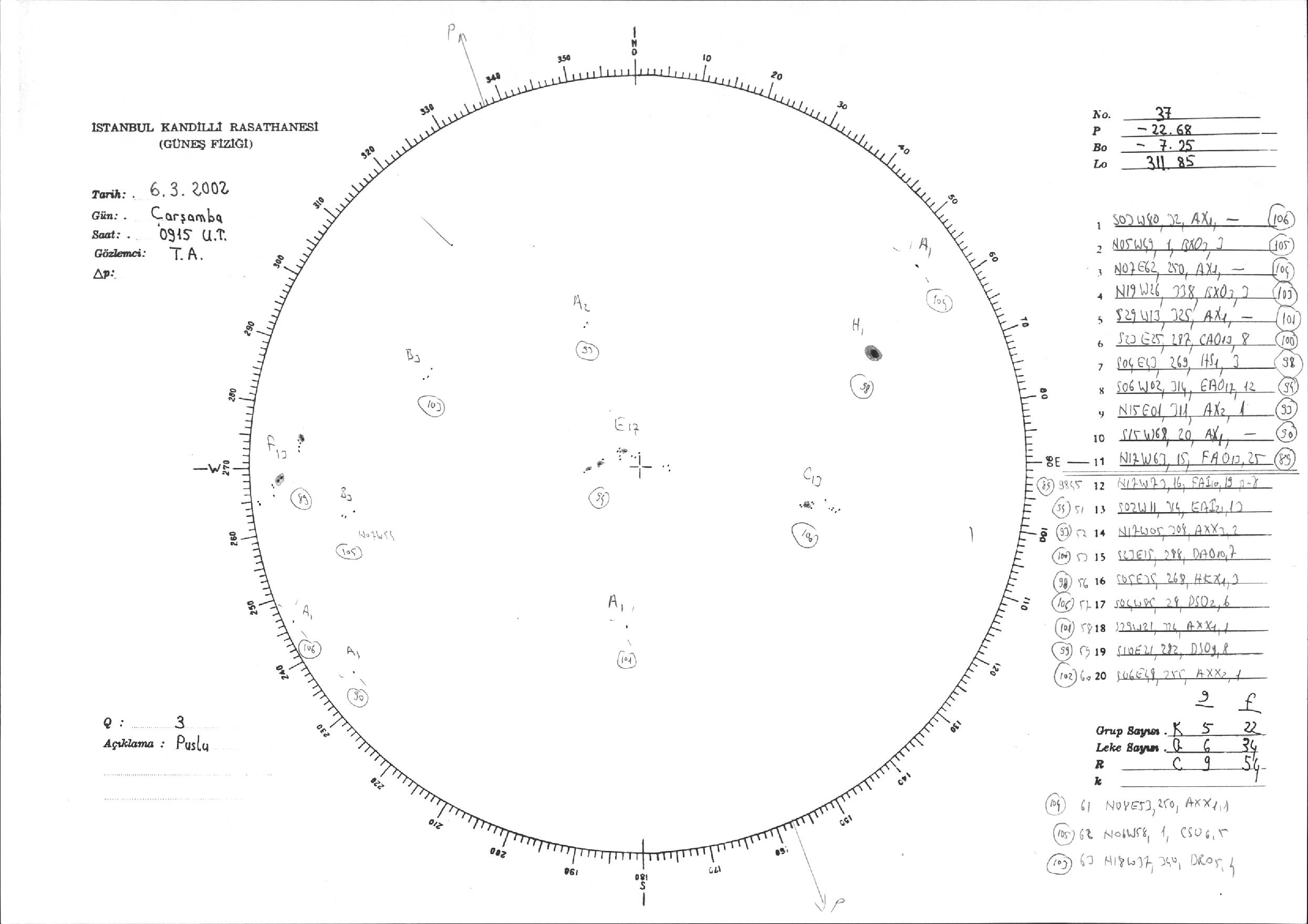 Güneş Lekesi Çizimleri / Kandilli Sunspot Drawings