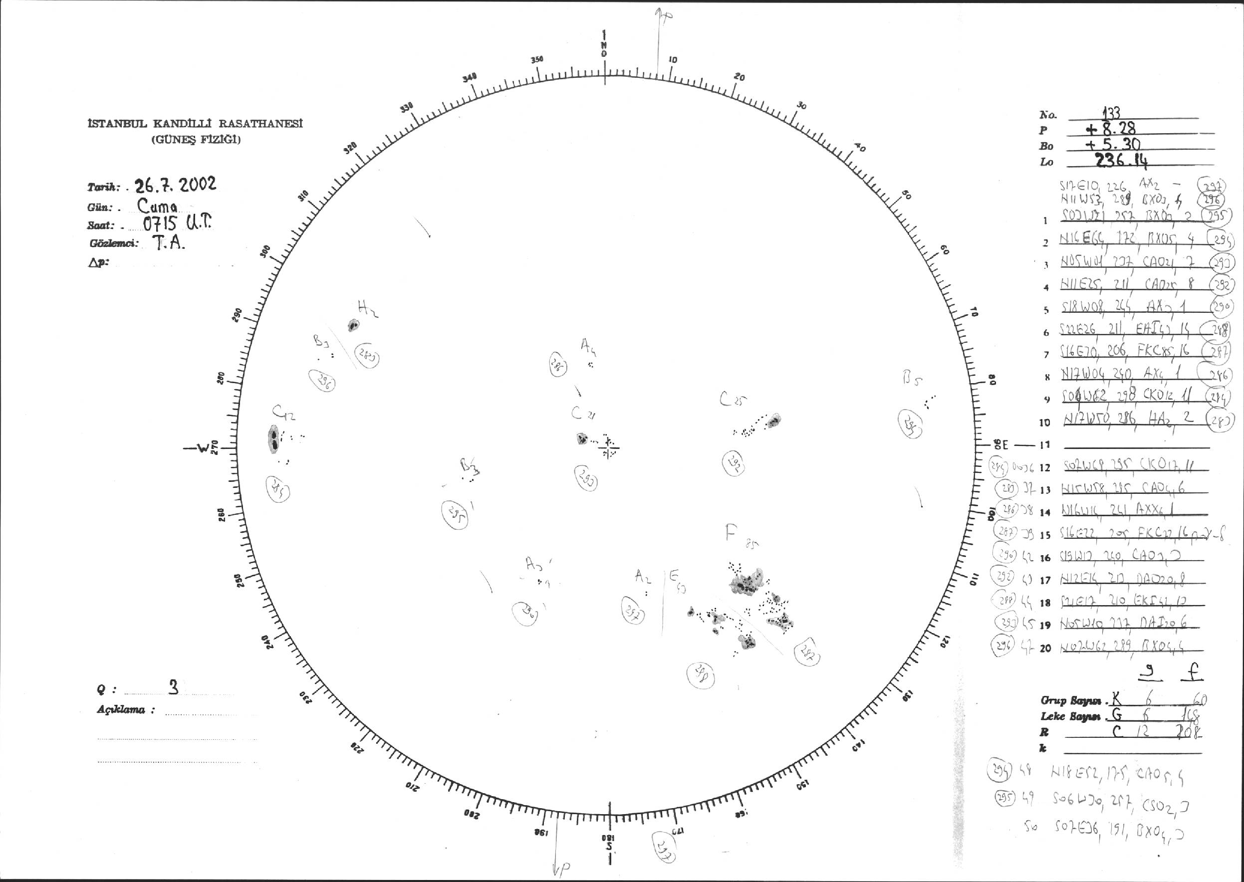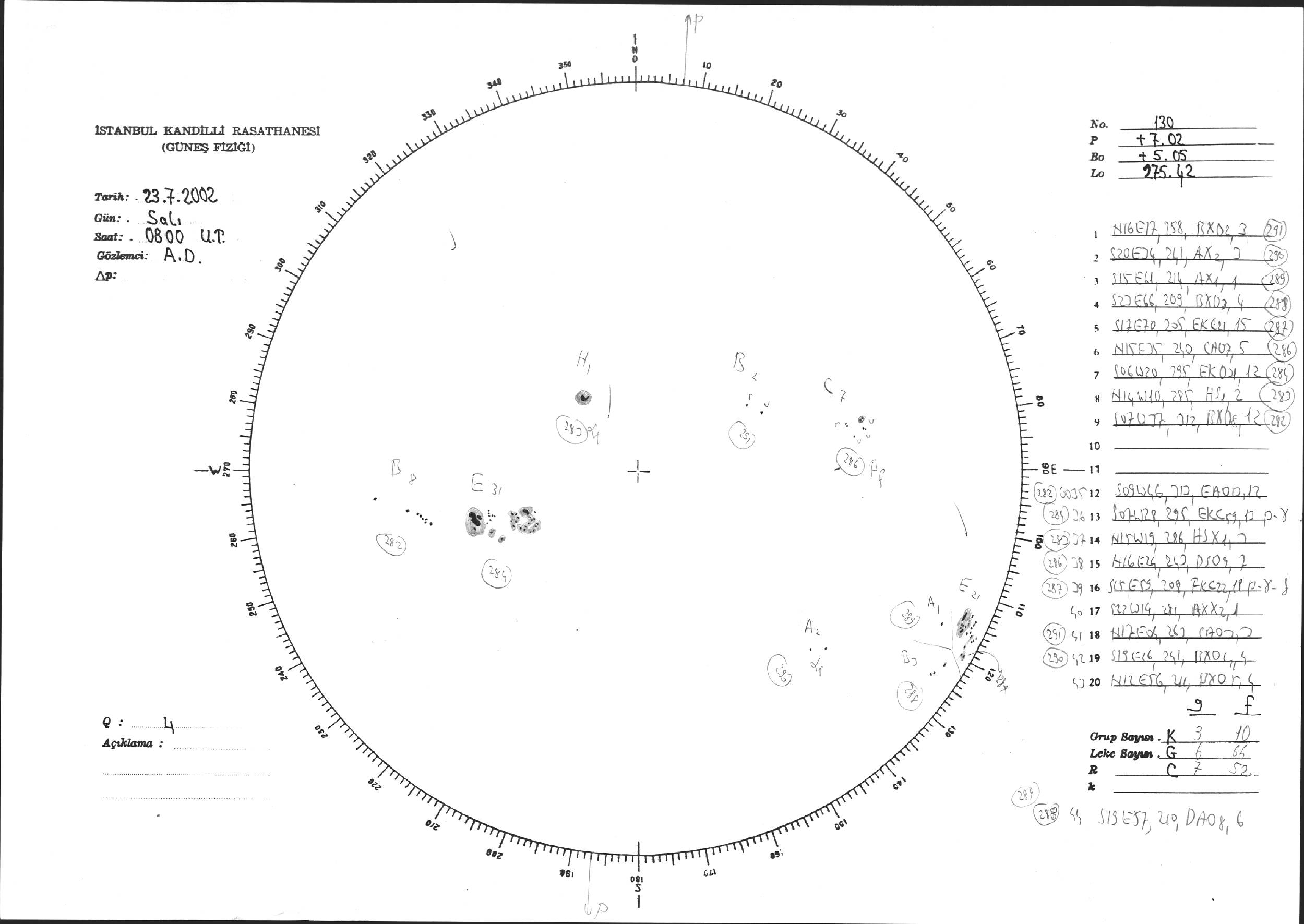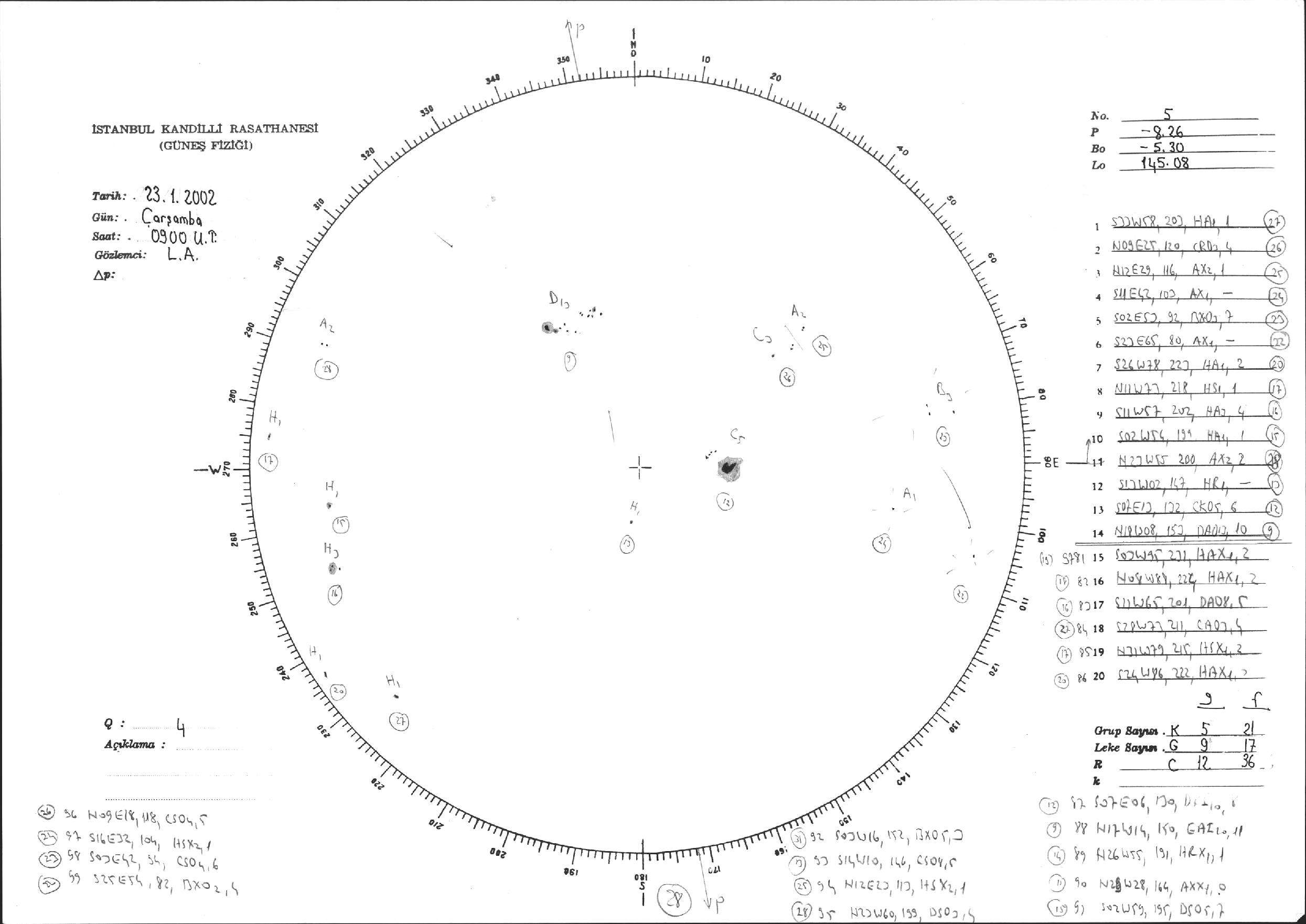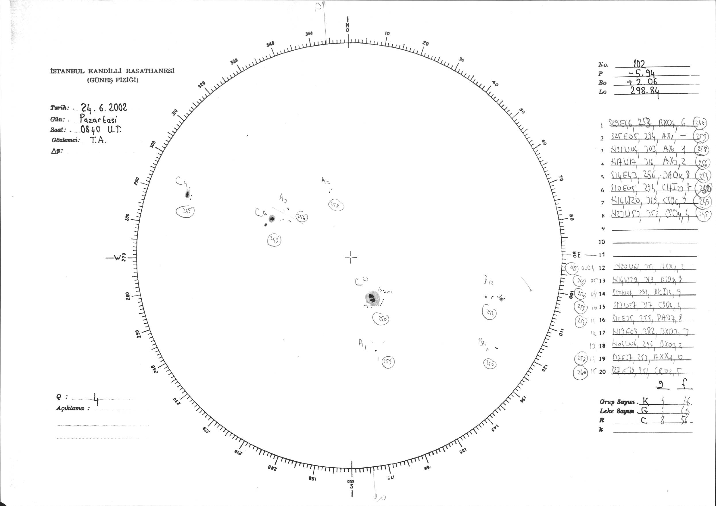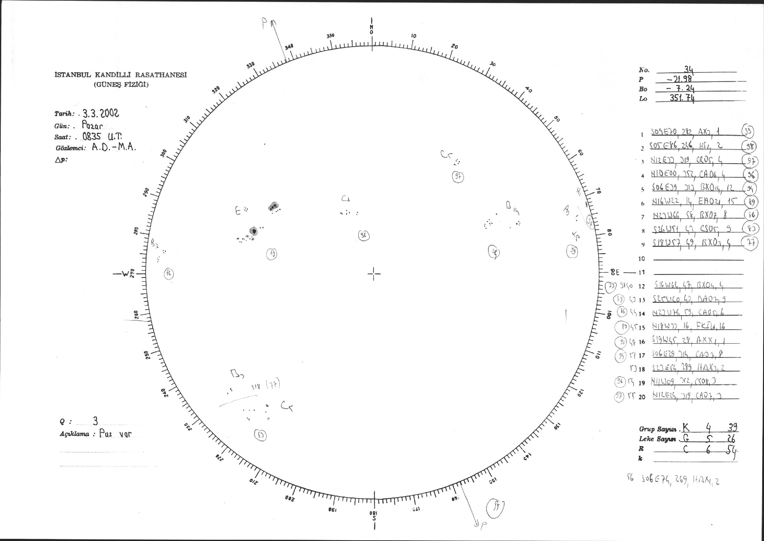Güneş Lekesi Çizimleri / Kandilli Sunspot Drawings