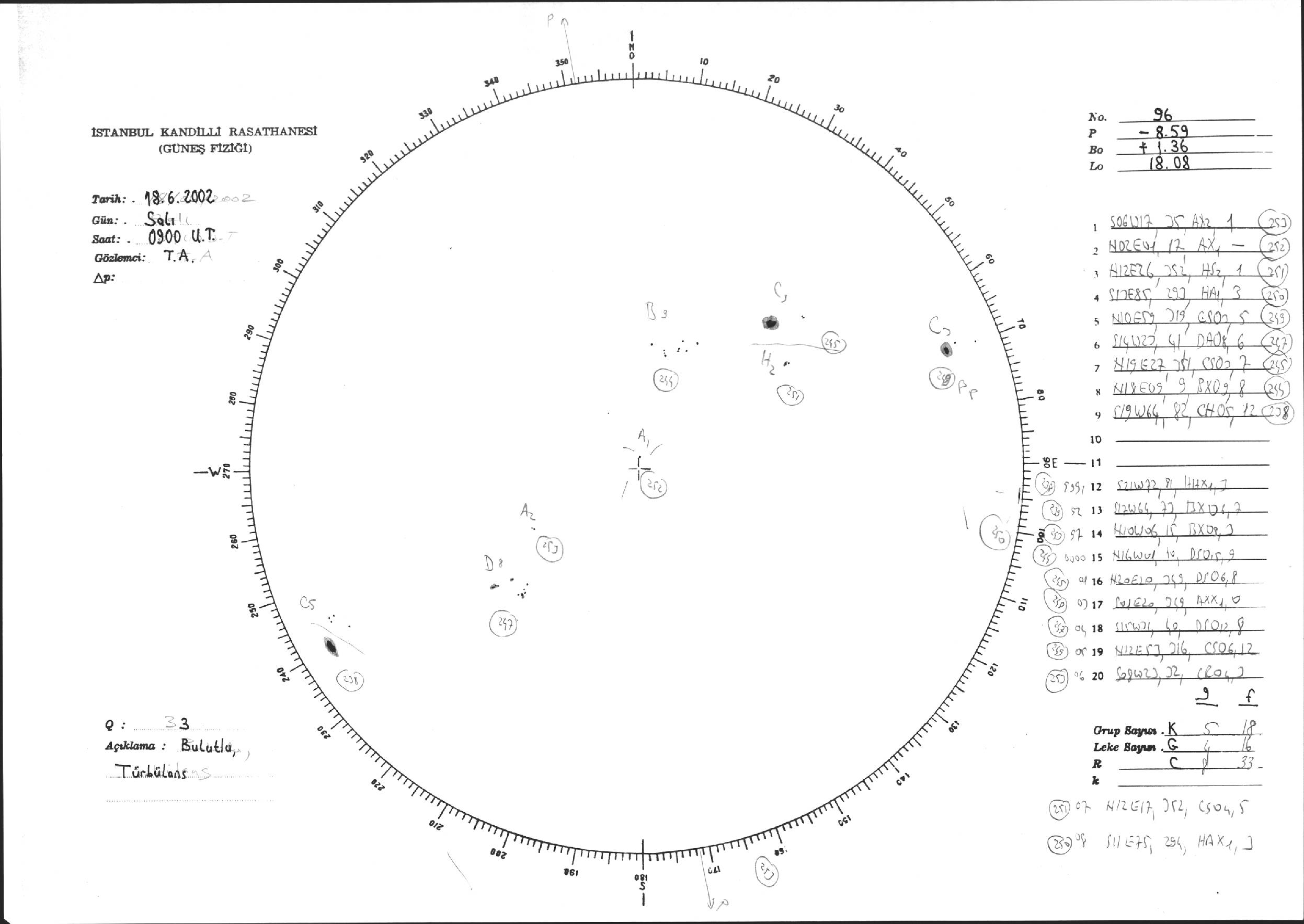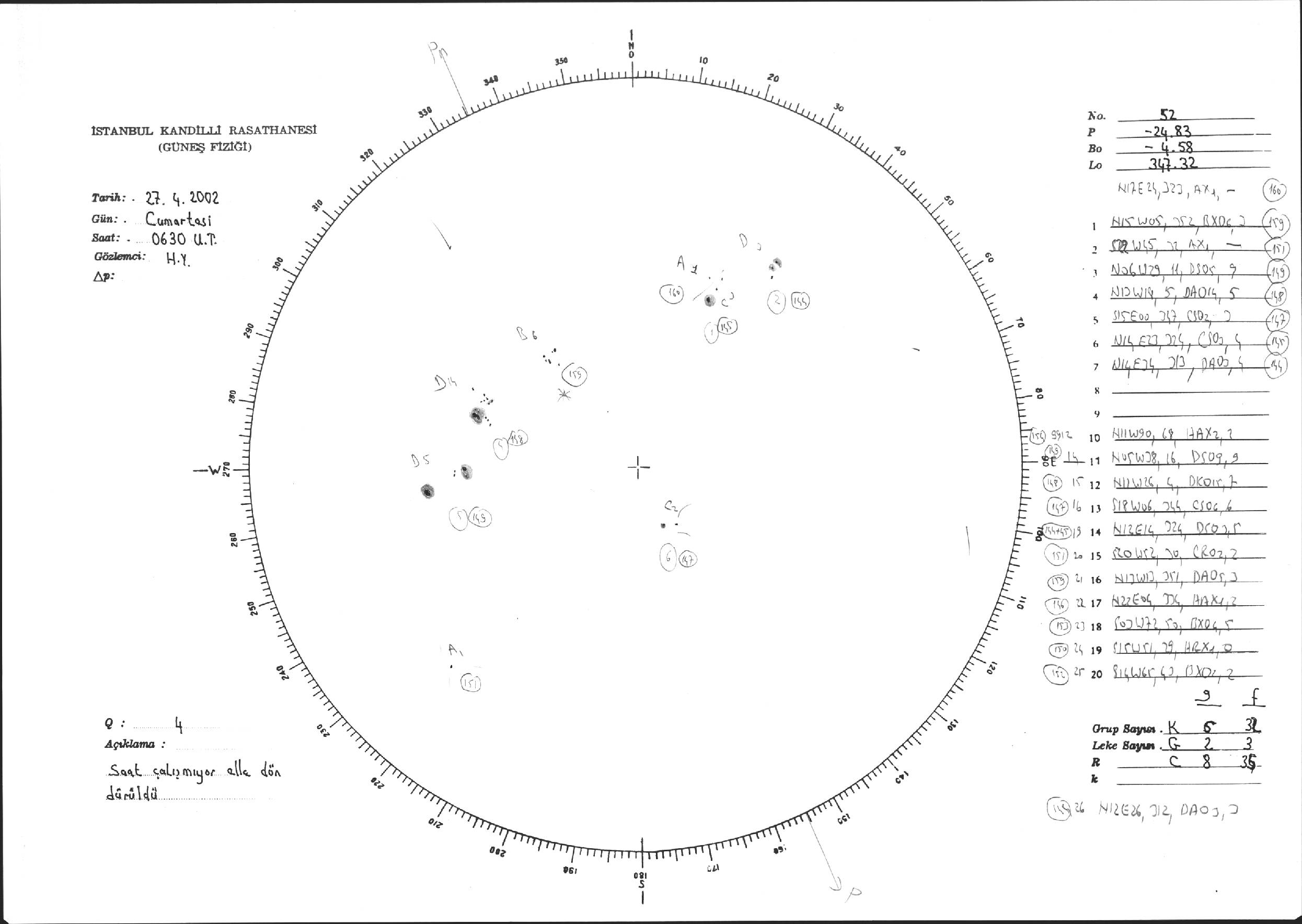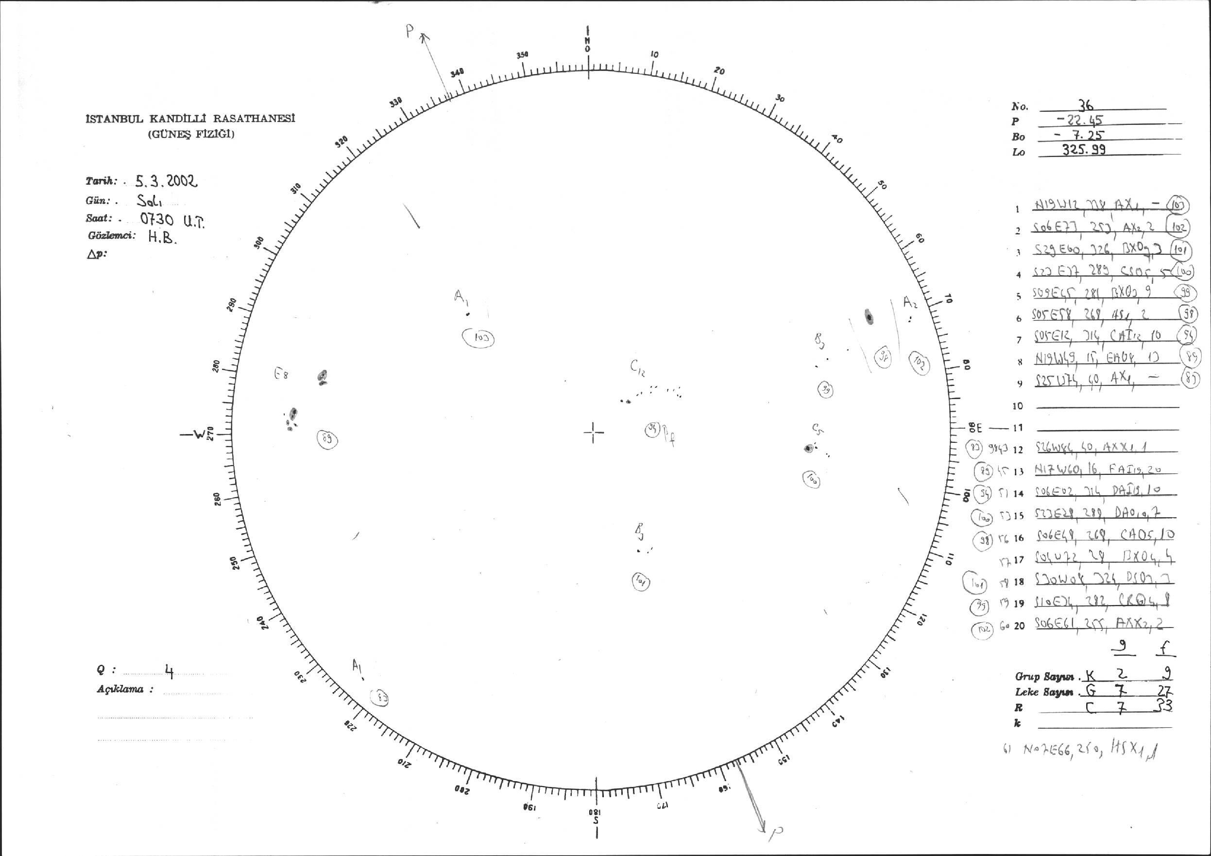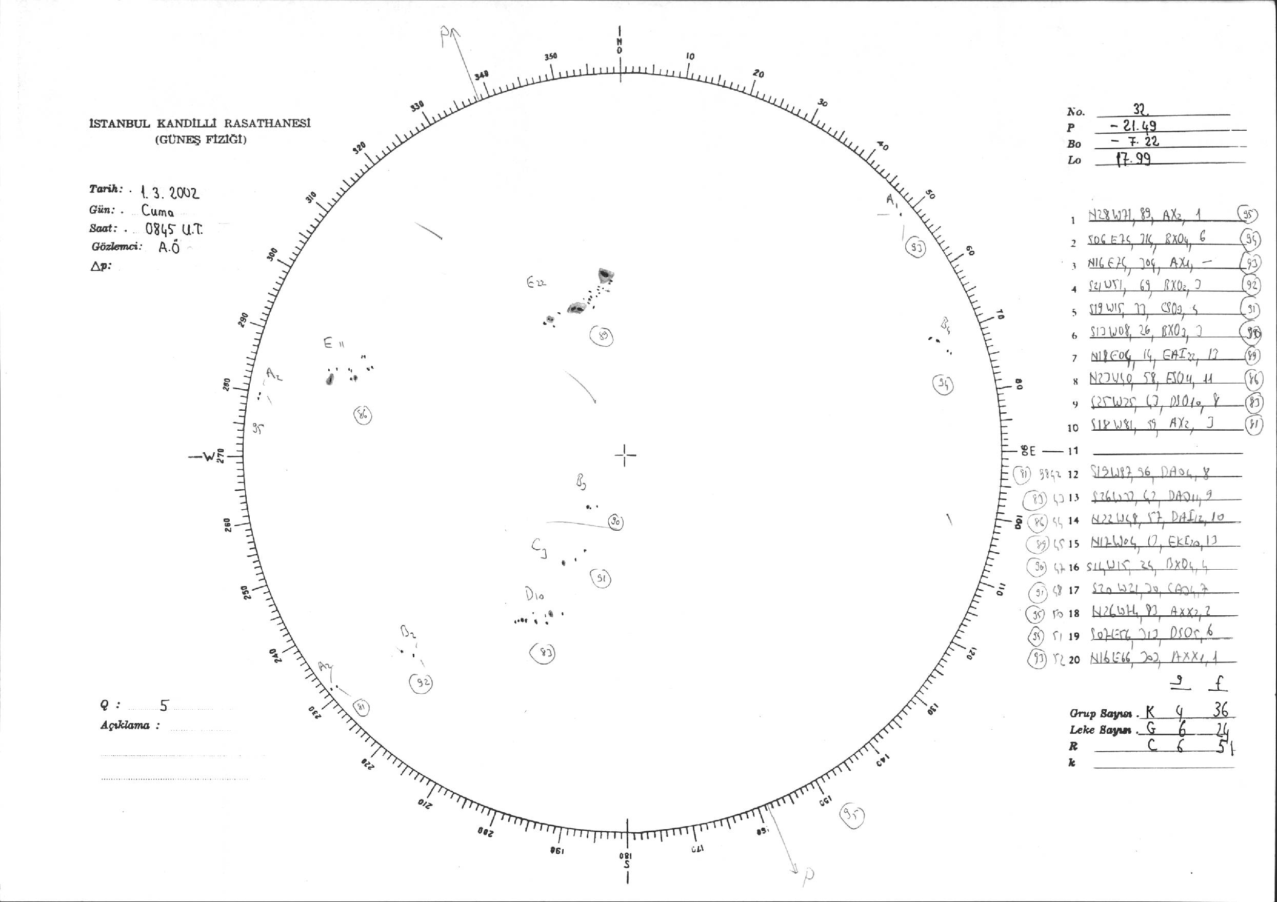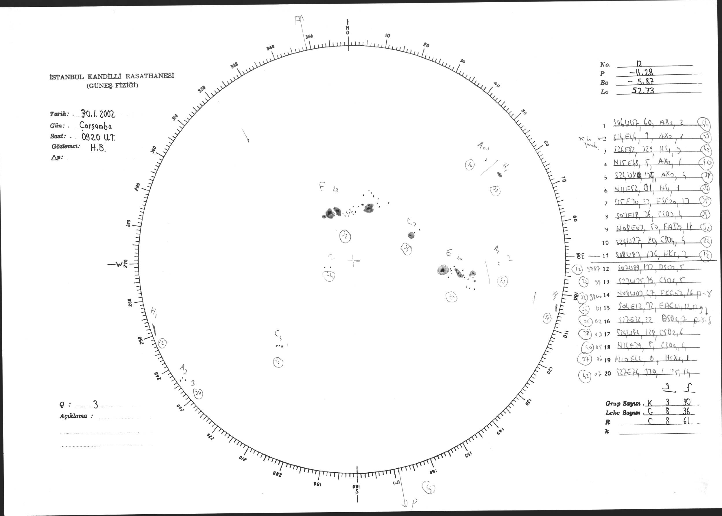 Güneş Lekesi Çizimleri / Kandilli Sunspot Drawings