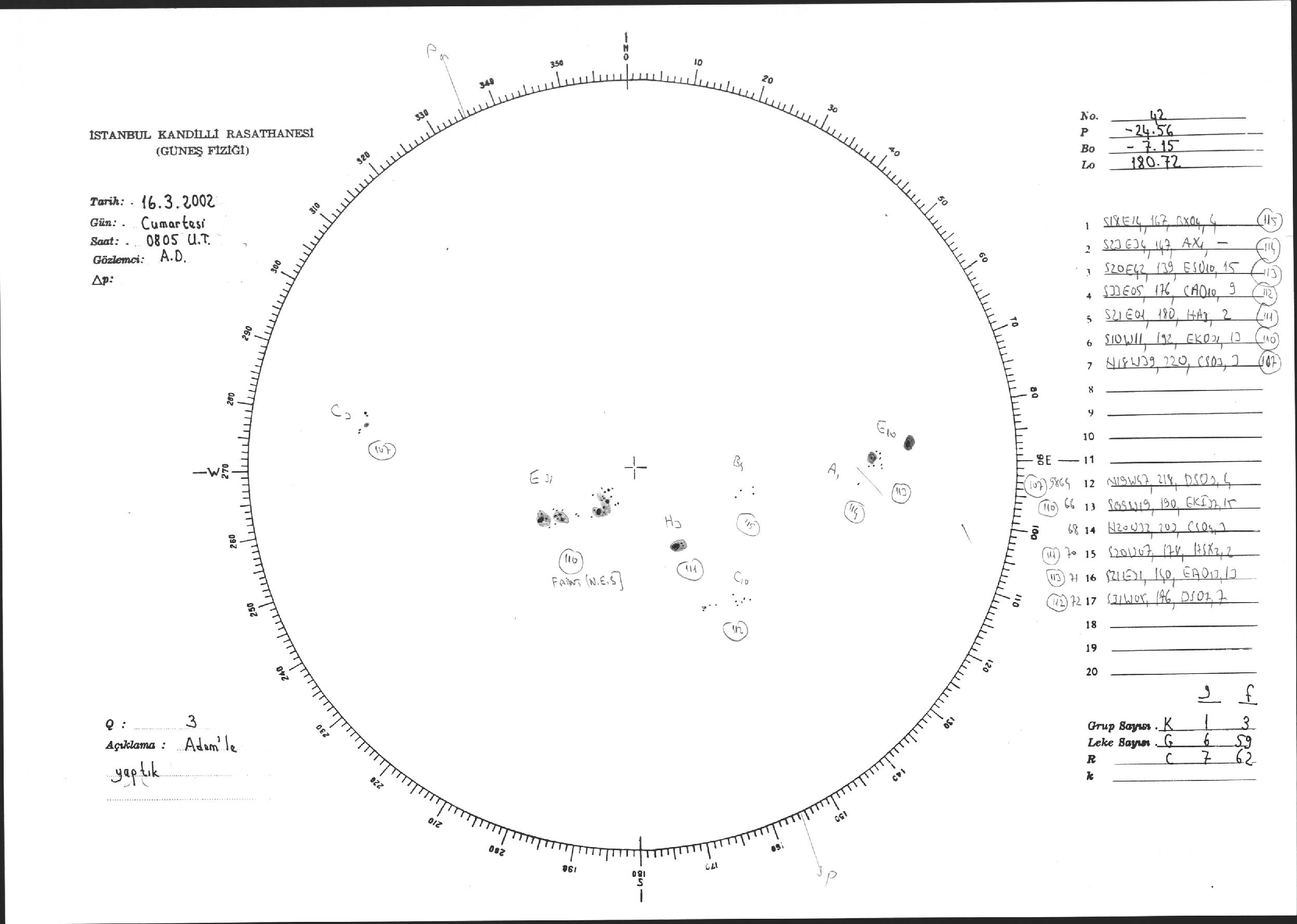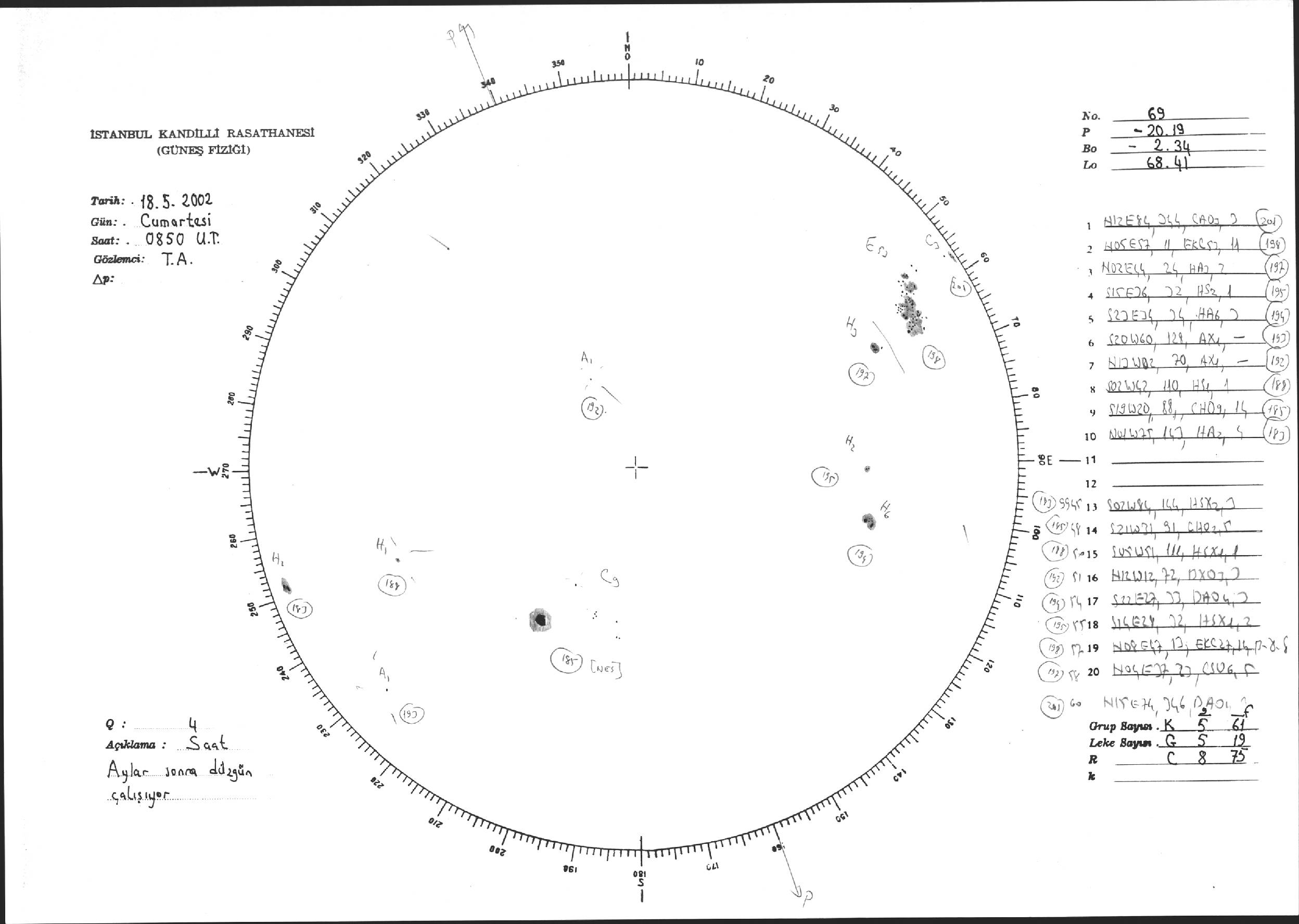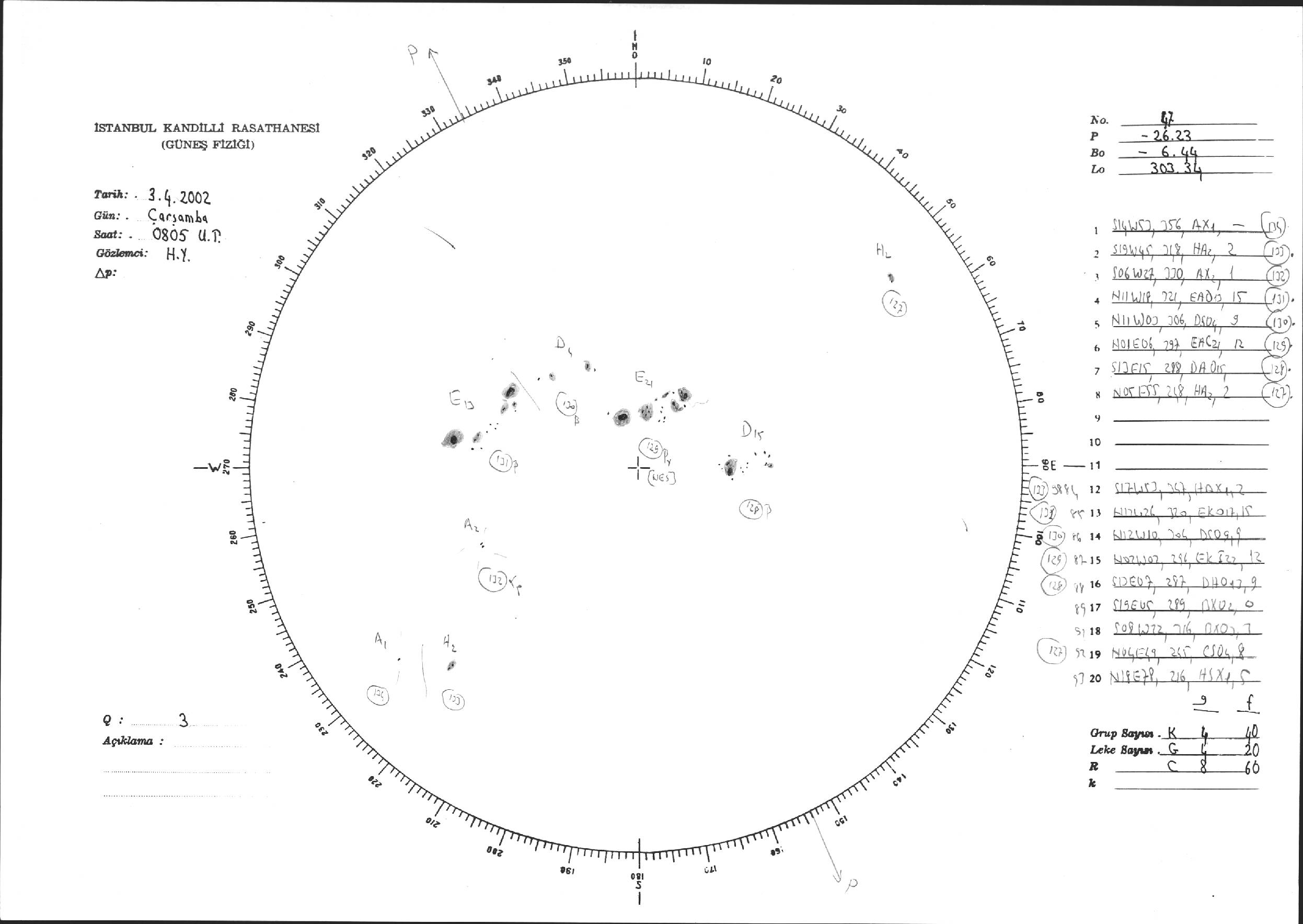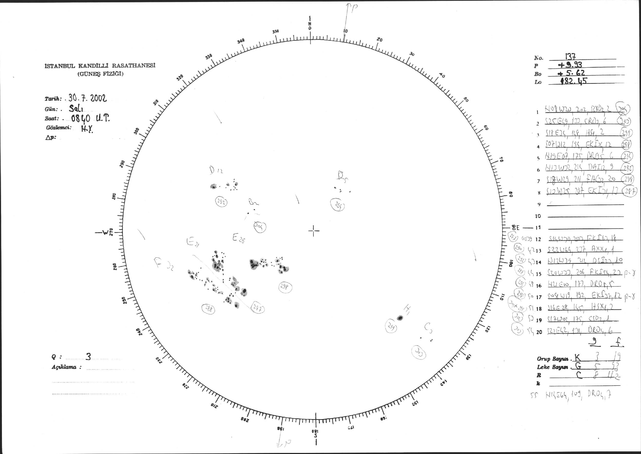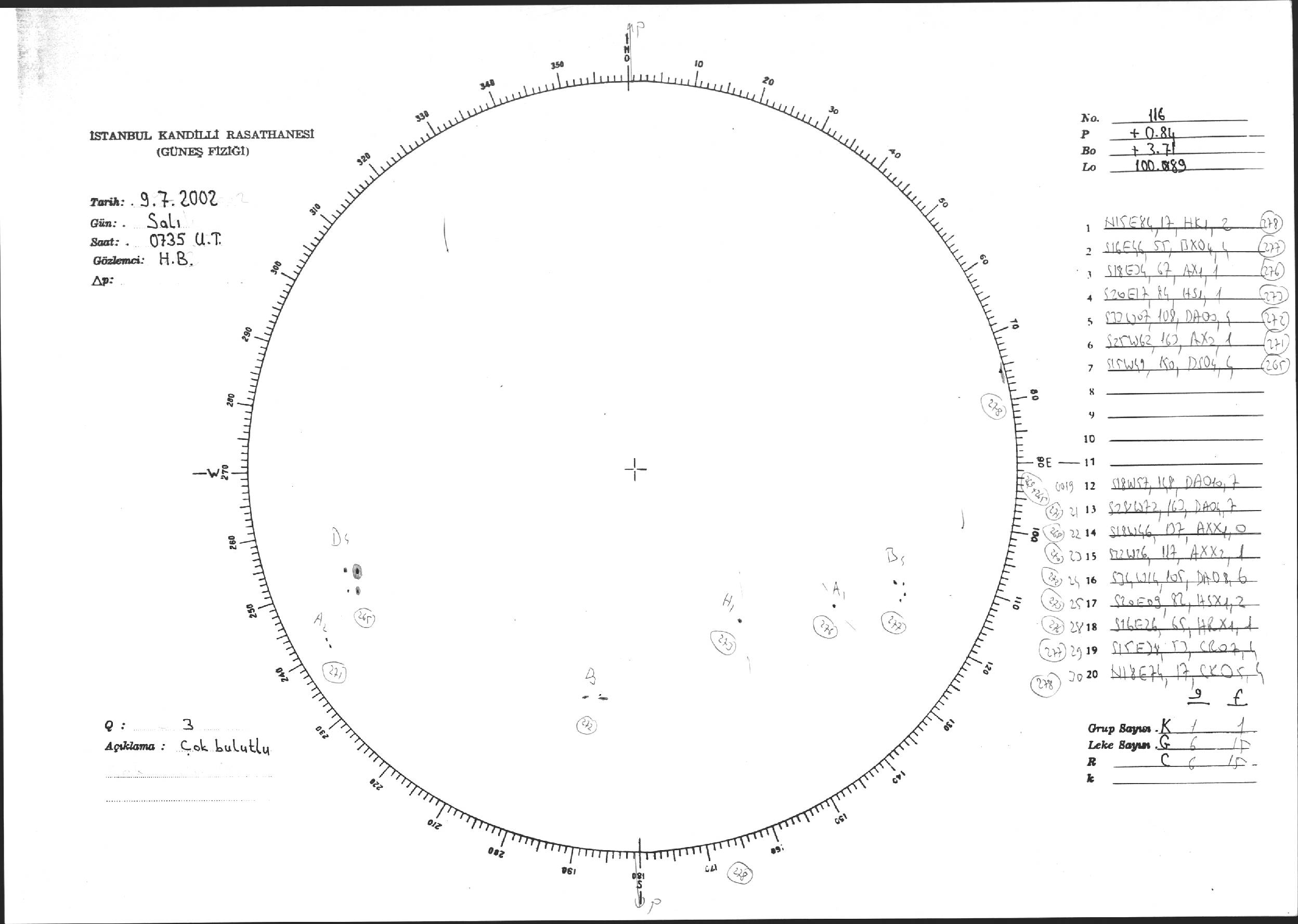 Güneş Lekesi Çizimleri / Kandilli Sunspot Drawings