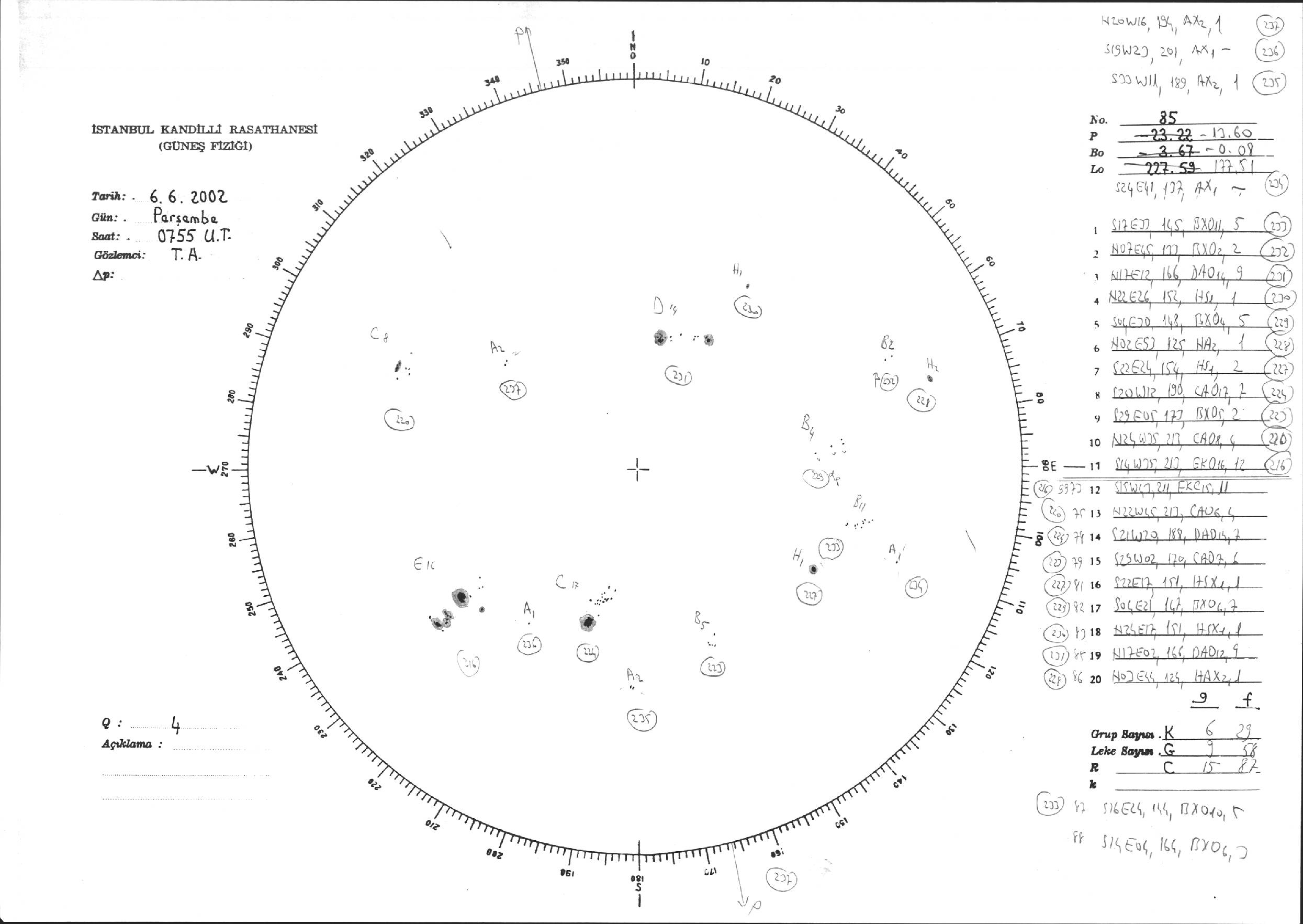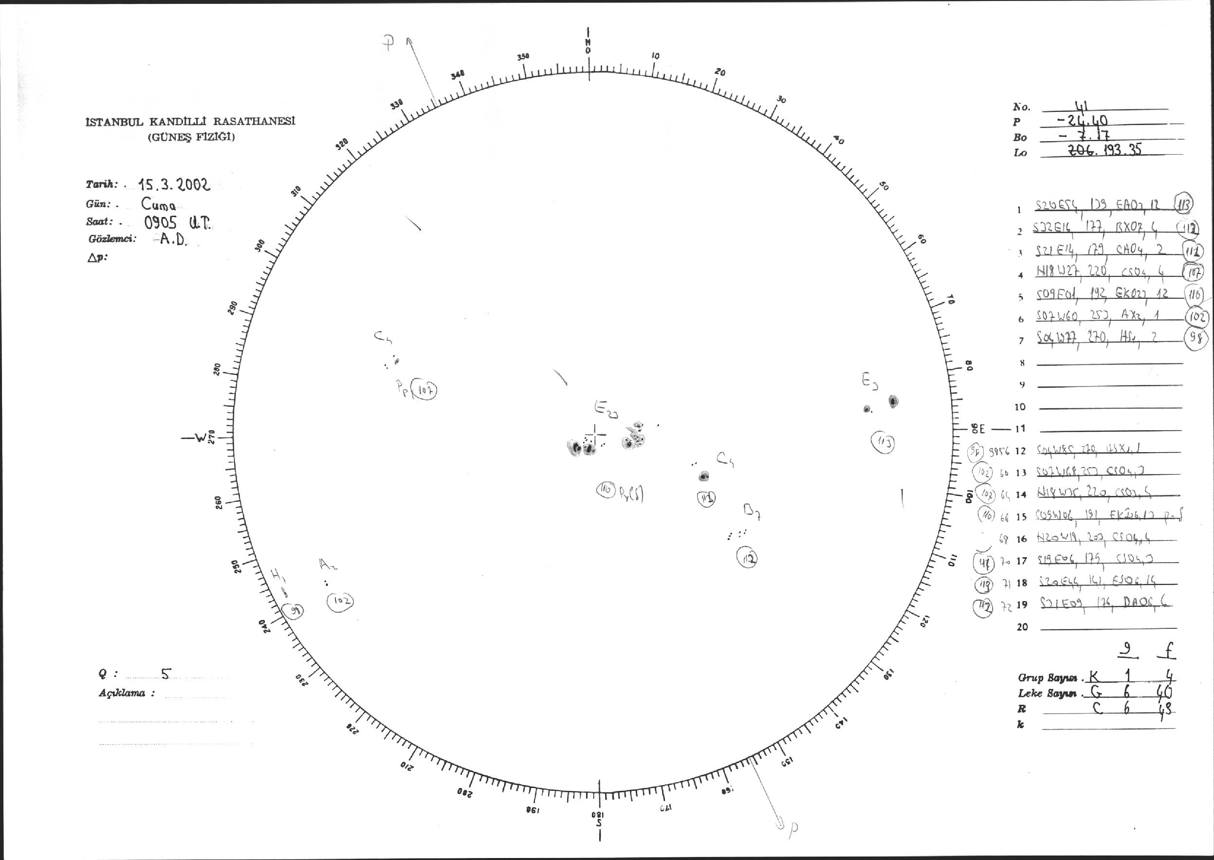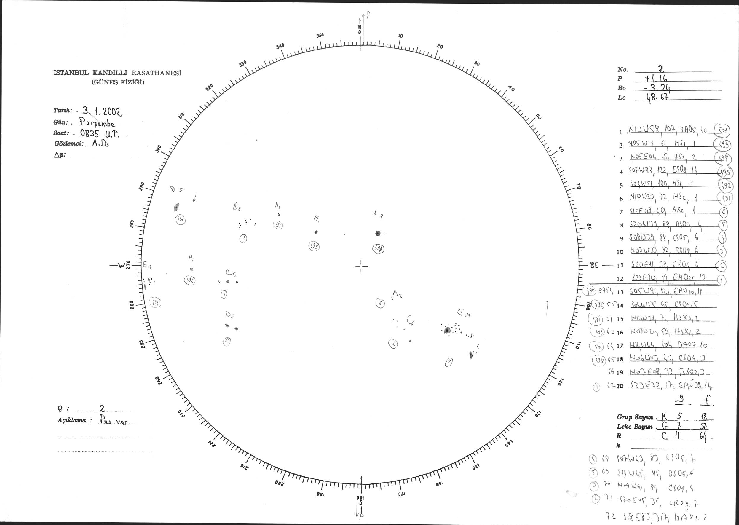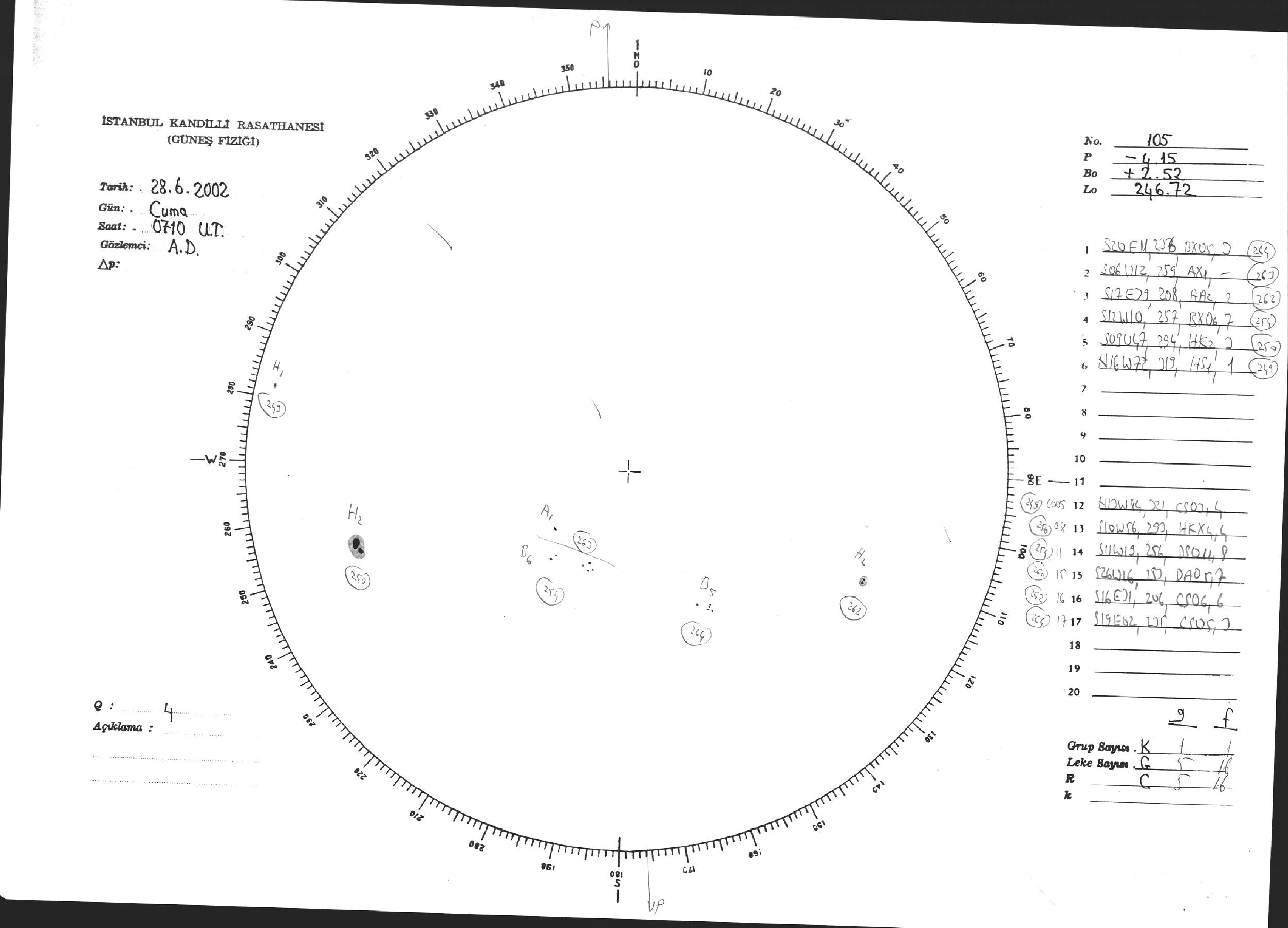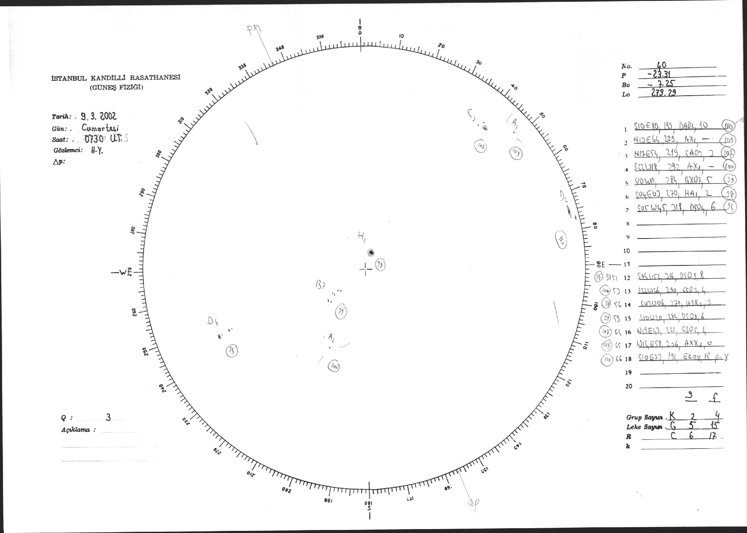 Güneş Lekesi Çizimleri / Kandilli Sunspot Drawings