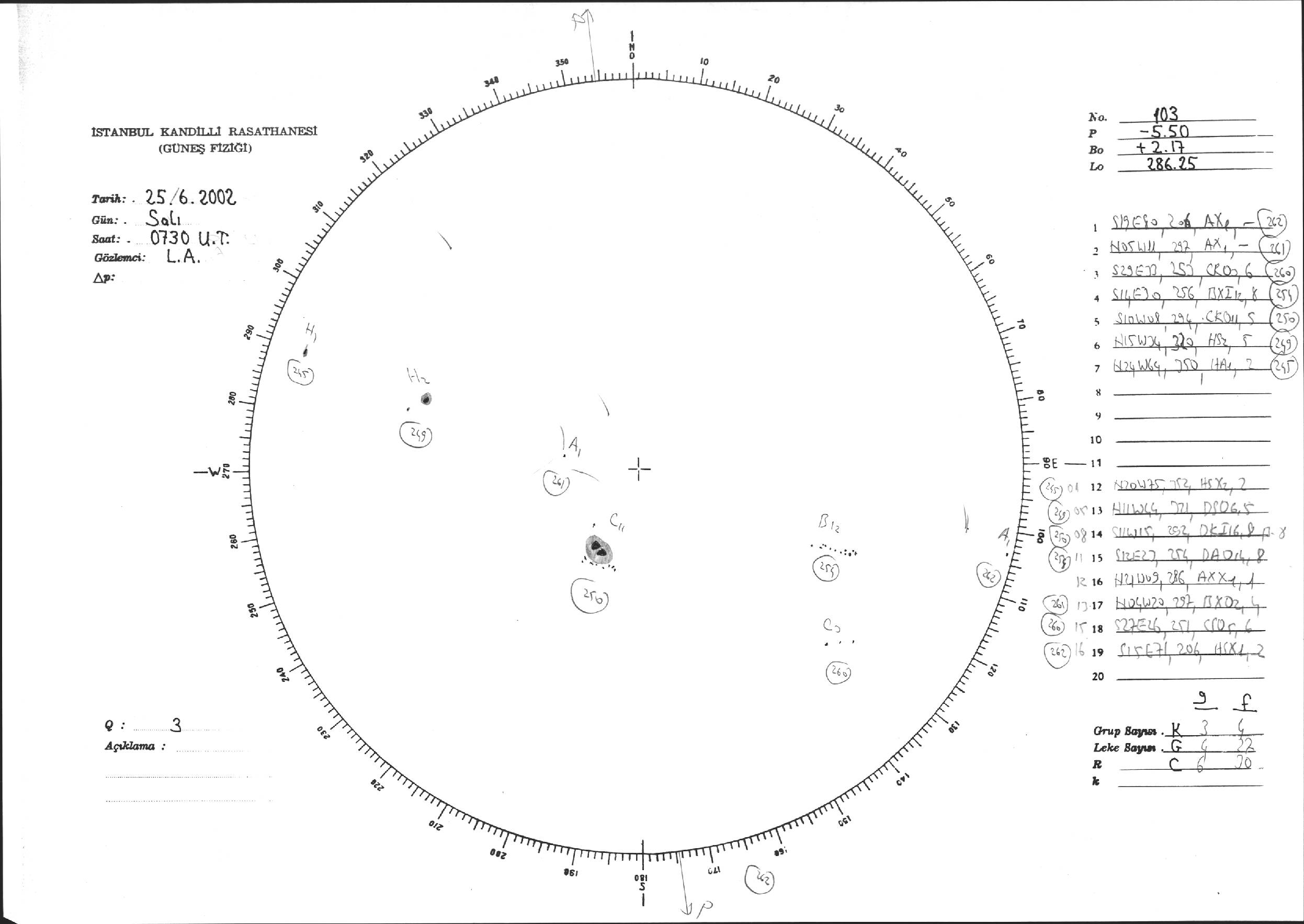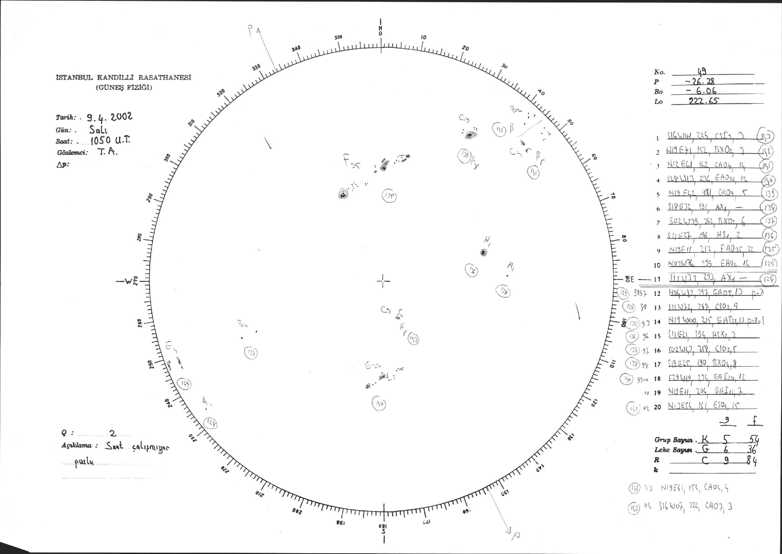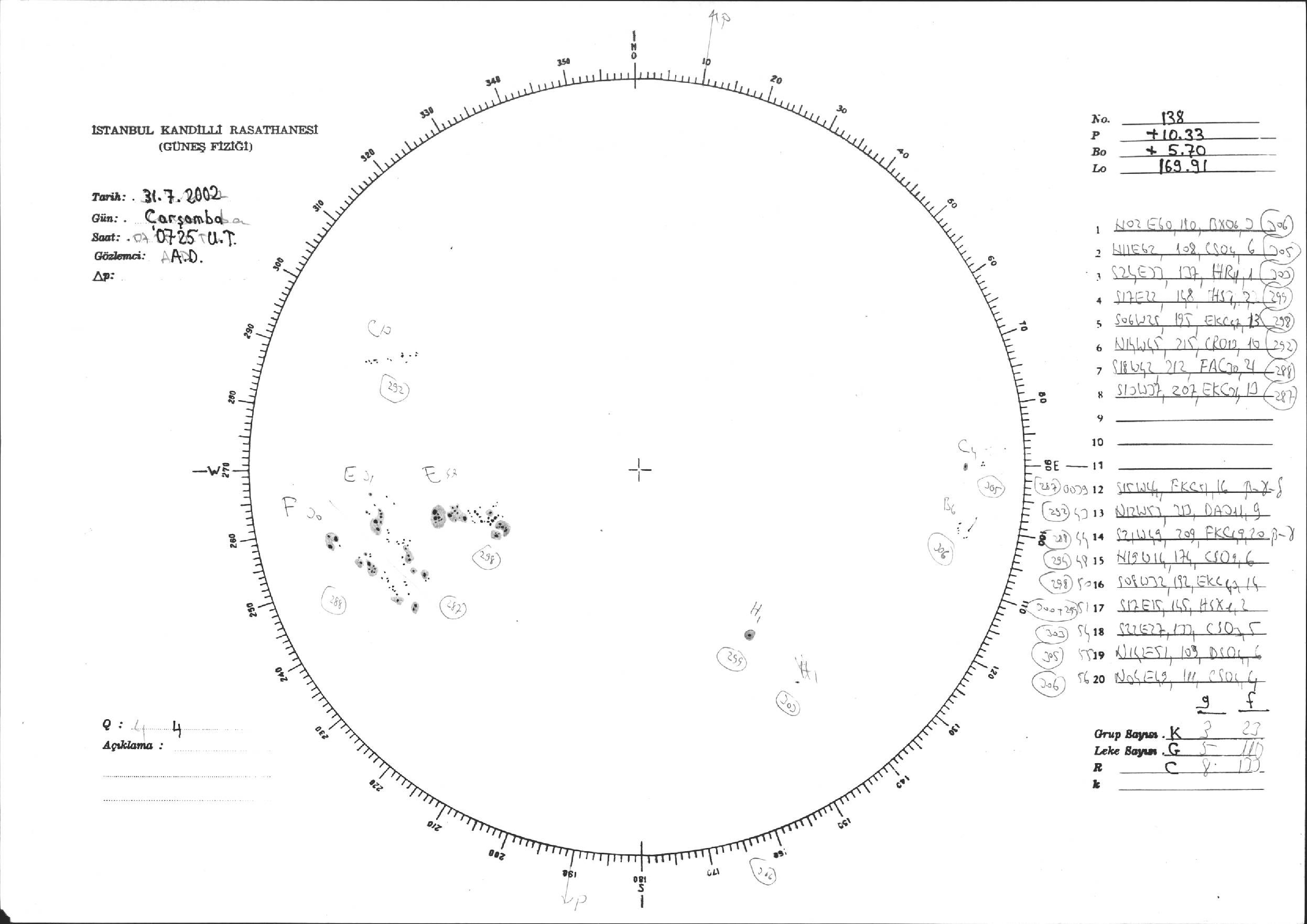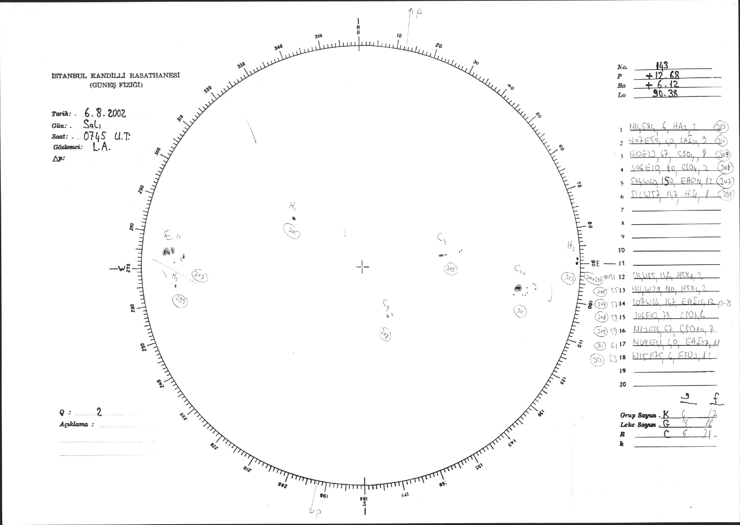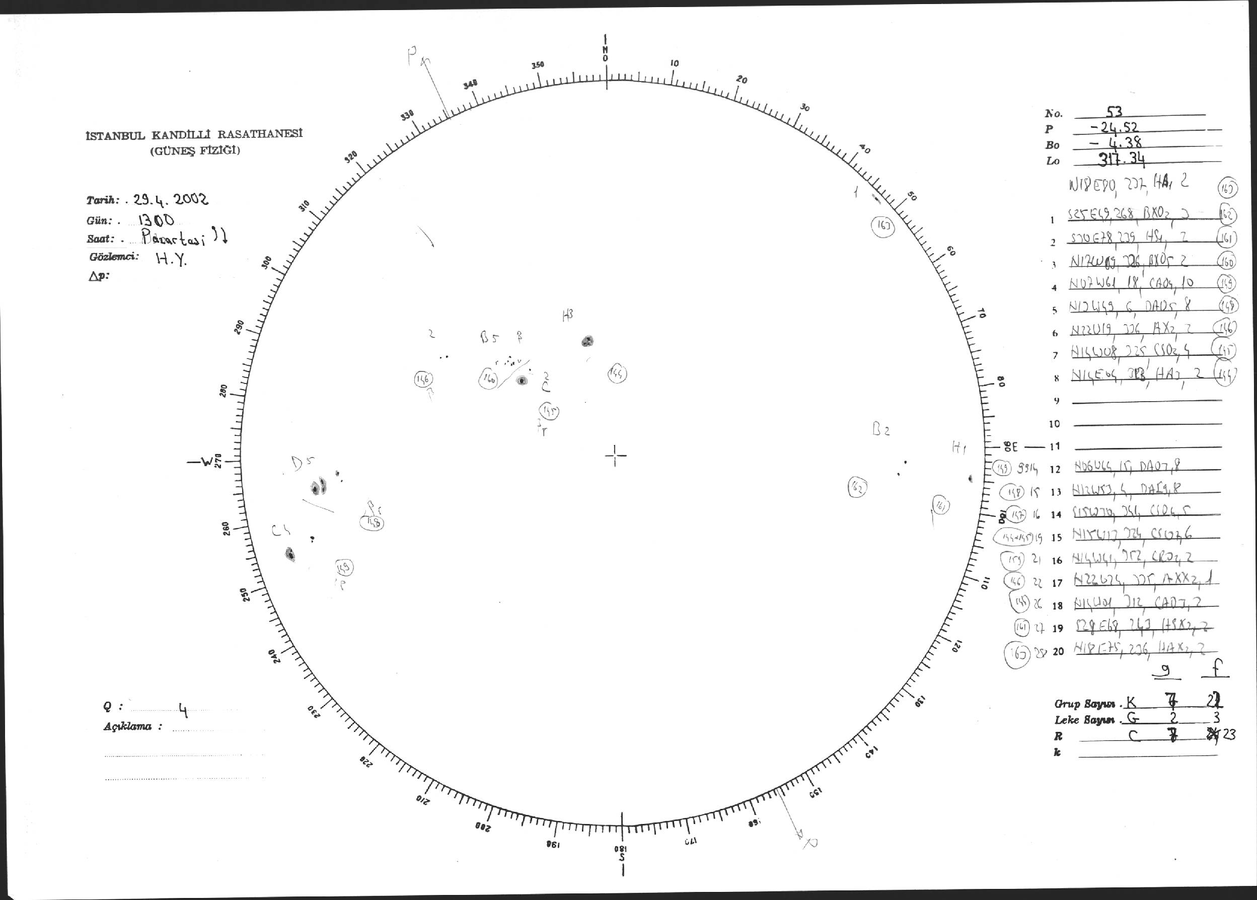 Güneş Lekesi Çizimleri / Kandilli Sunspot Drawings