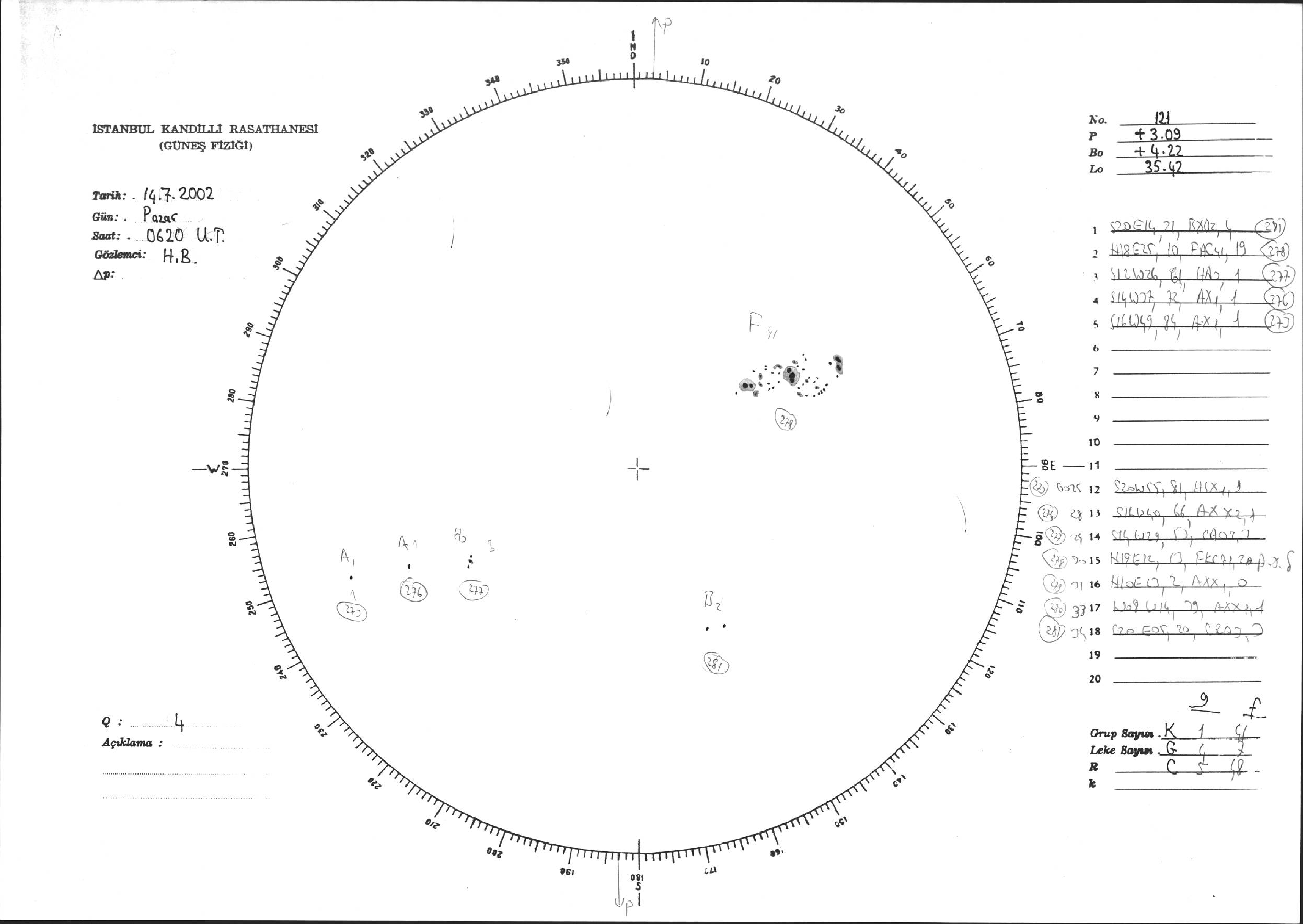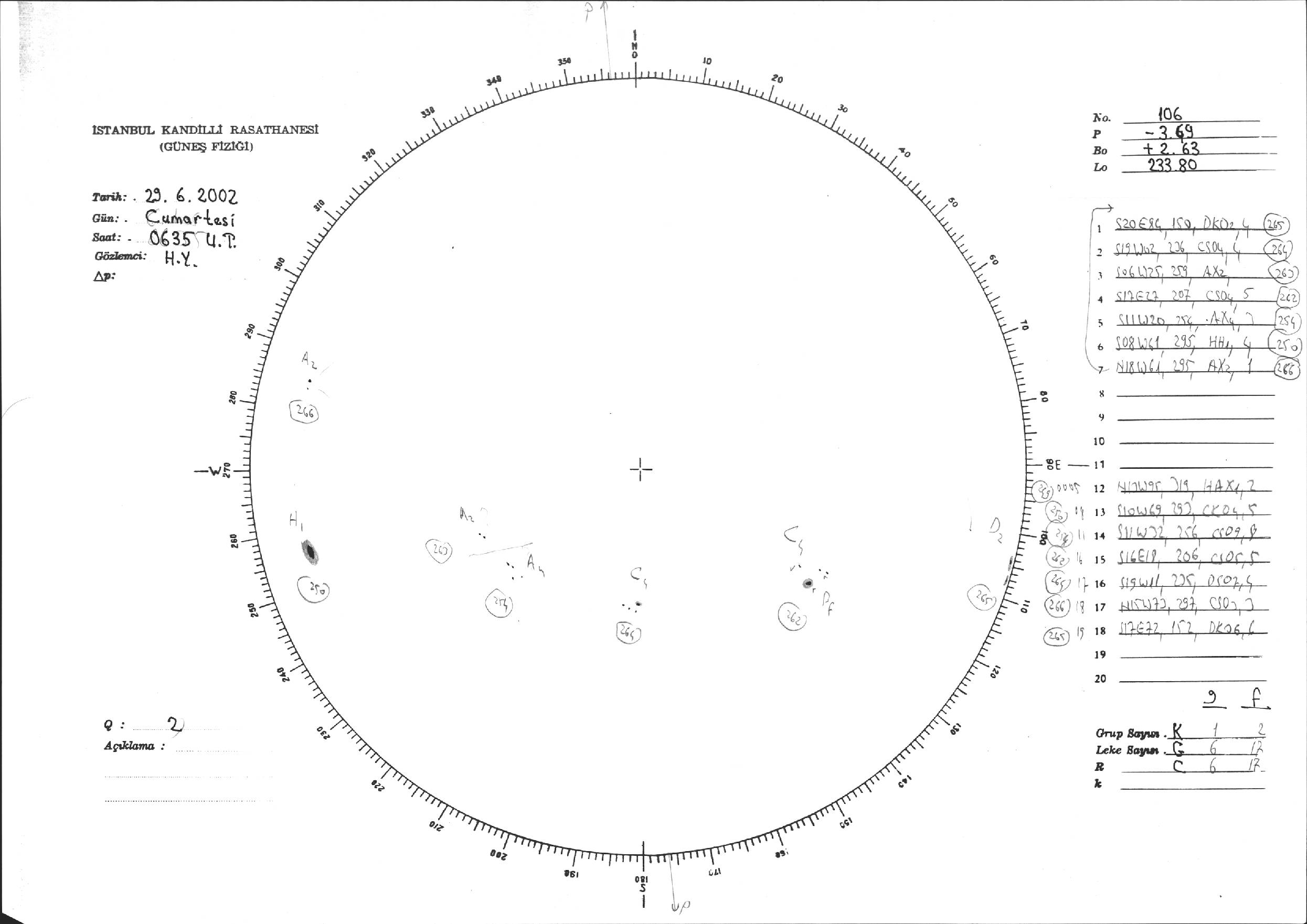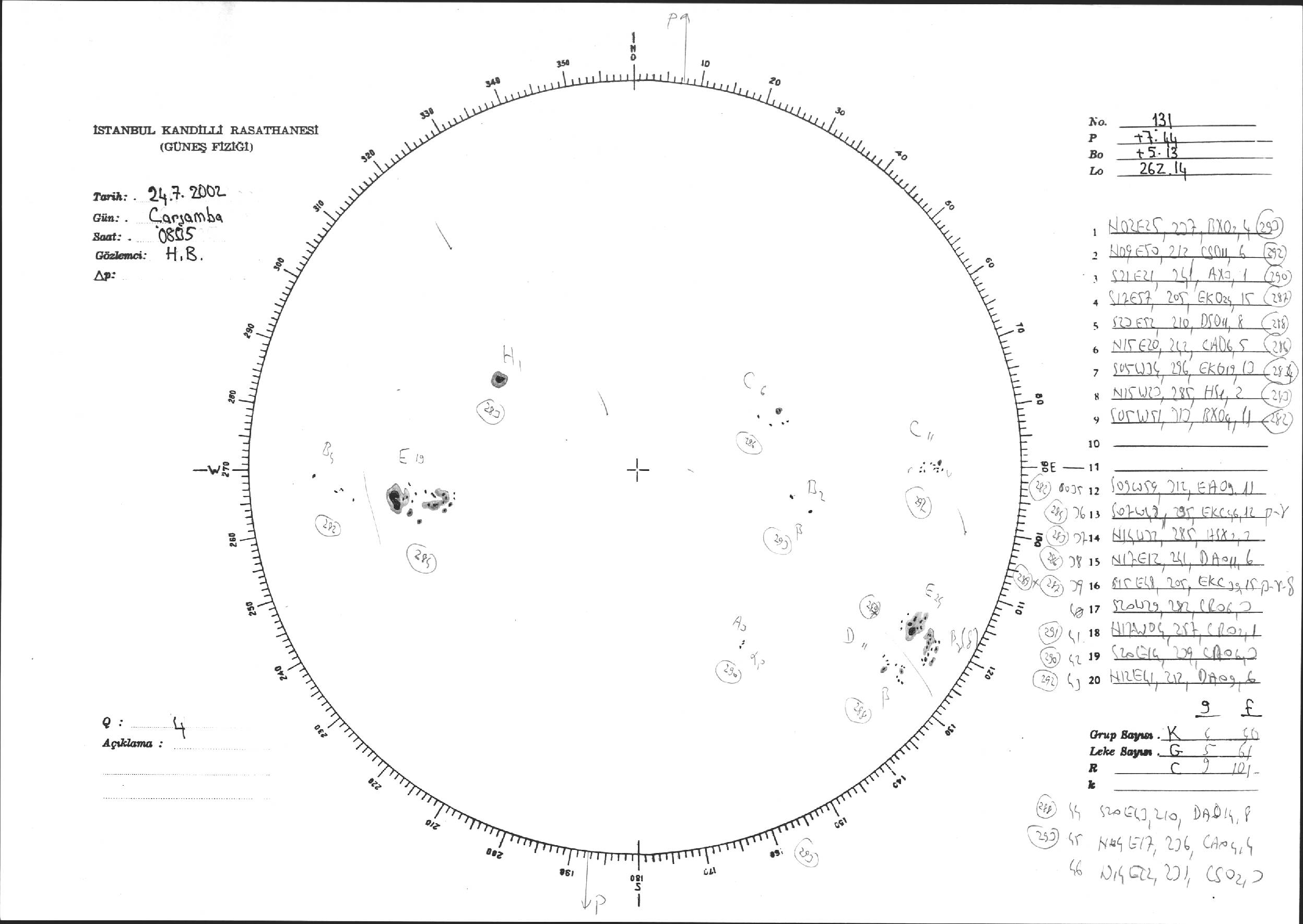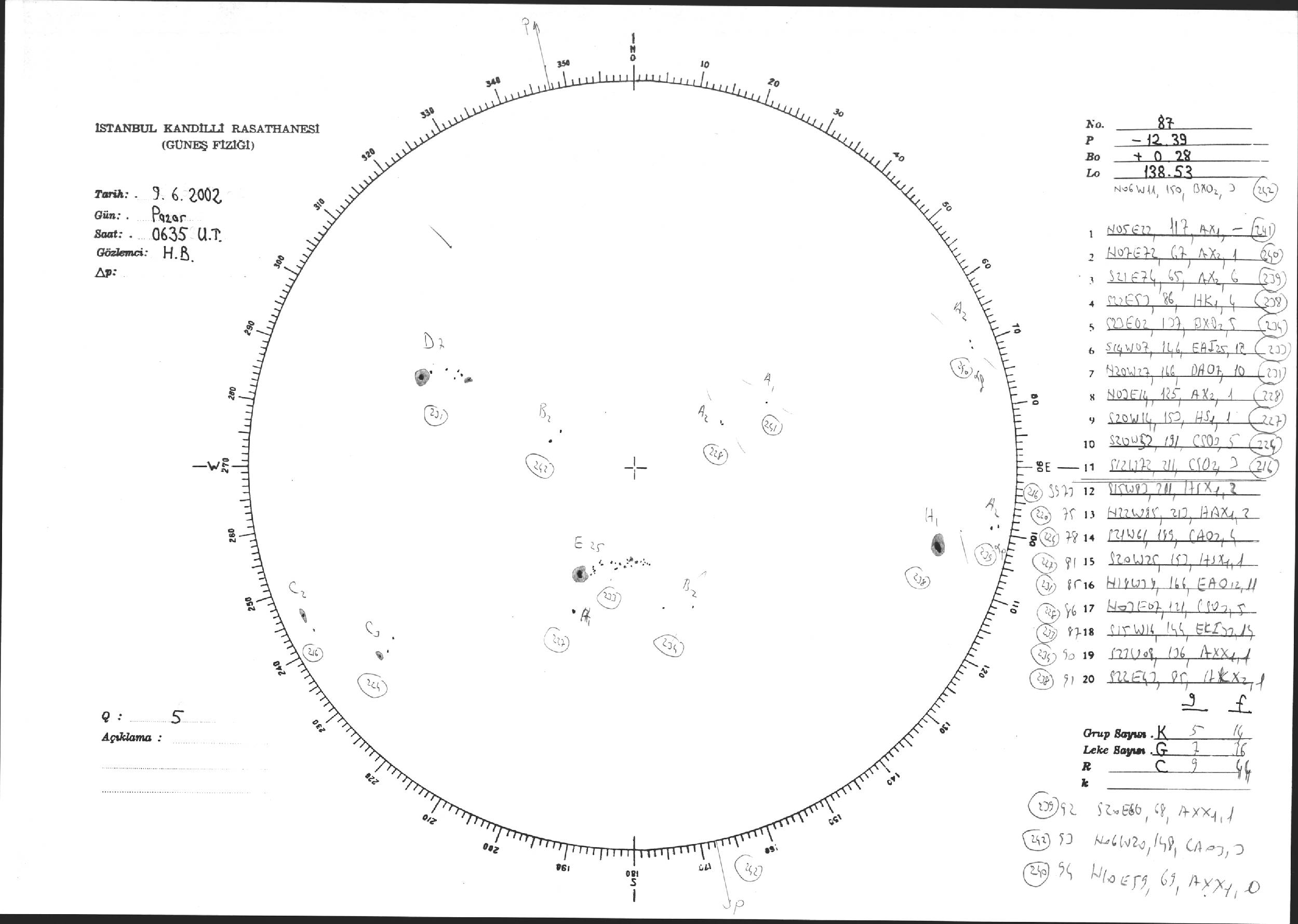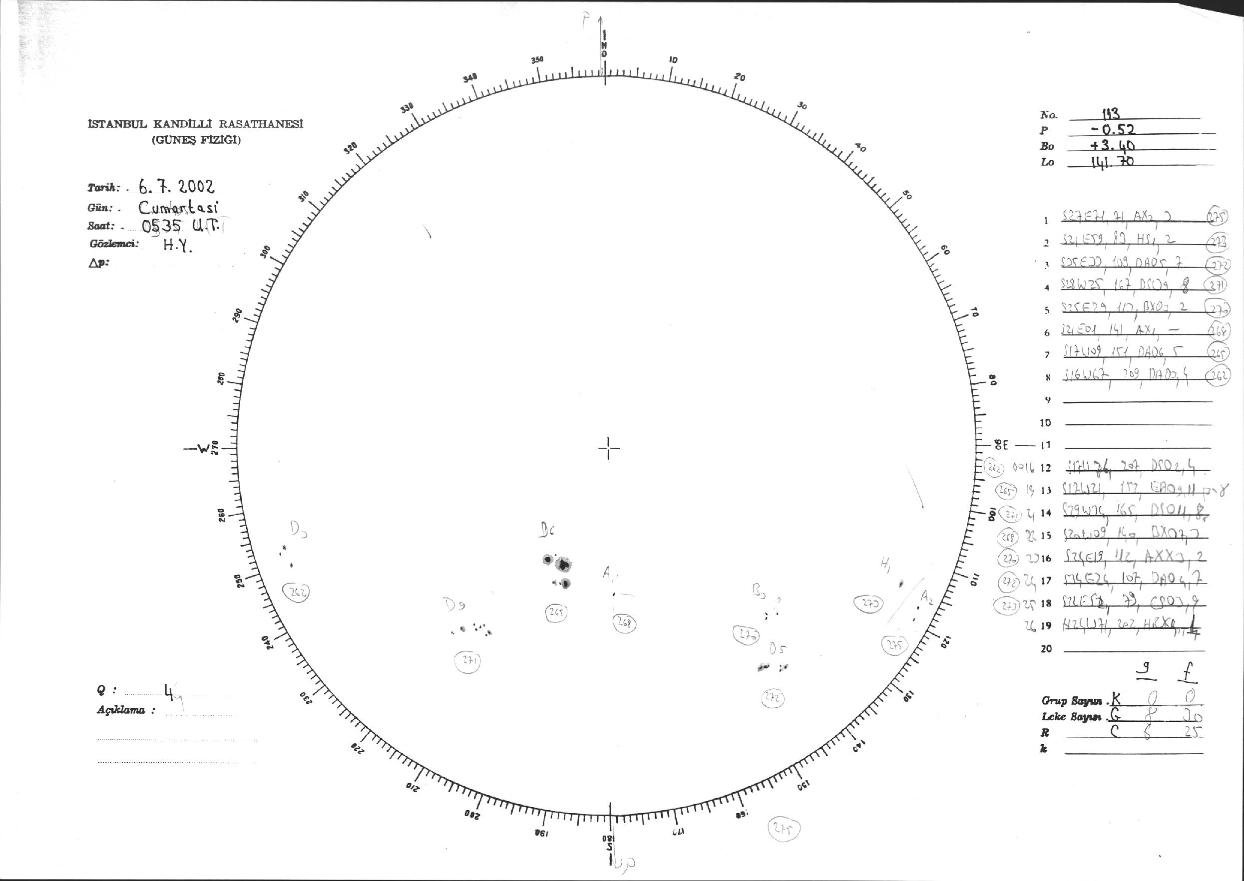 Güneş Lekesi Çizimleri / Kandilli Sunspot Drawings