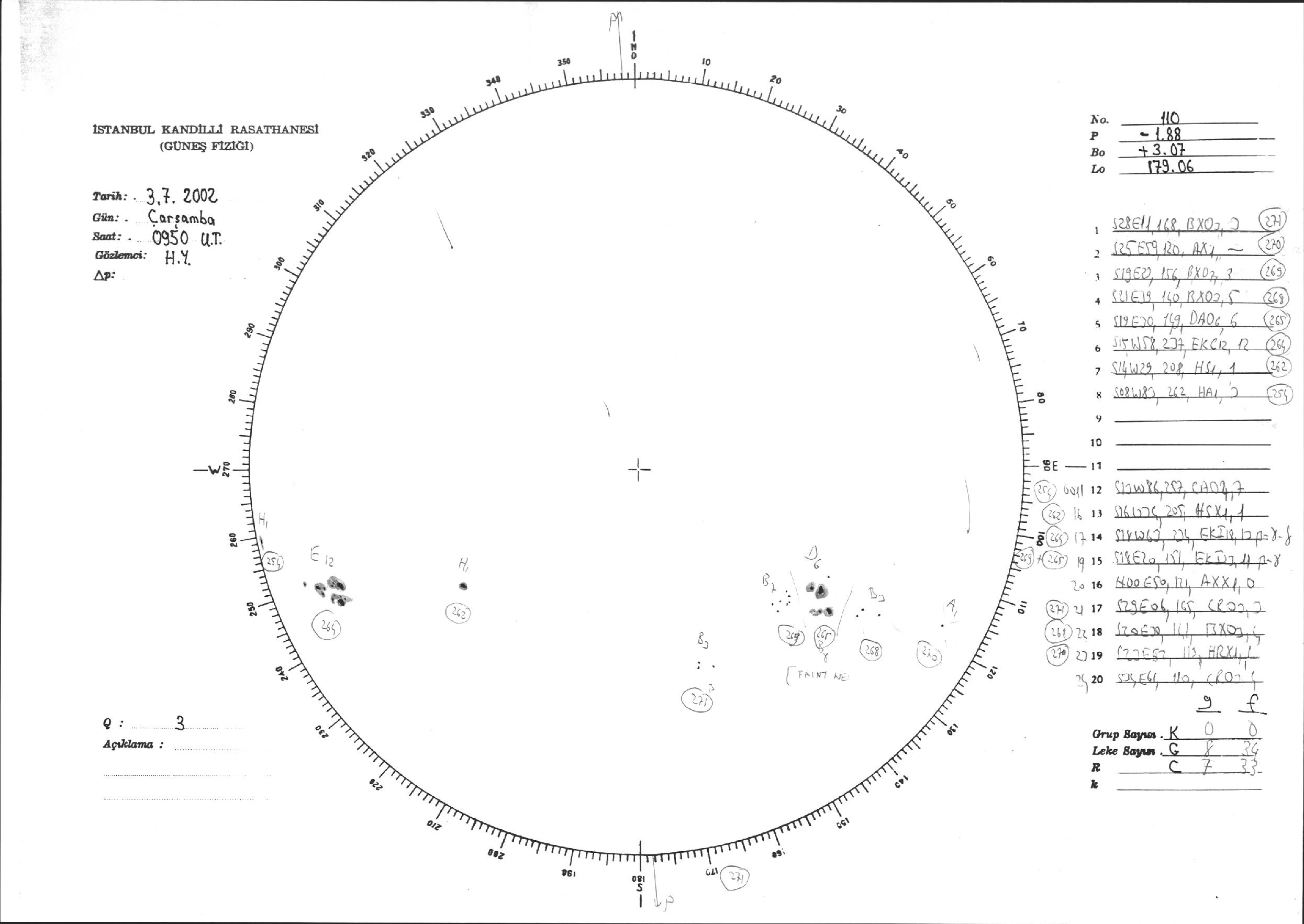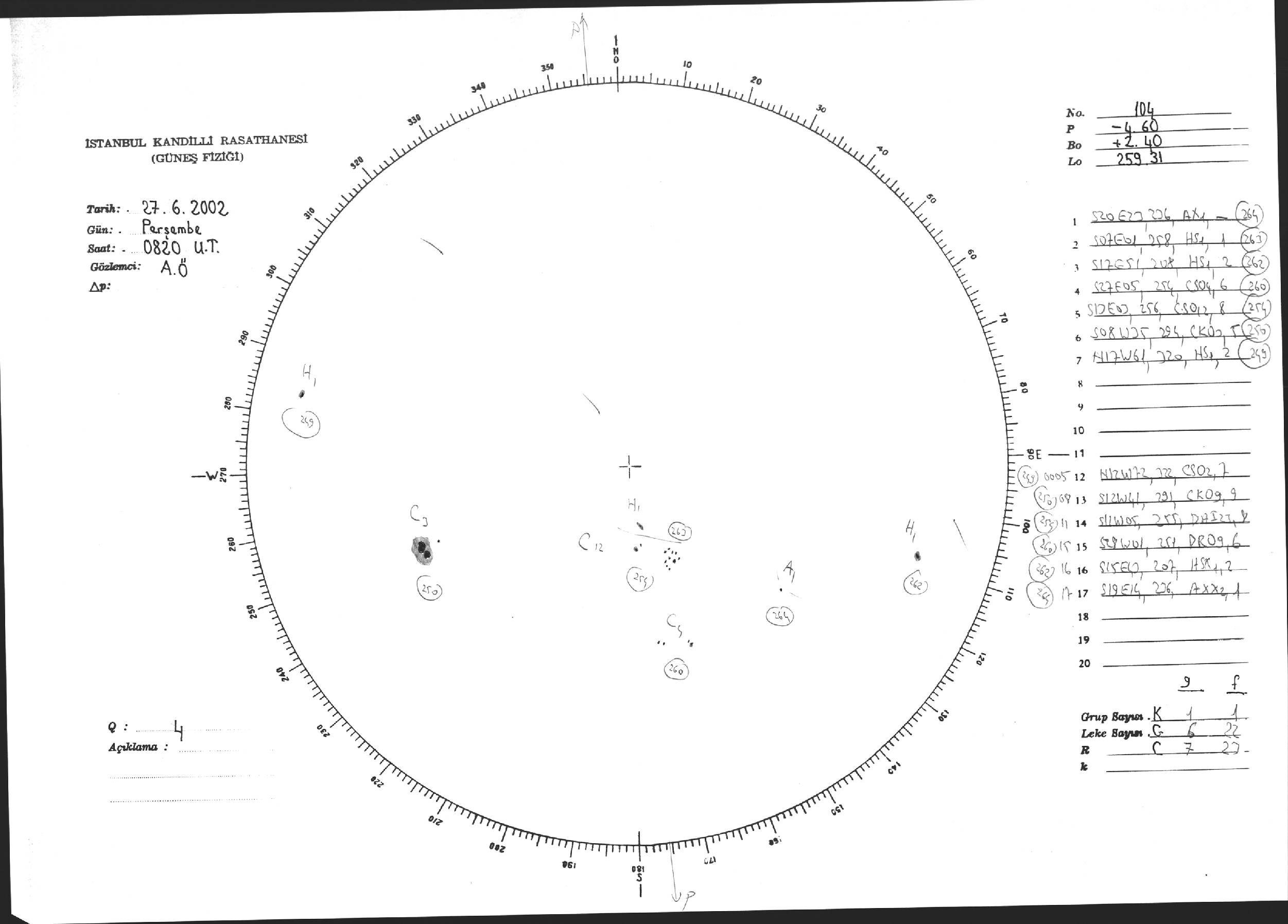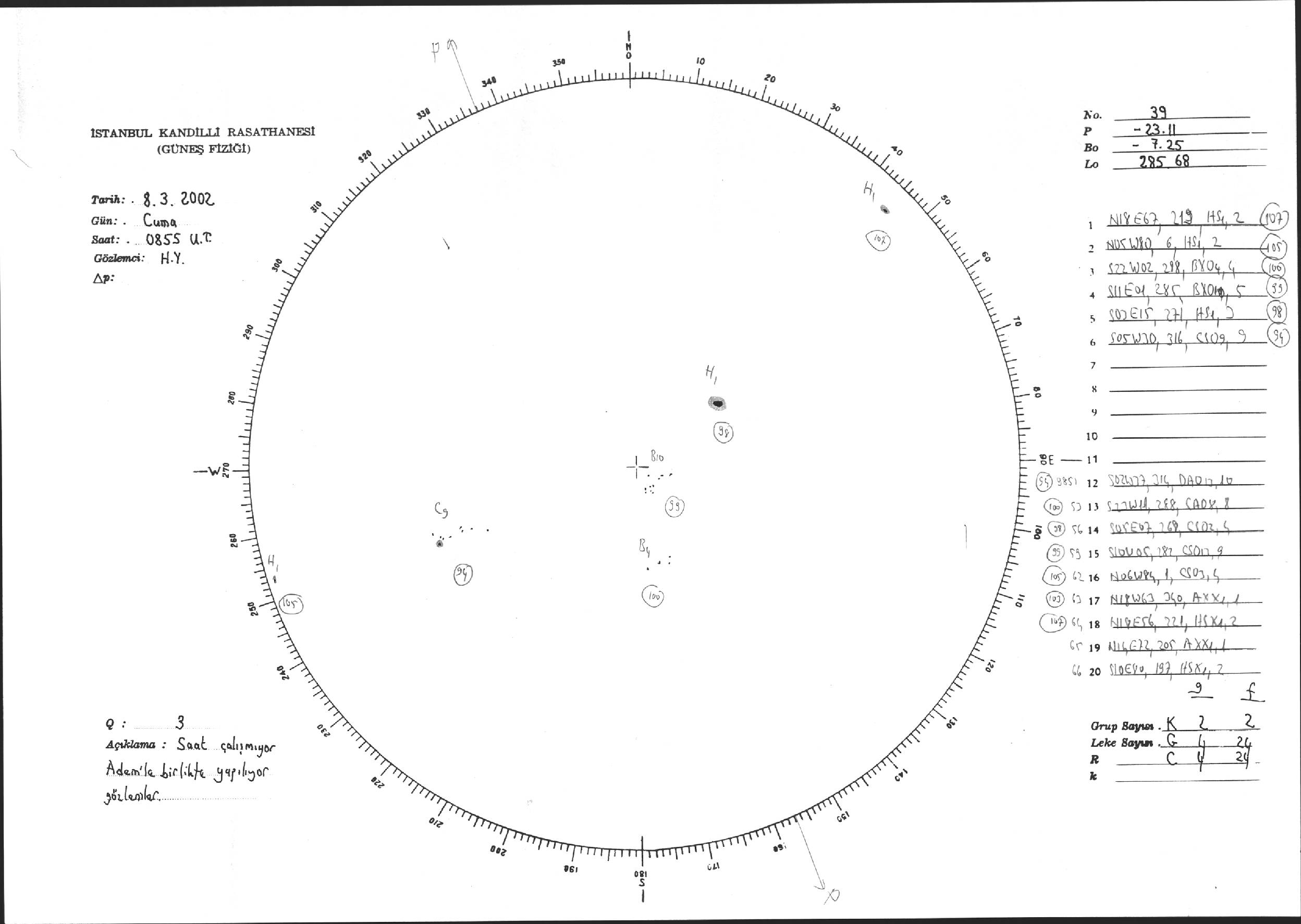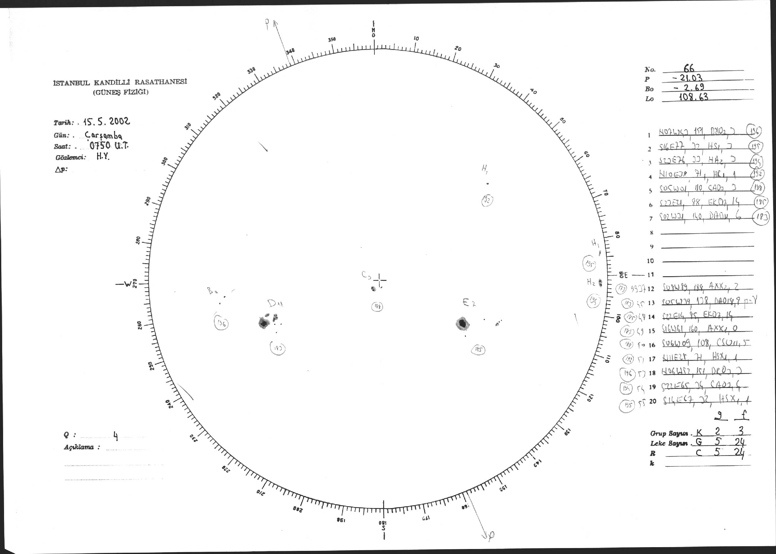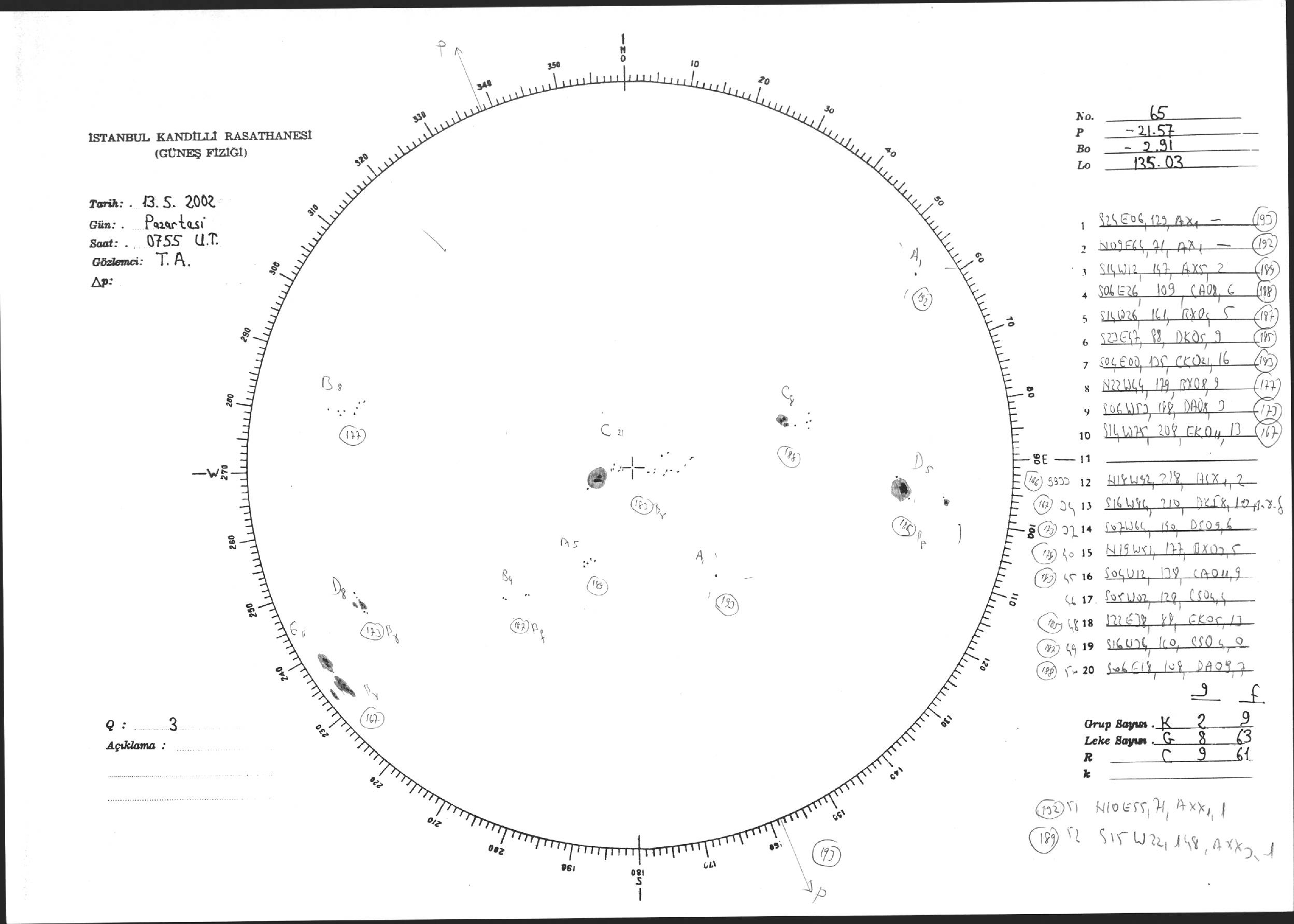 Güneş Lekesi Çizimleri / Kandilli Sunspot Drawings