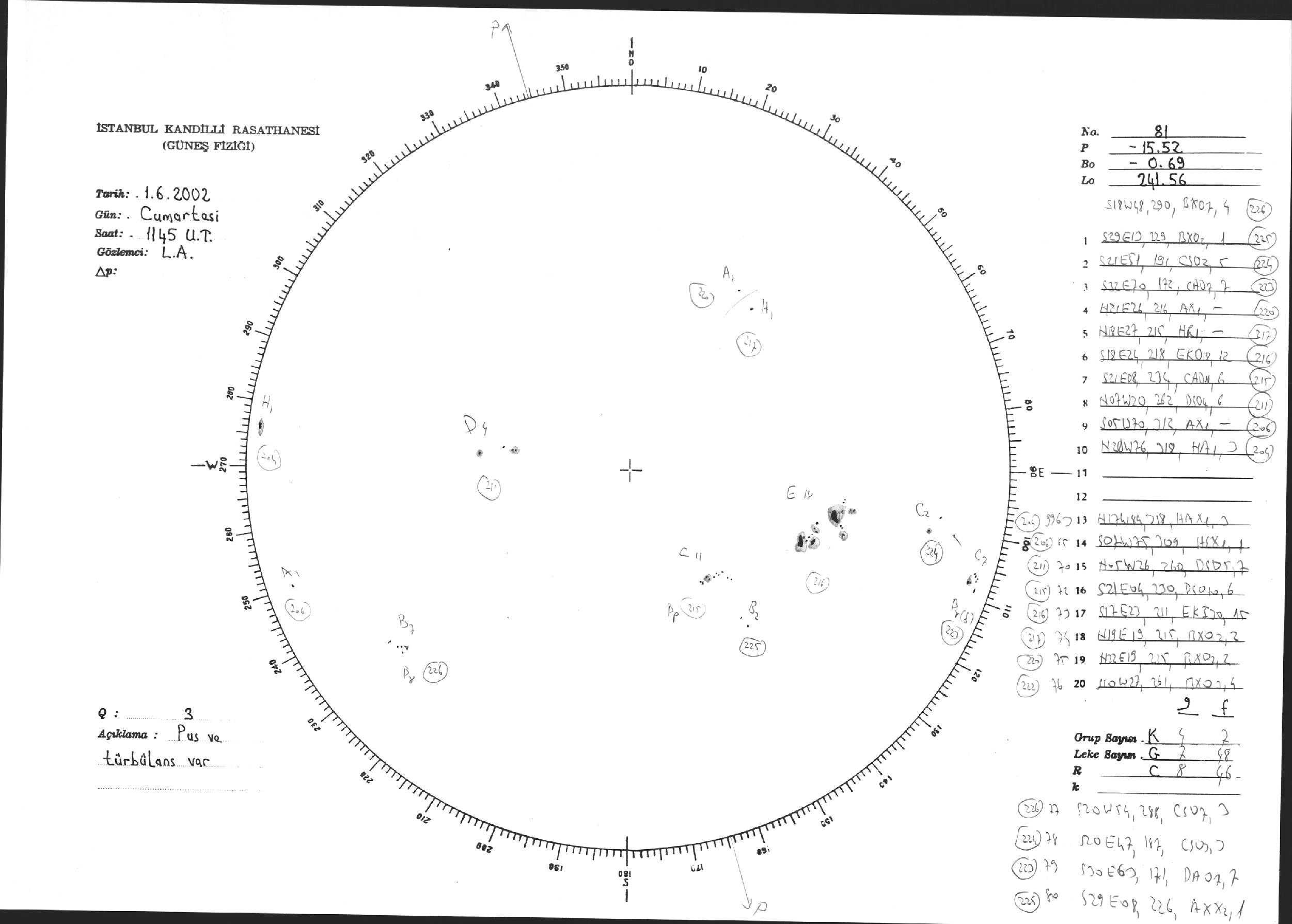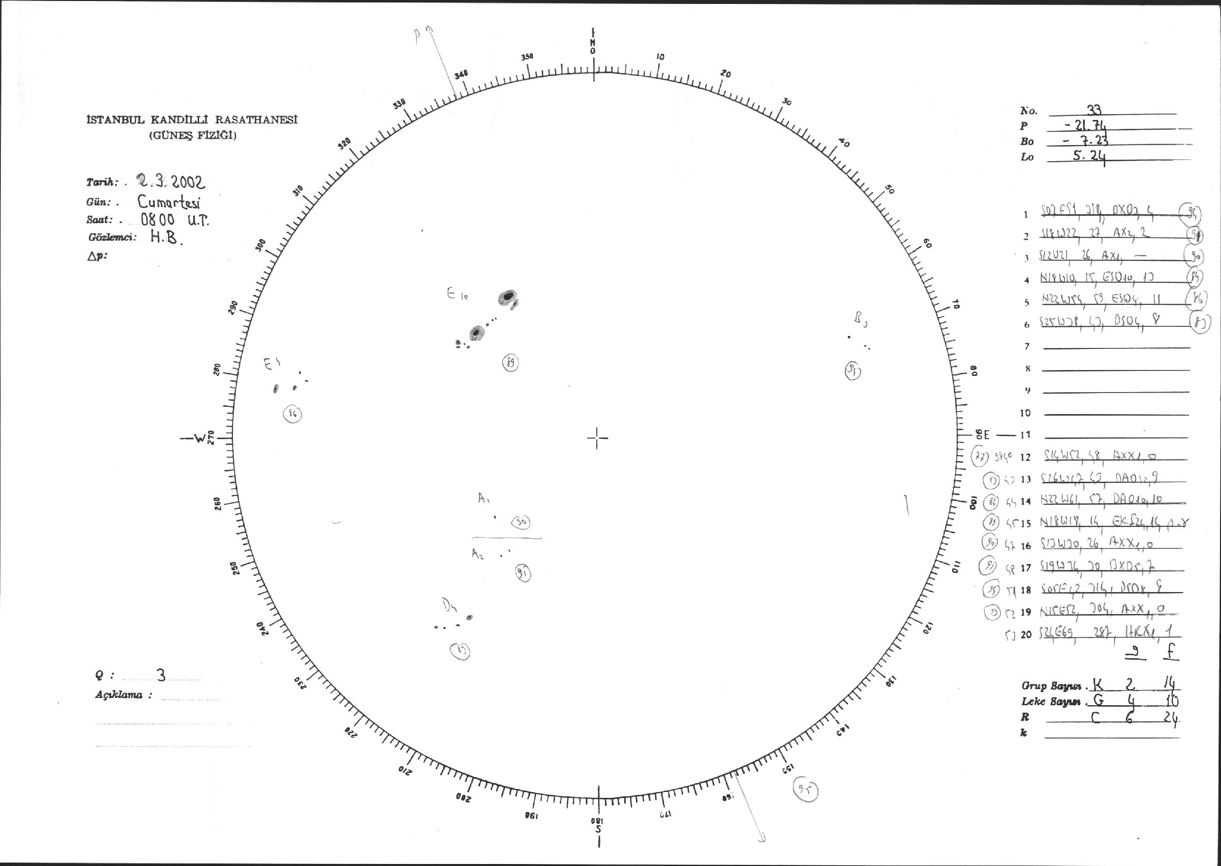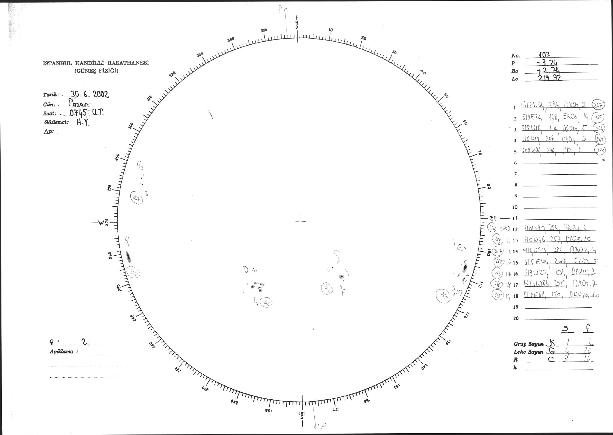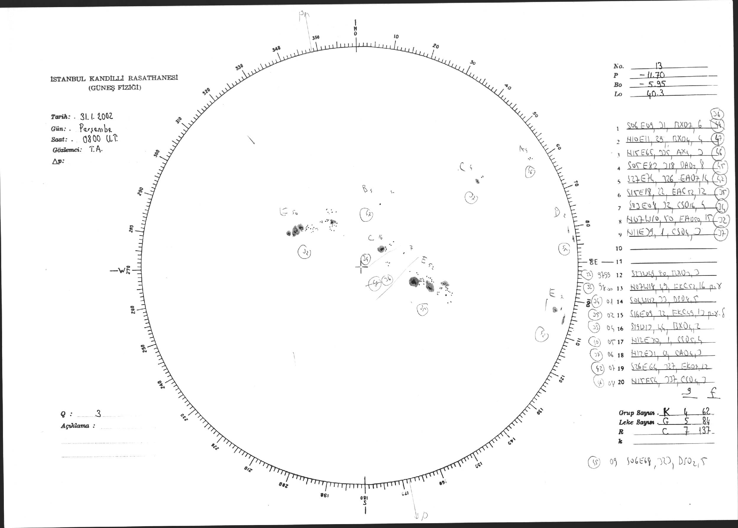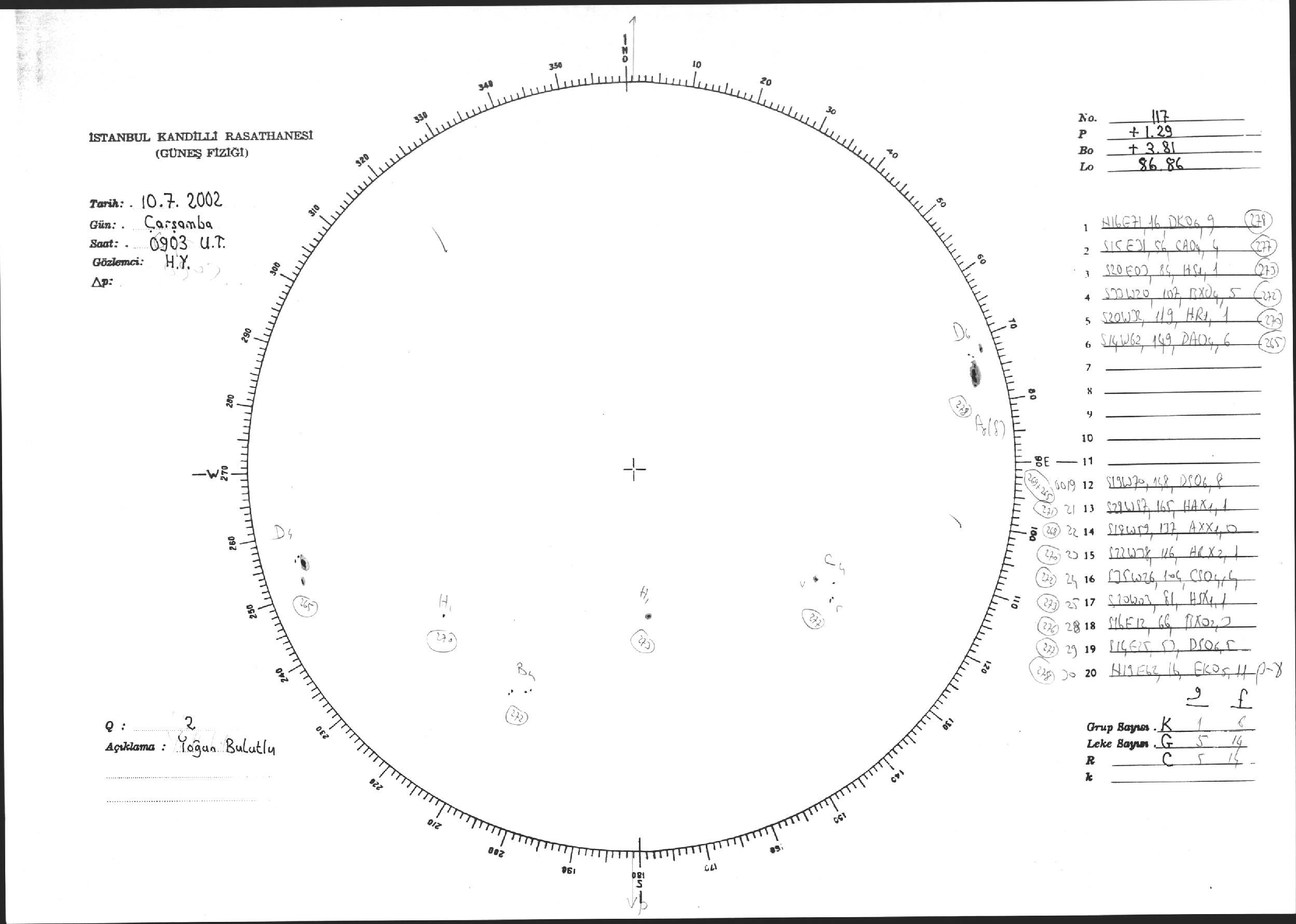 Güneş Lekesi Çizimleri / Kandilli Sunspot Drawings