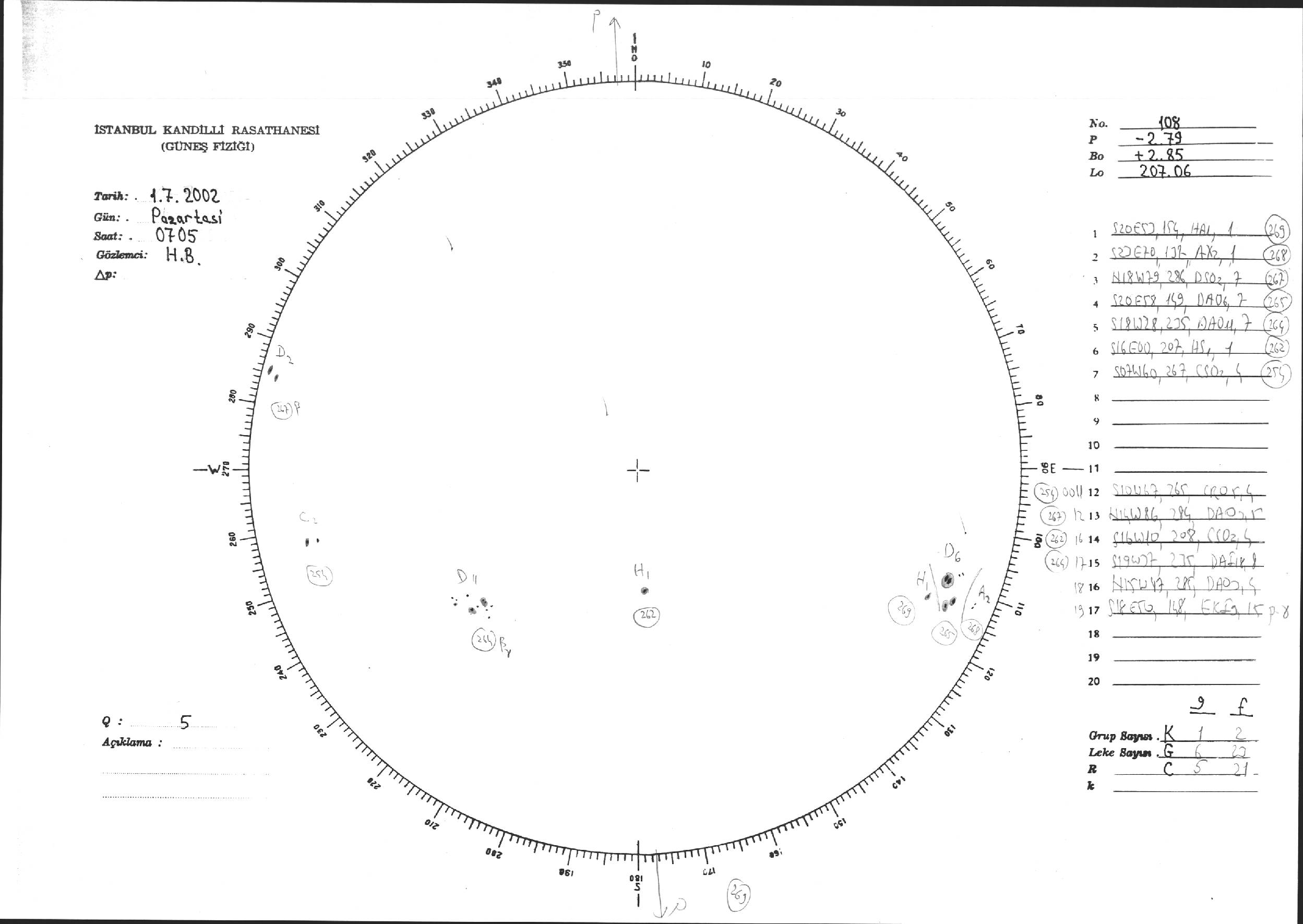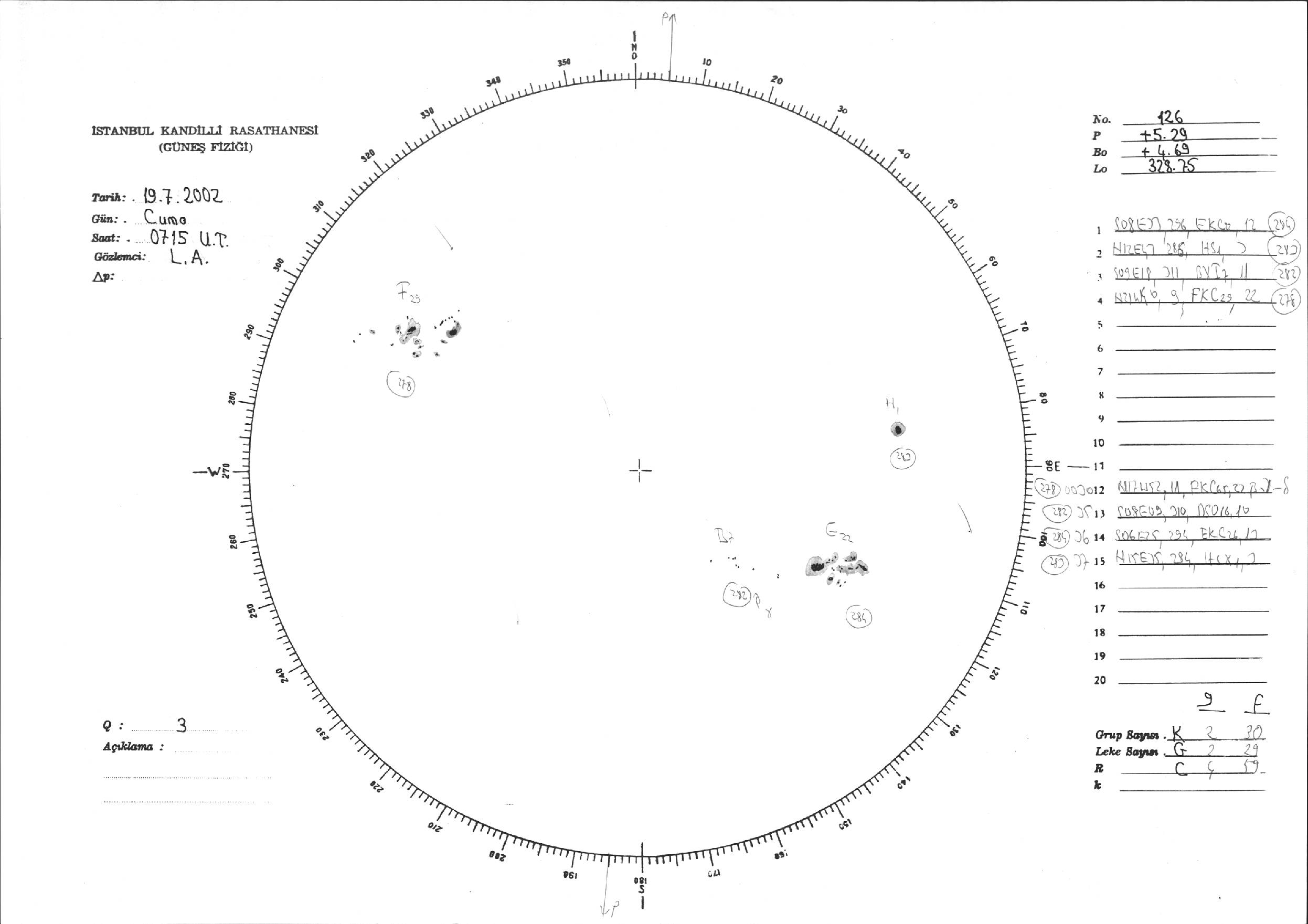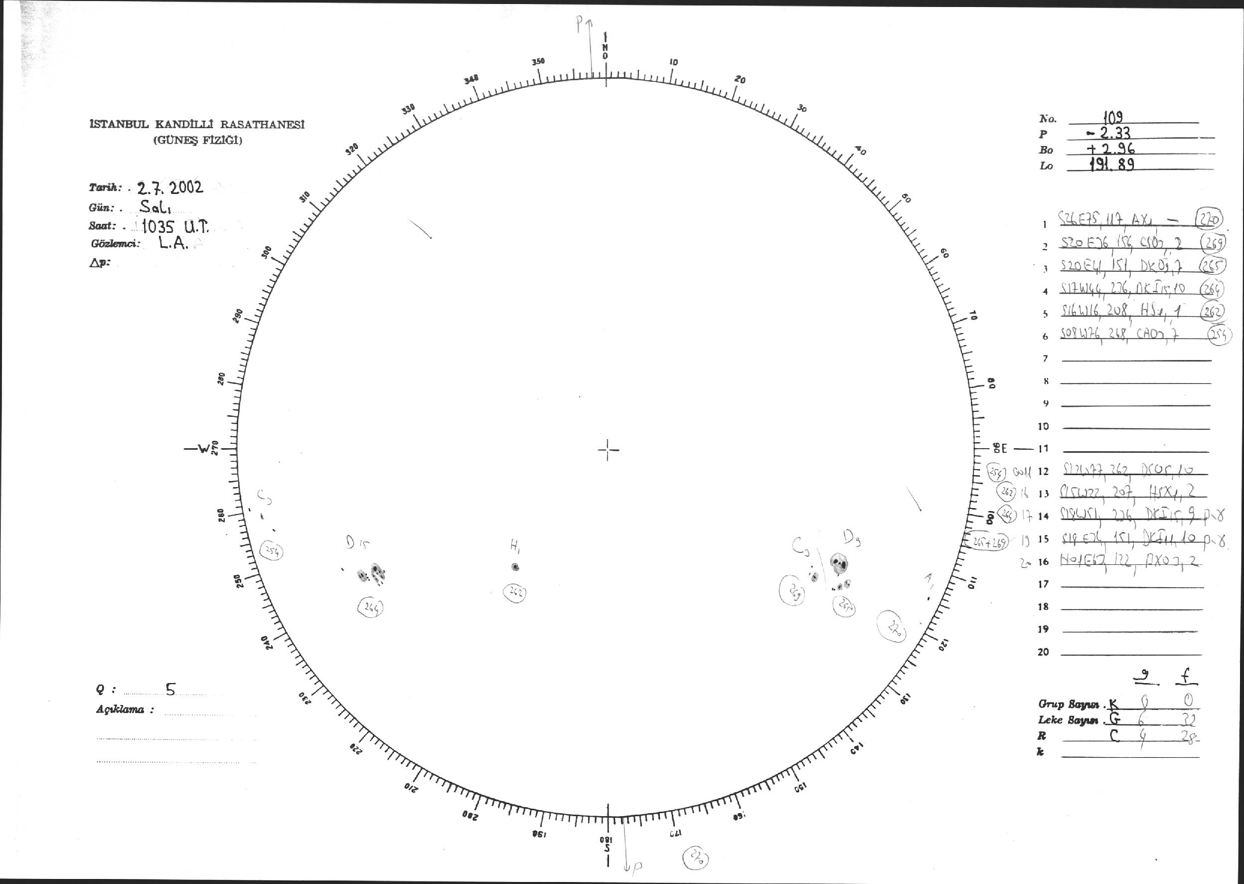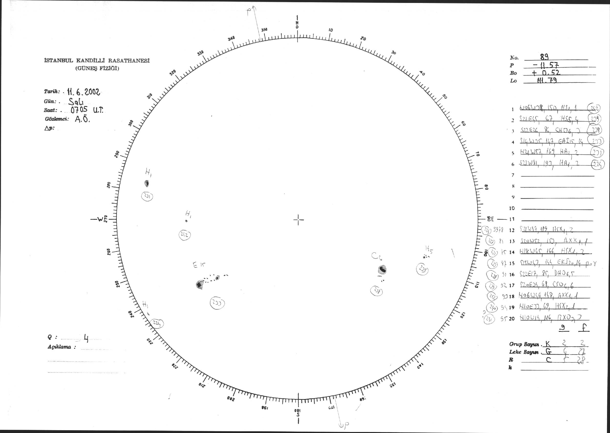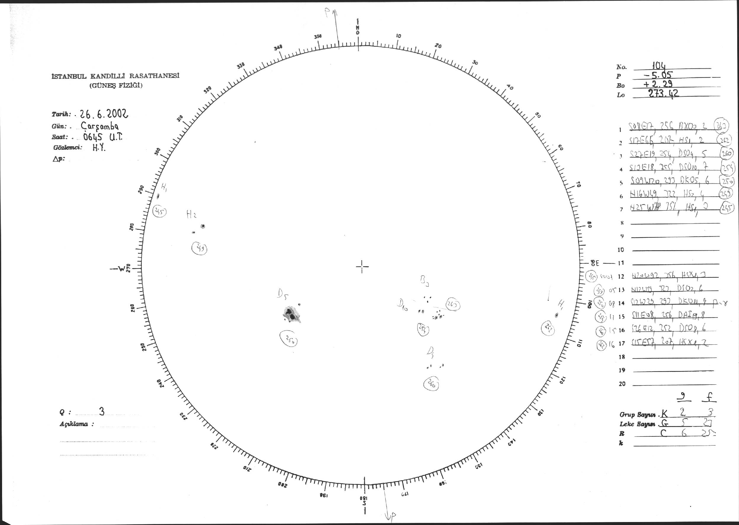Güneş Lekesi Çizimleri / Kandilli Sunspot Drawings