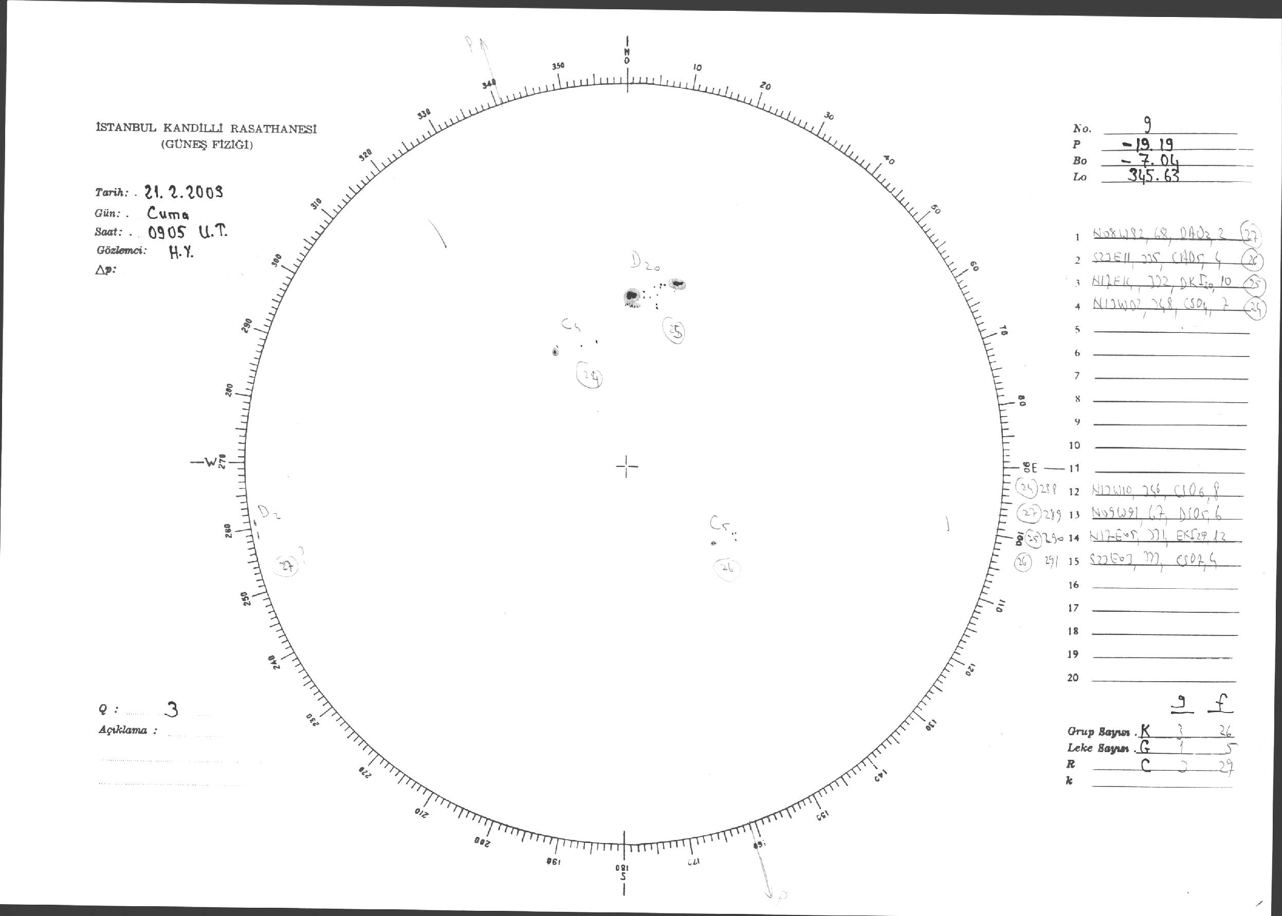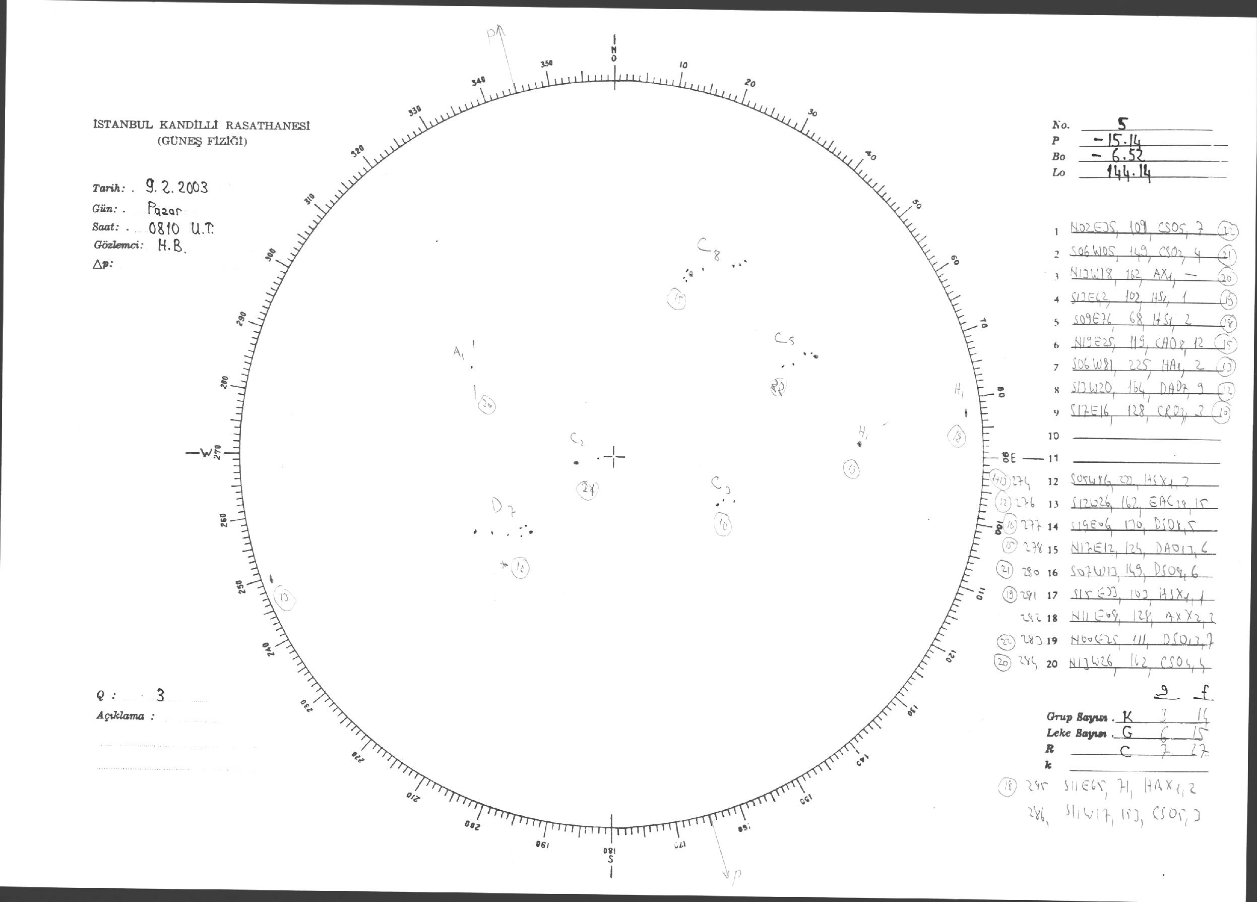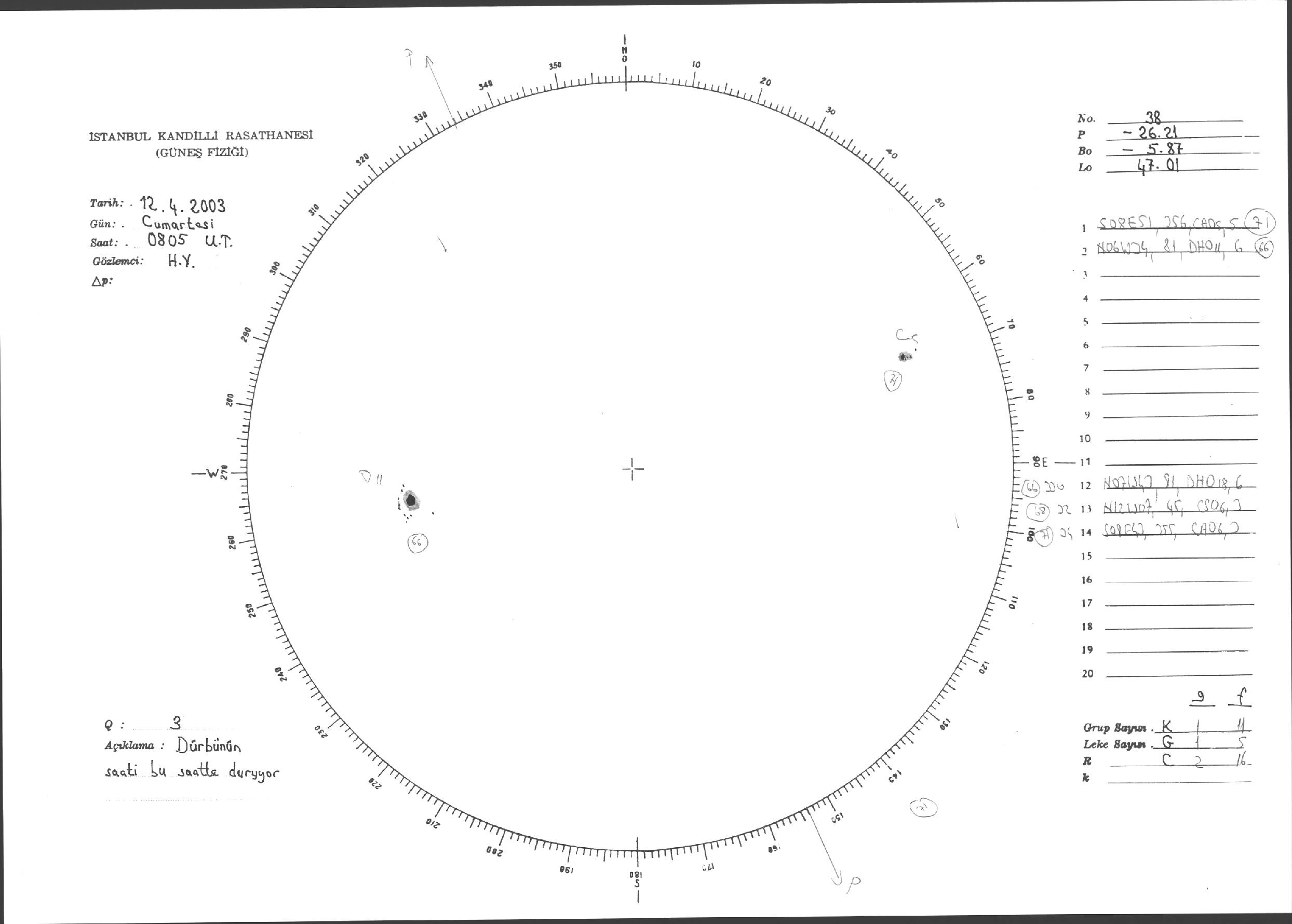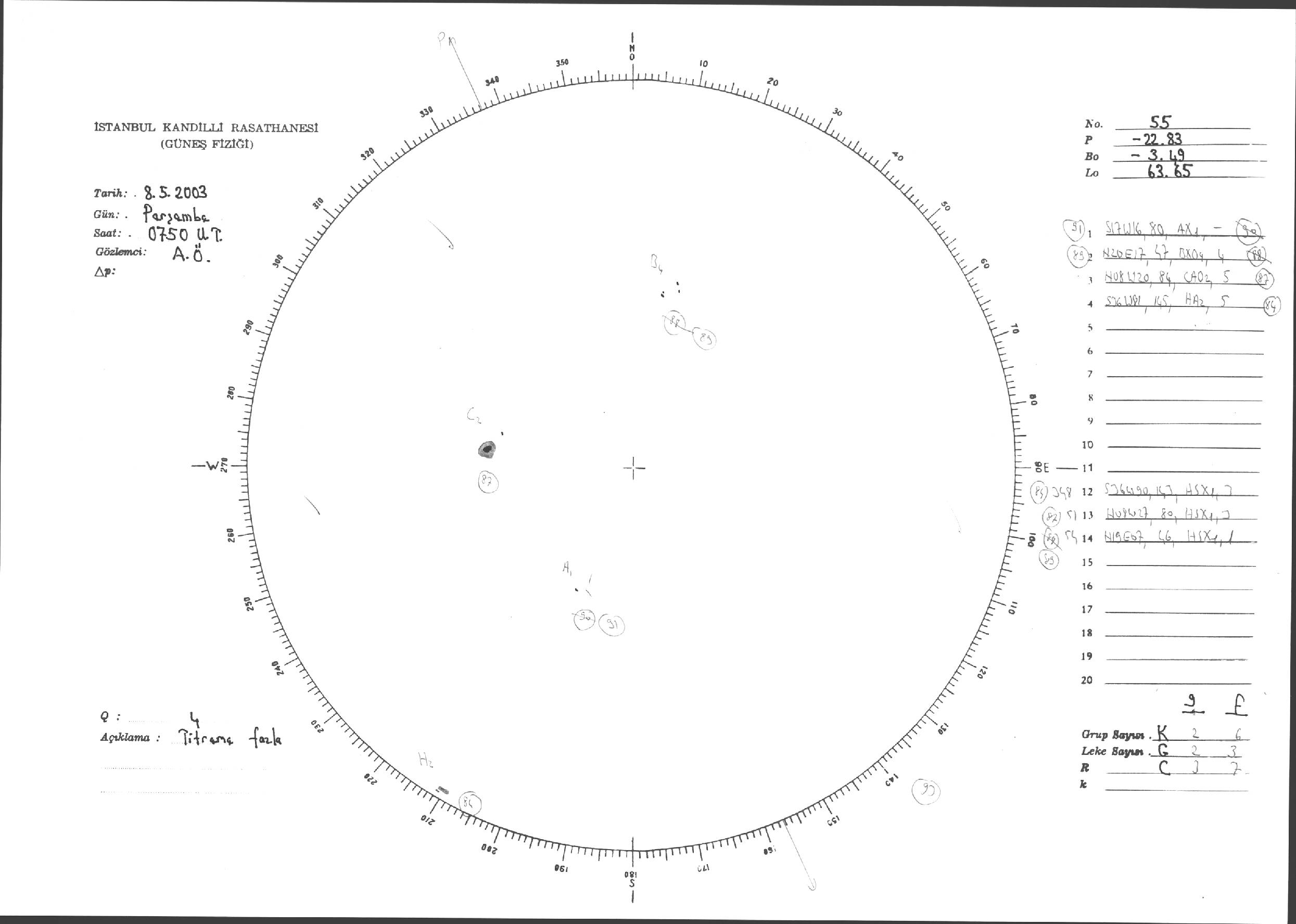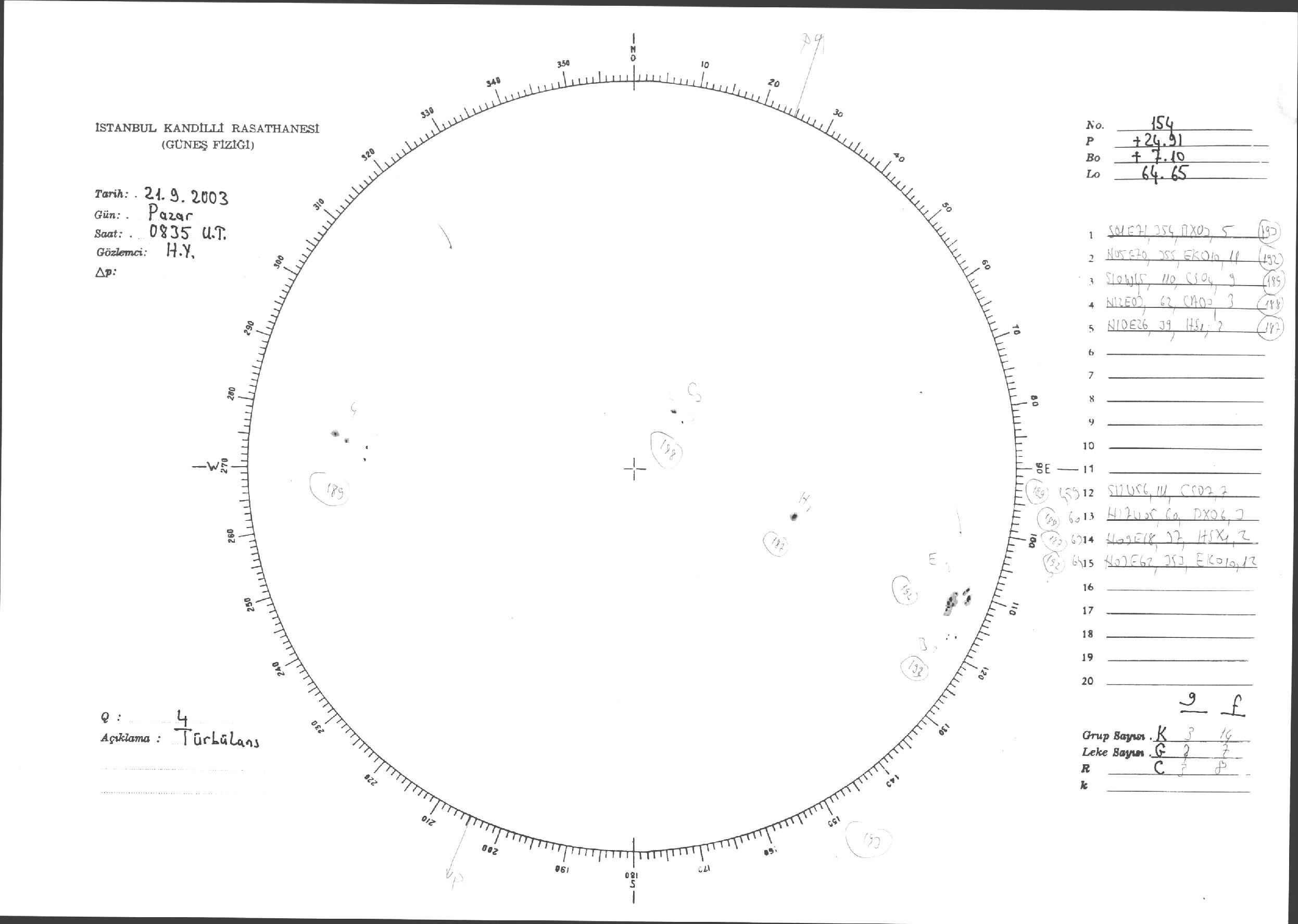Güneş Lekesi Çizimleri / Kandilli Sunspot Drawings