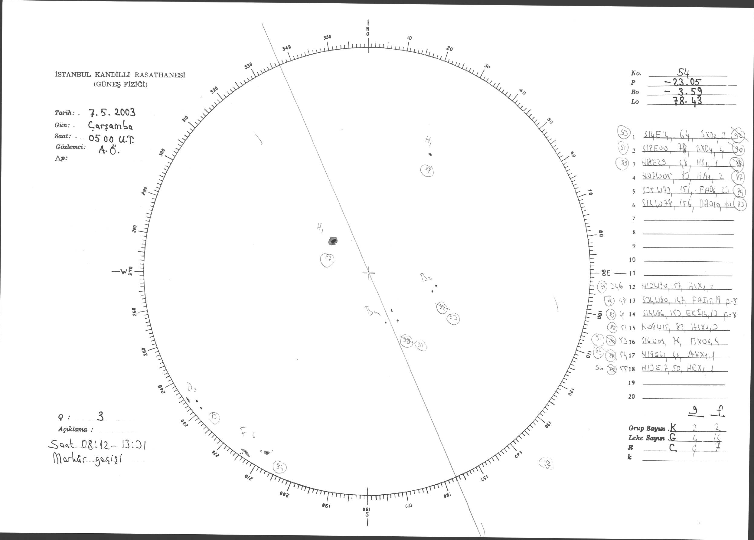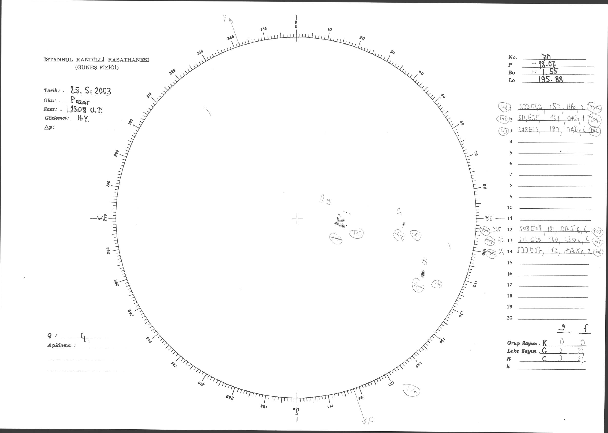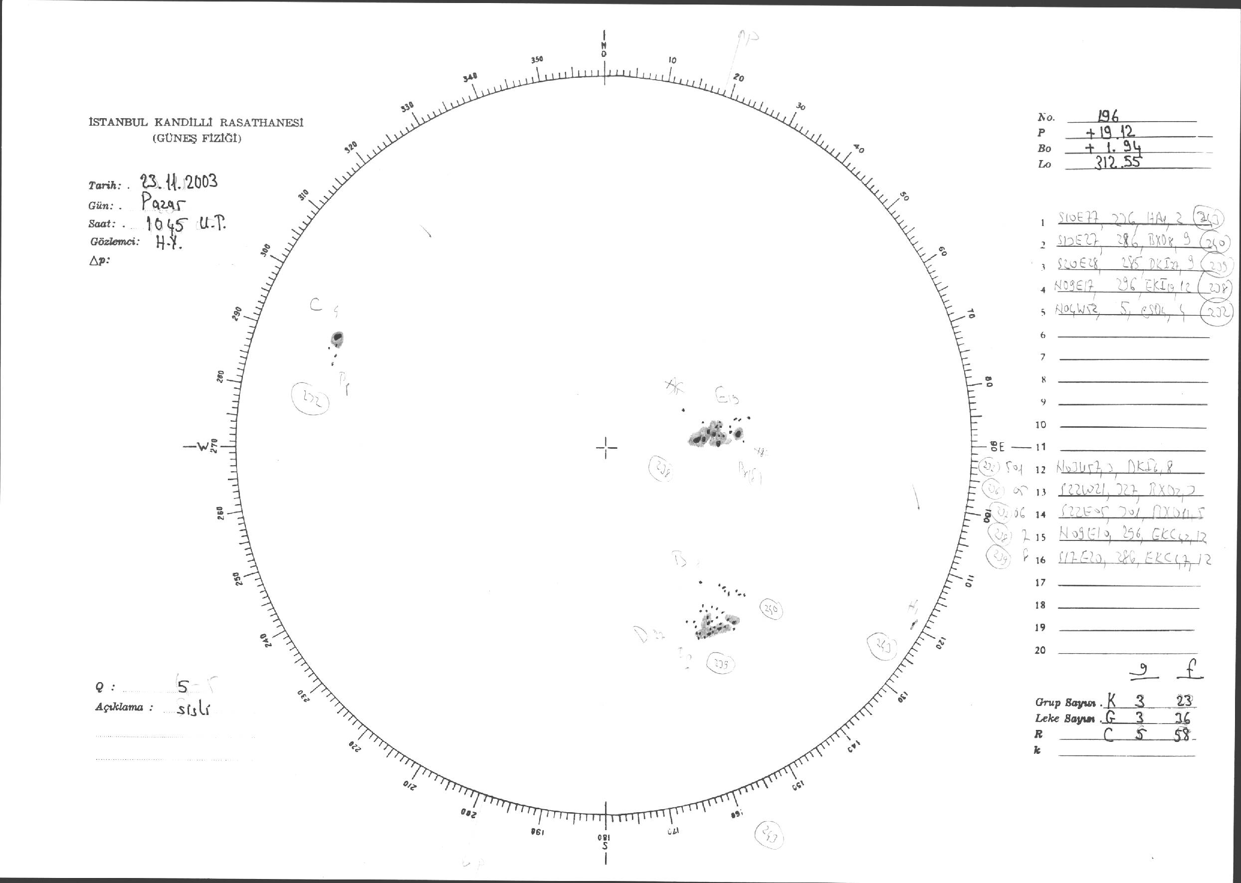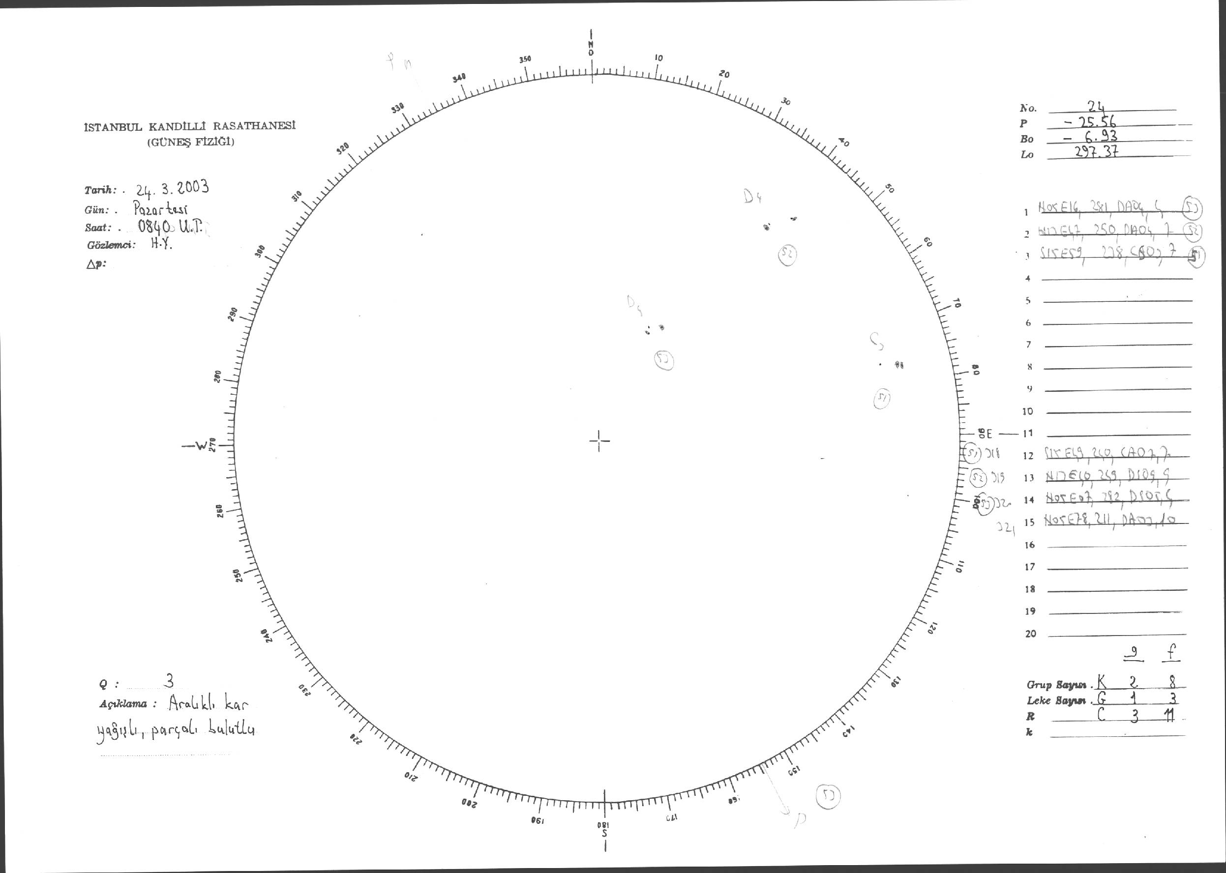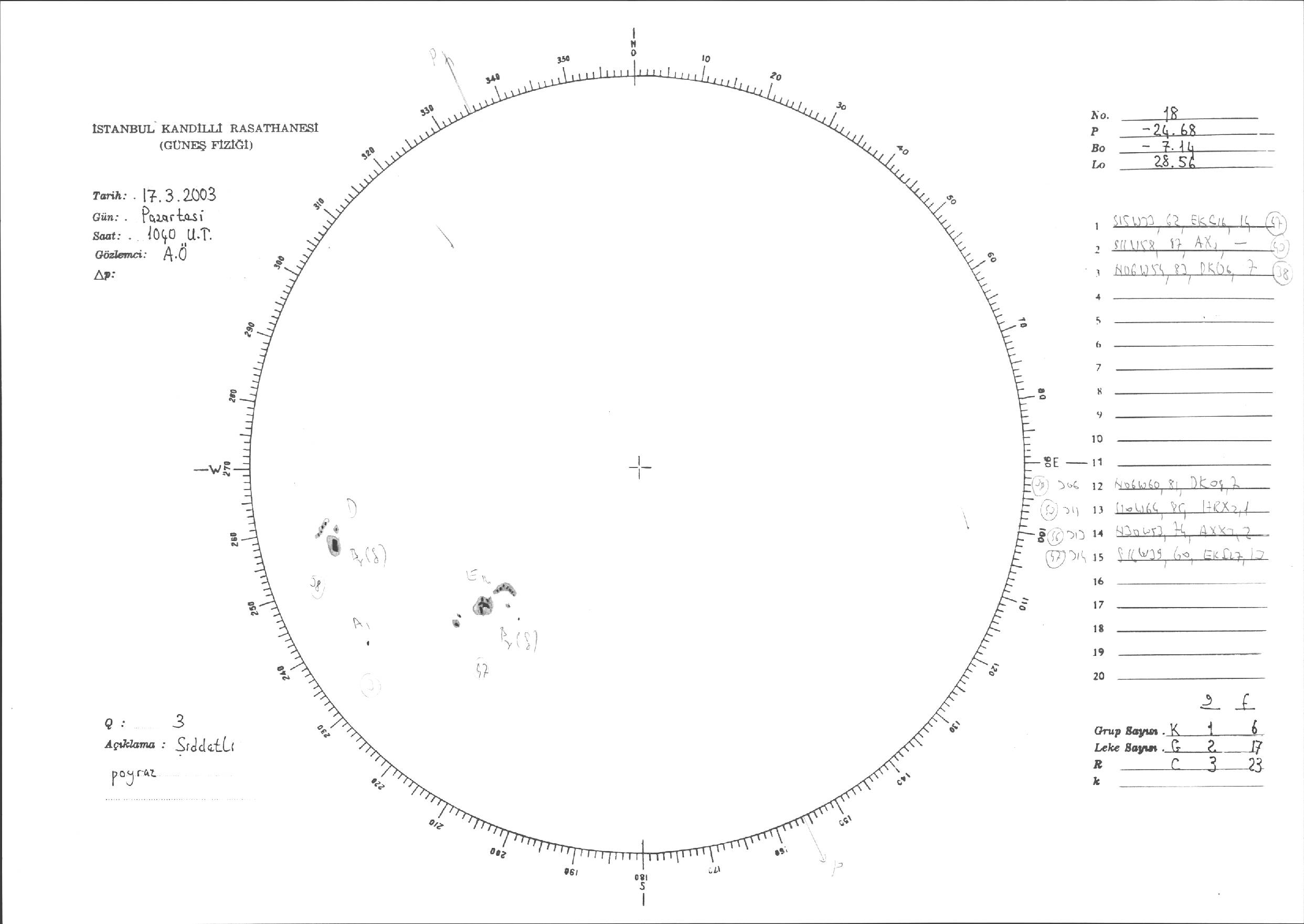 Güneş Lekesi Çizimleri / Kandilli Sunspot Drawings