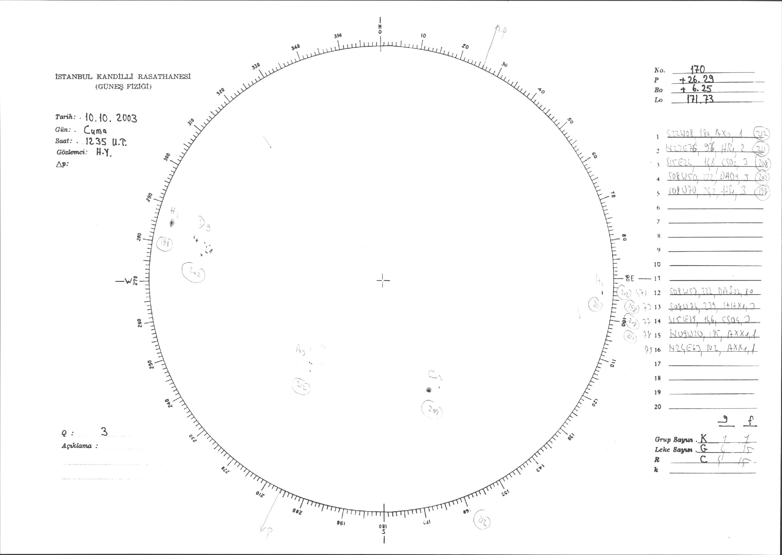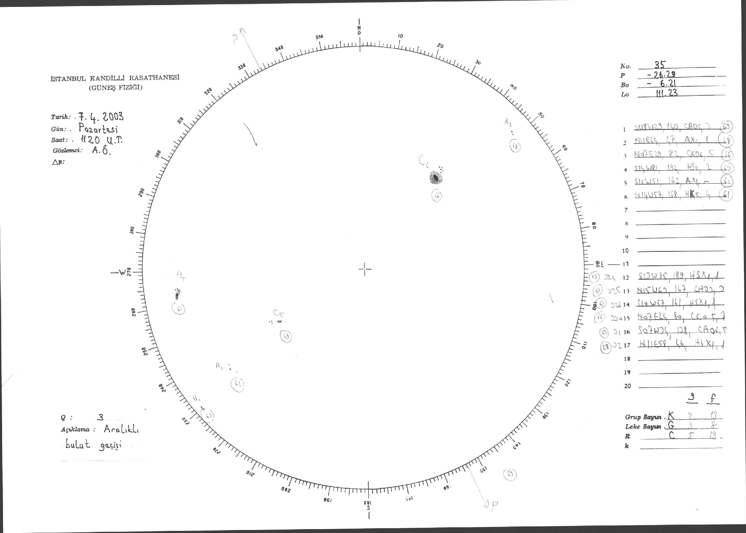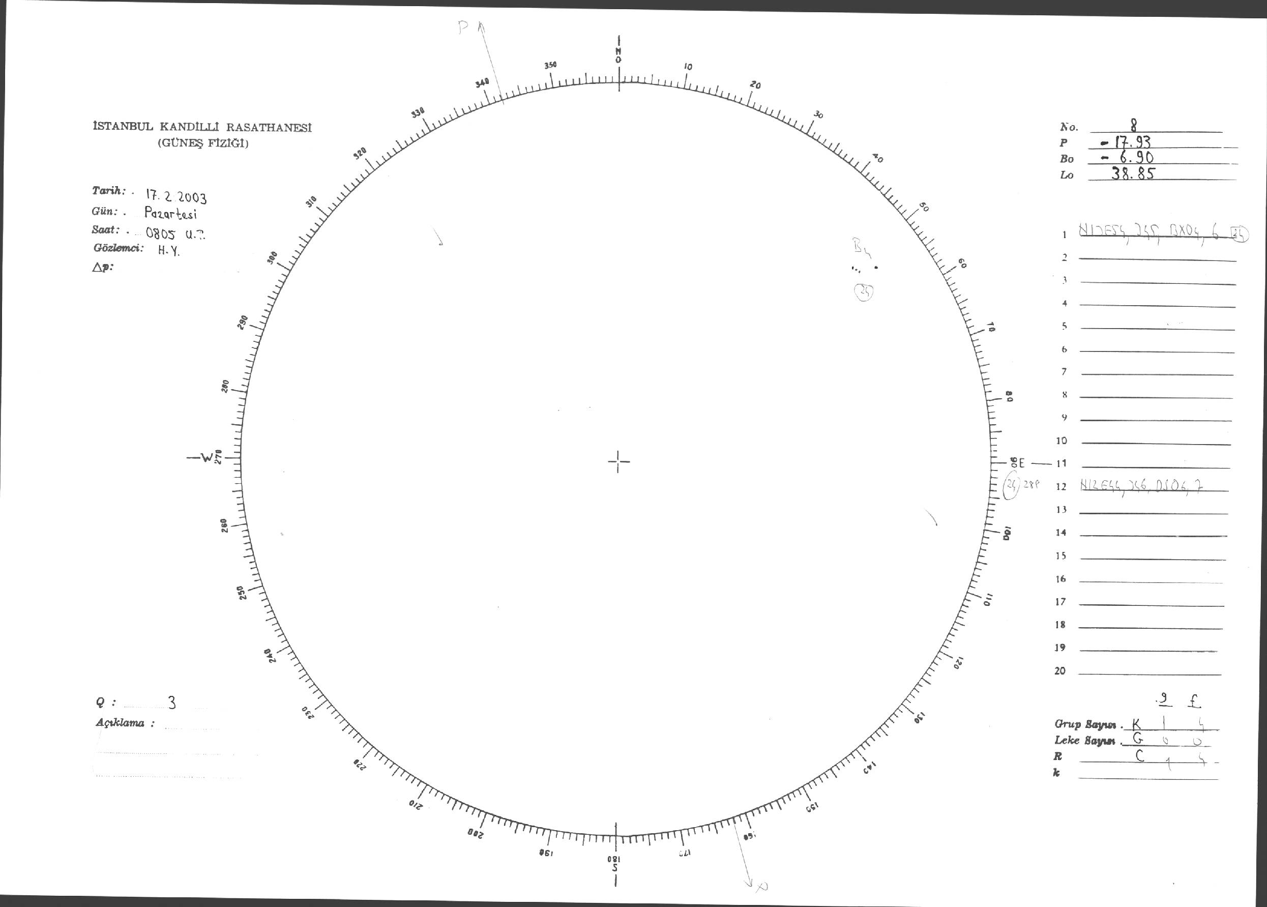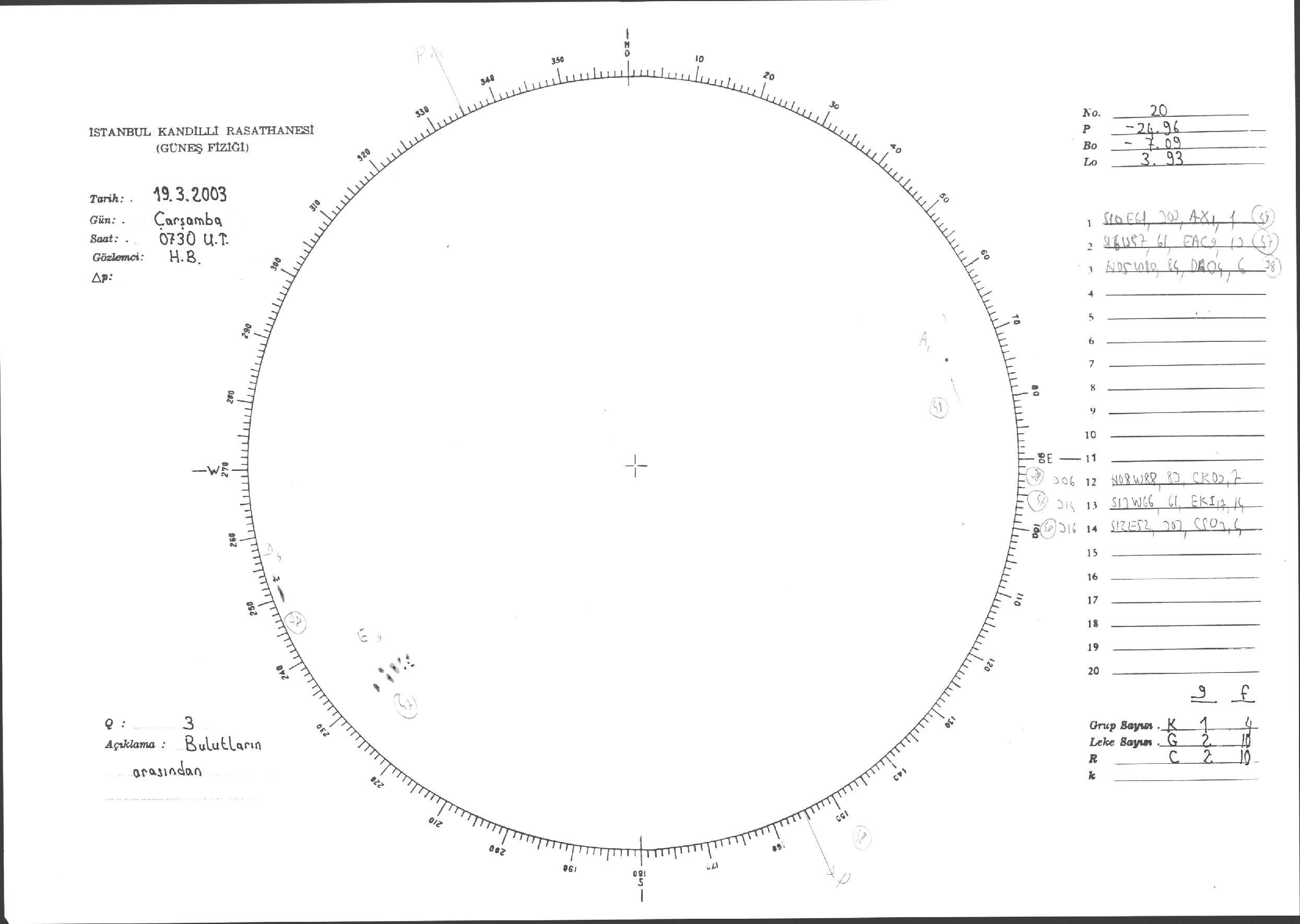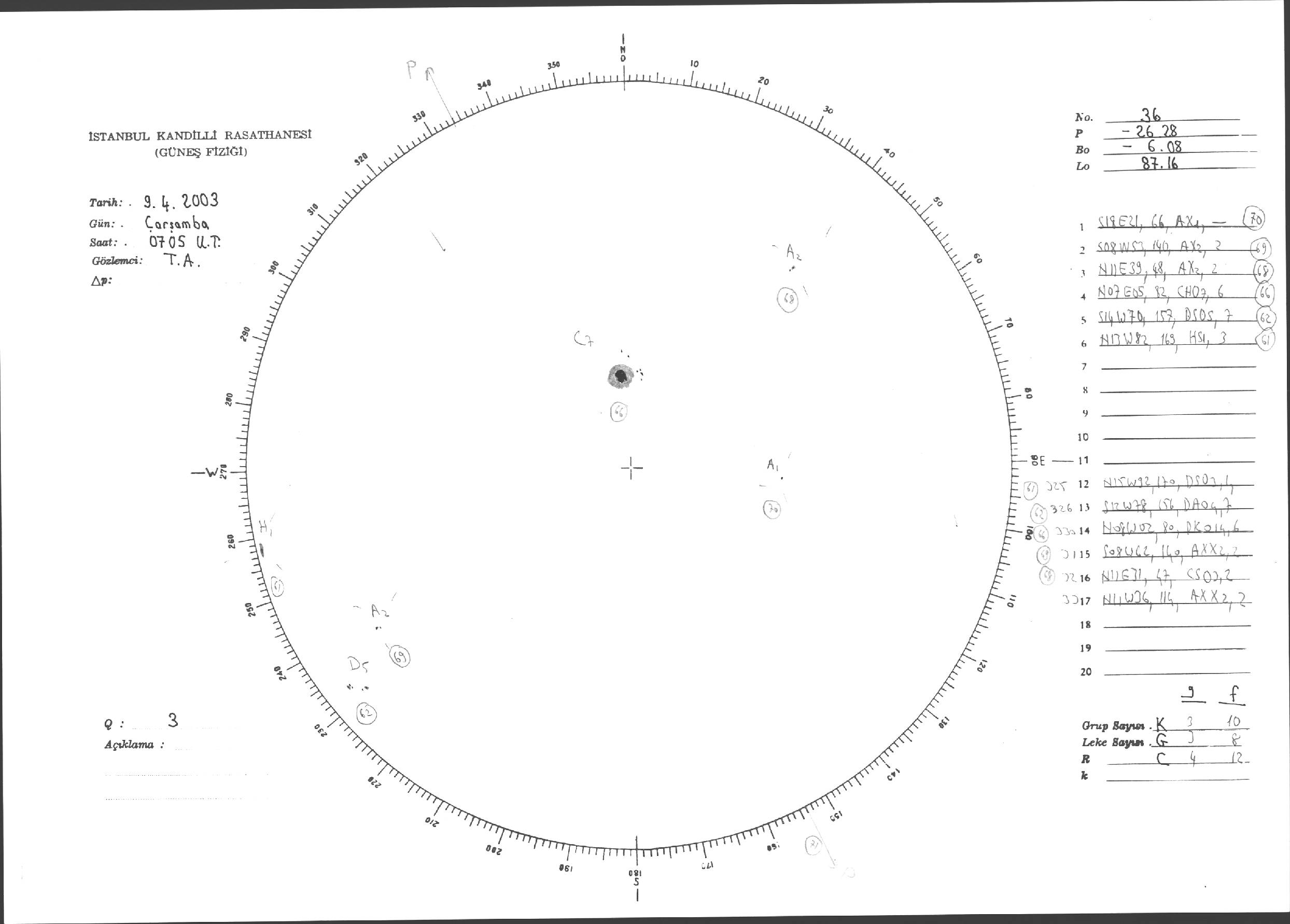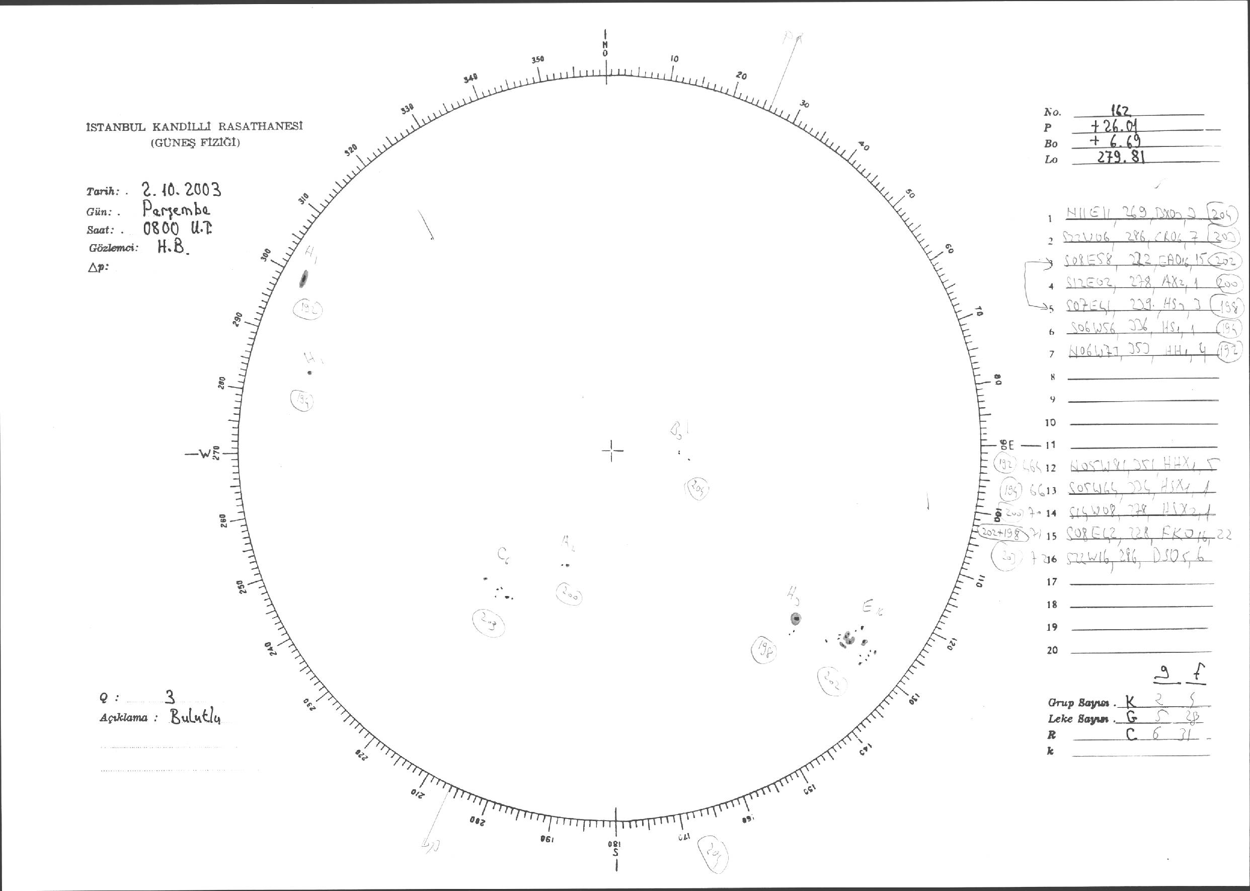 Güneş Lekesi Çizimleri / Kandilli Sunspot Drawings