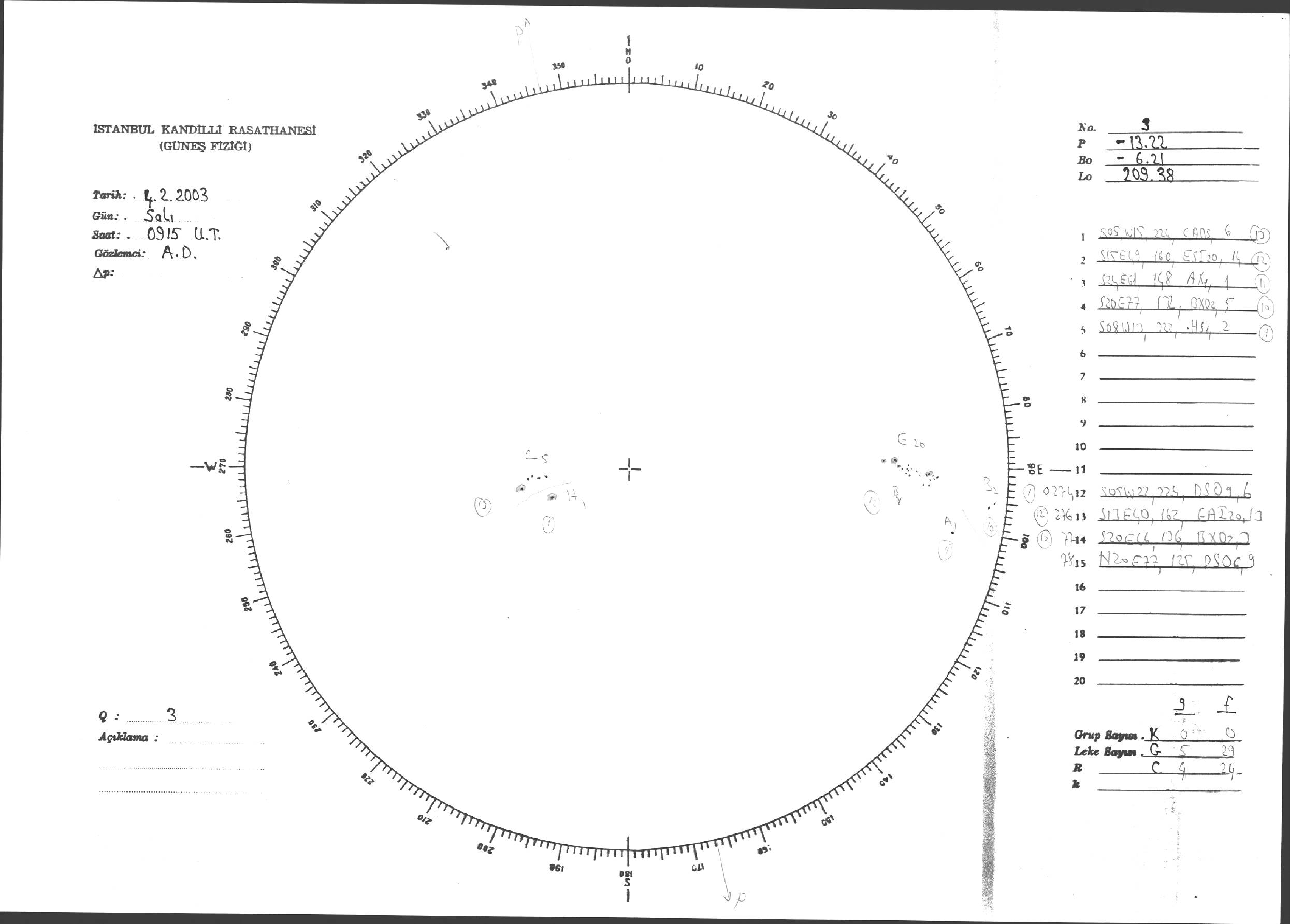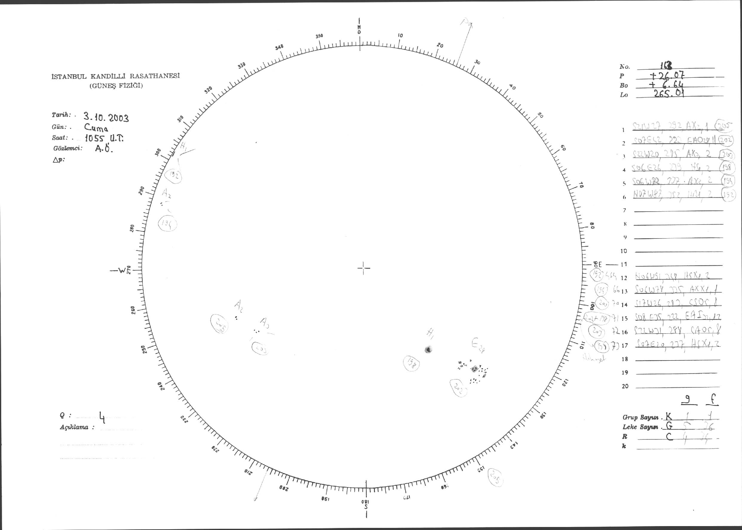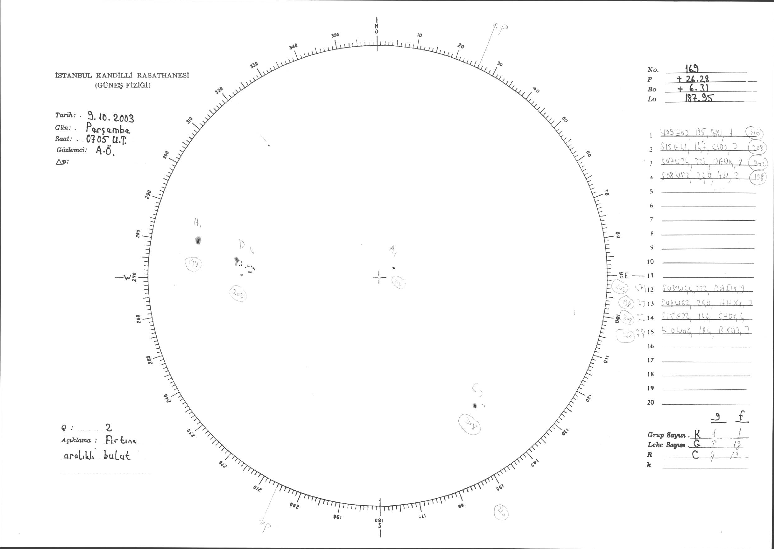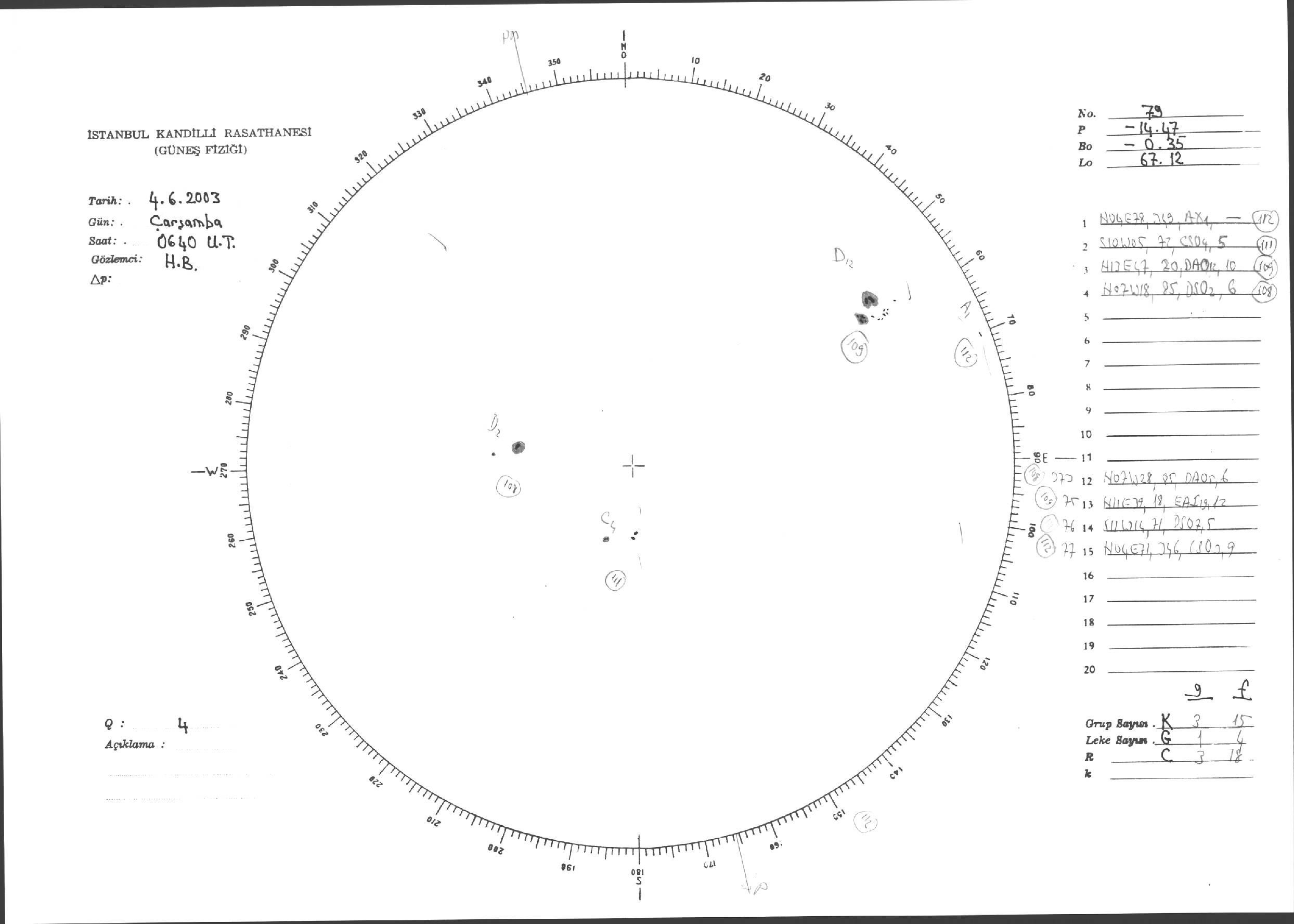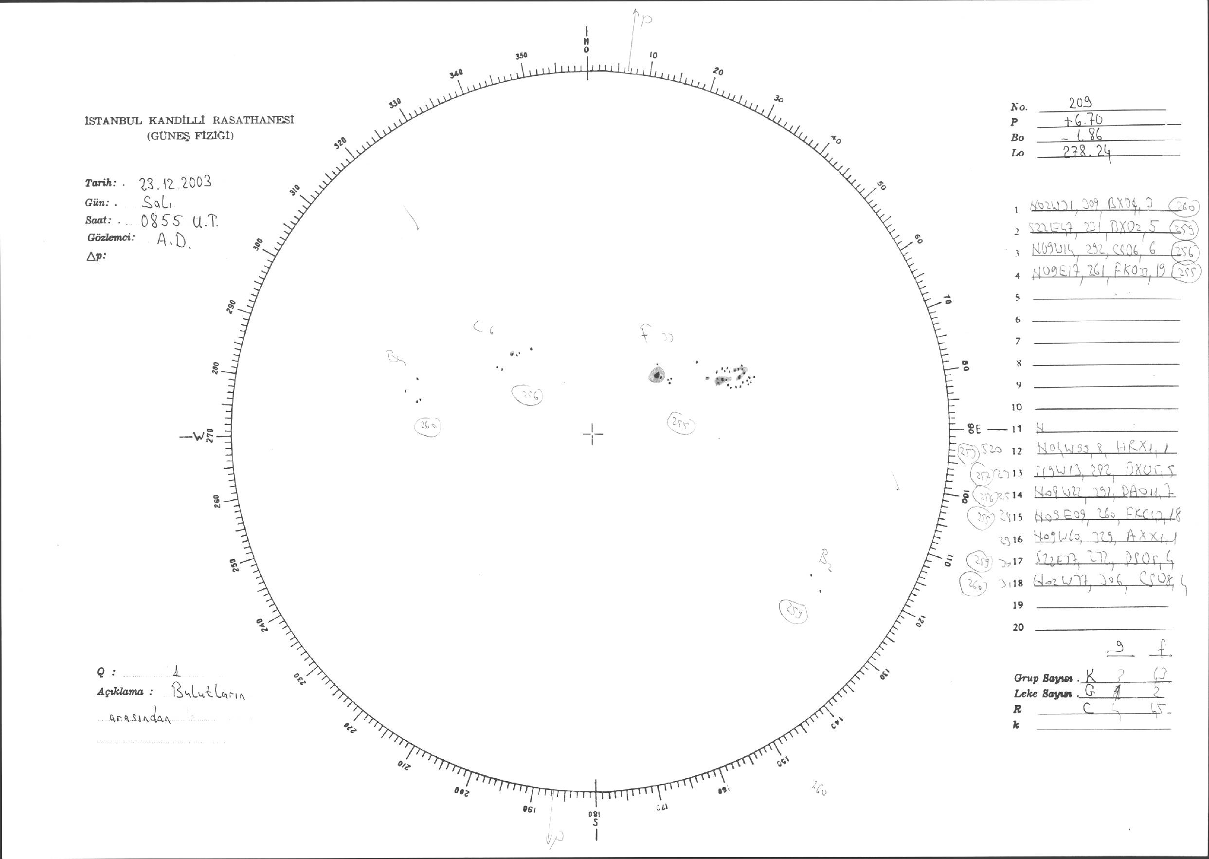 Güneş Lekesi Çizimleri / Kandilli Sunspot Drawings