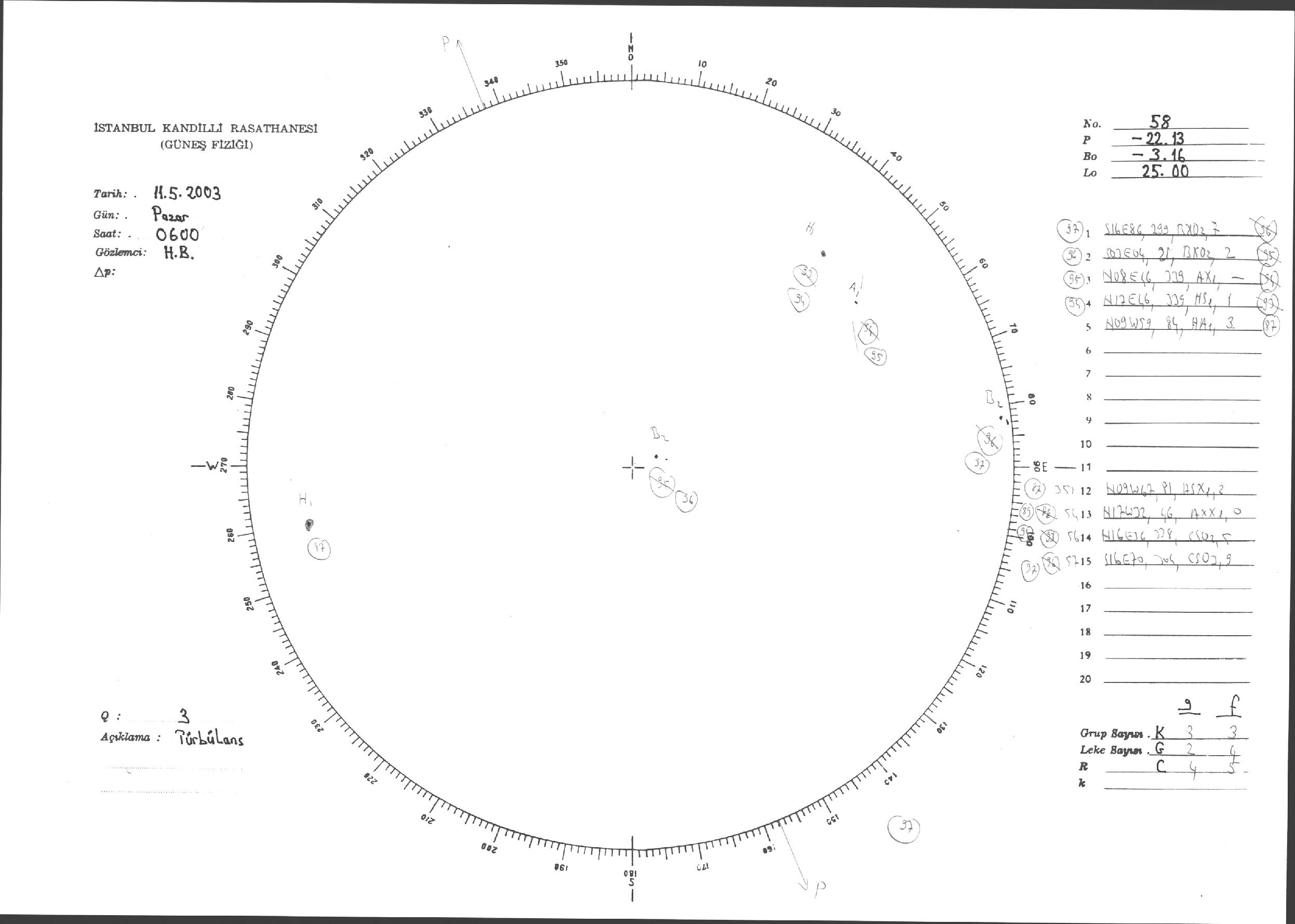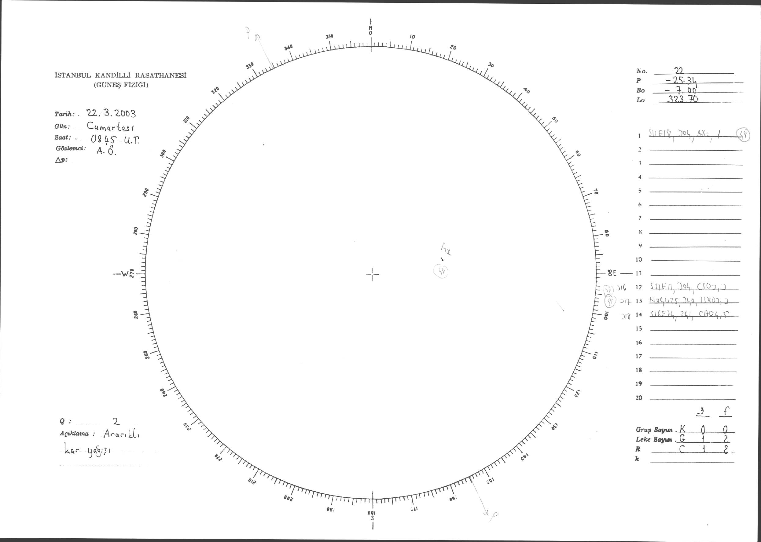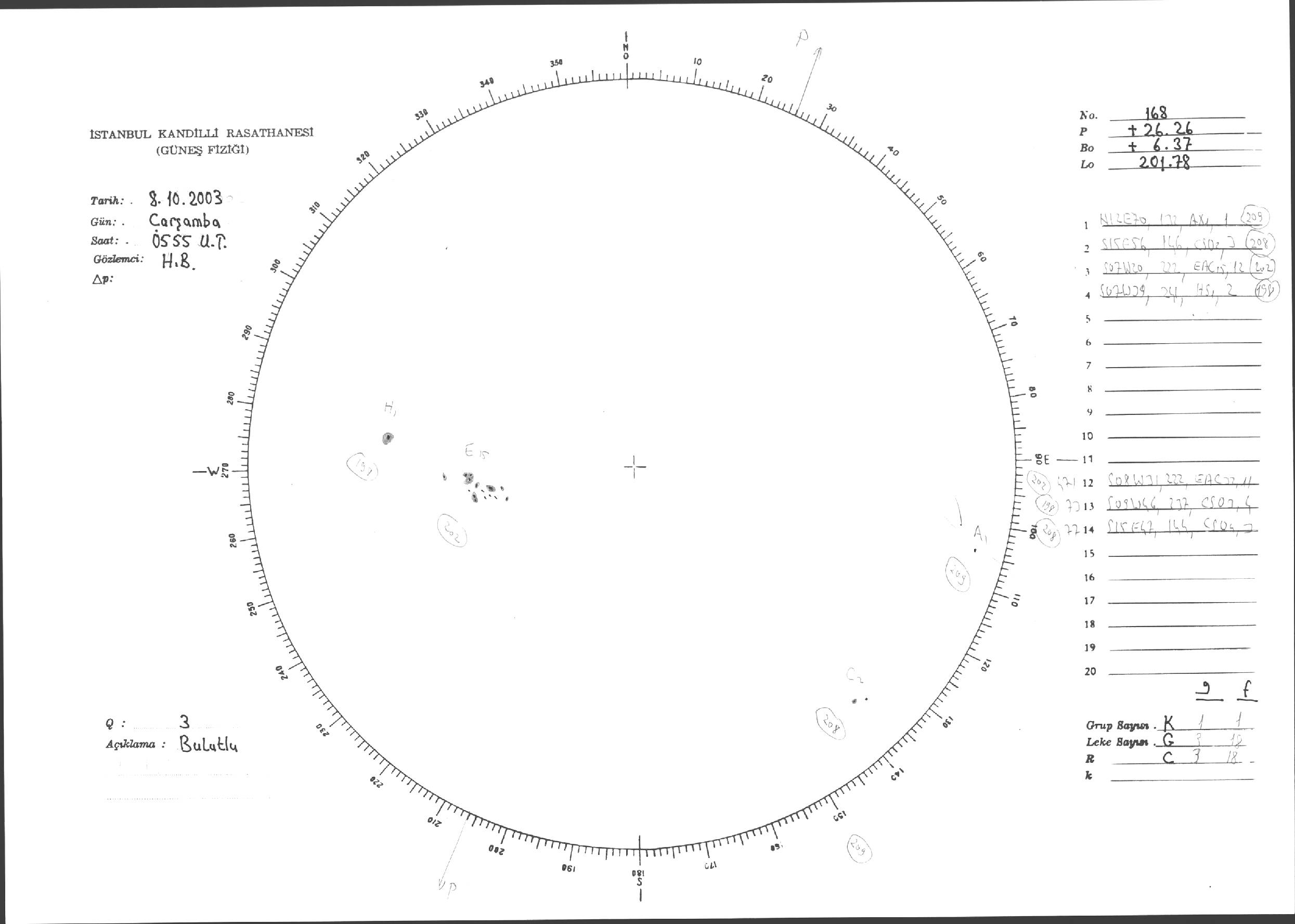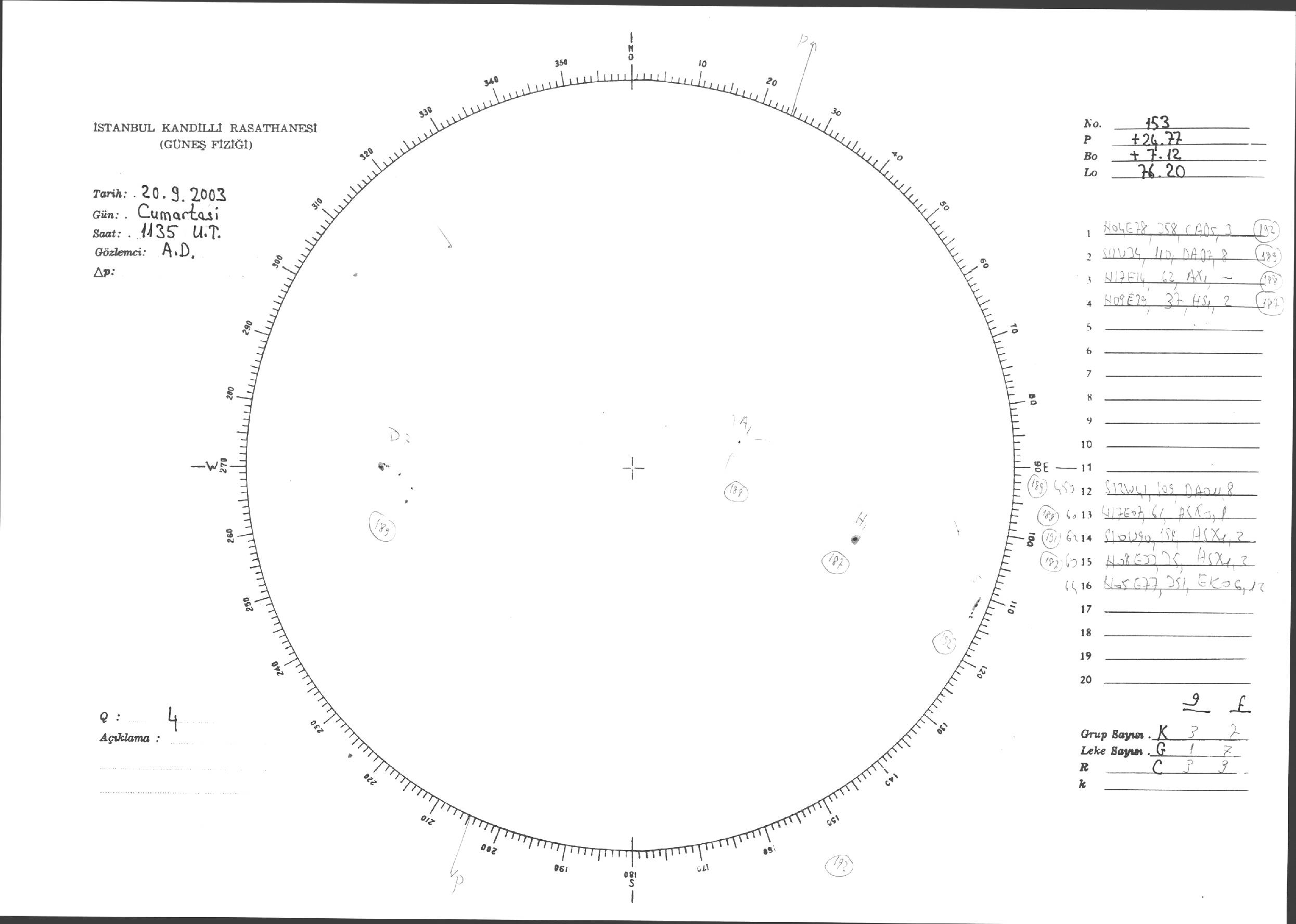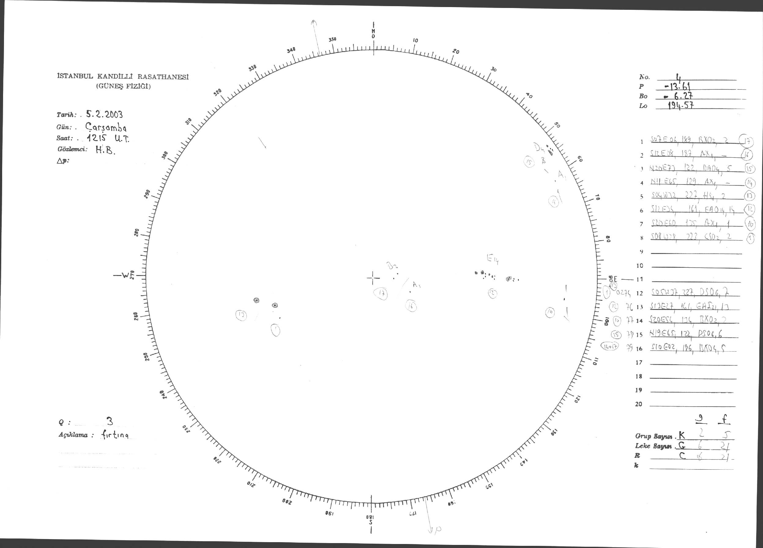 Güneş Lekesi Çizimleri / Kandilli Sunspot Drawings