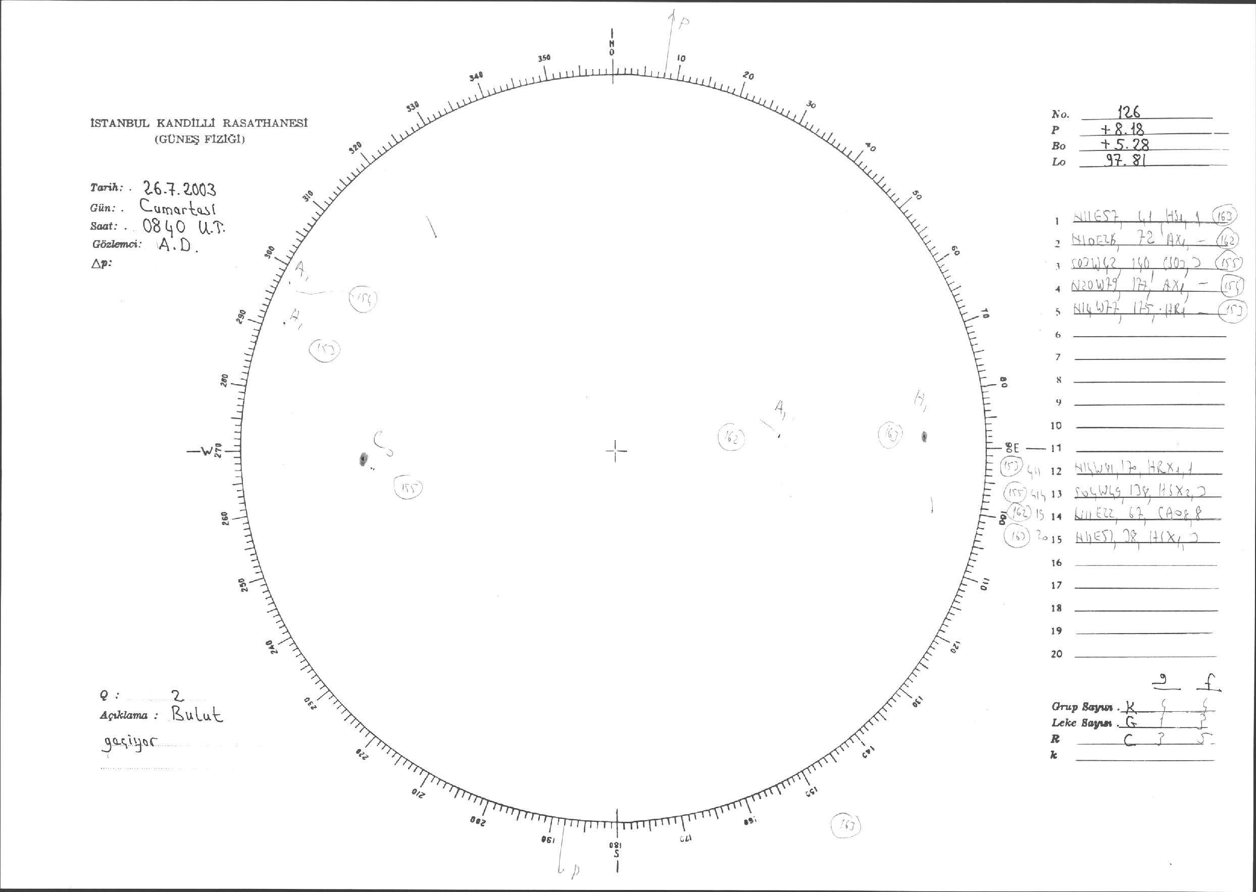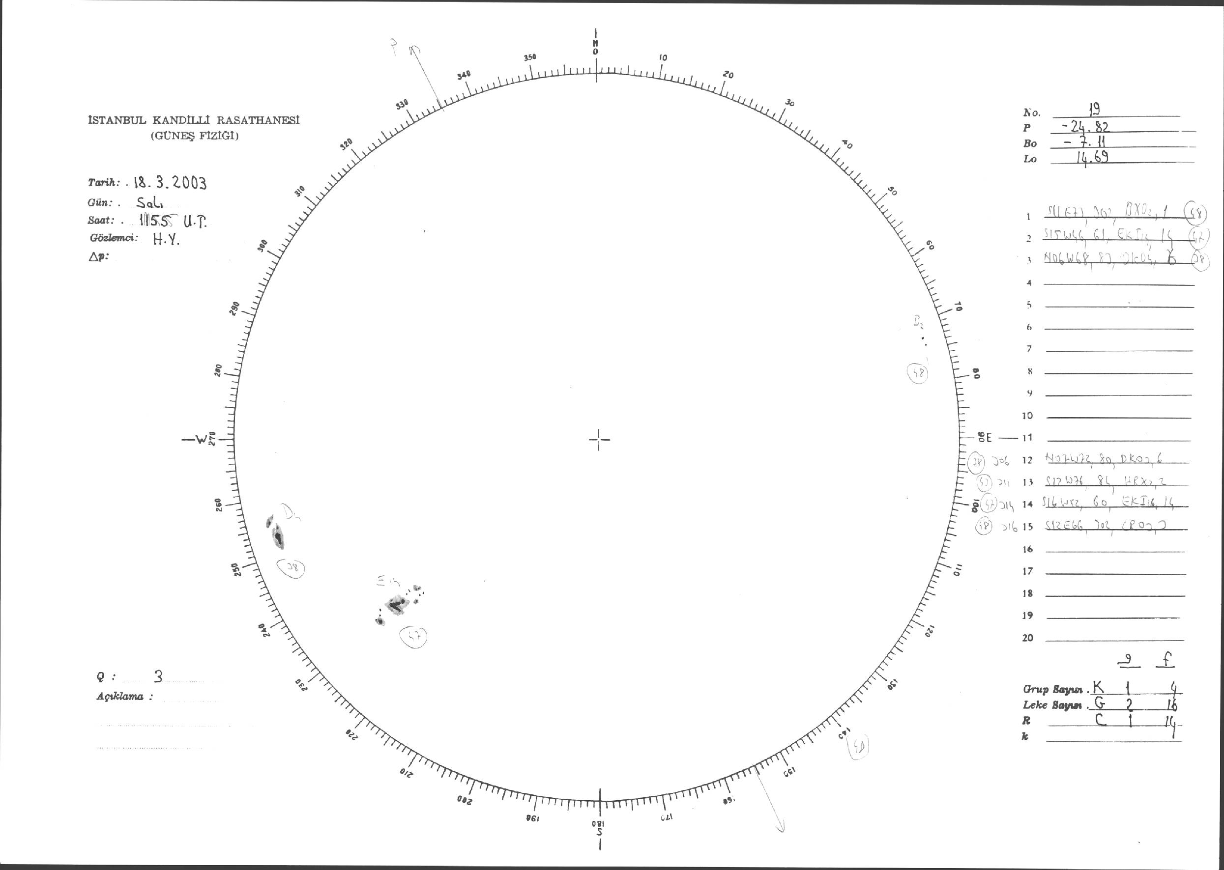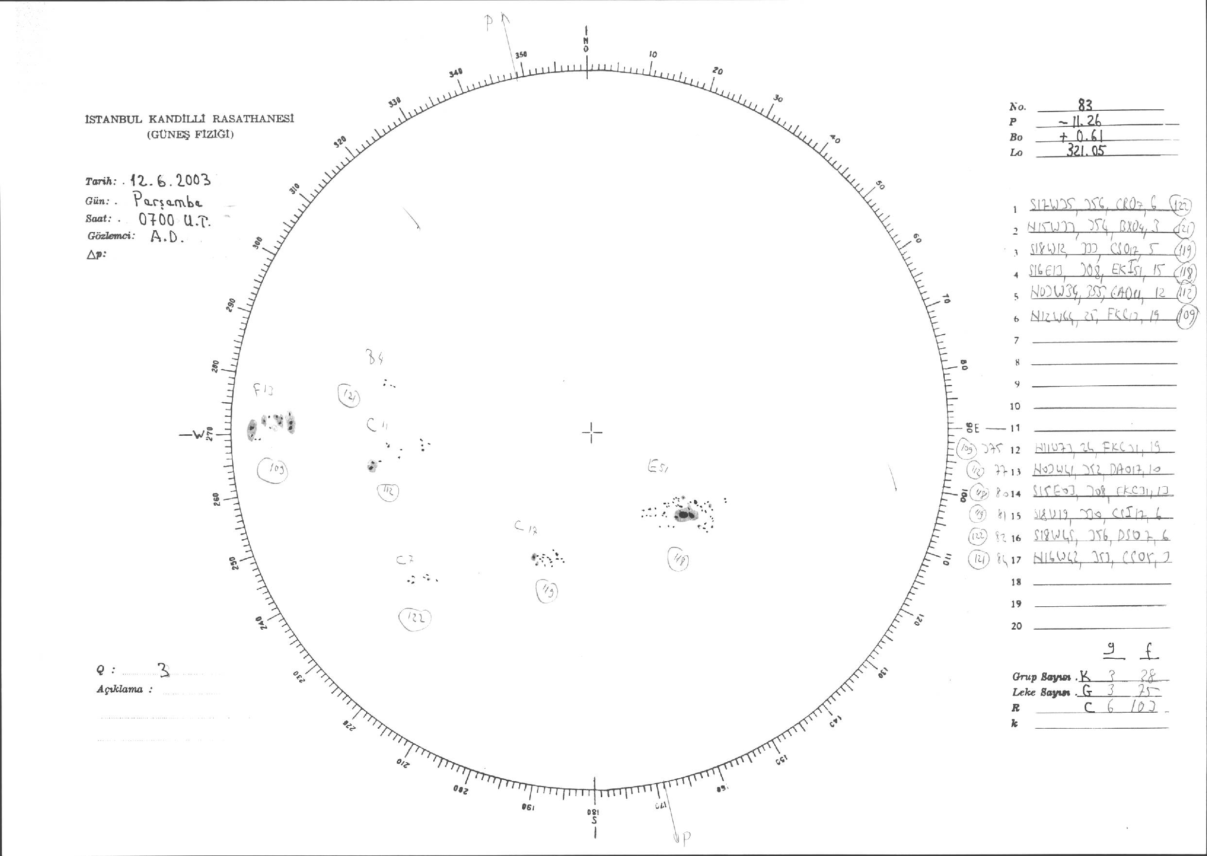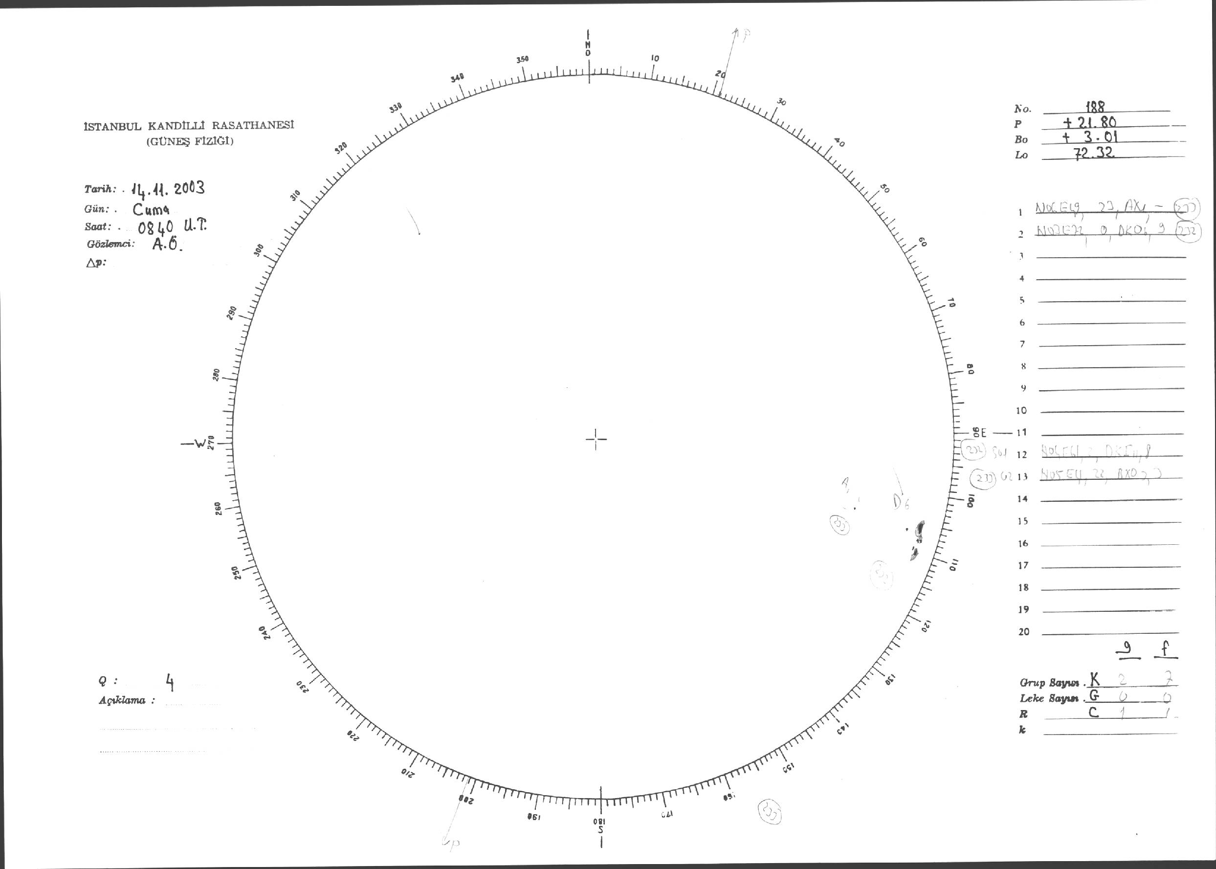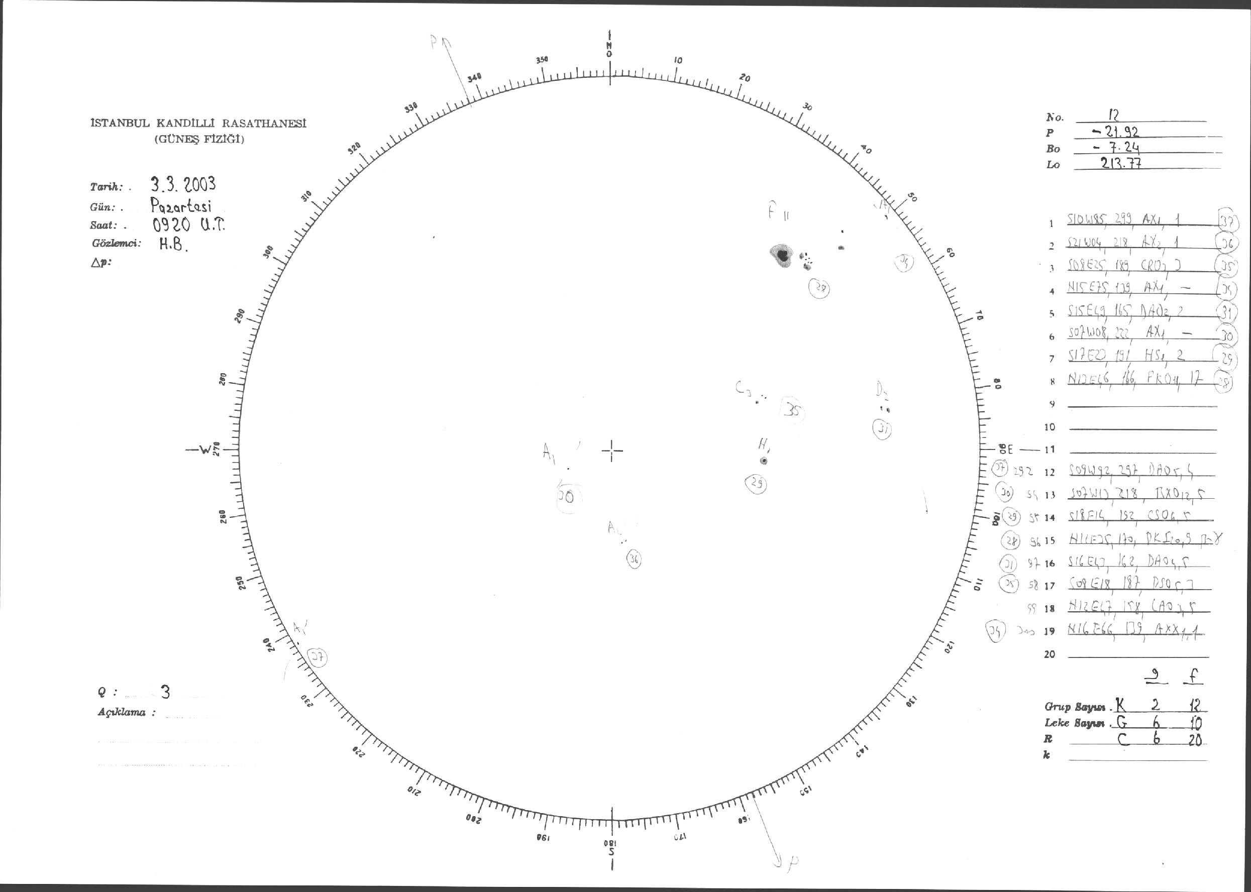 Güneş Lekesi Çizimleri / Kandilli Sunspot Drawings