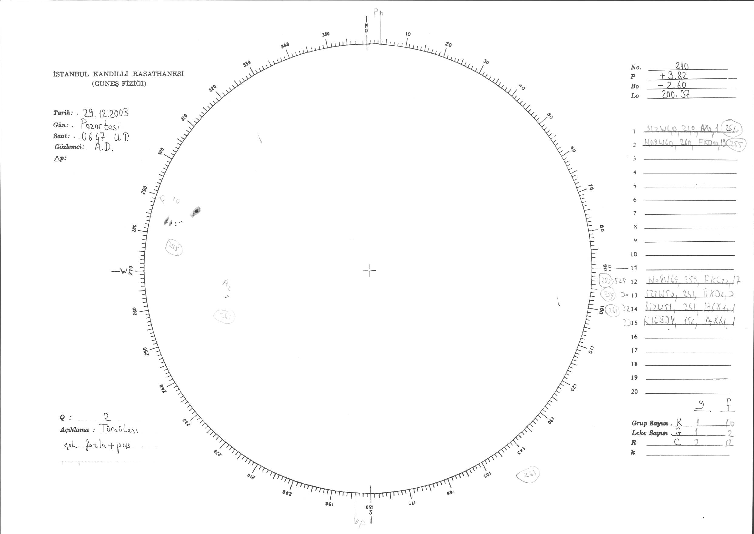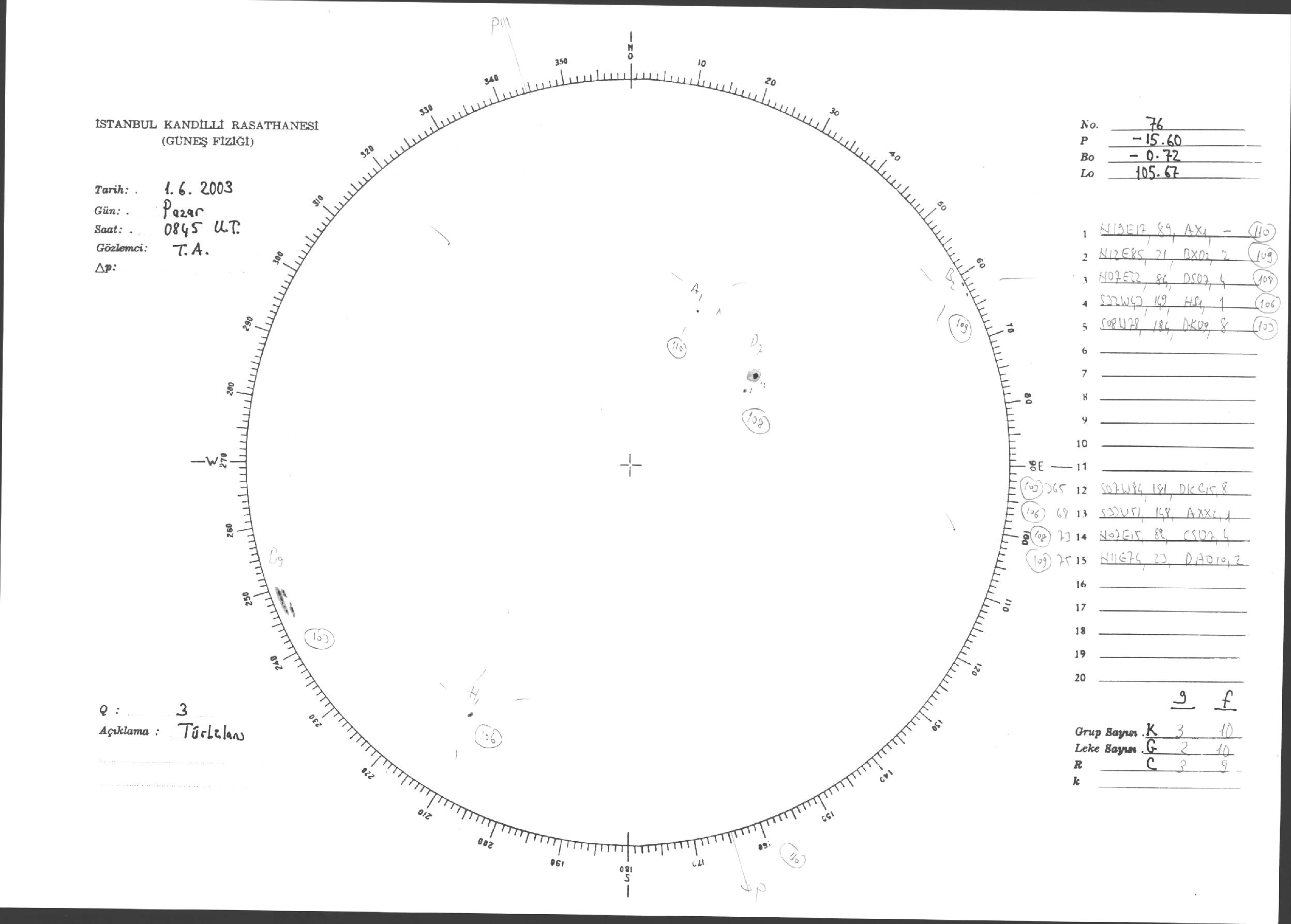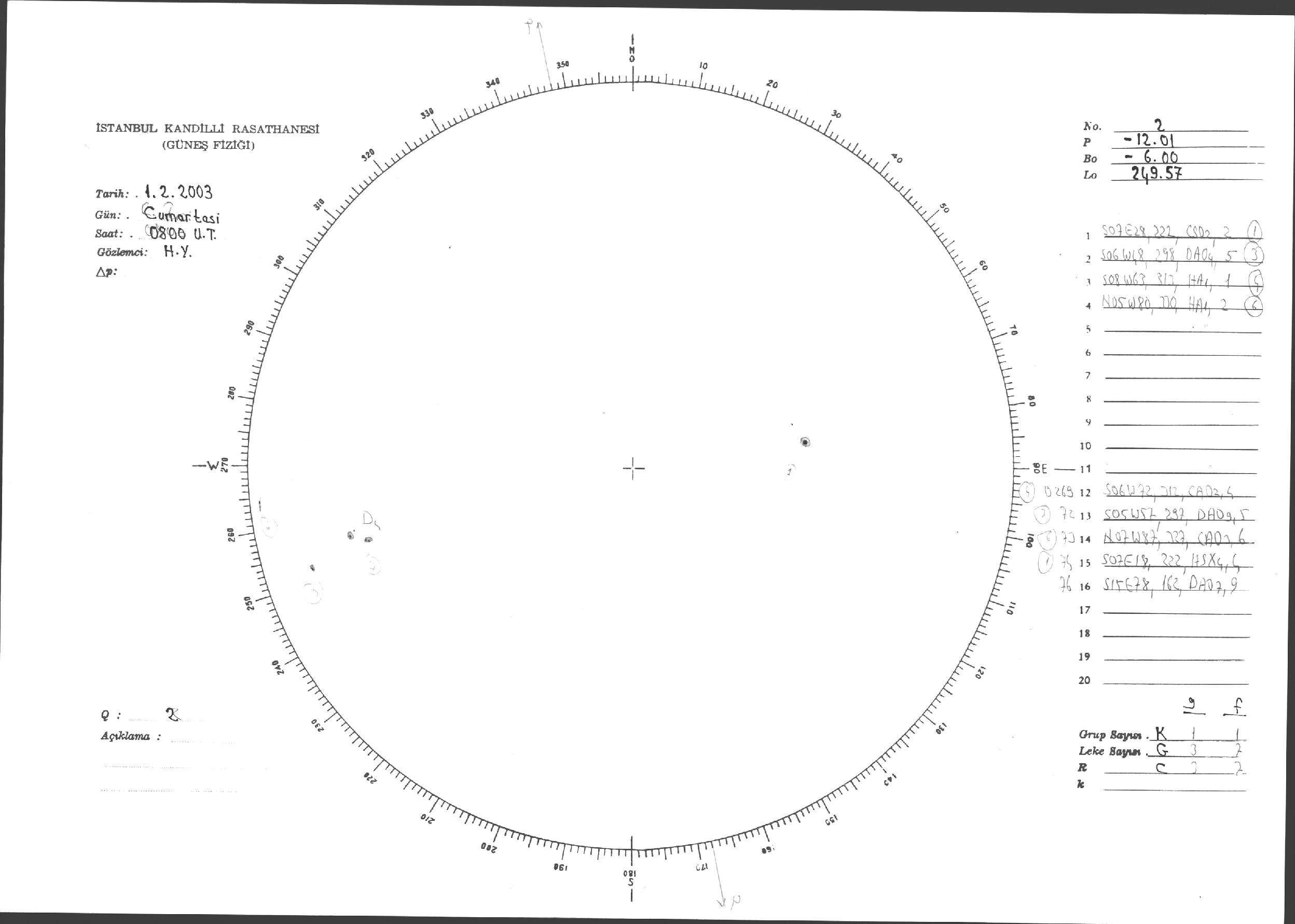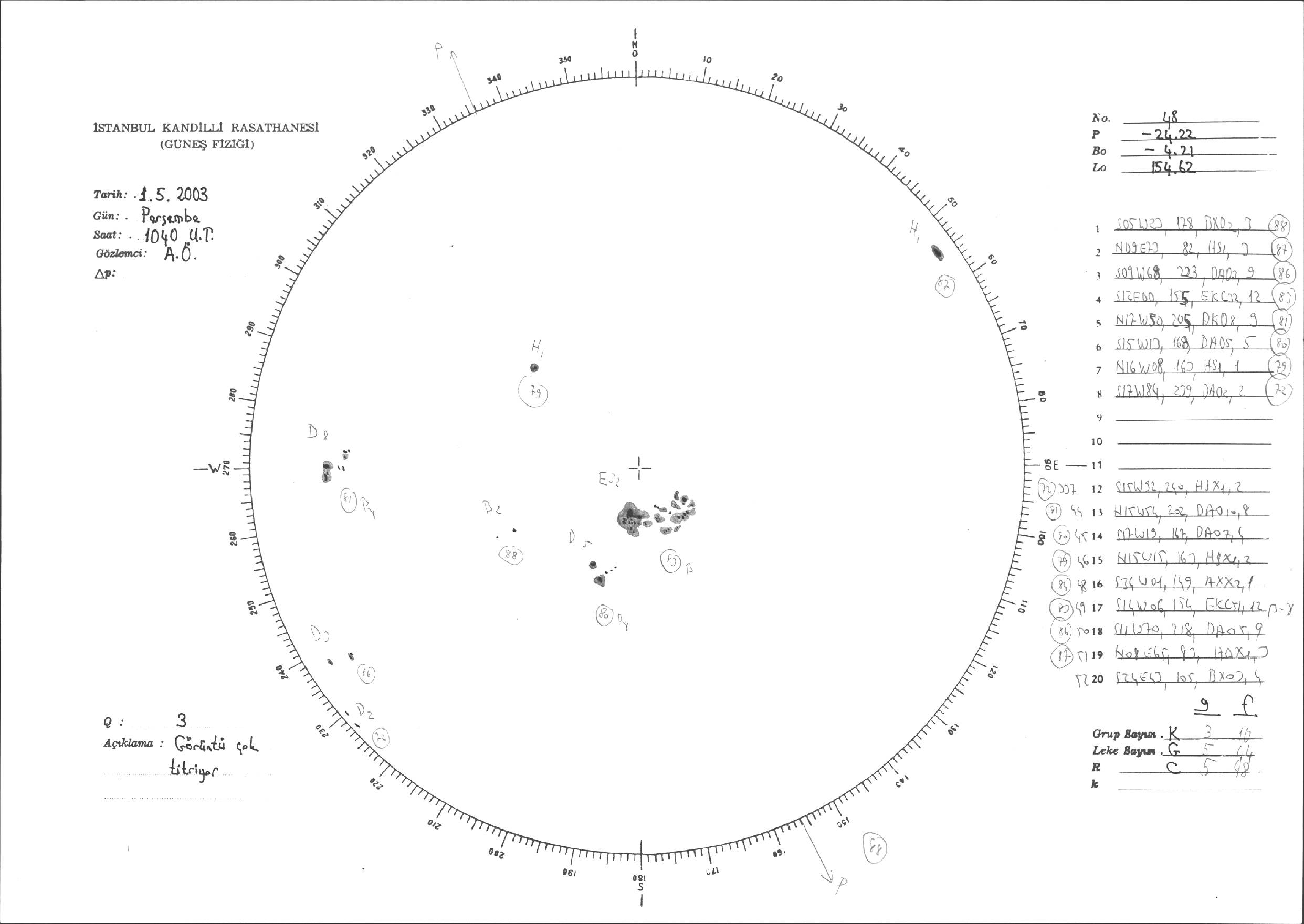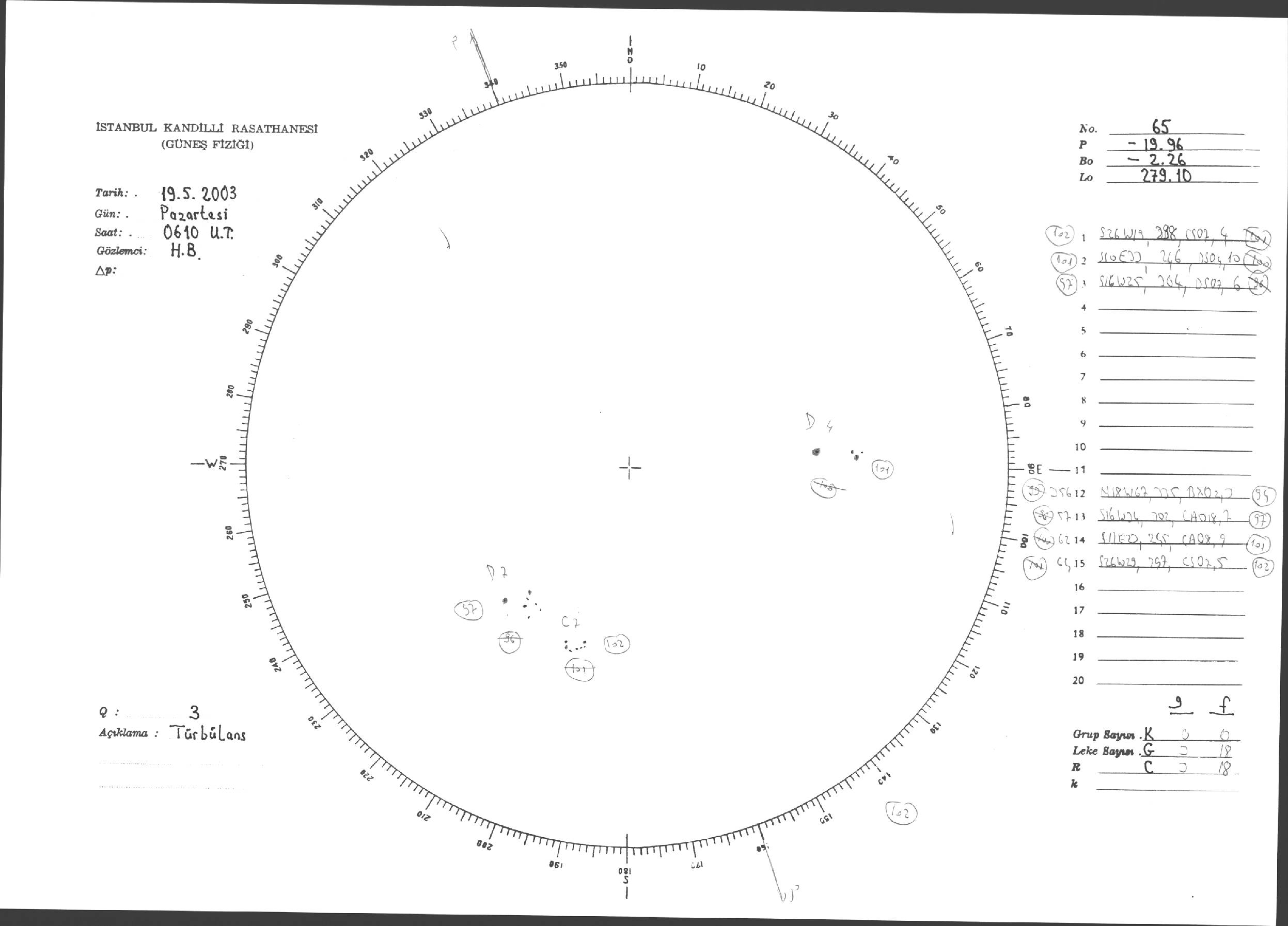 Güneş Lekesi Çizimleri / Kandilli Sunspot Drawings