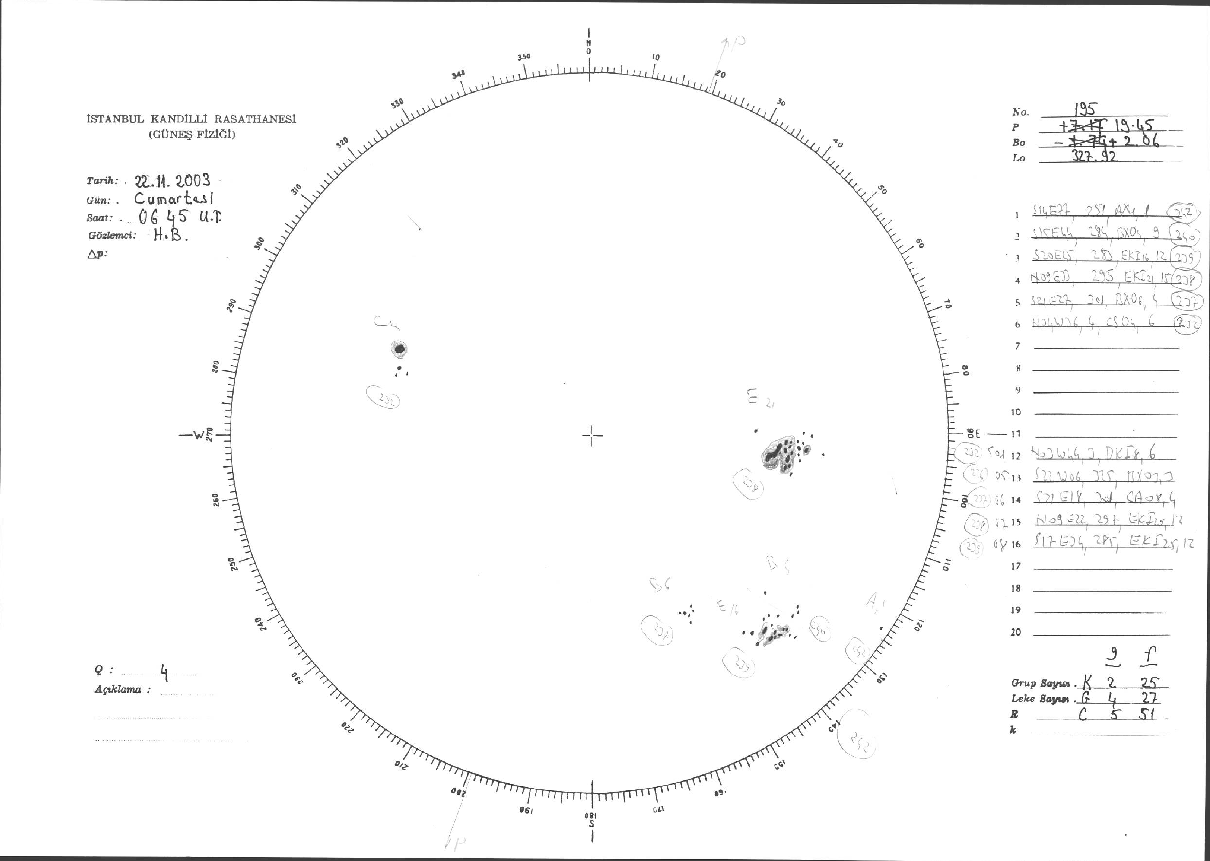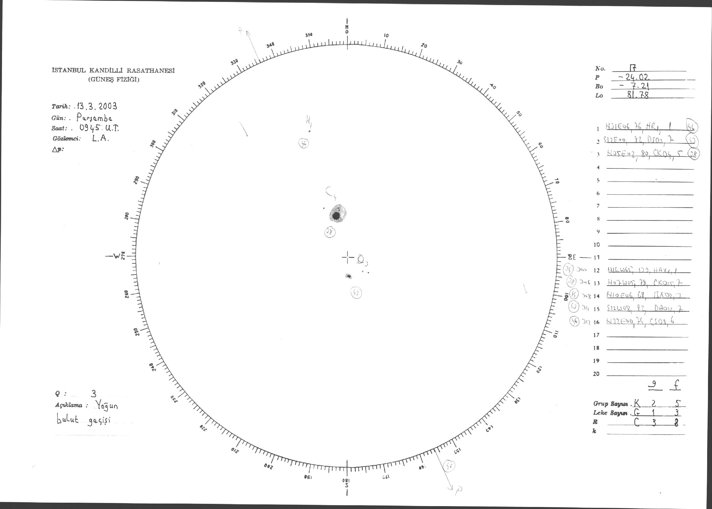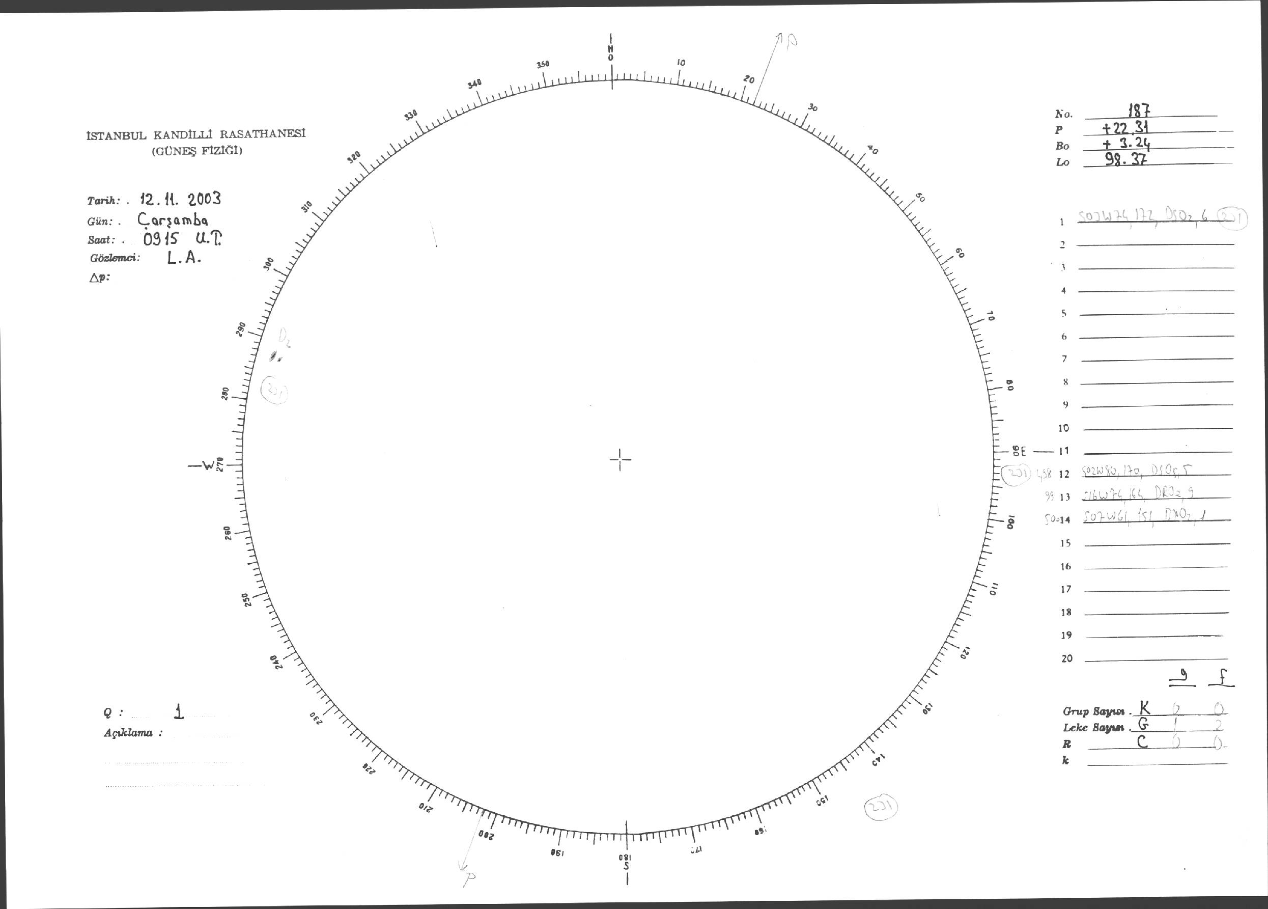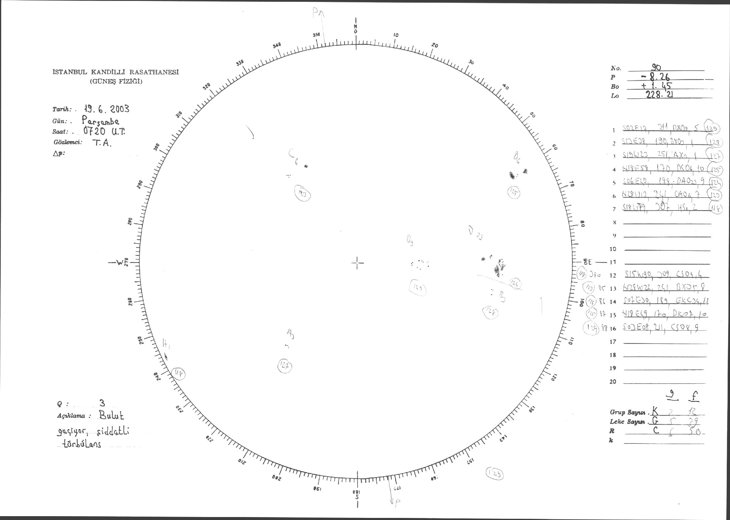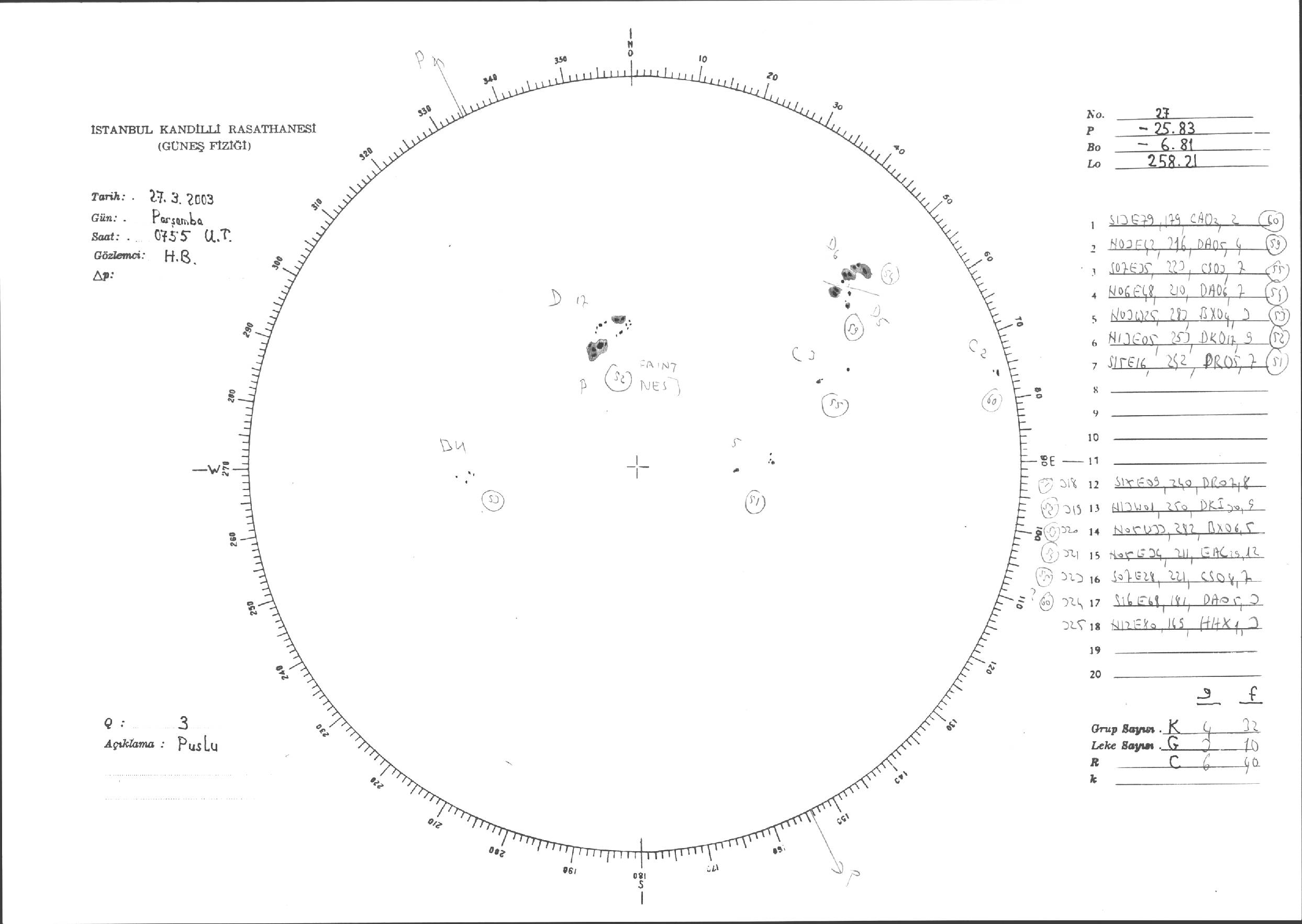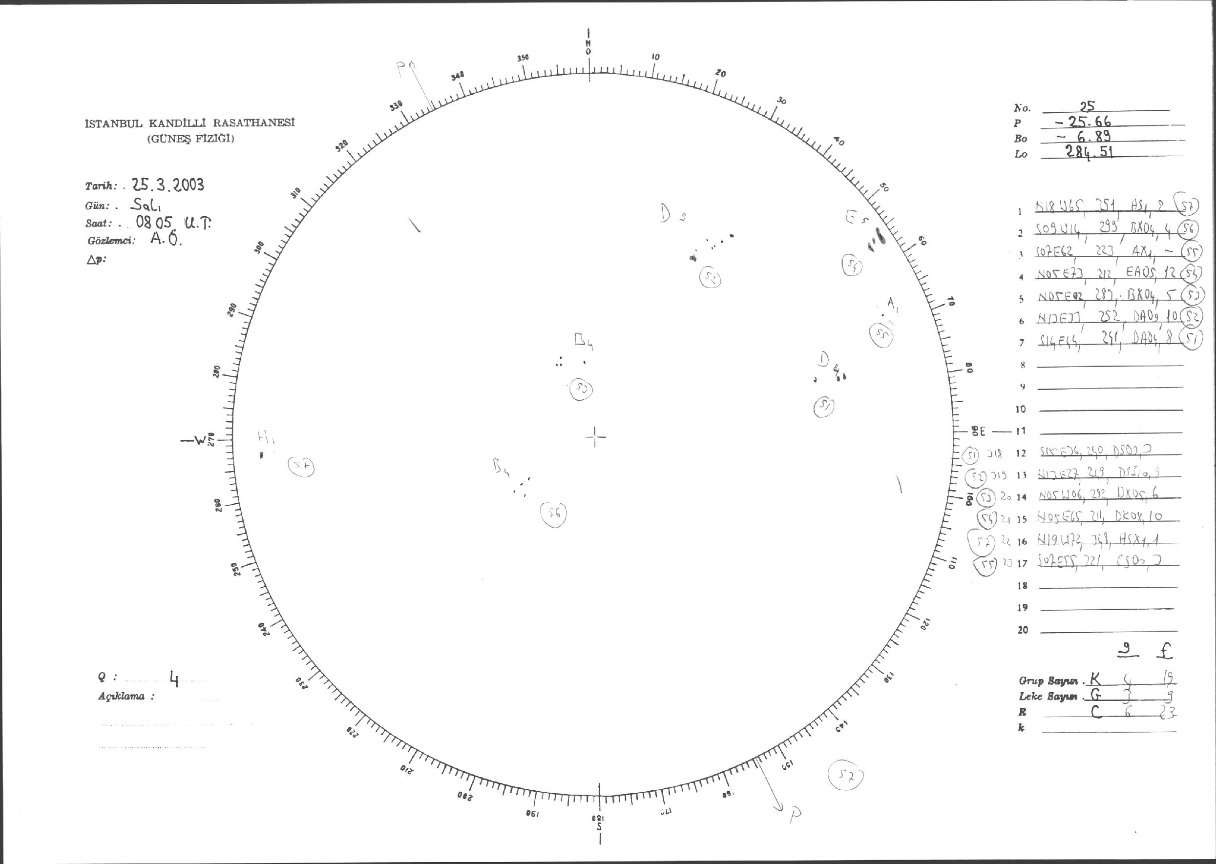 Güneş Lekesi Çizimleri / Kandilli Sunspot Drawings