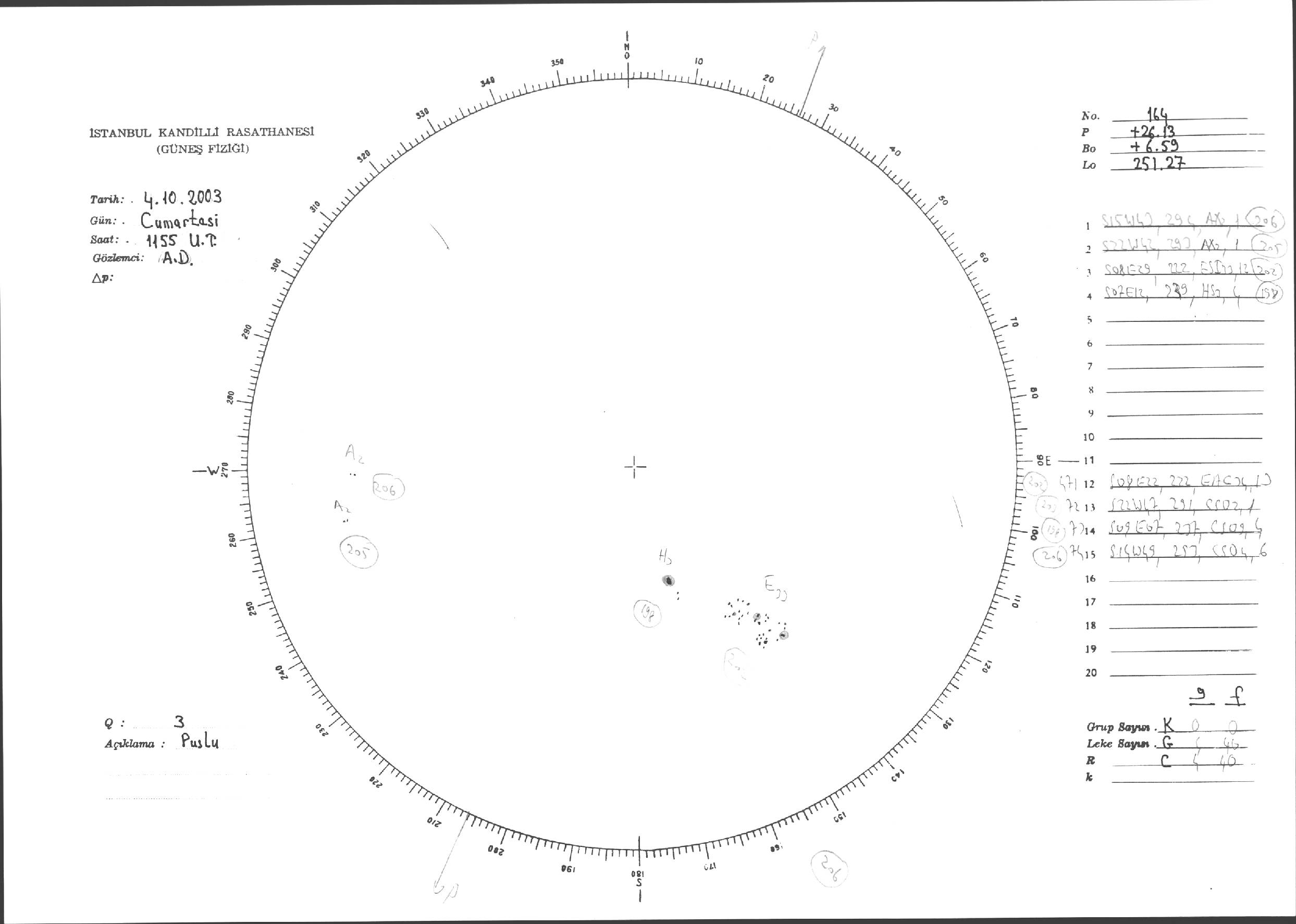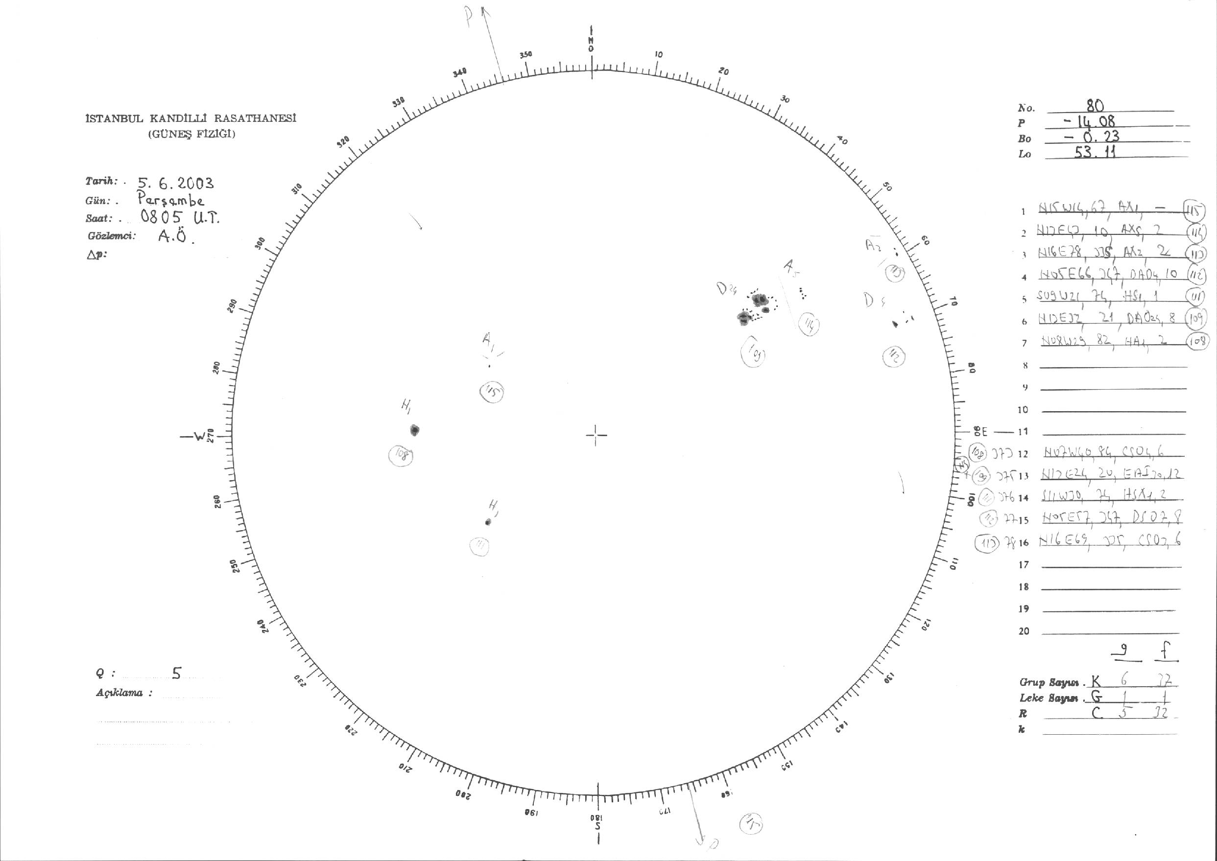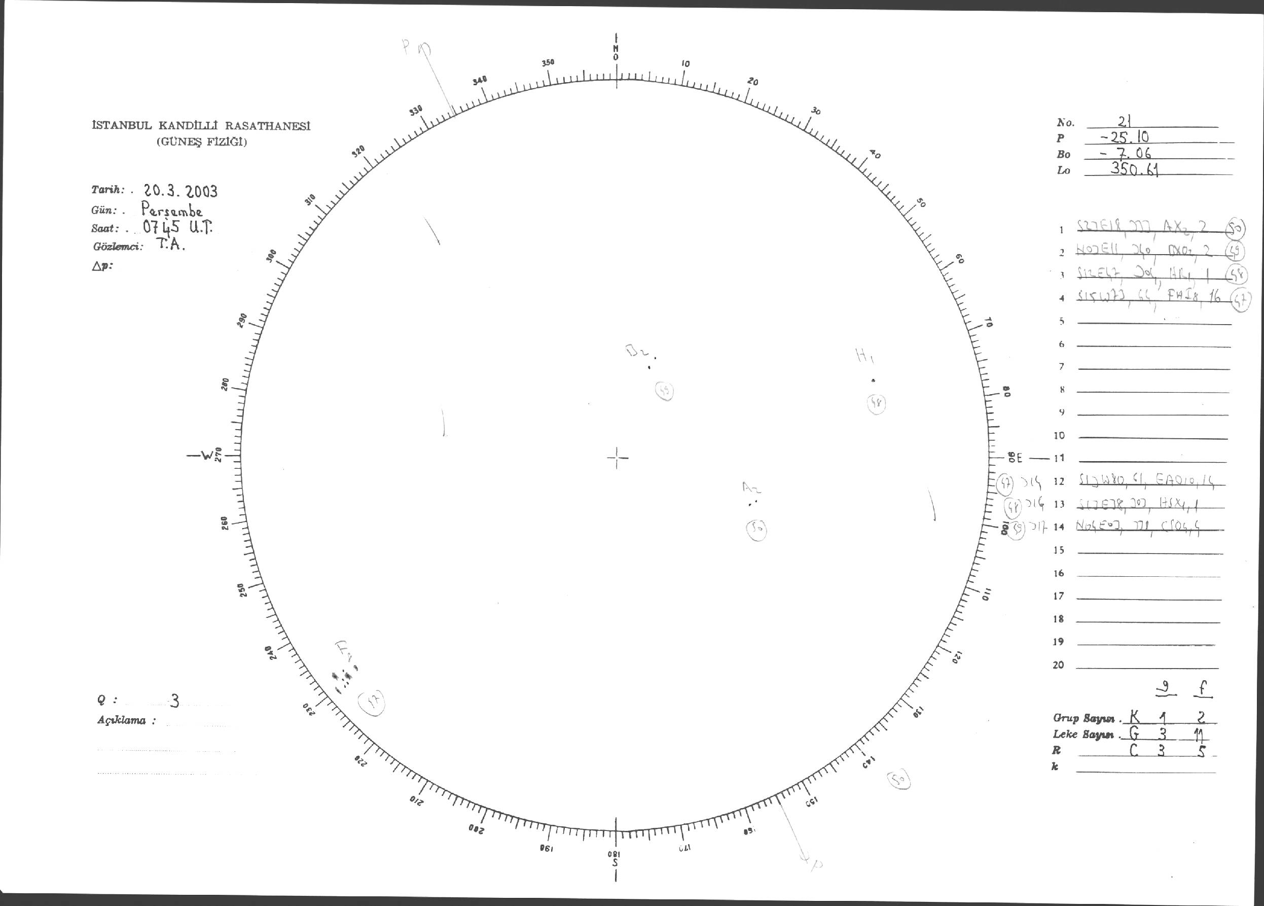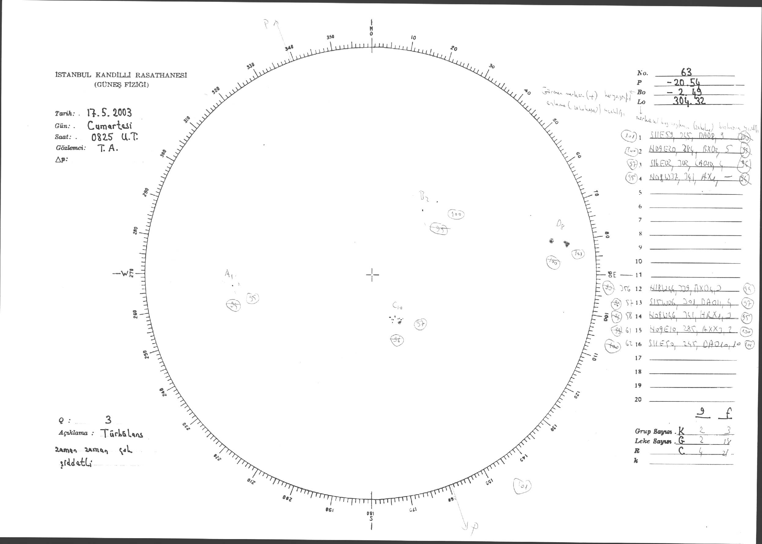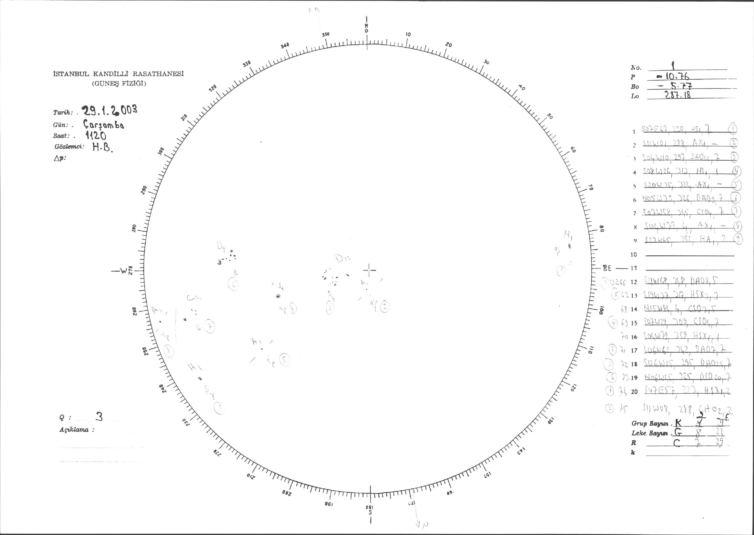 Güneş Lekesi Çizimleri / Kandilli Sunspot Drawings
