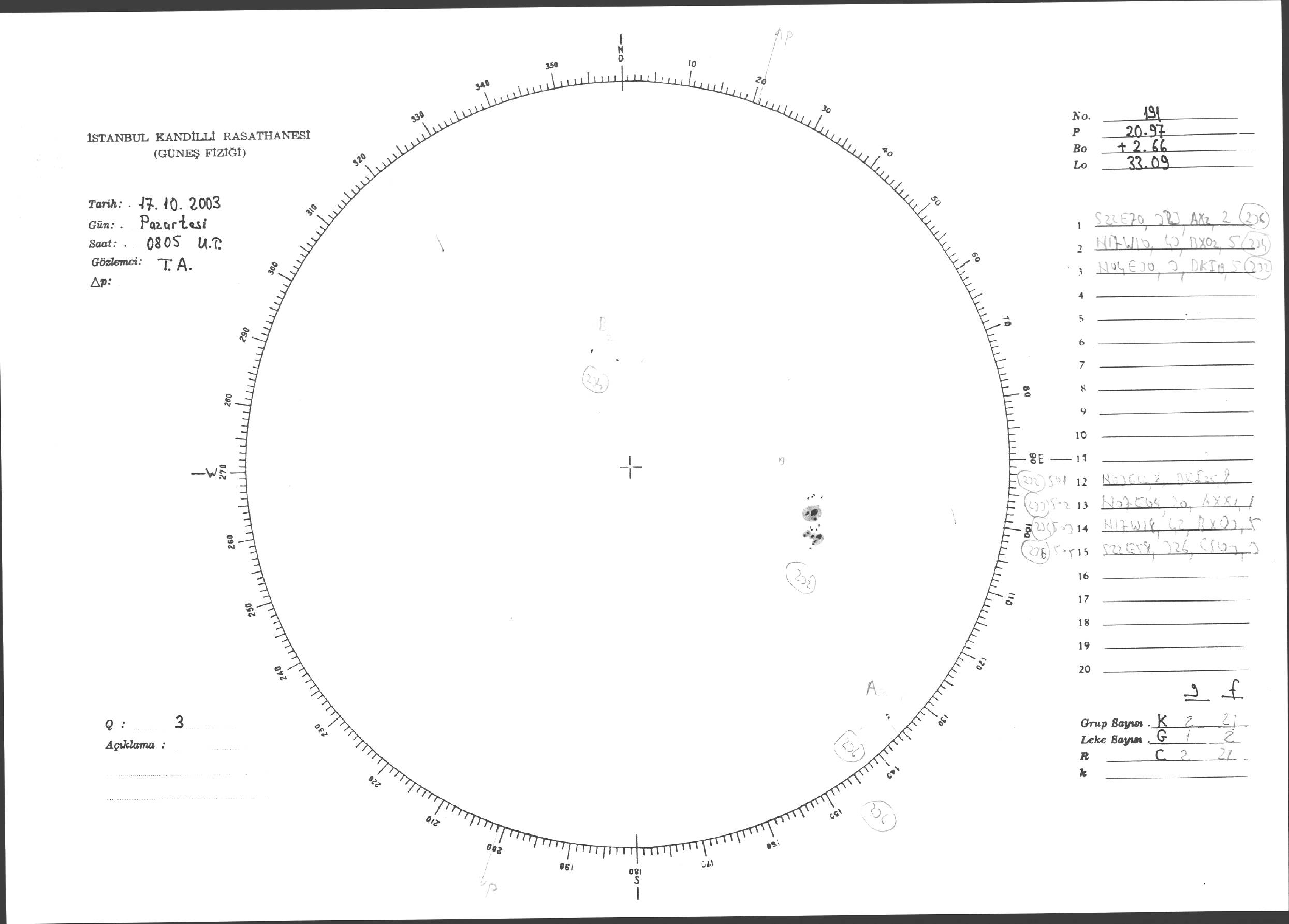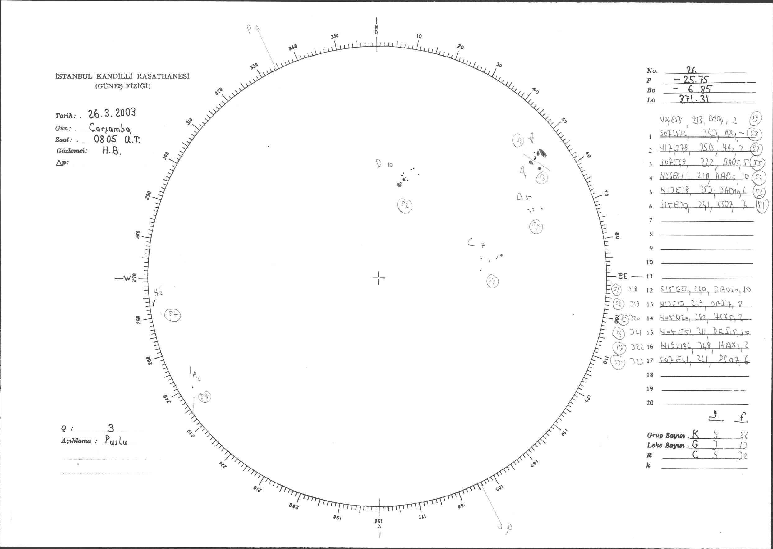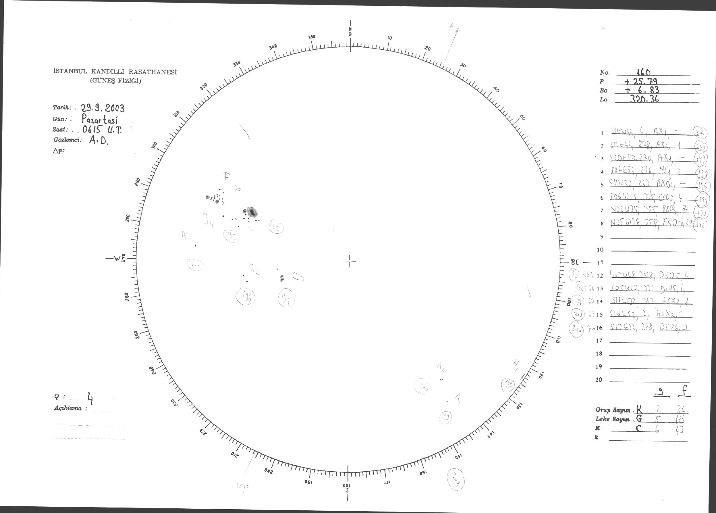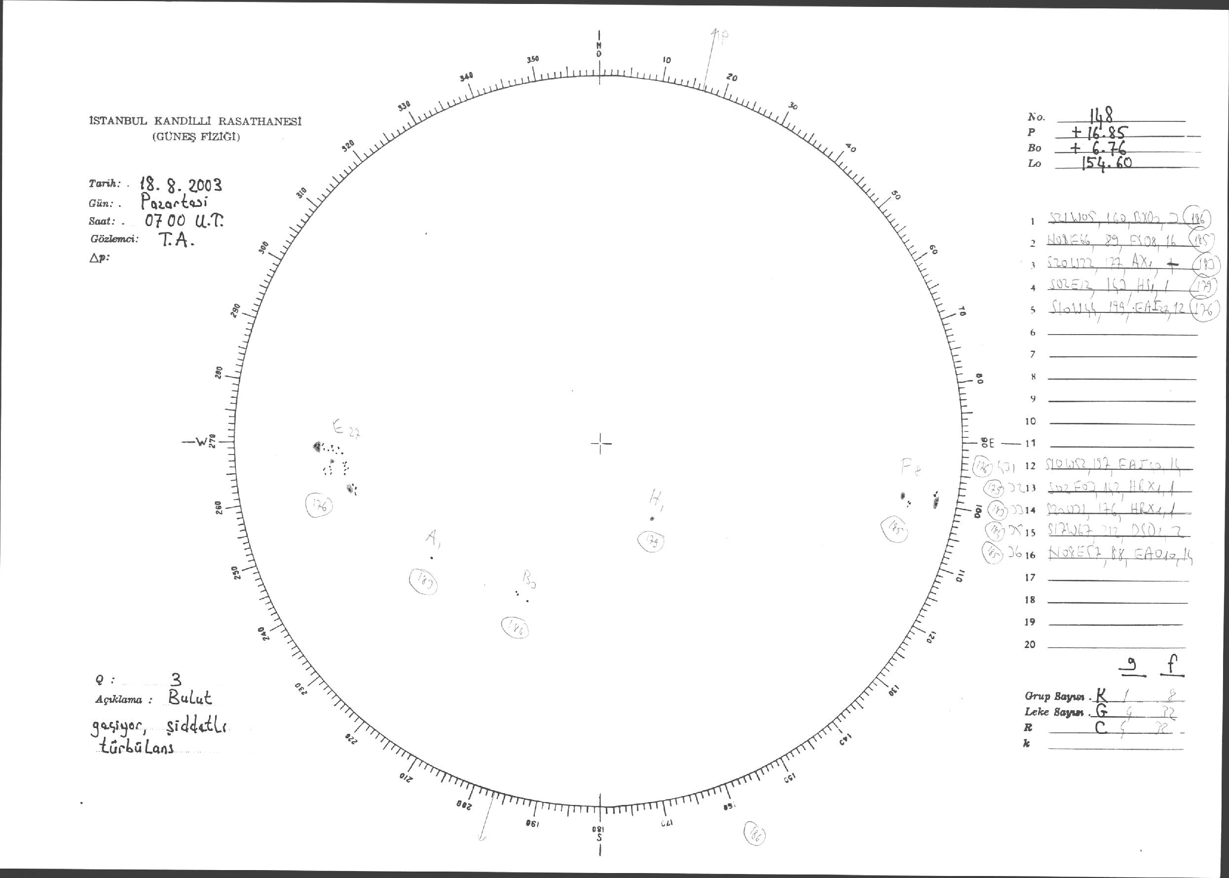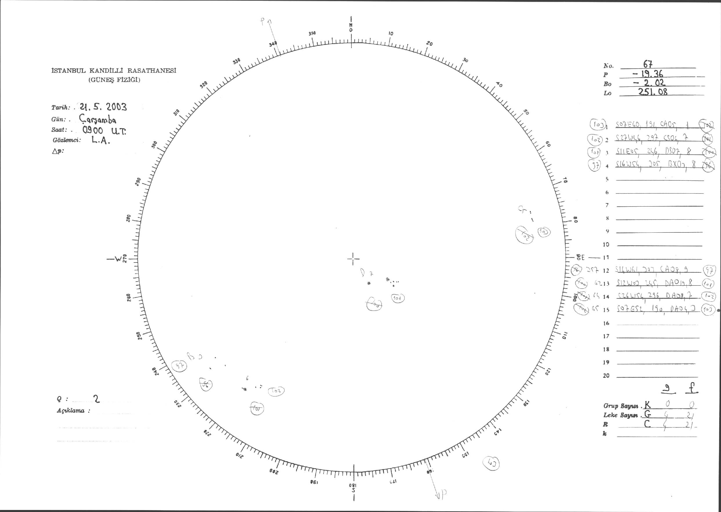Güneş Lekesi Çizimleri / Kandilli Sunspot Drawings