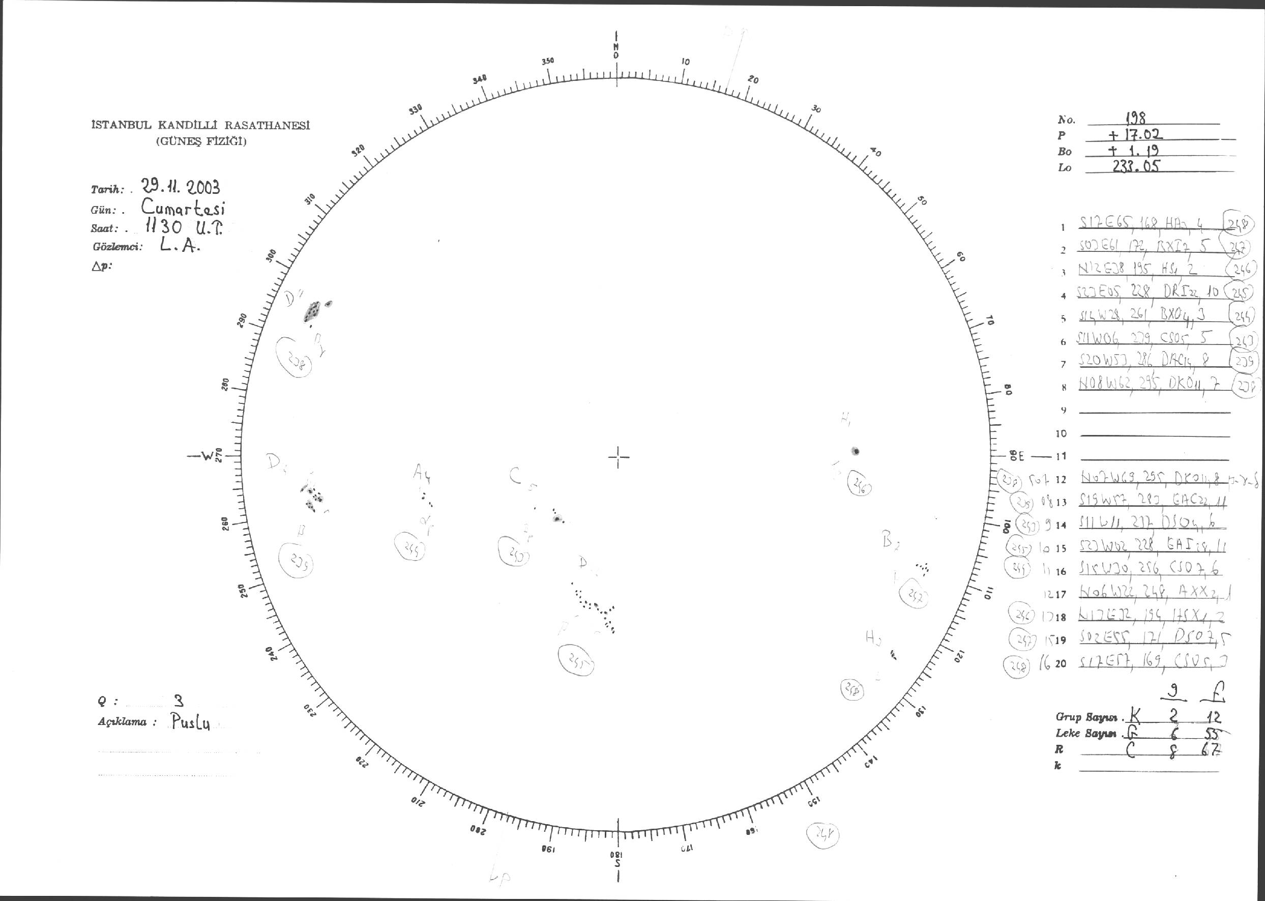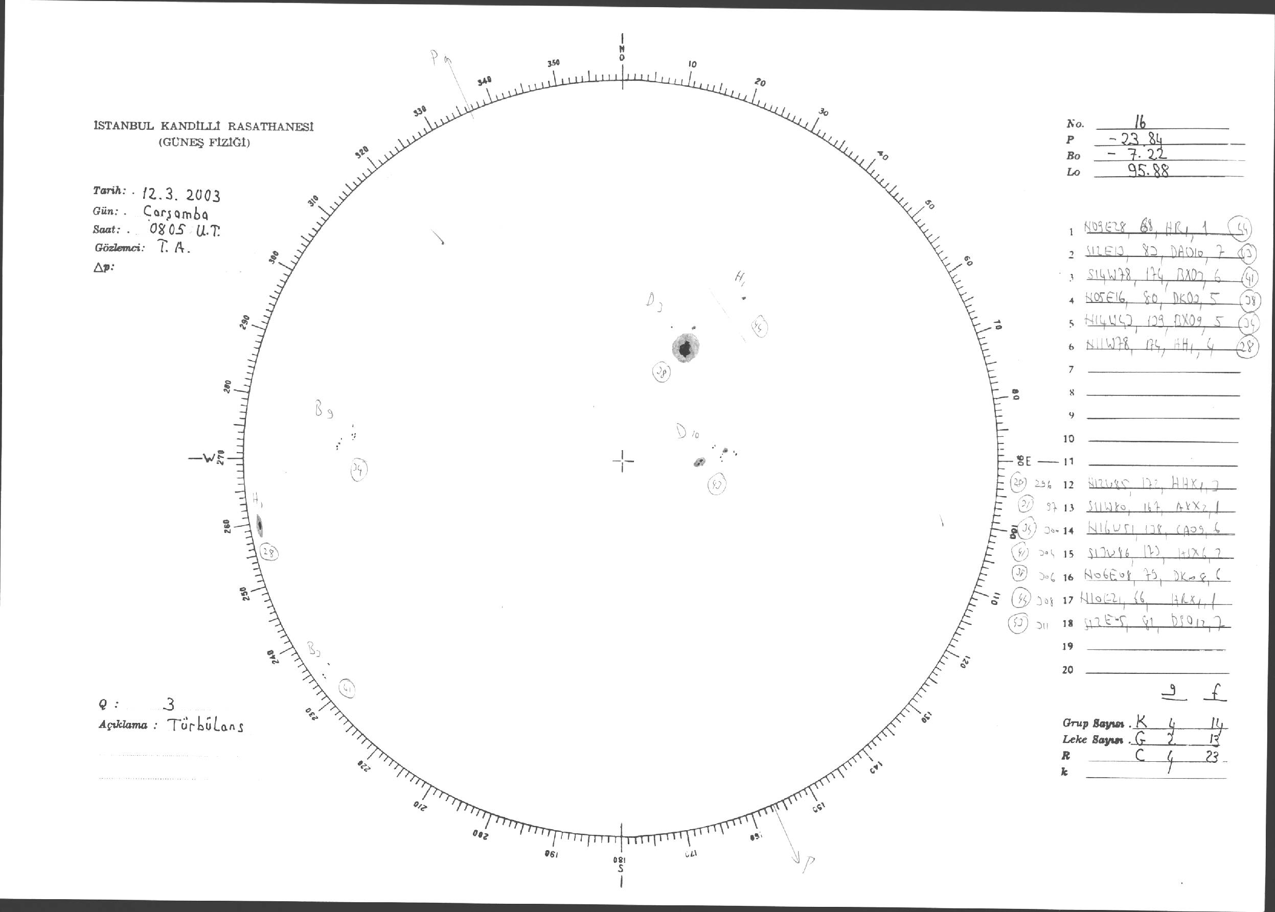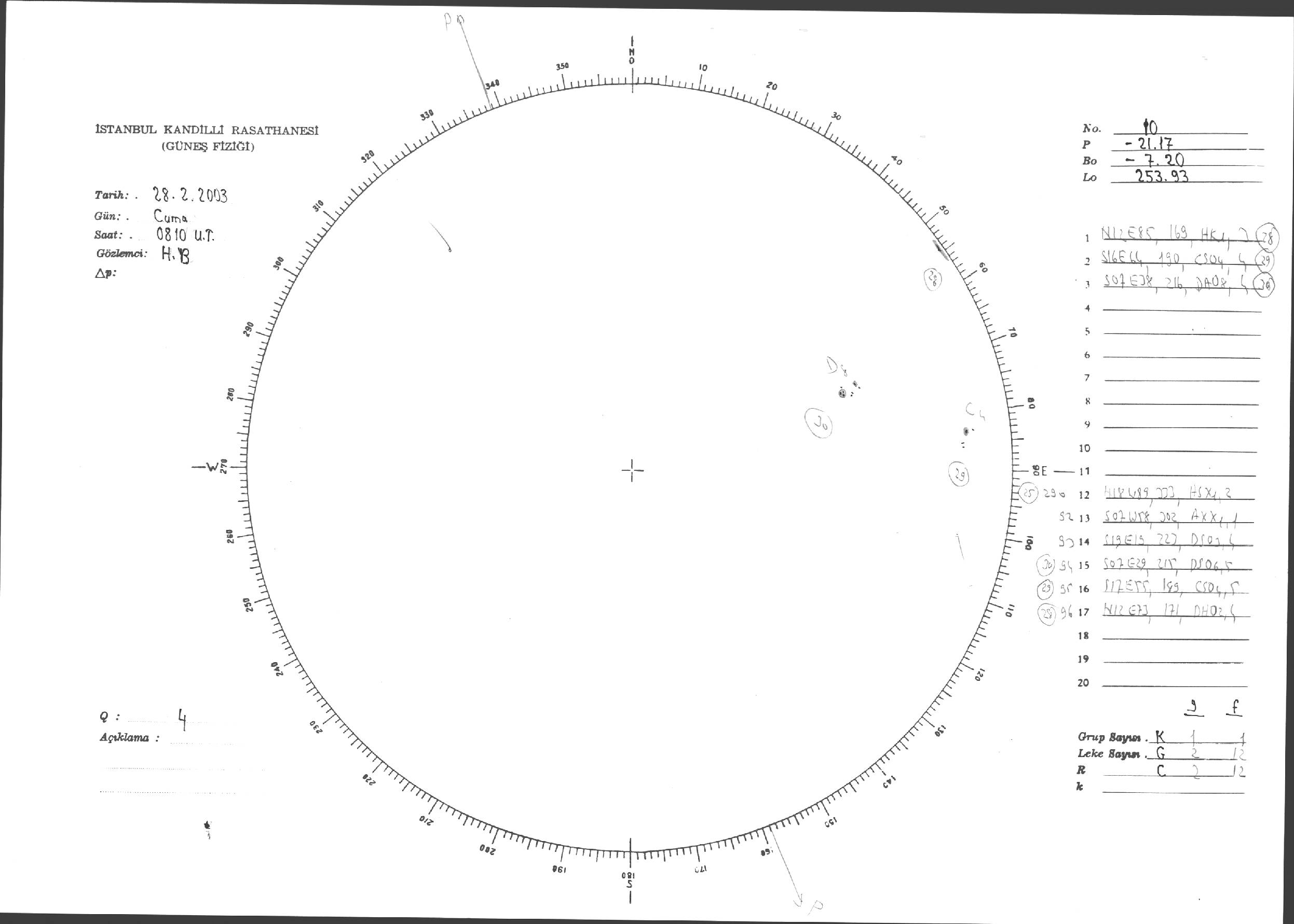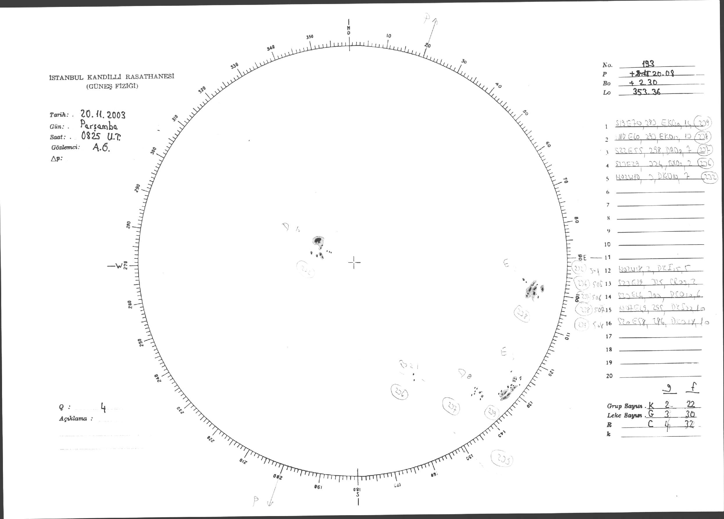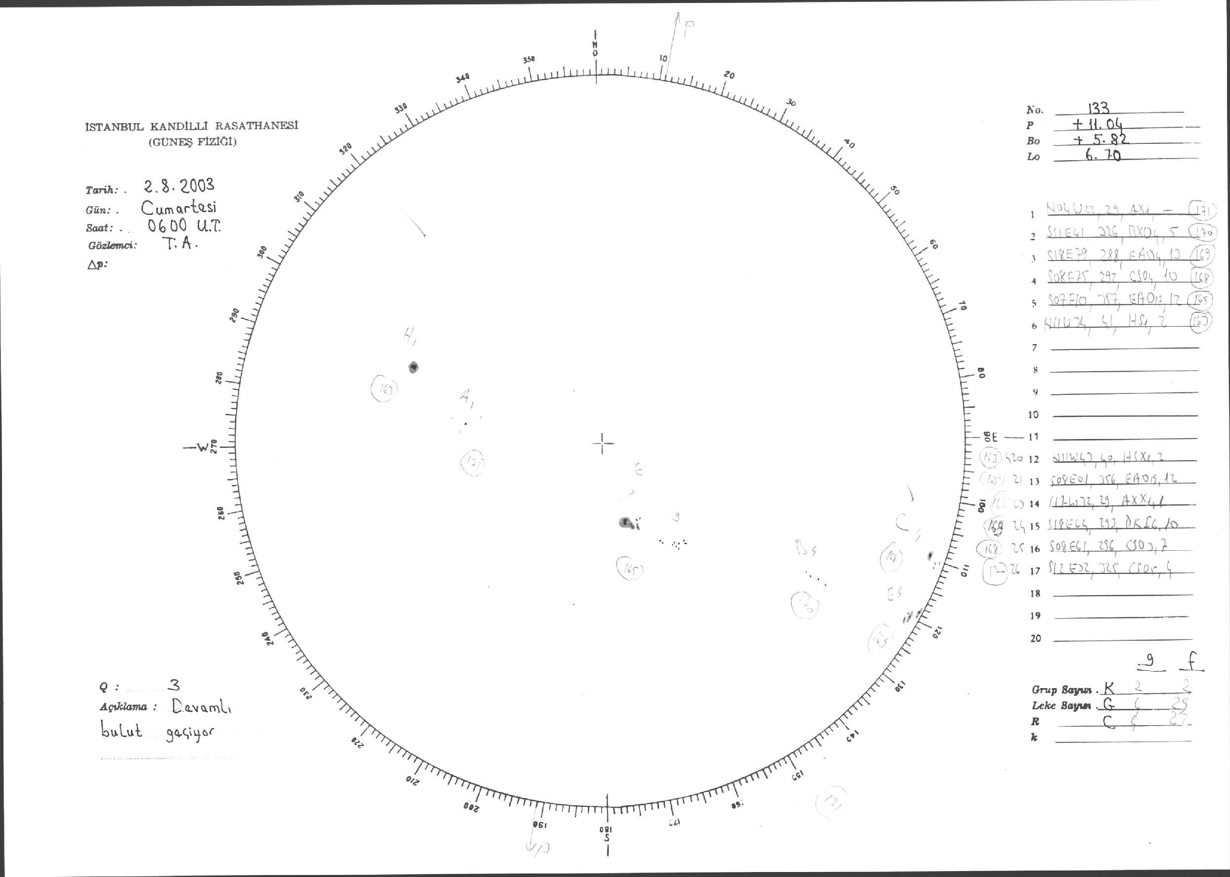 Güneş Lekesi Çizimleri / Kandilli Sunspot Drawings