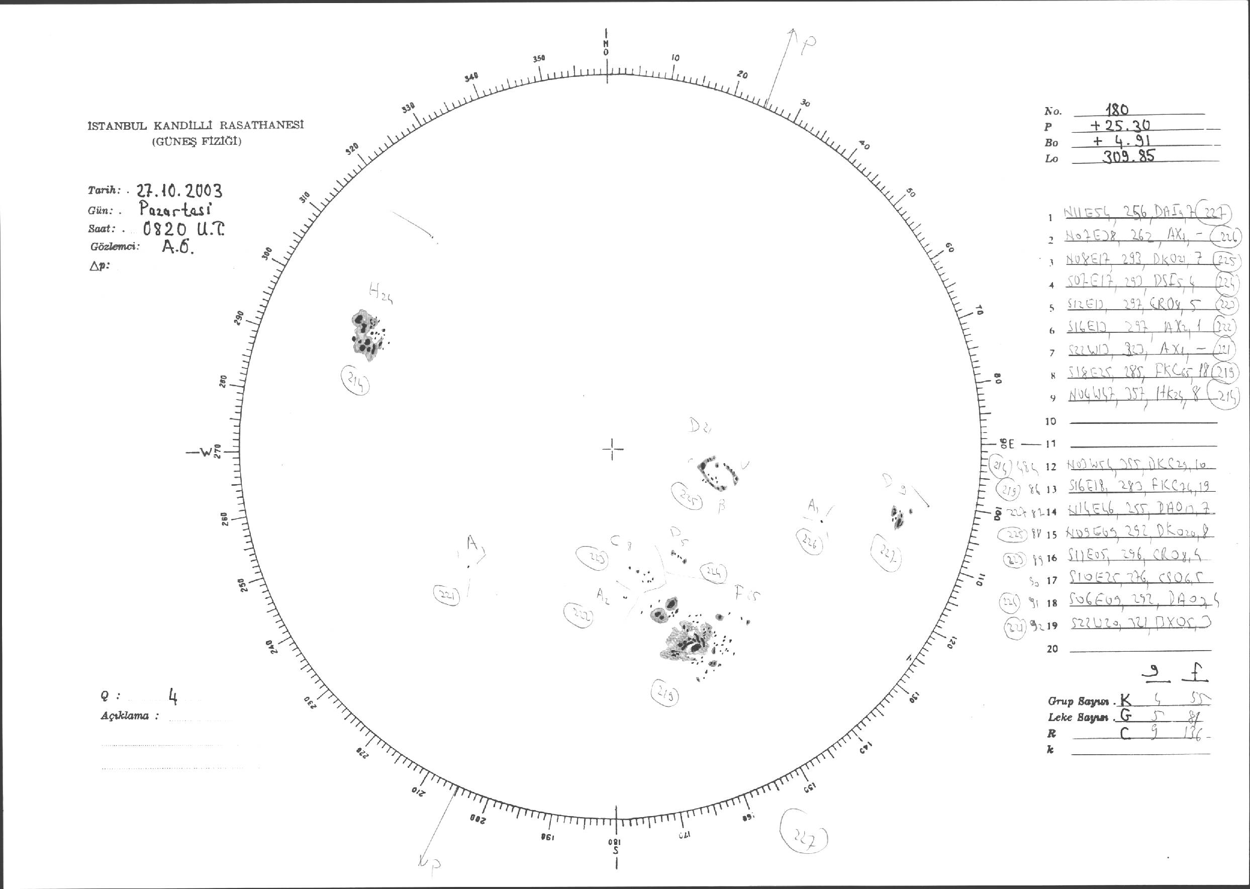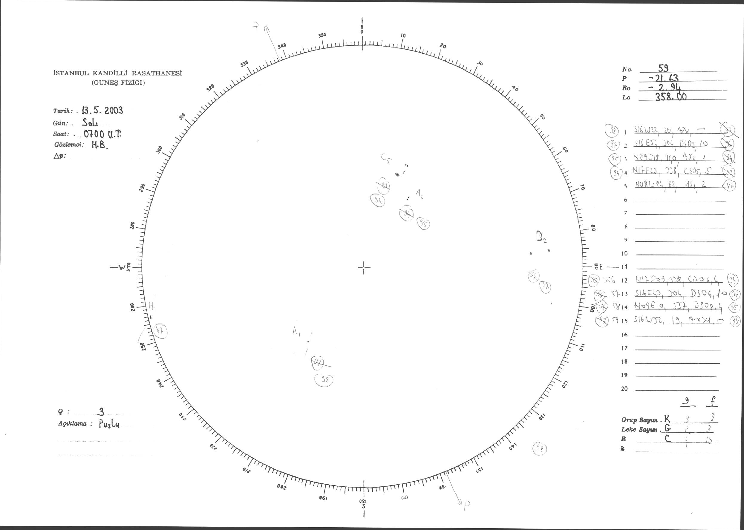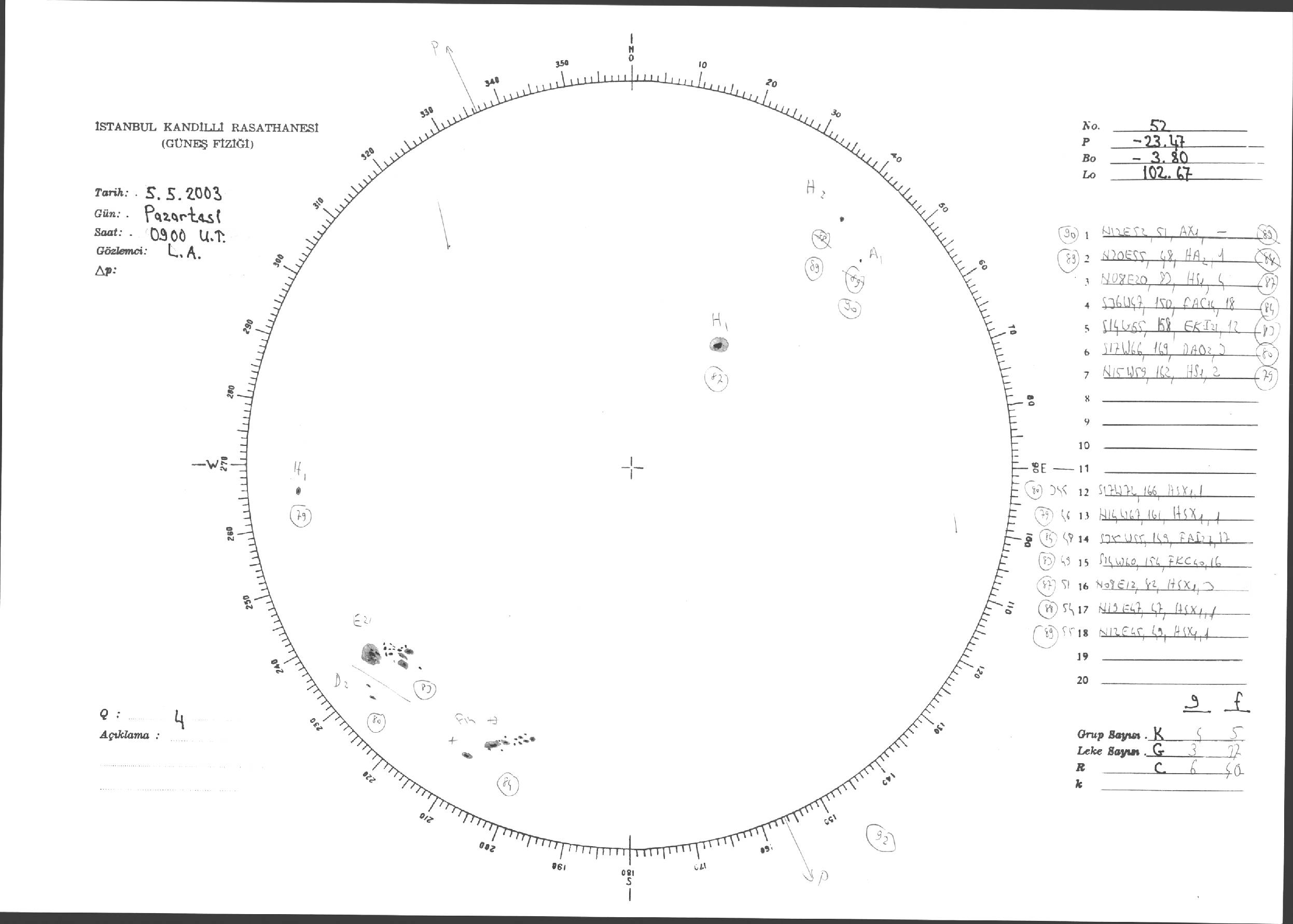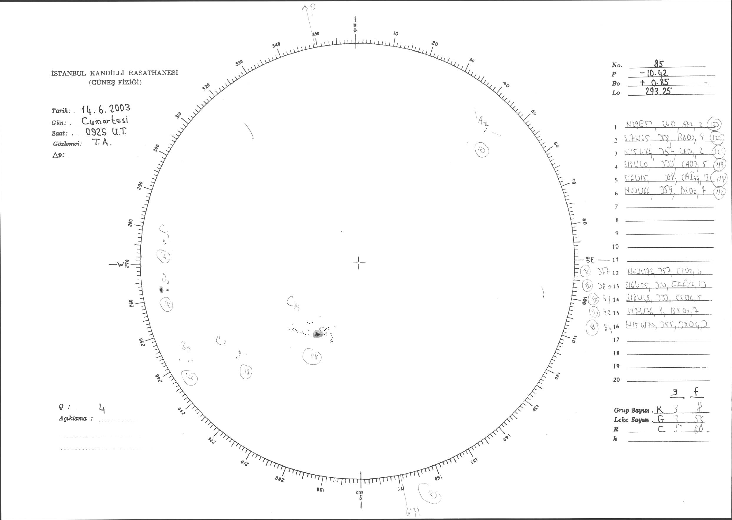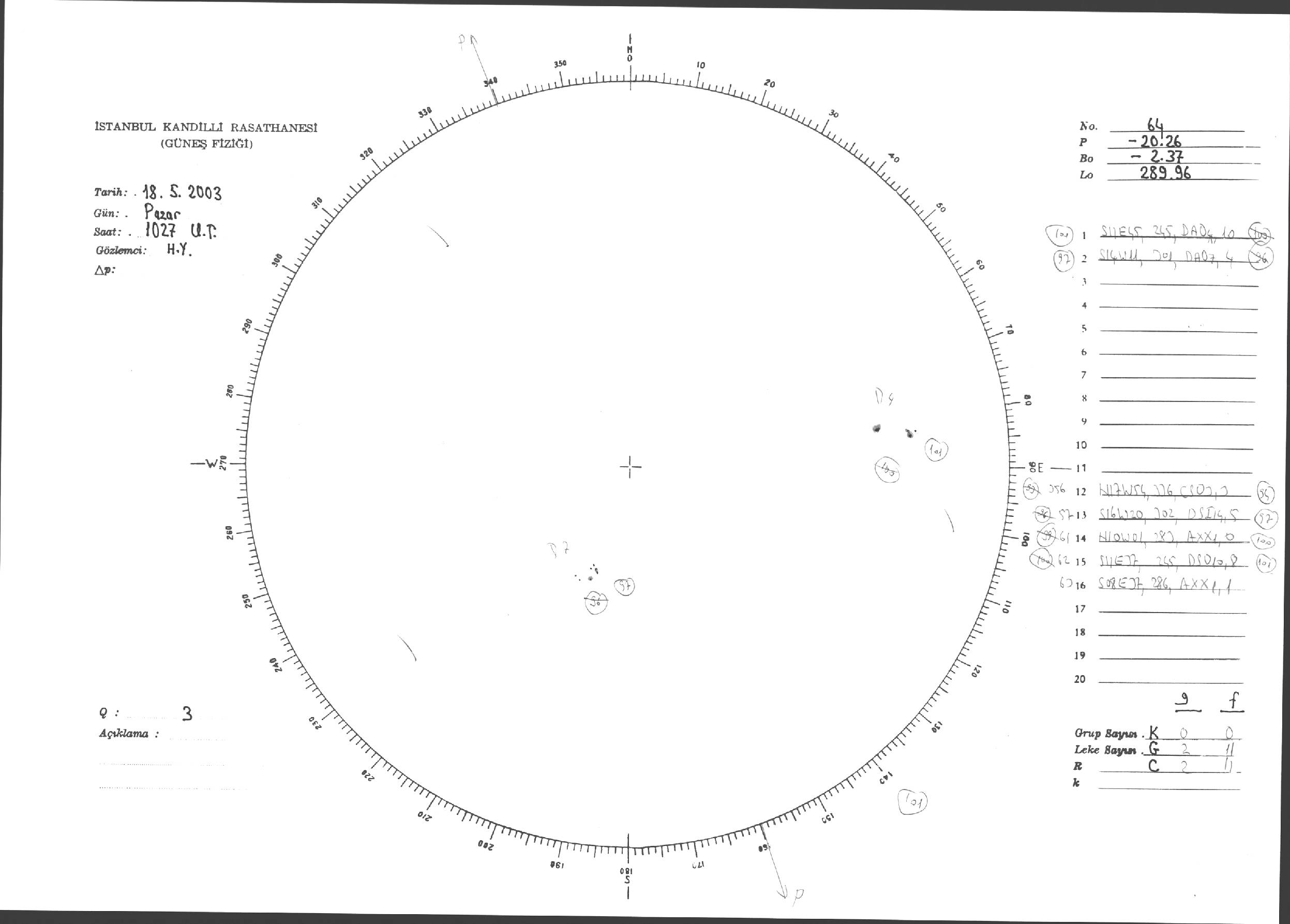 Güneş Lekesi Çizimleri / Kandilli Sunspot Drawings