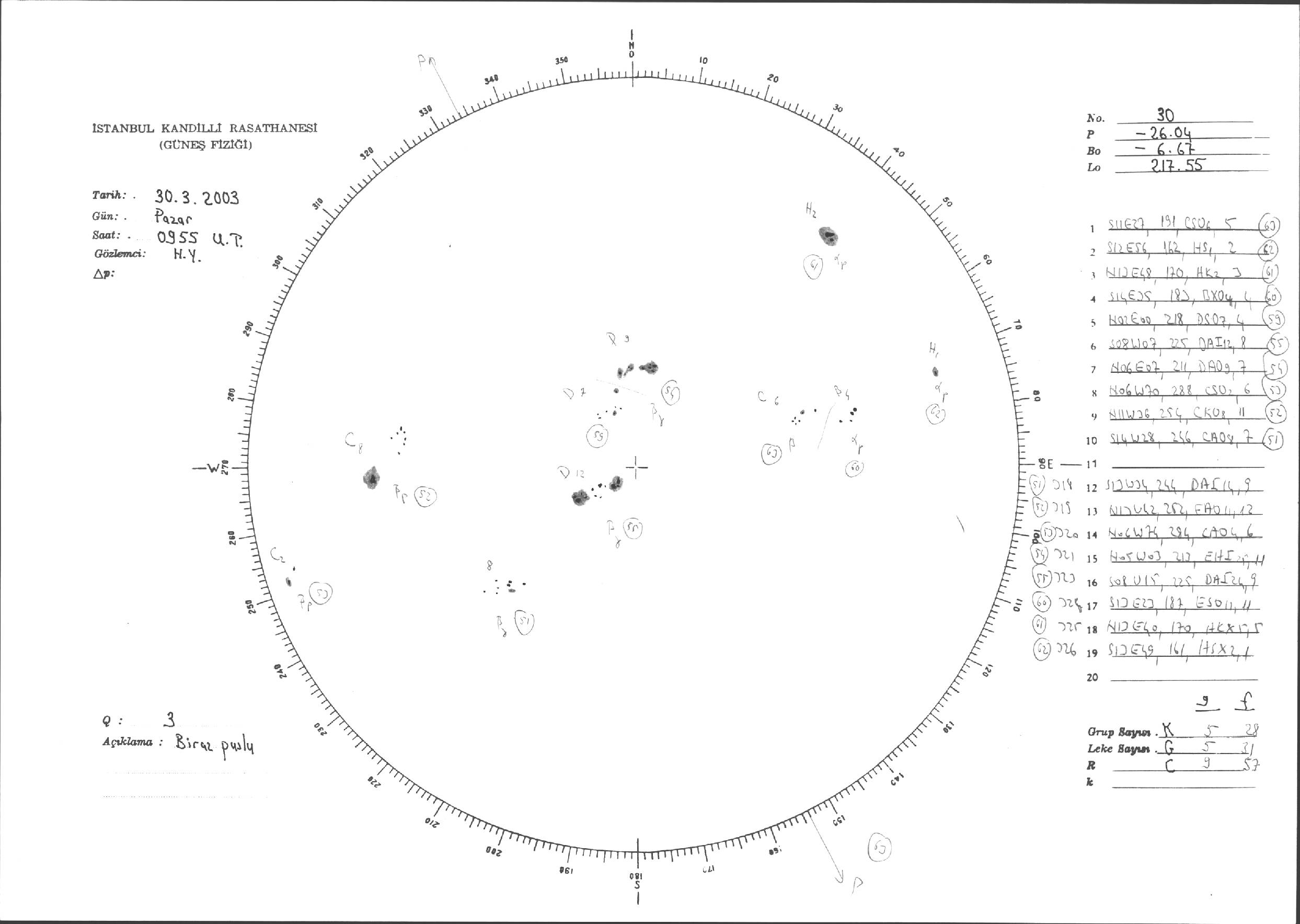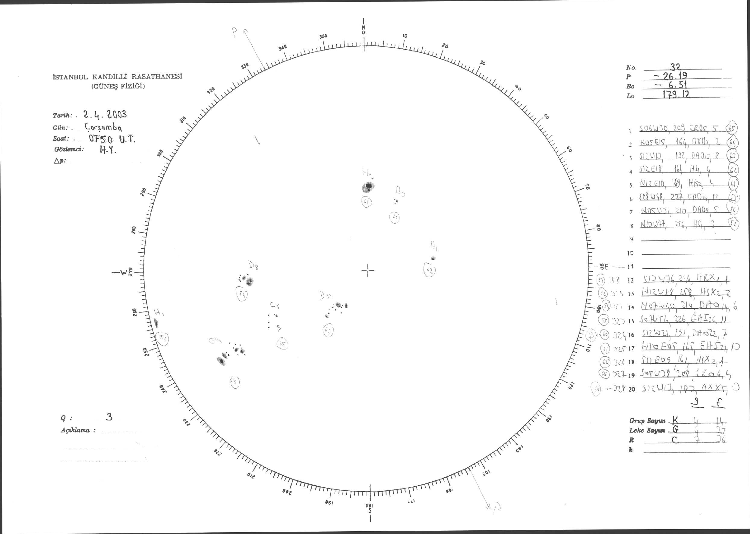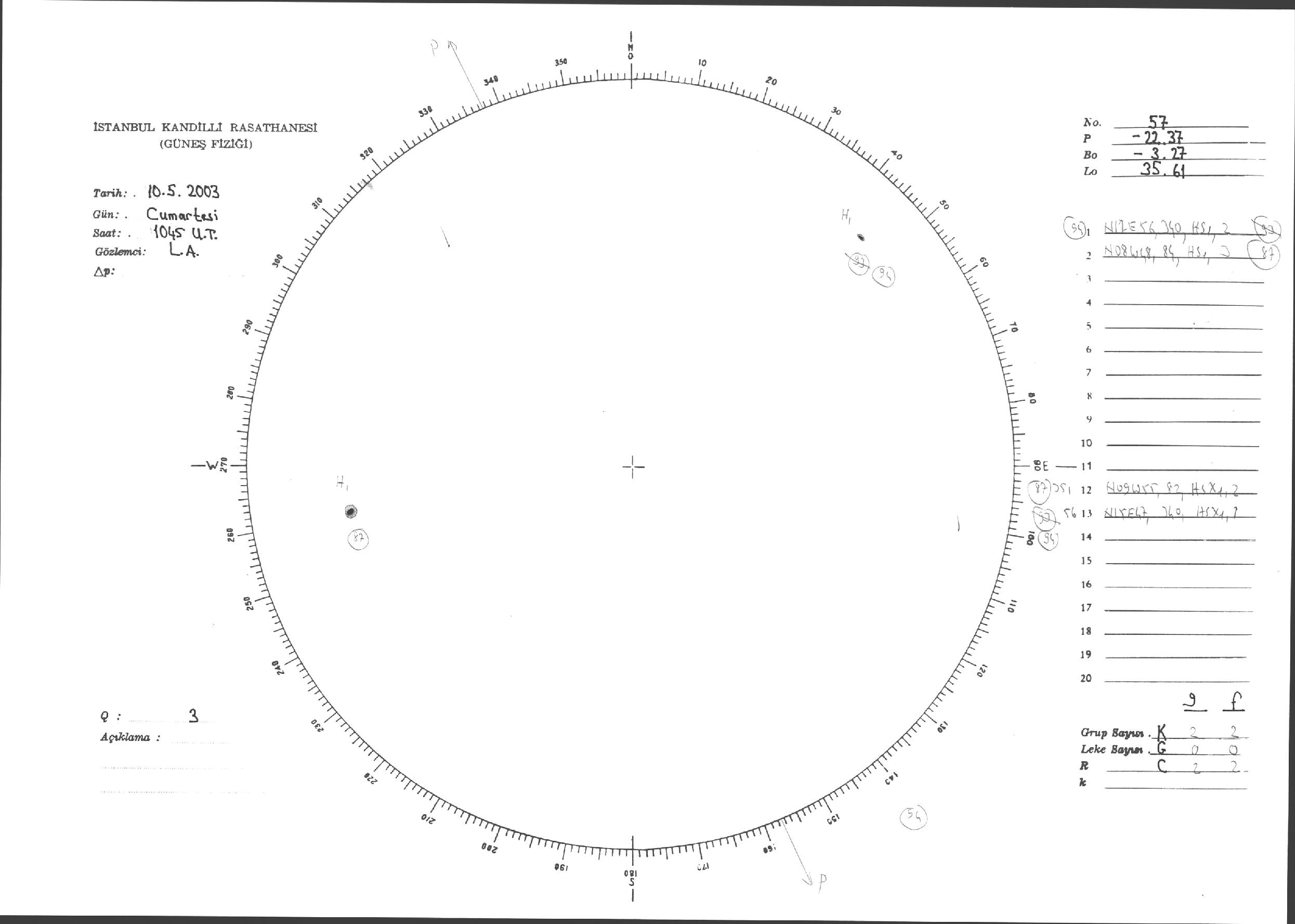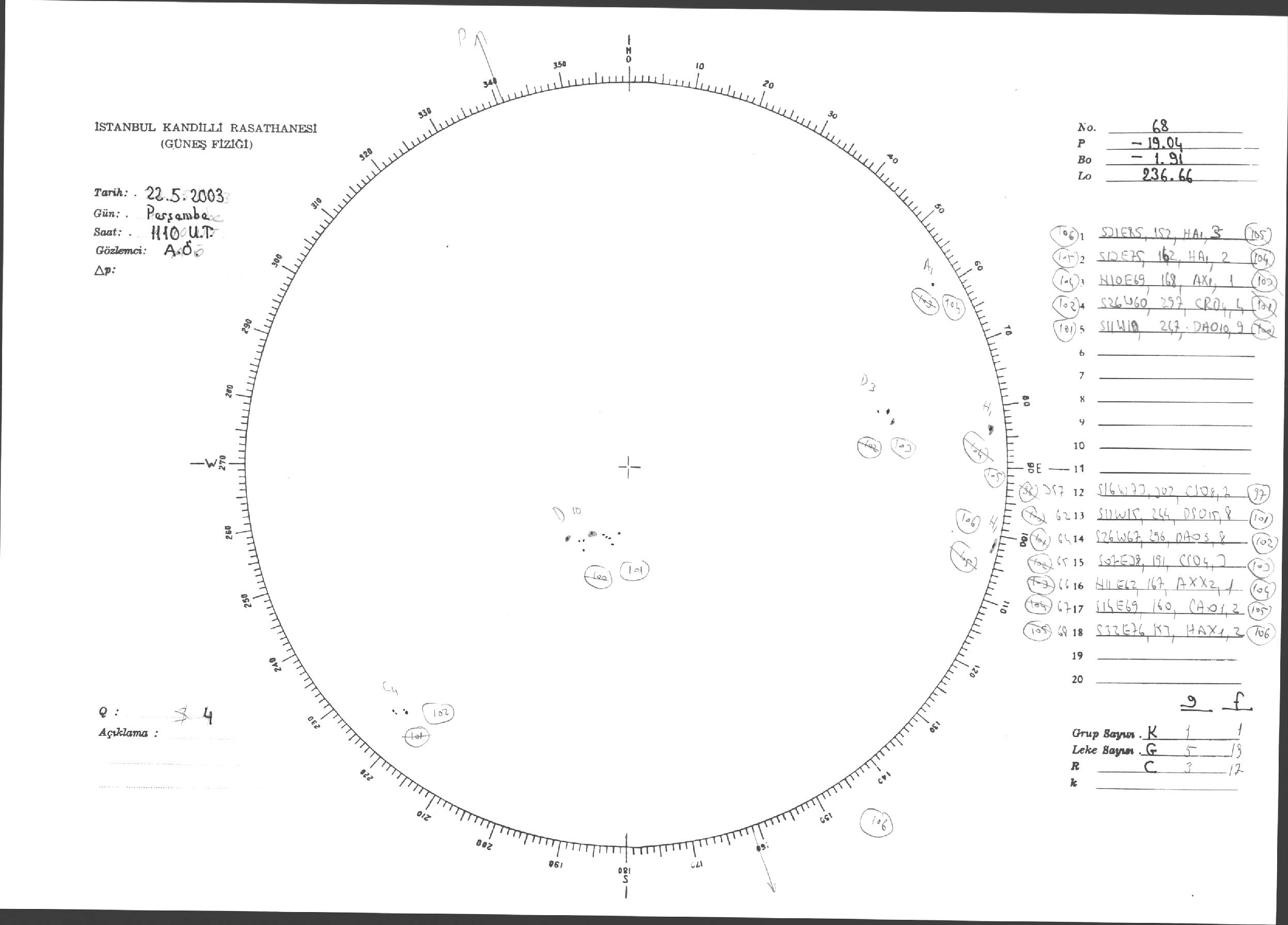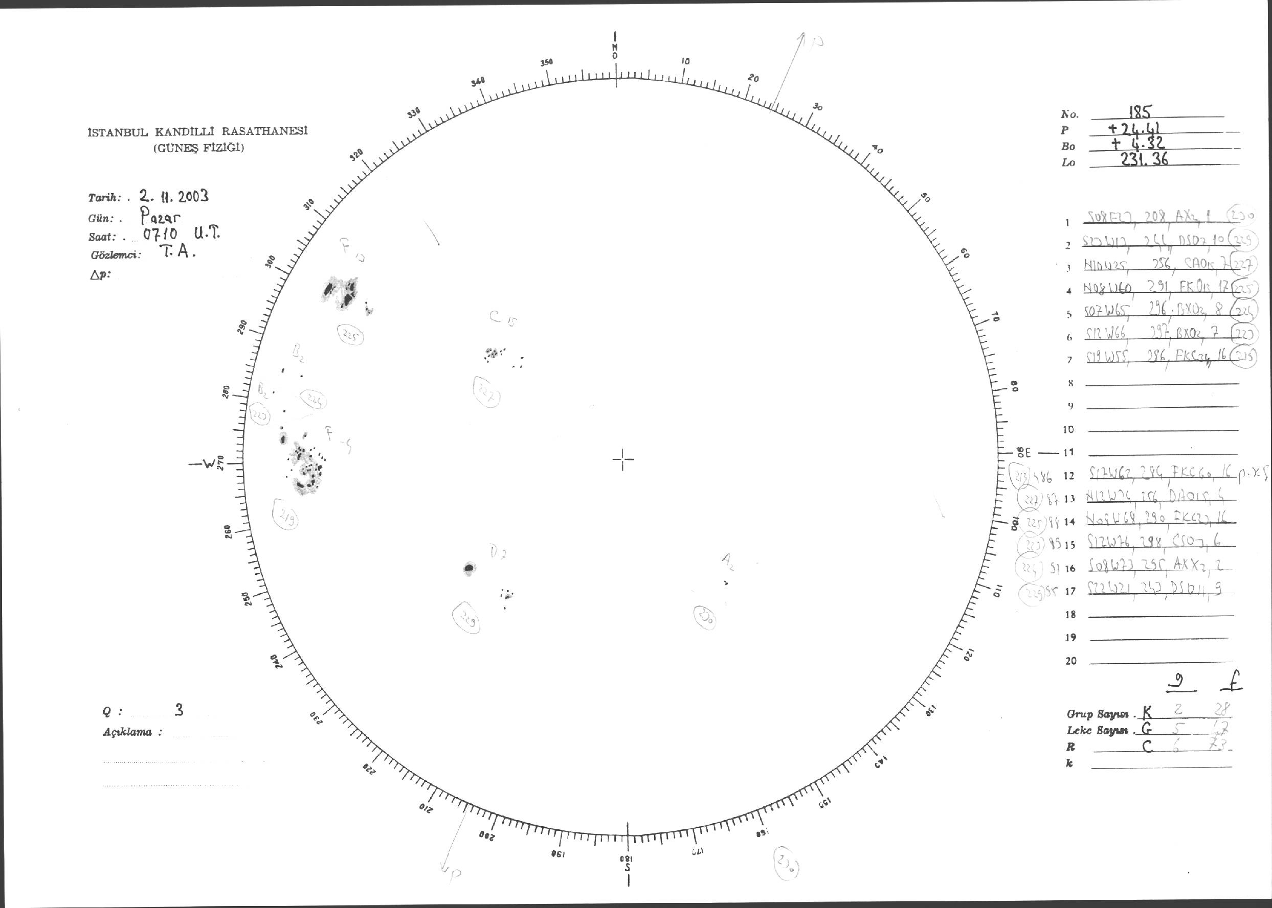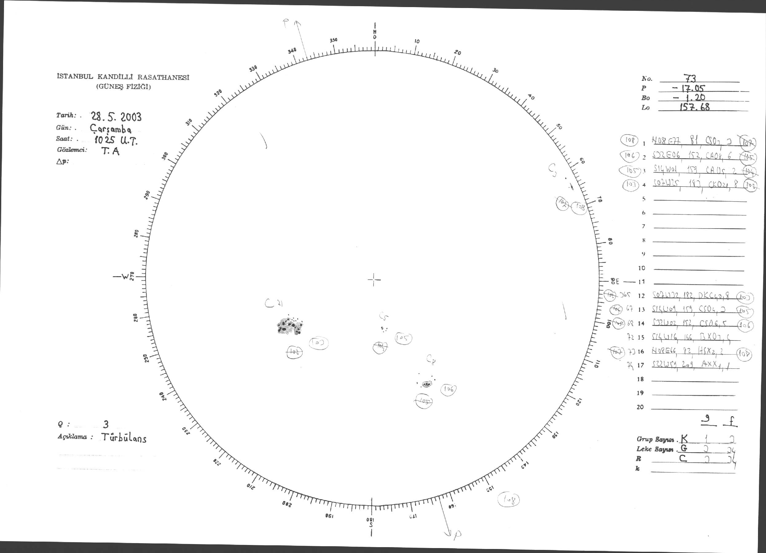 Güneş Lekesi Çizimleri / Kandilli Sunspot Drawings