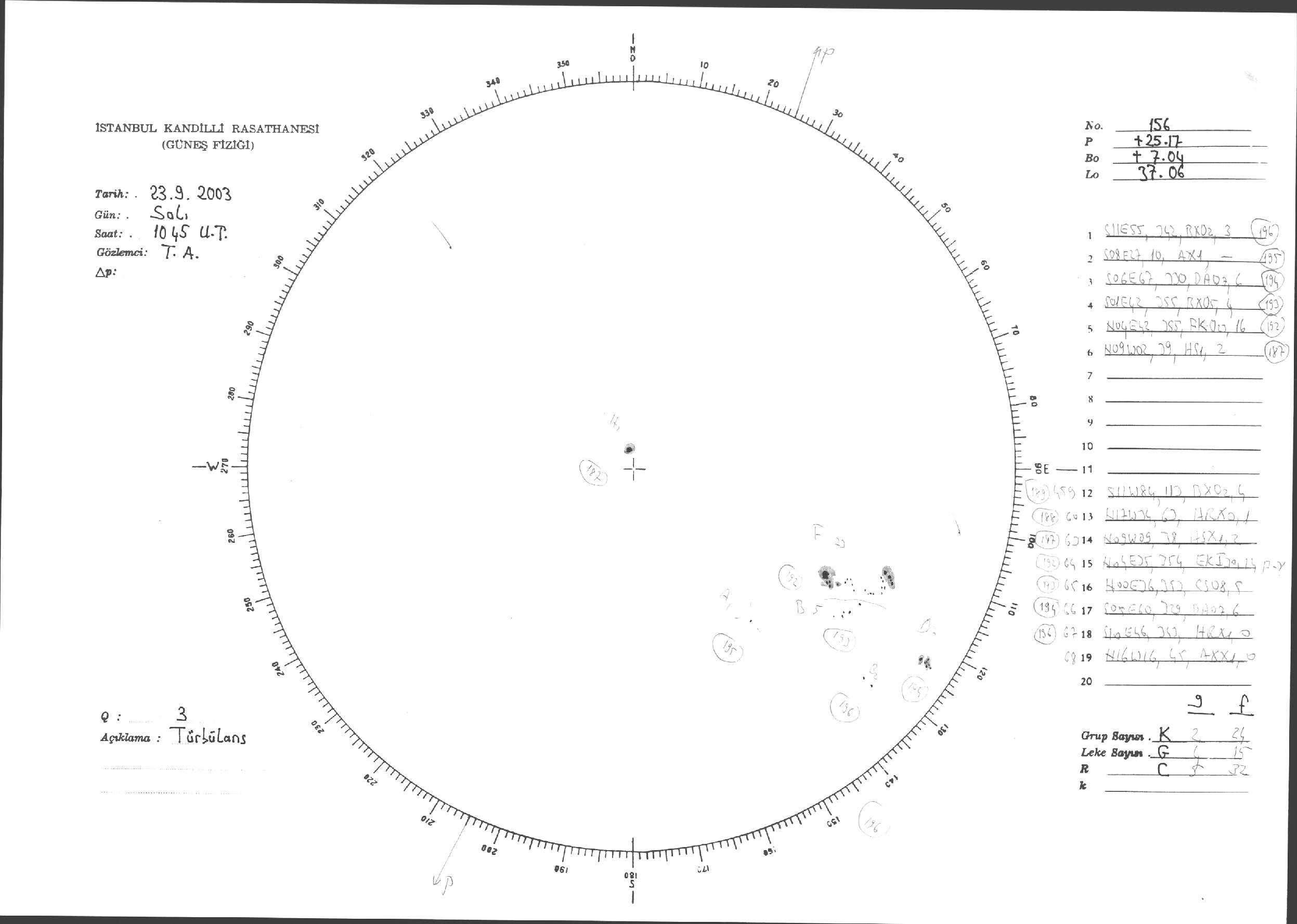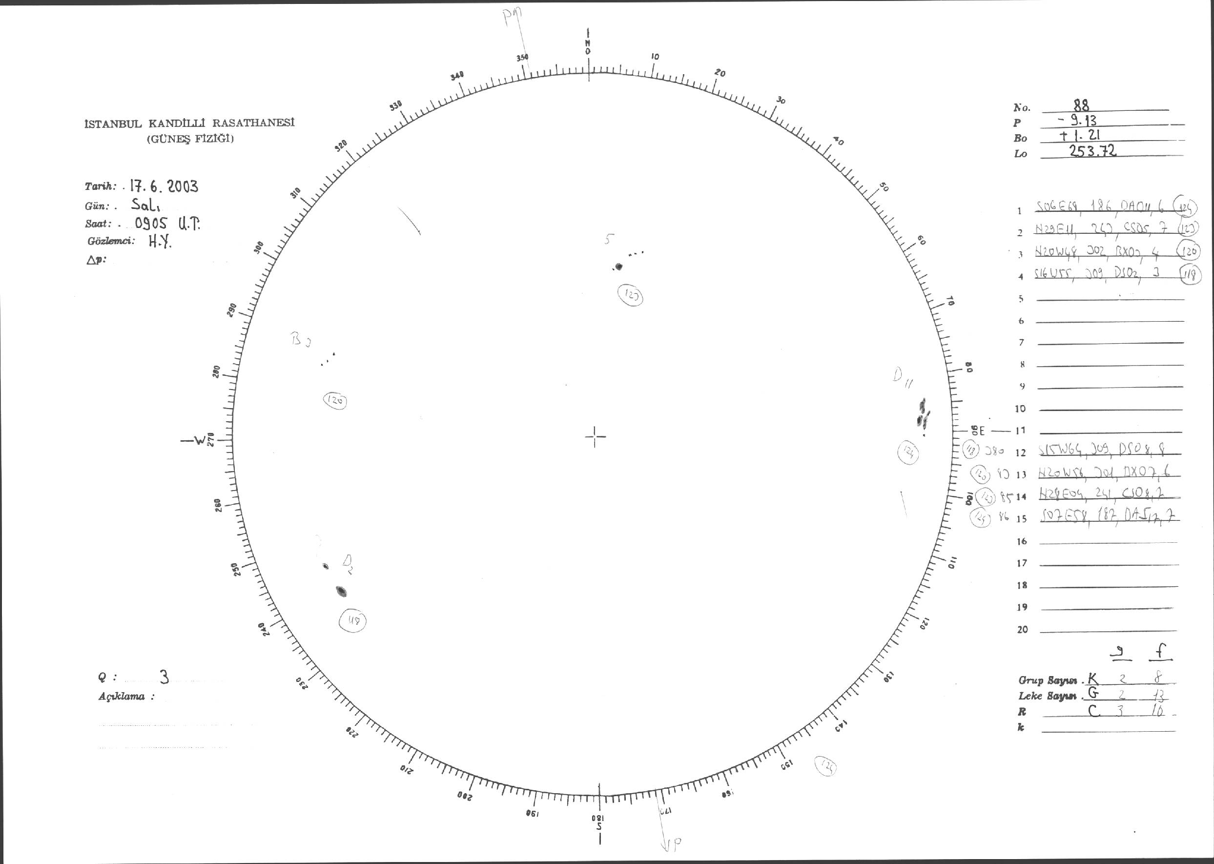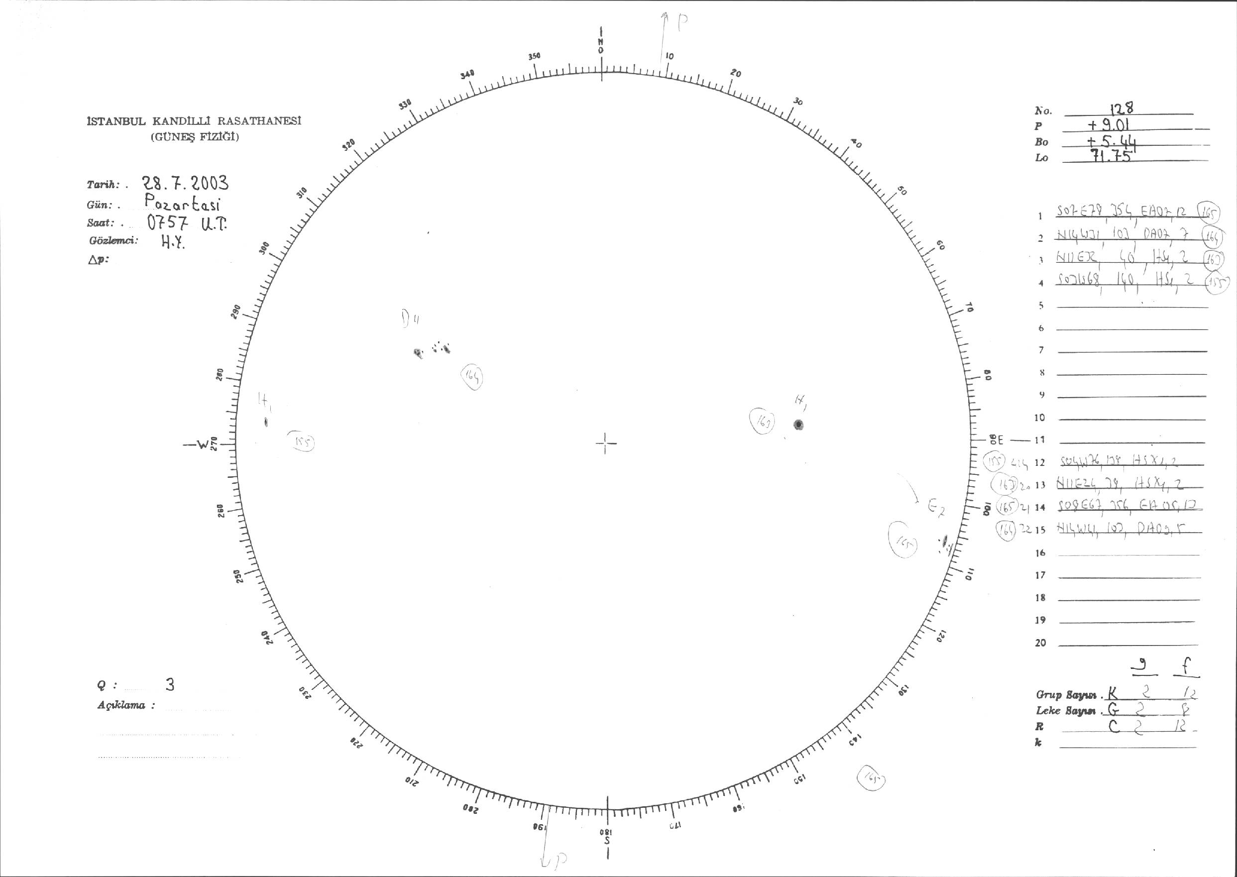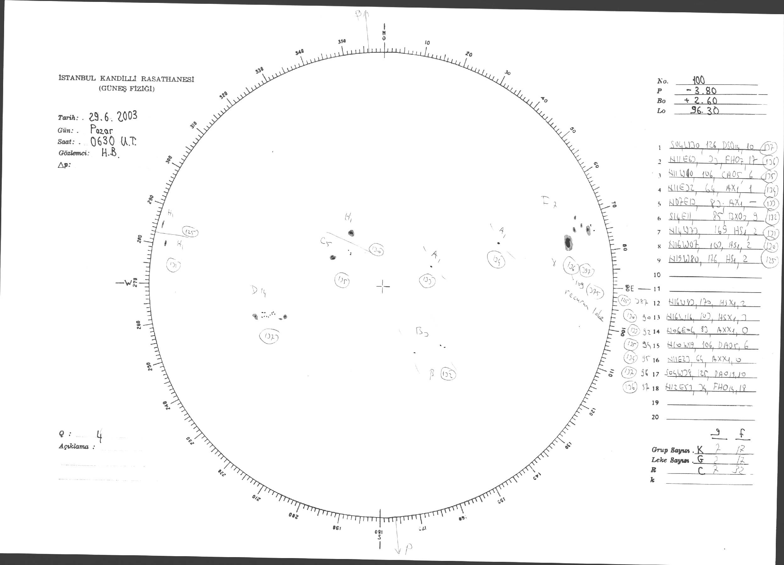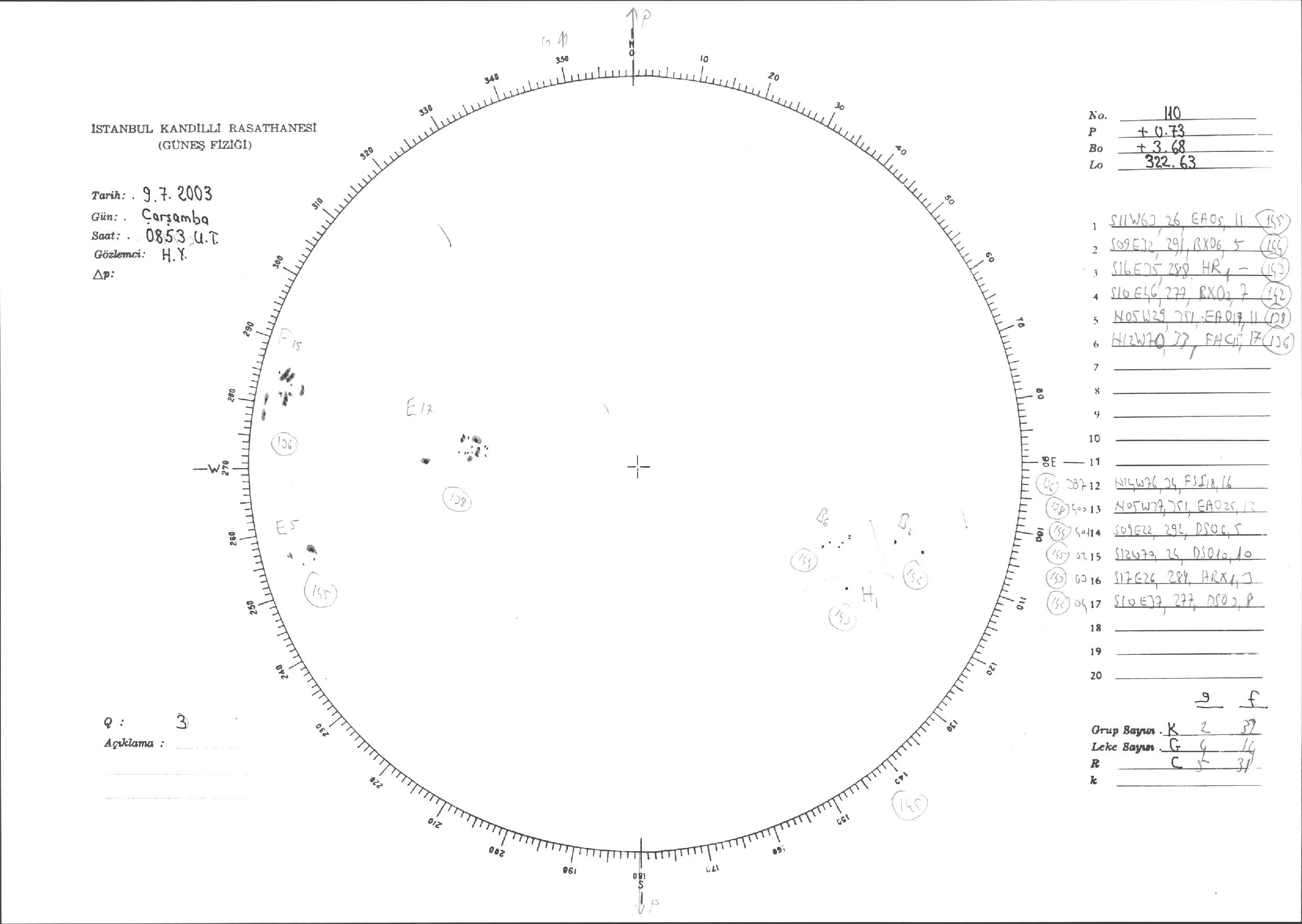 Güneş Lekesi Çizimleri / Kandilli Sunspot Drawings