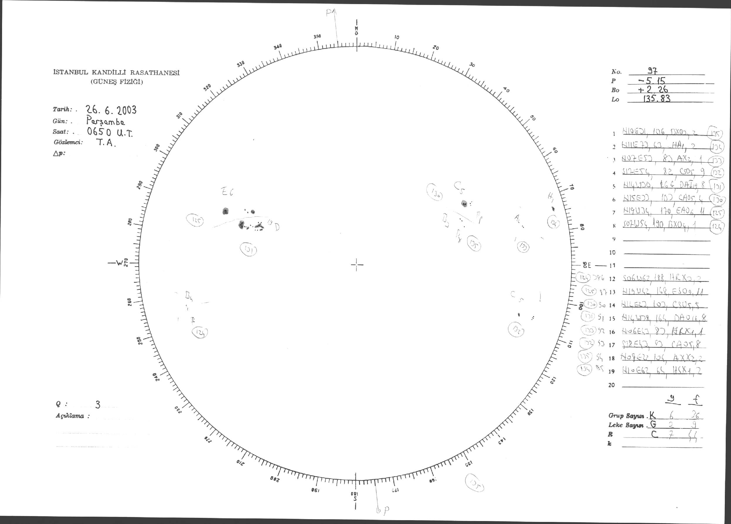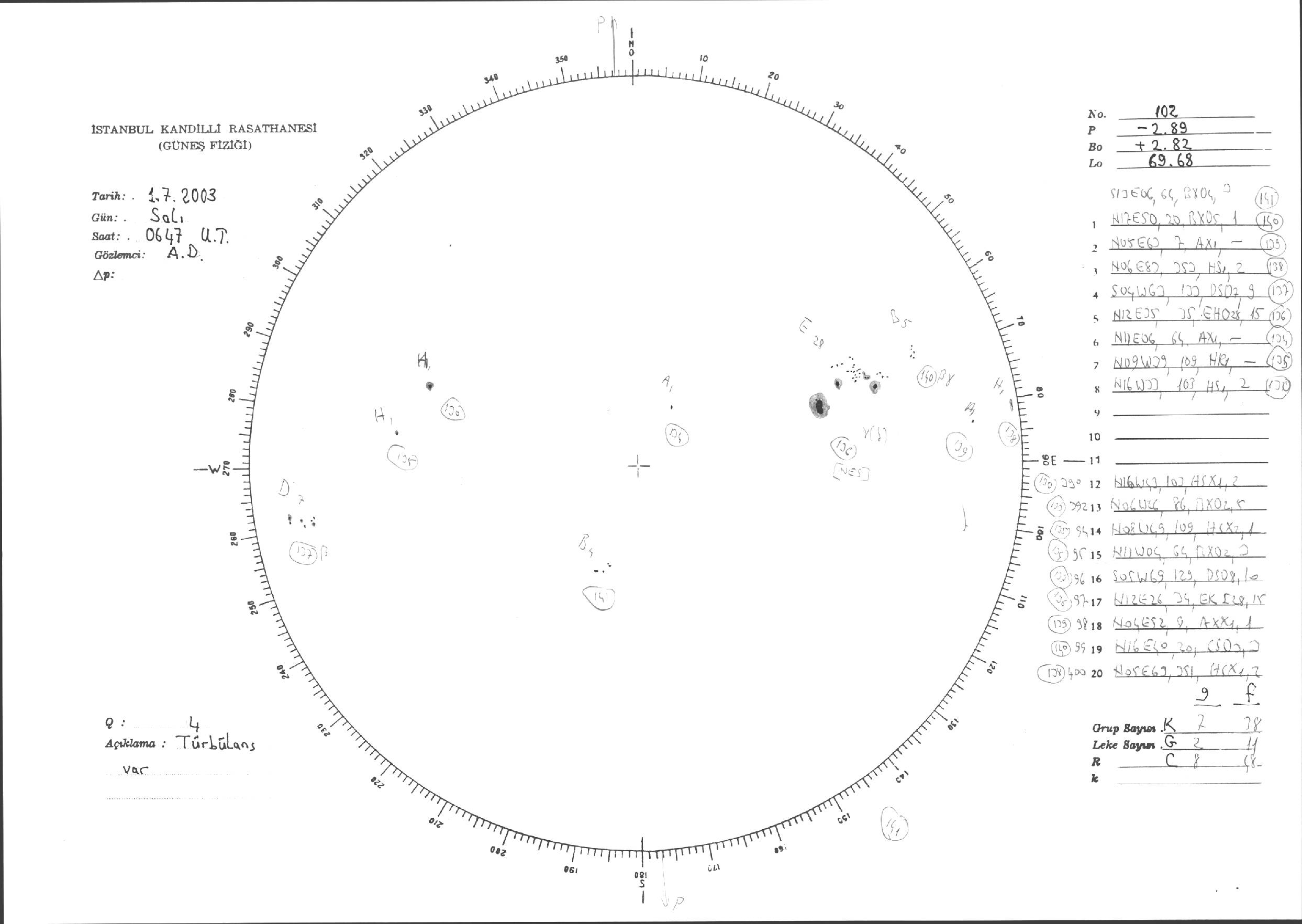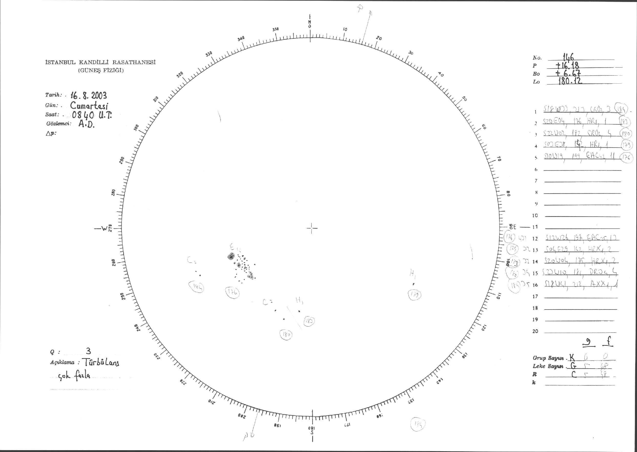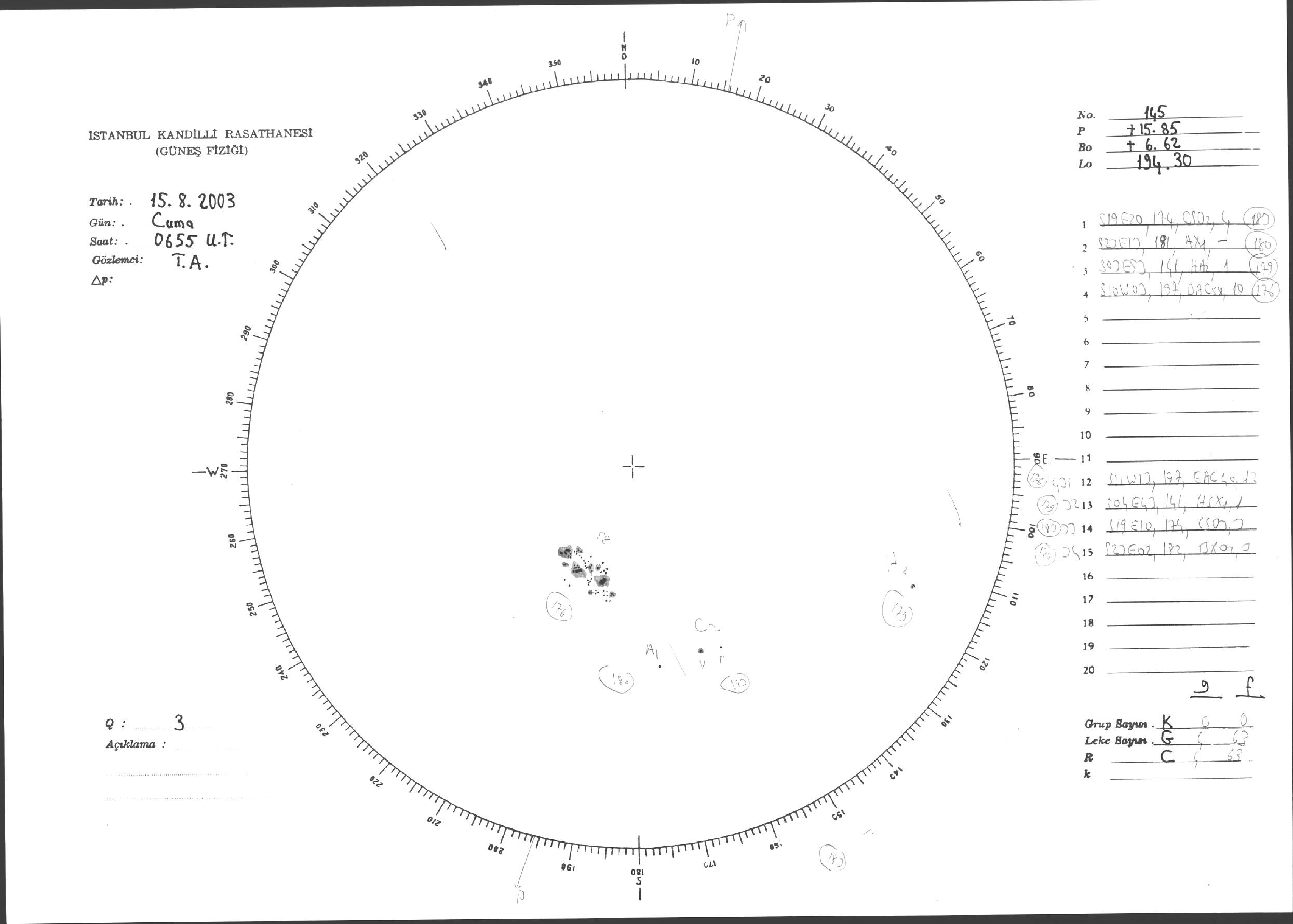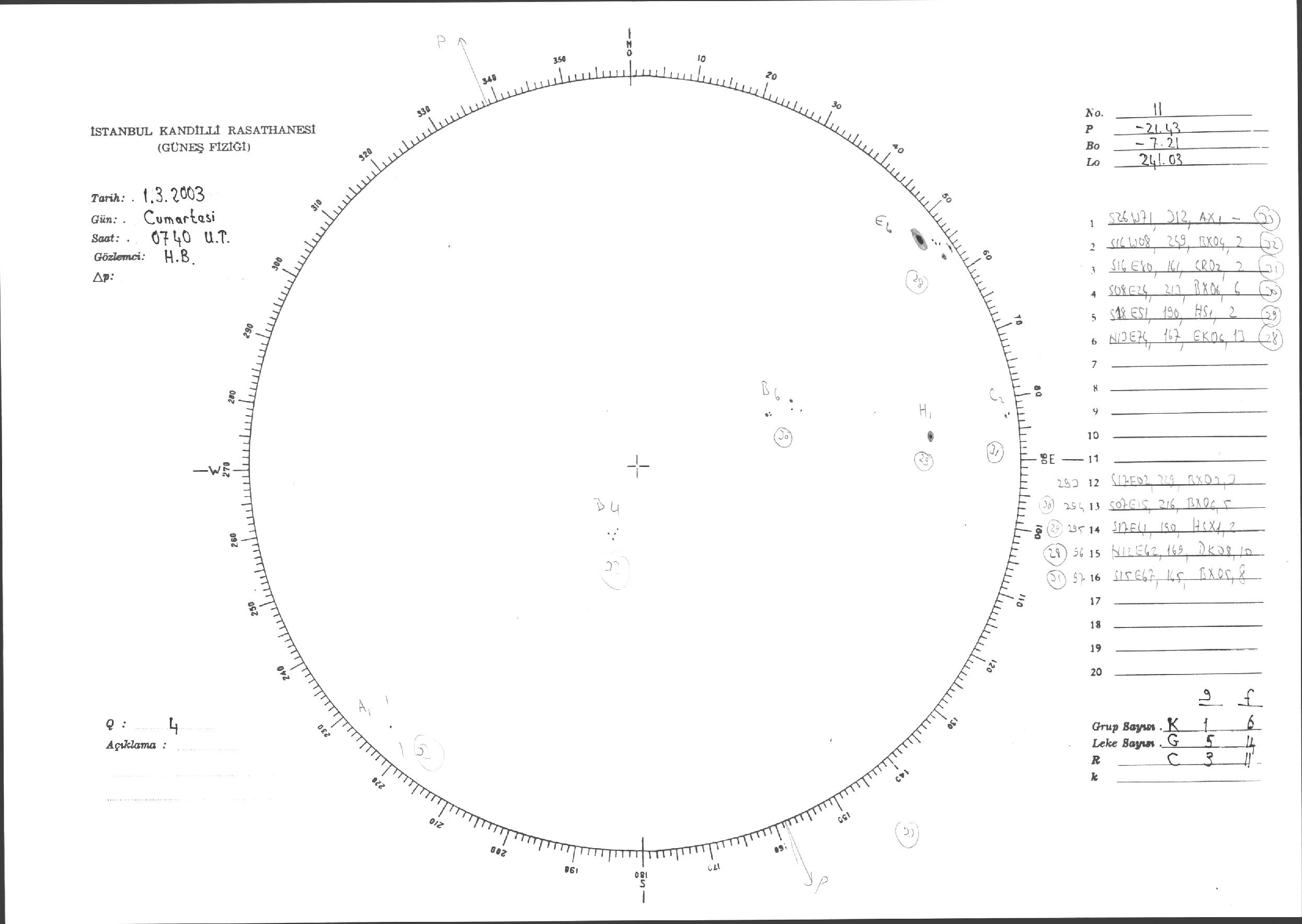 Güneş Lekesi Çizimleri / Kandilli Sunspot Drawings
