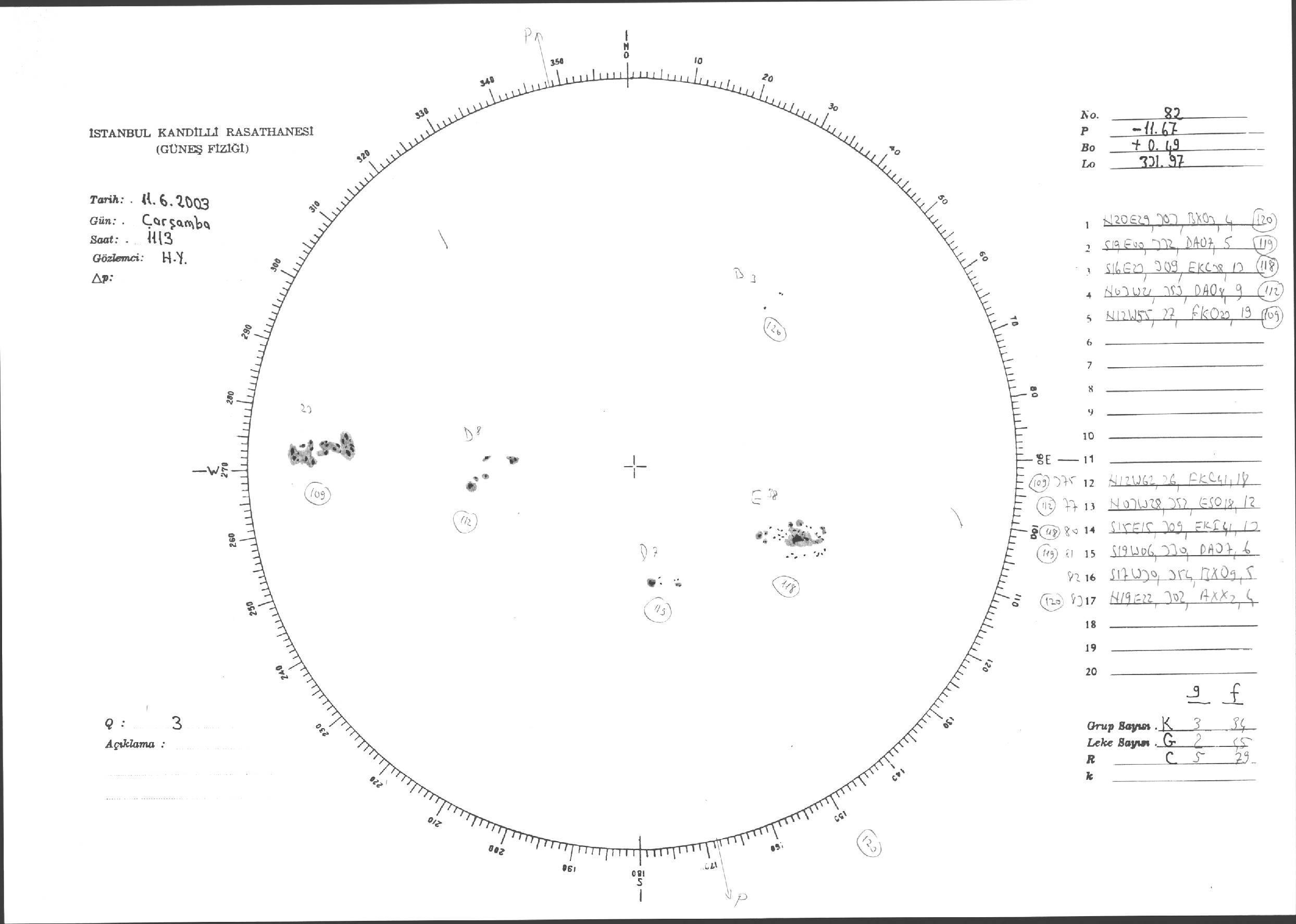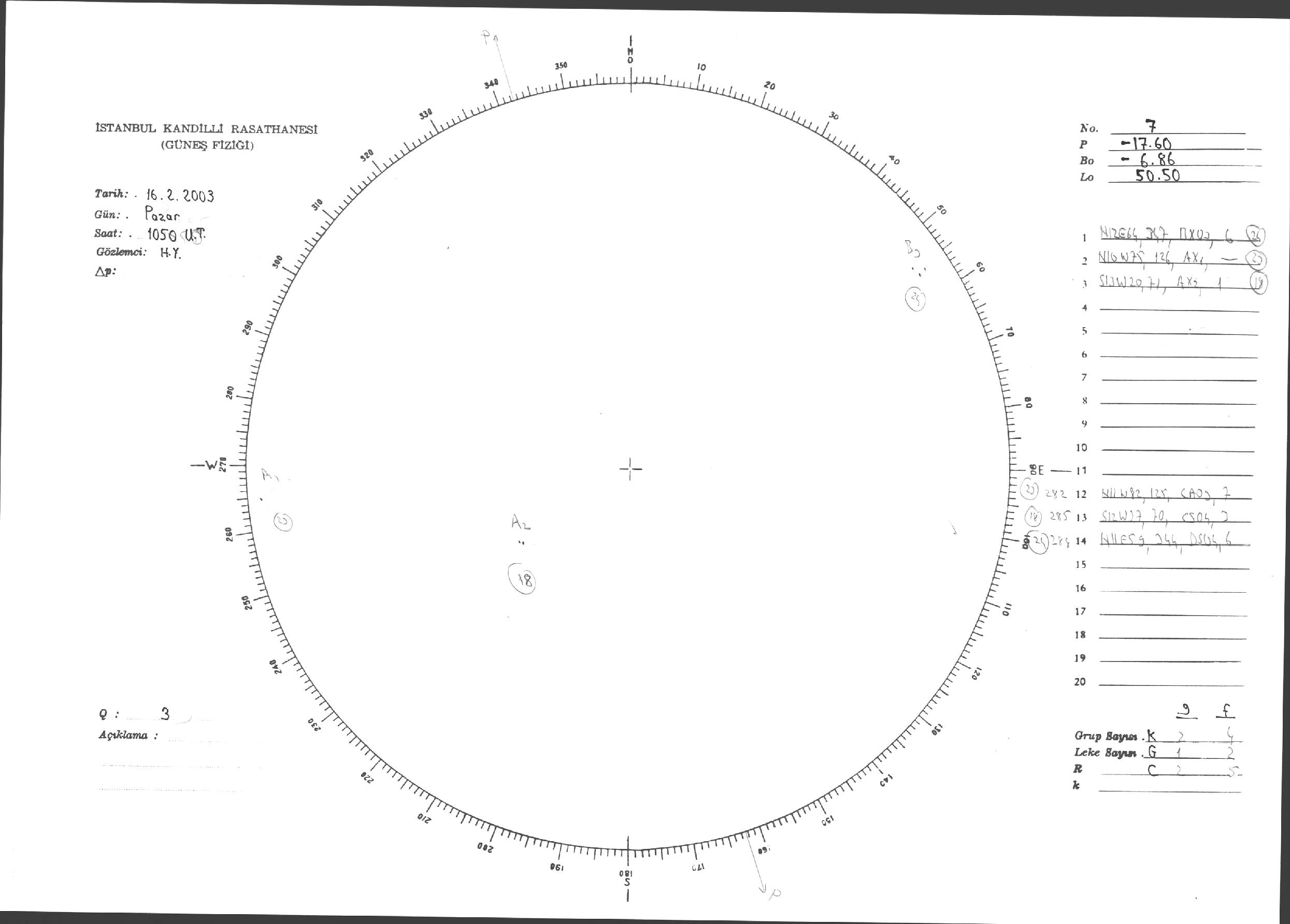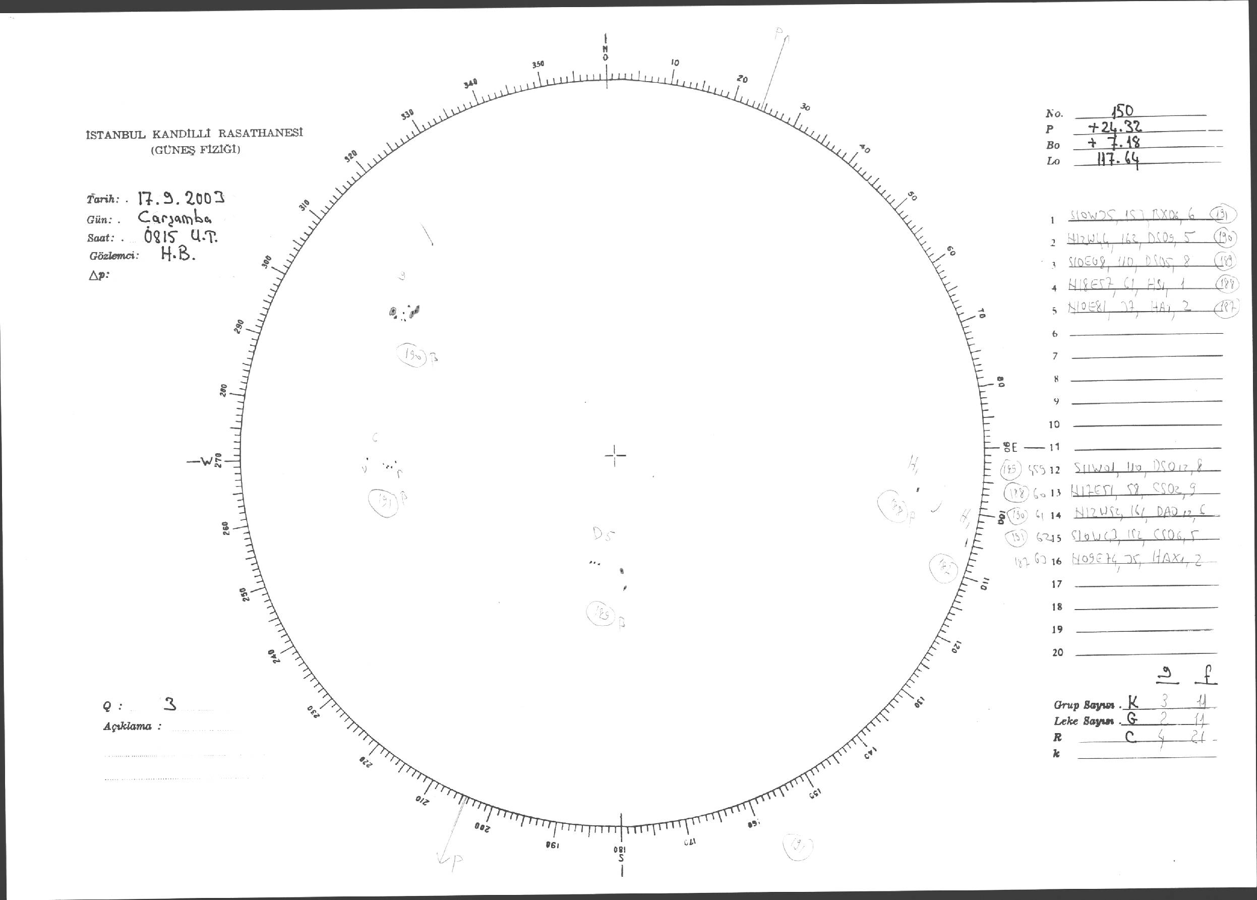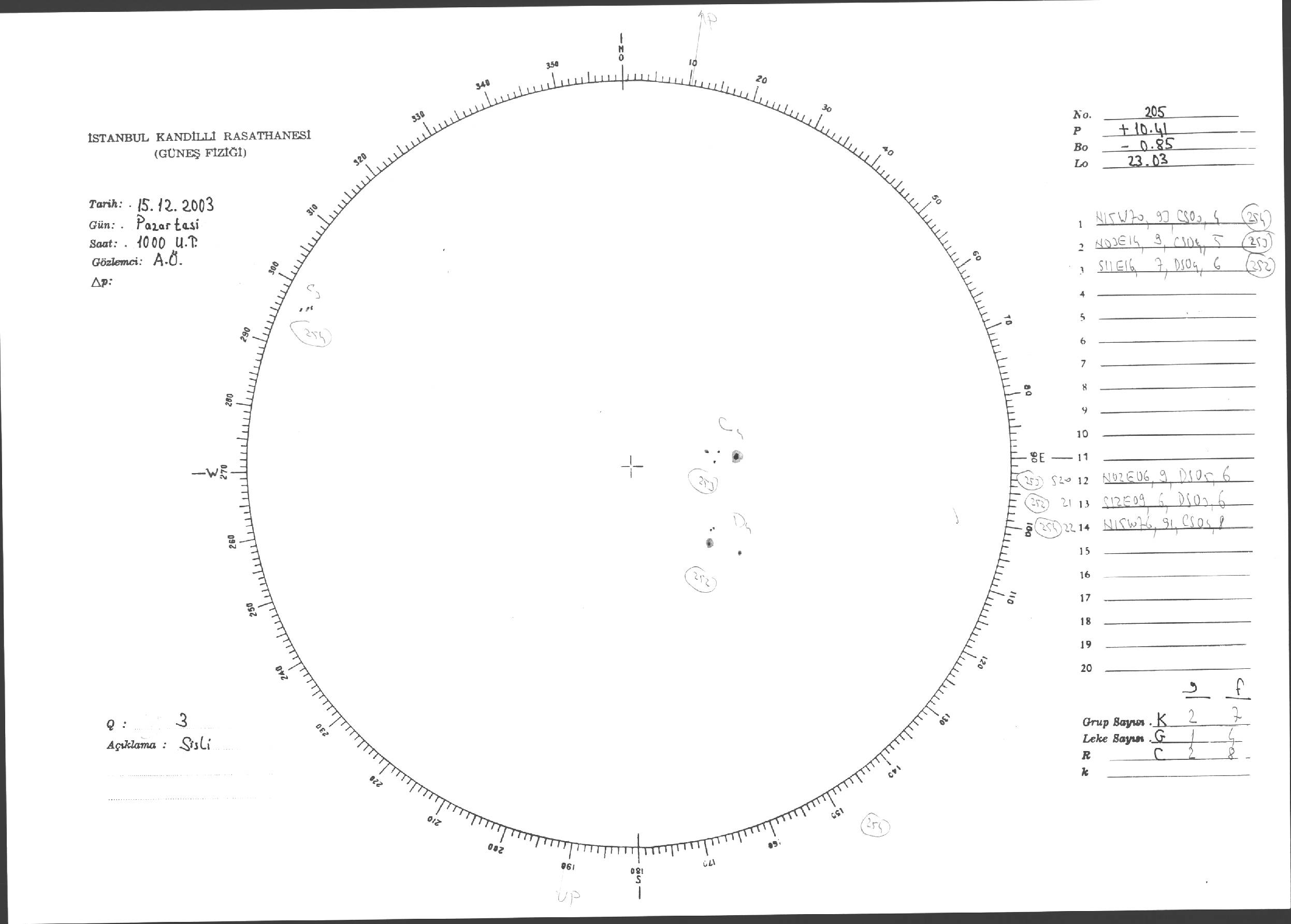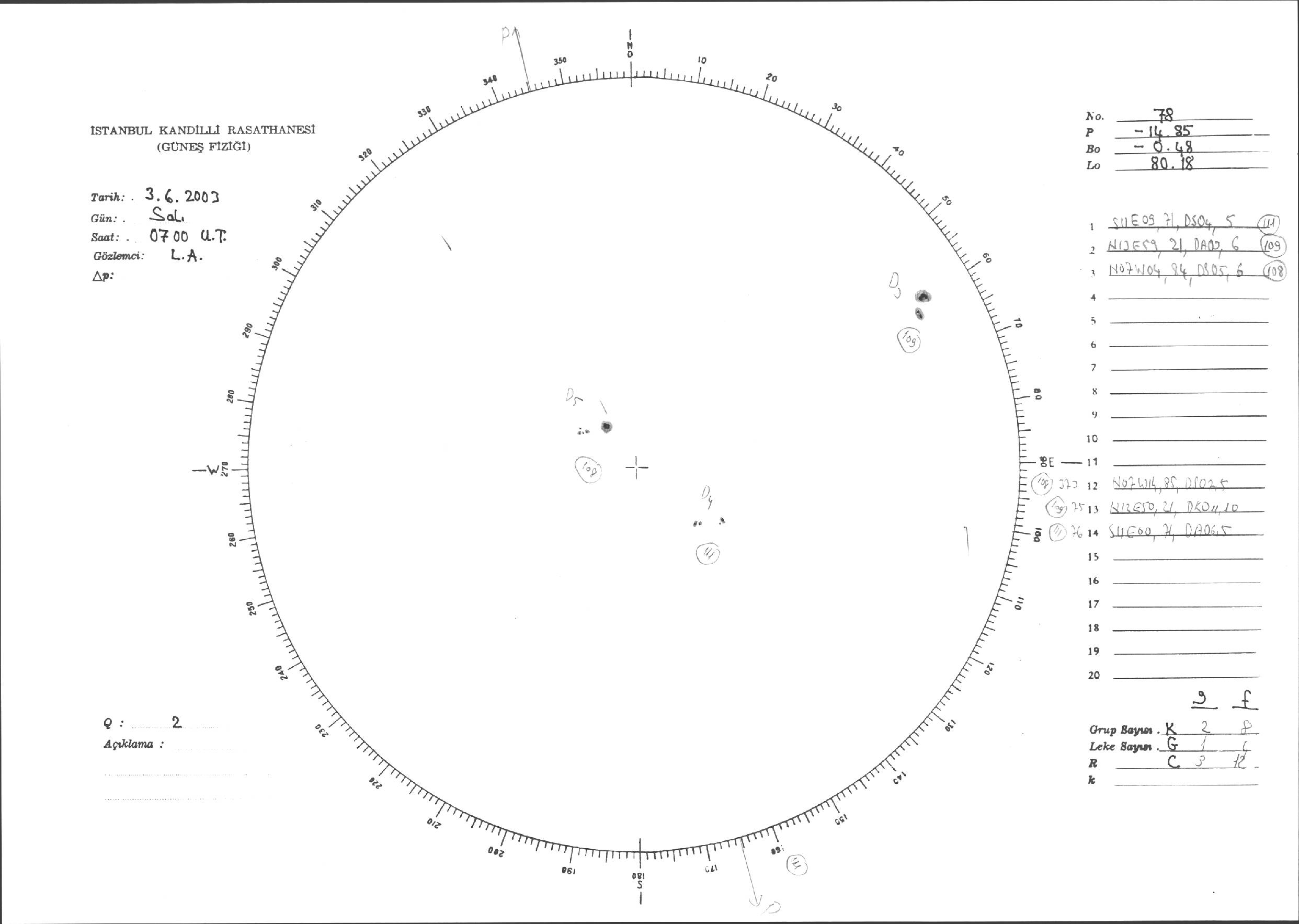 Güneş Lekesi Çizimleri / Kandilli Sunspot Drawings