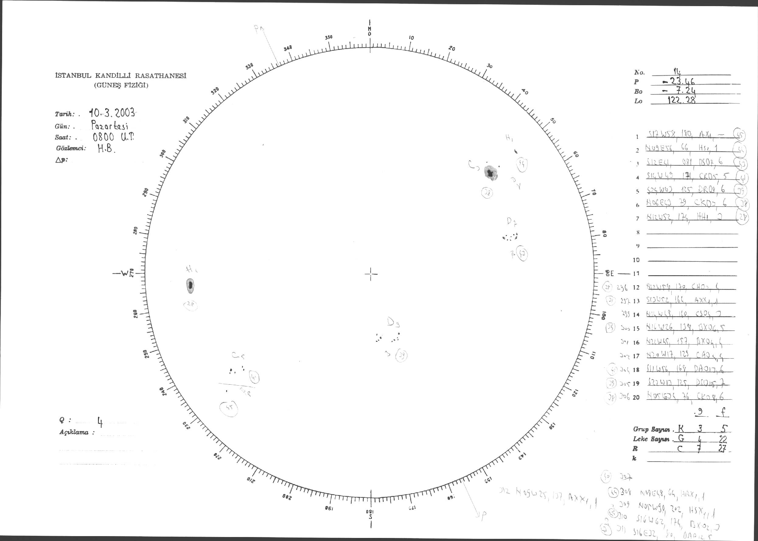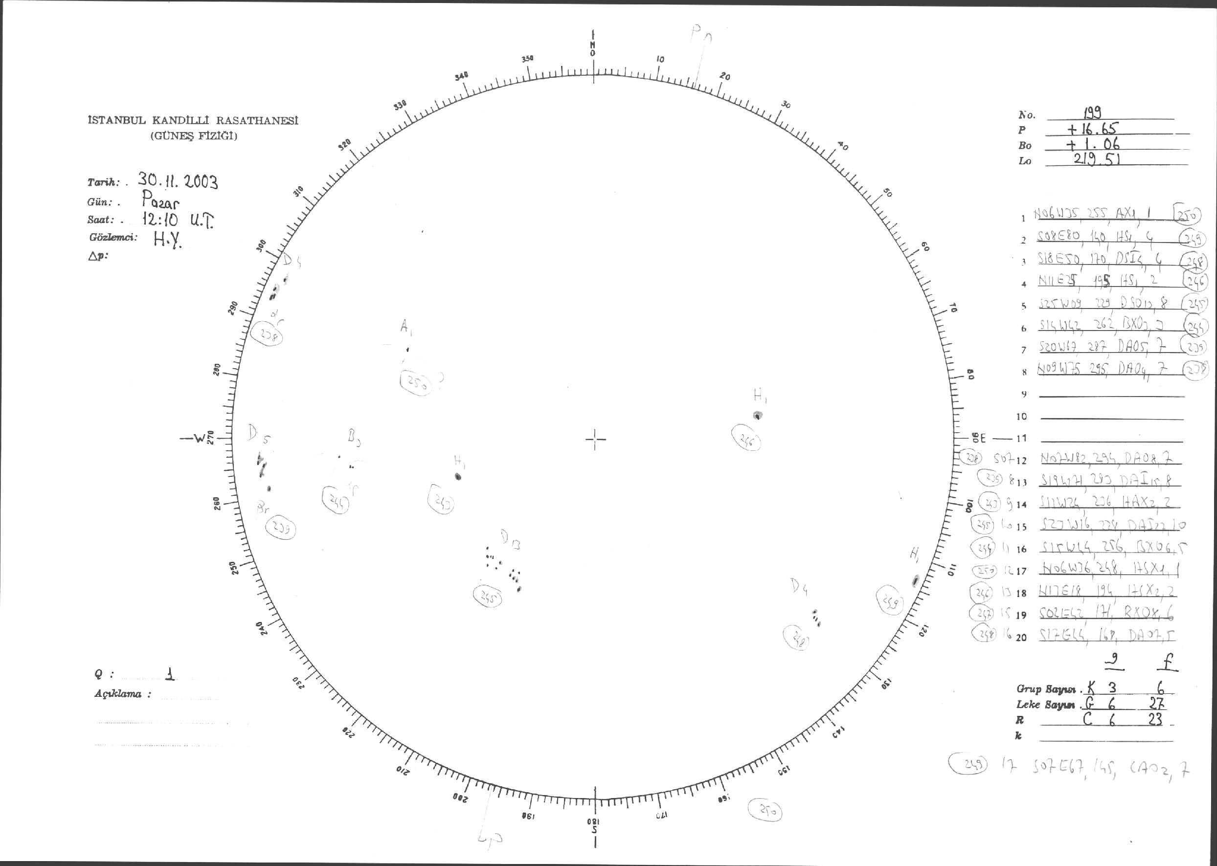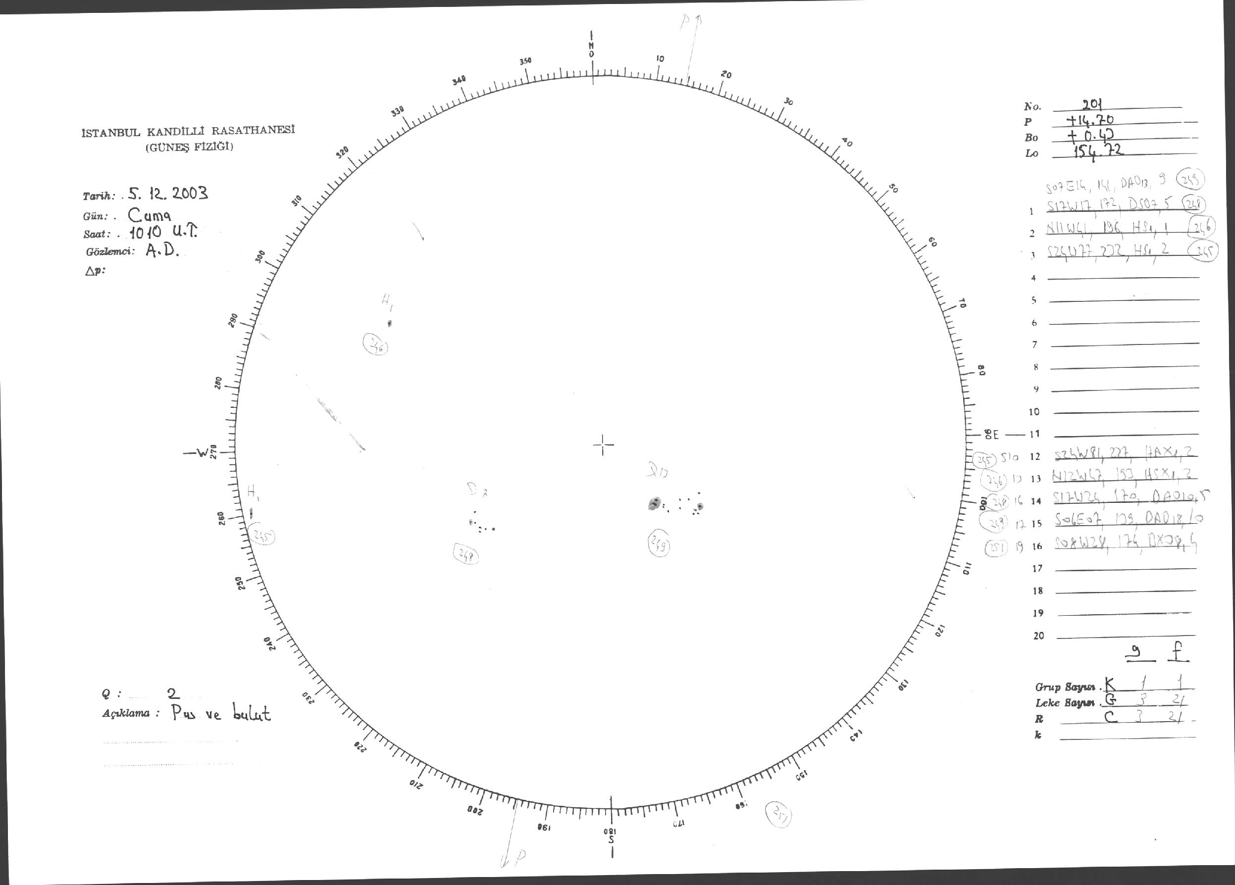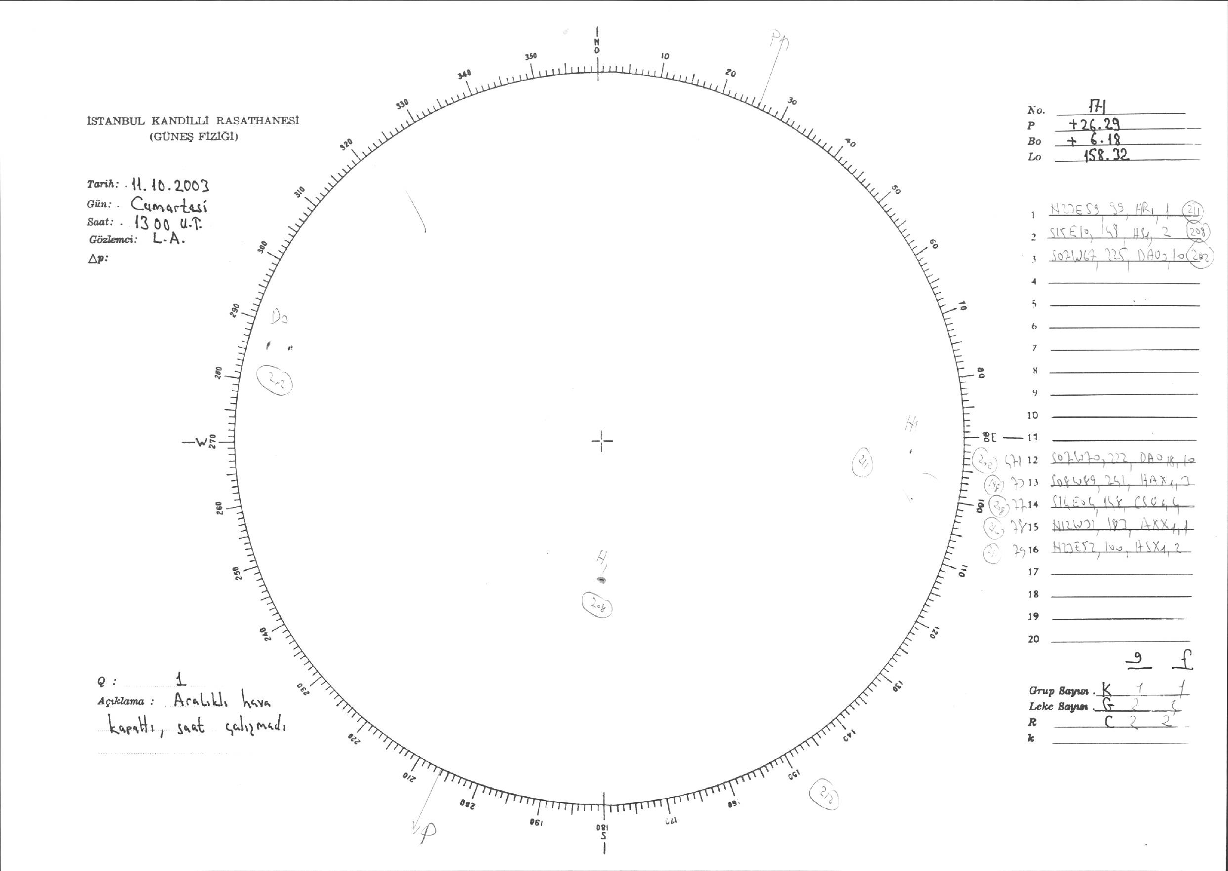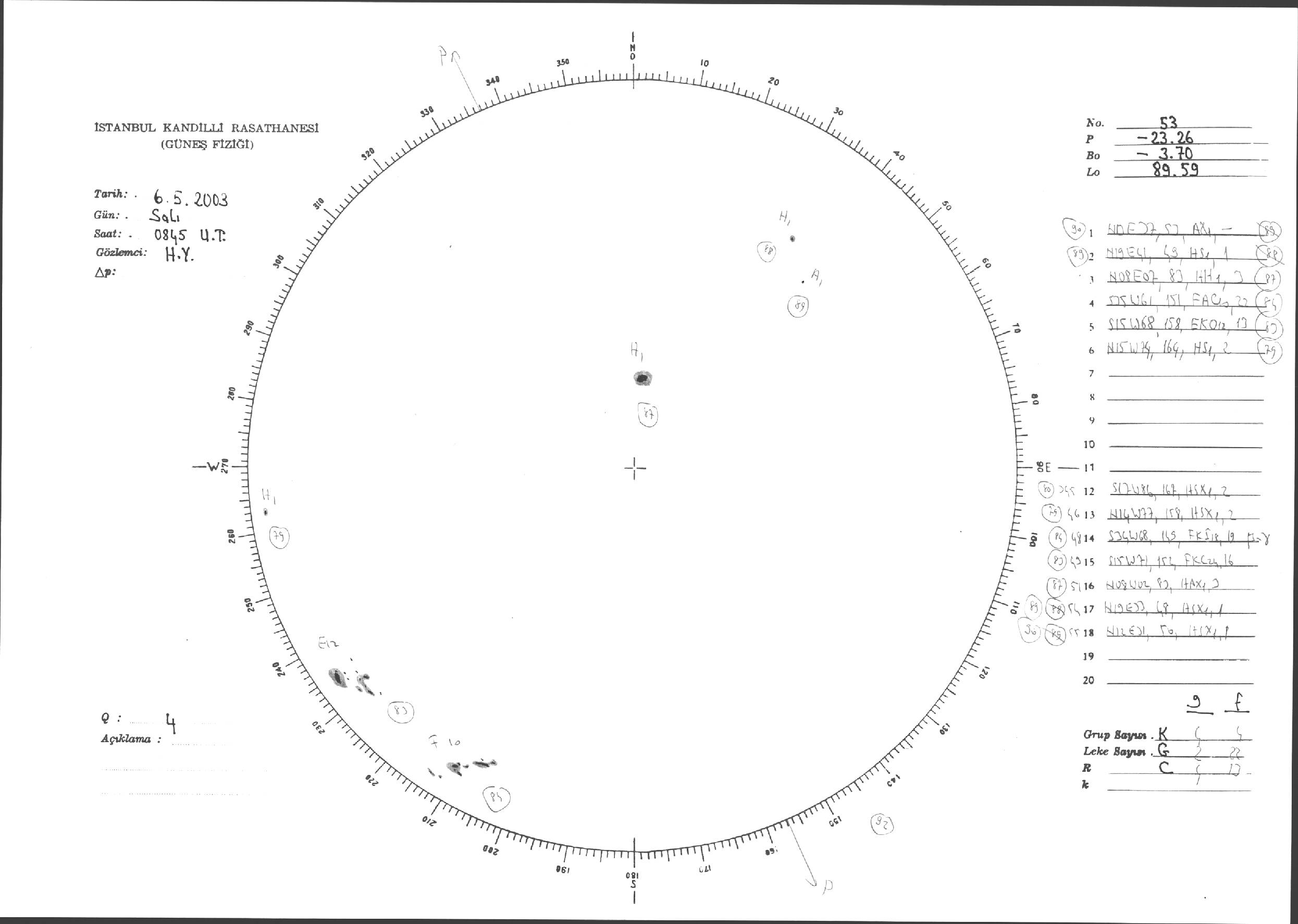 Güneş Lekesi Çizimleri / Kandilli Sunspot Drawings